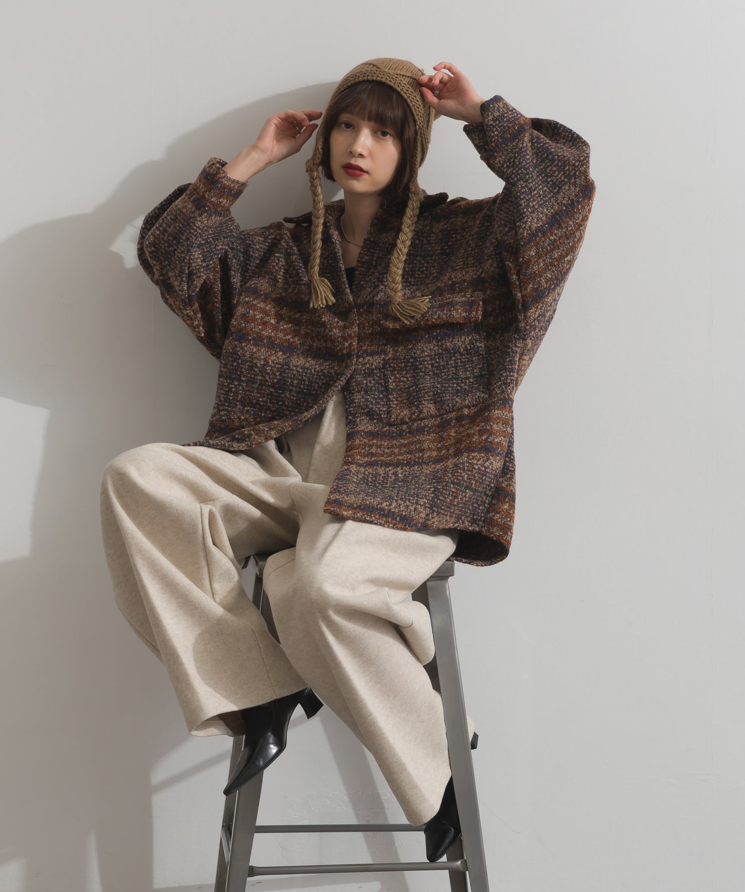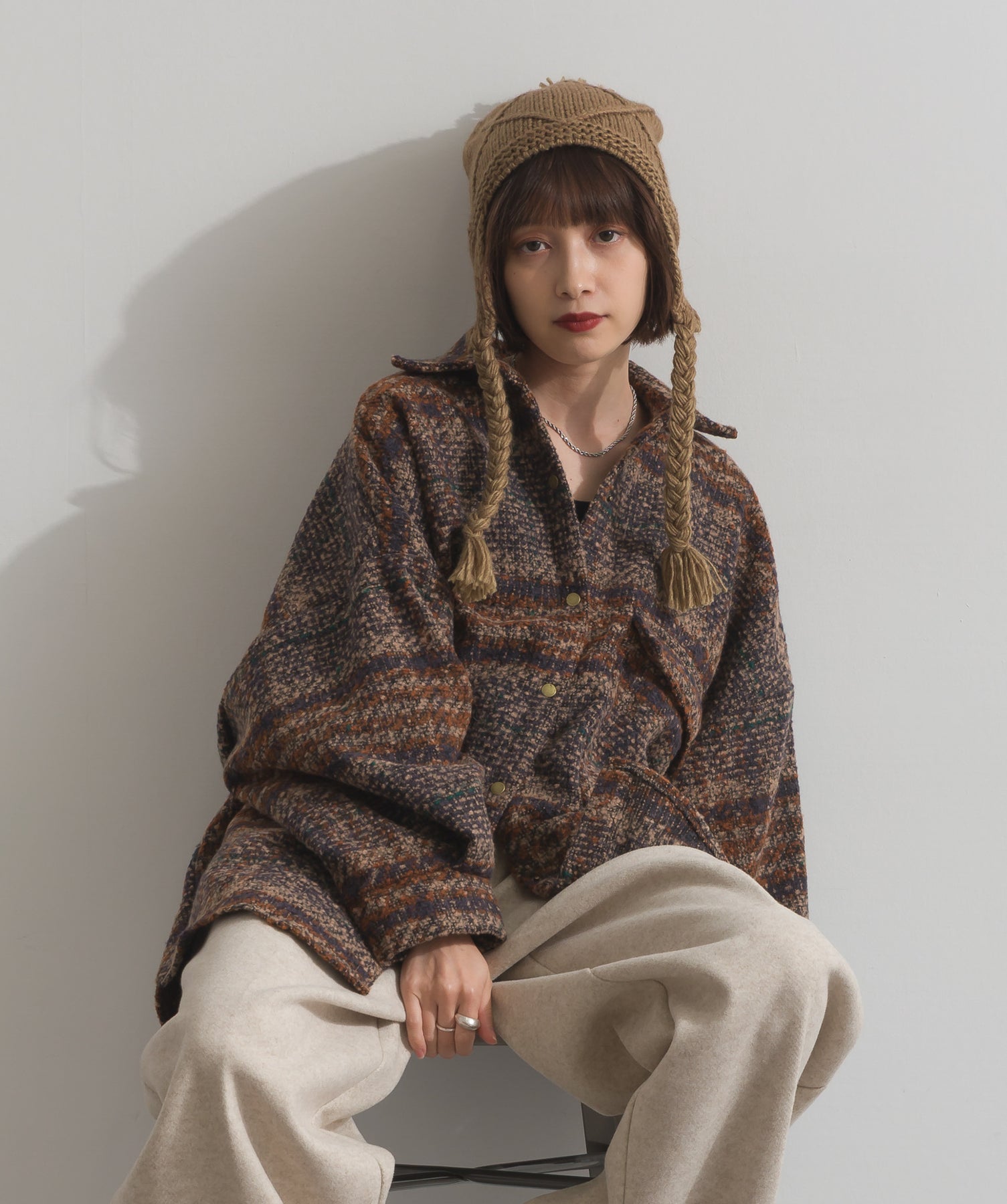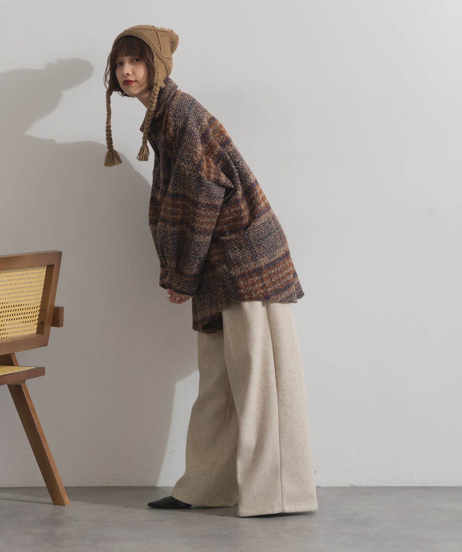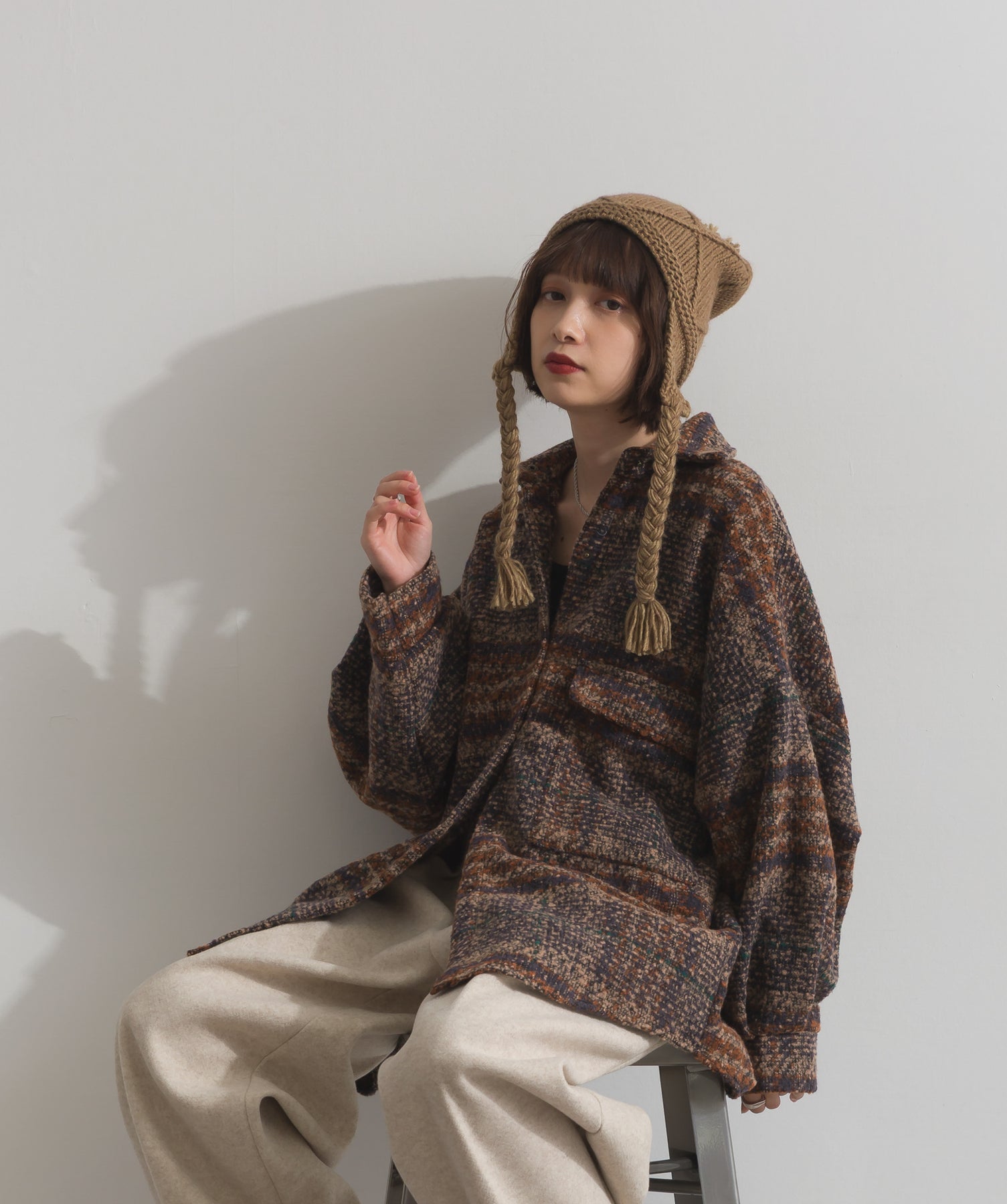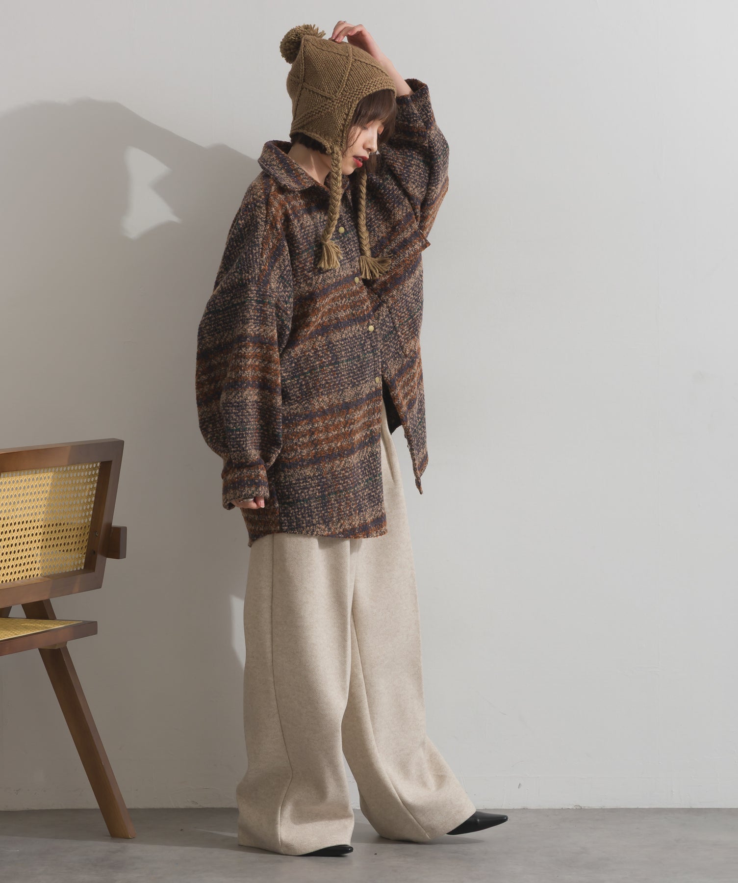 じっくり遊ぶ、大人の抜け感シャツアウター。-material-ふんわりとした表面感が魅力のブークレ素材を使用。 しっかりとした厚みがありながらも、軽く快適でデイリーに活躍します。--design-トラッドなチェック柄に程よいルーズ感をプラスした、確からしいバランス感が光る1着。 大きめの胸ポケットや、ドロップショルダーのシルエットが抜け感を演出し、羽織るだけでコーディネートを格上げします。 シャツ感覚で着られるのに、コート代わりにもなる万能アウター。