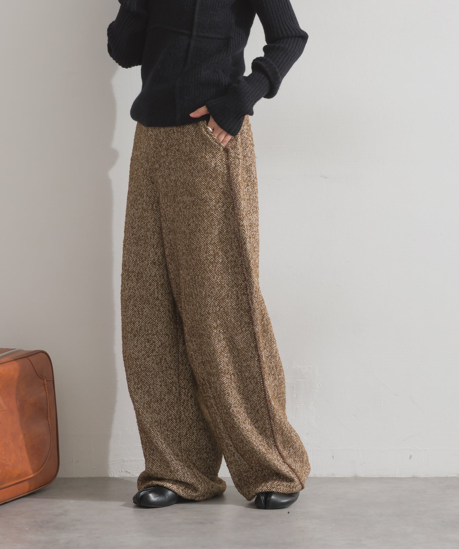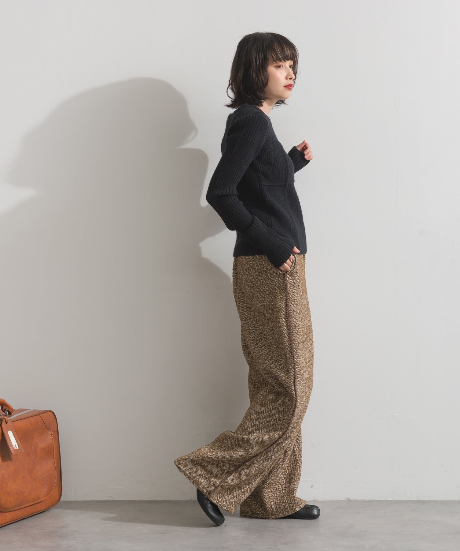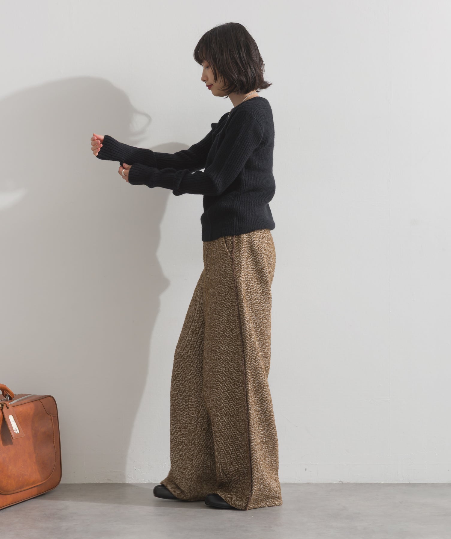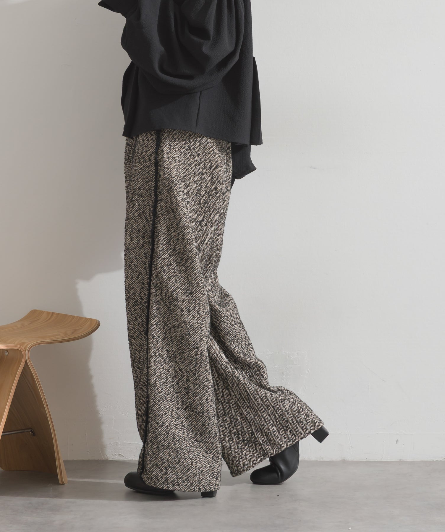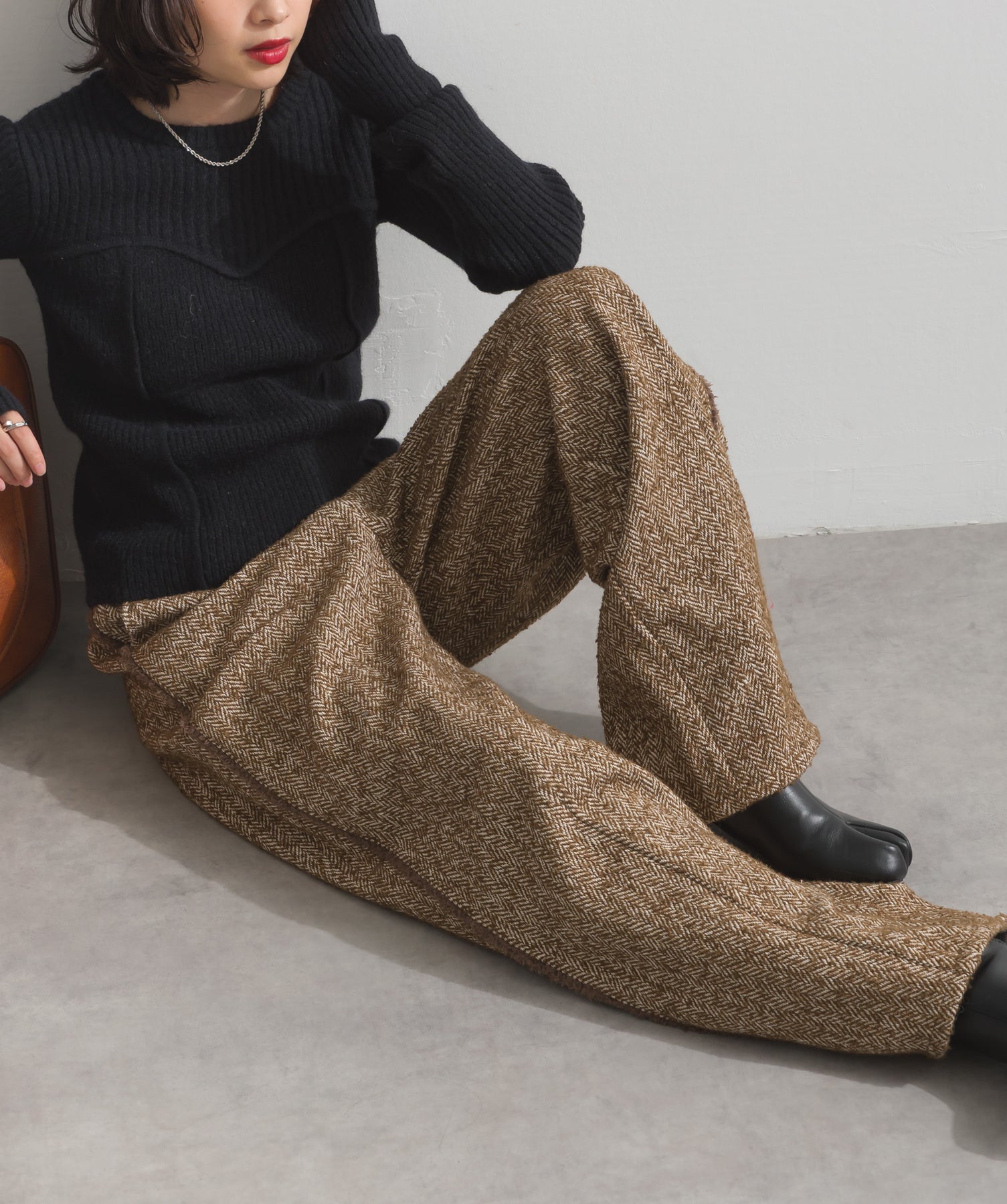 表情豊かなツイード素材を使用した、シーズンムード漂う質感。程よい厚みとやわらかさがあり、秋冬らしい暖かみを演出します。裏地付きで穿き心地も快適。