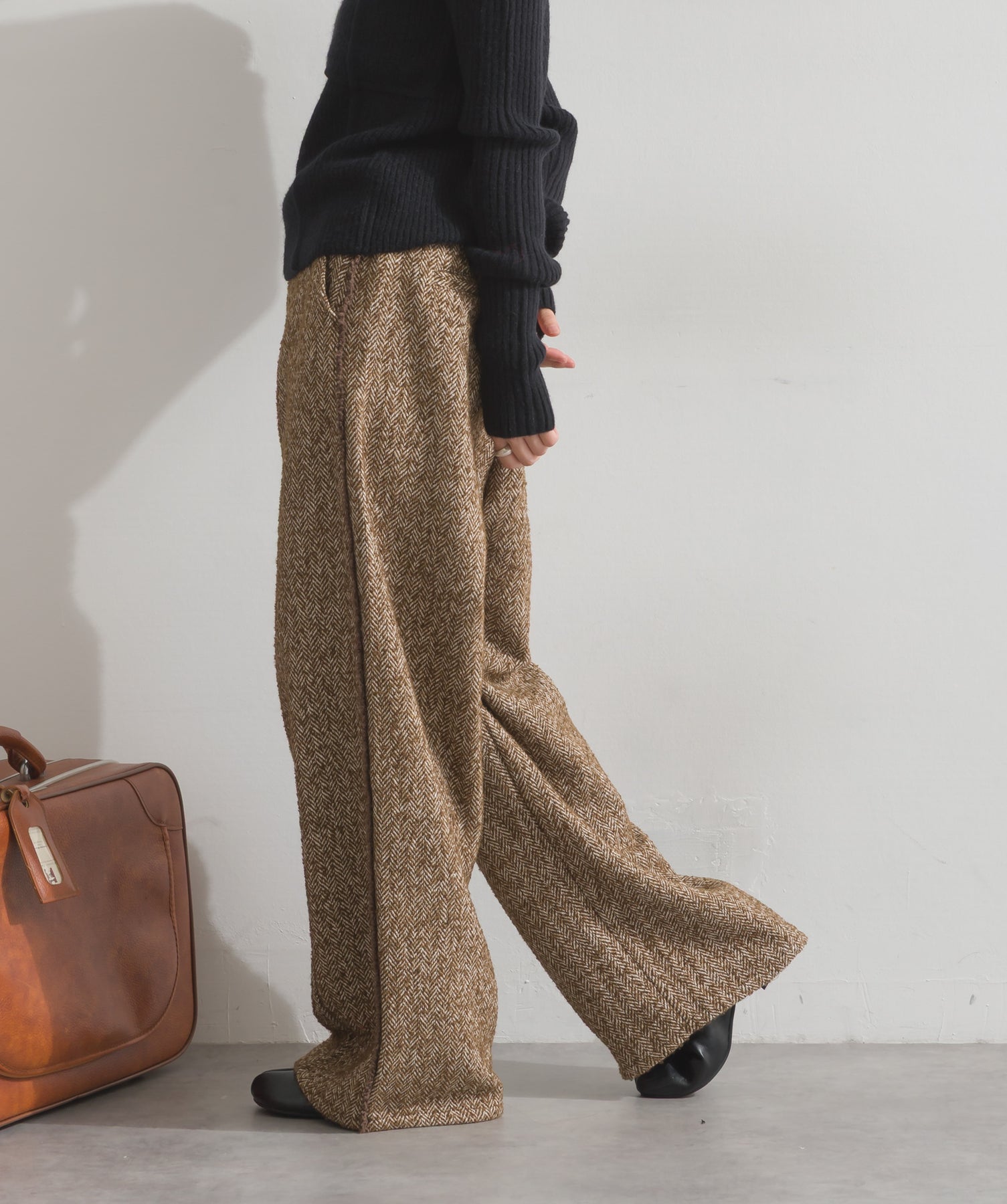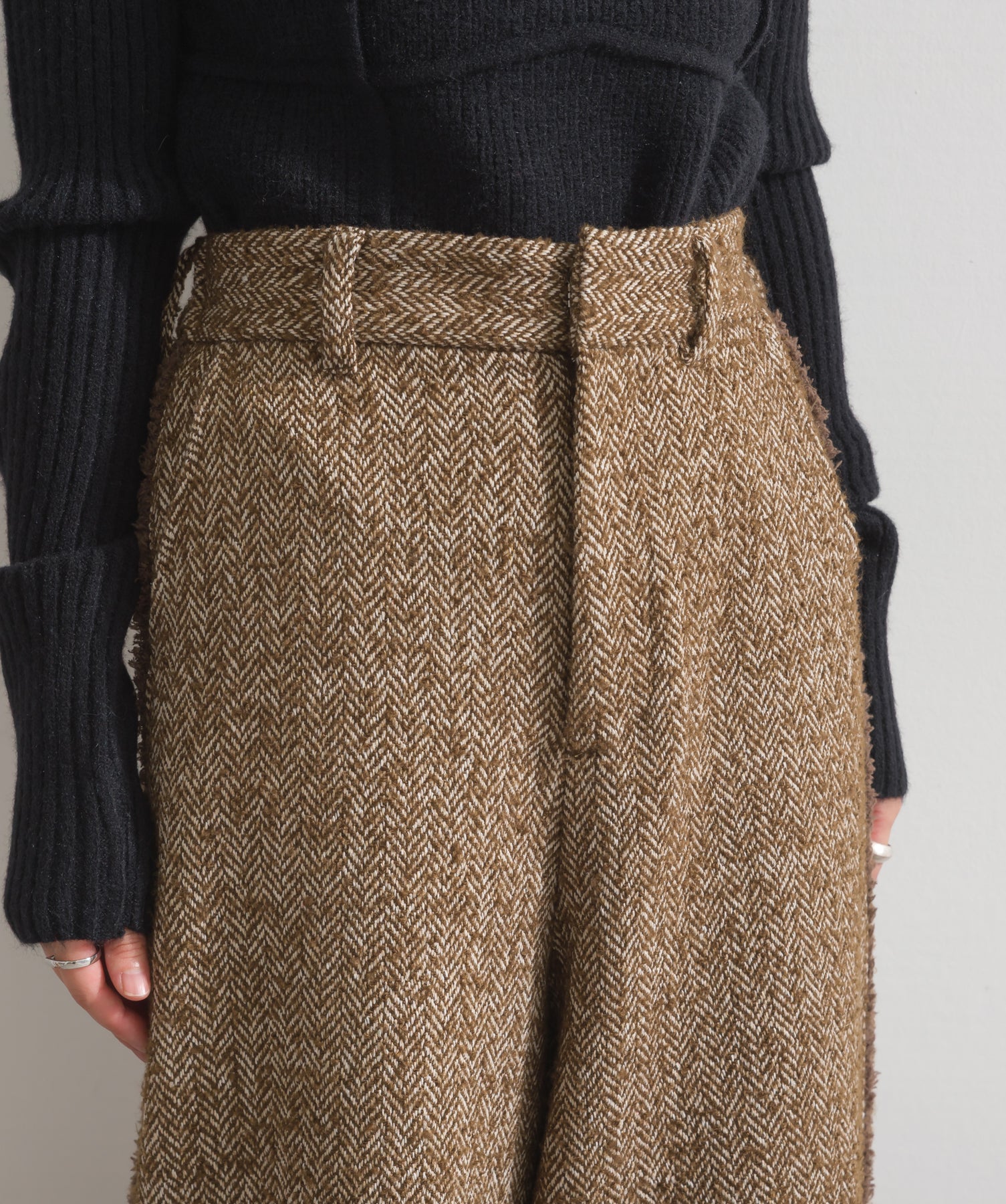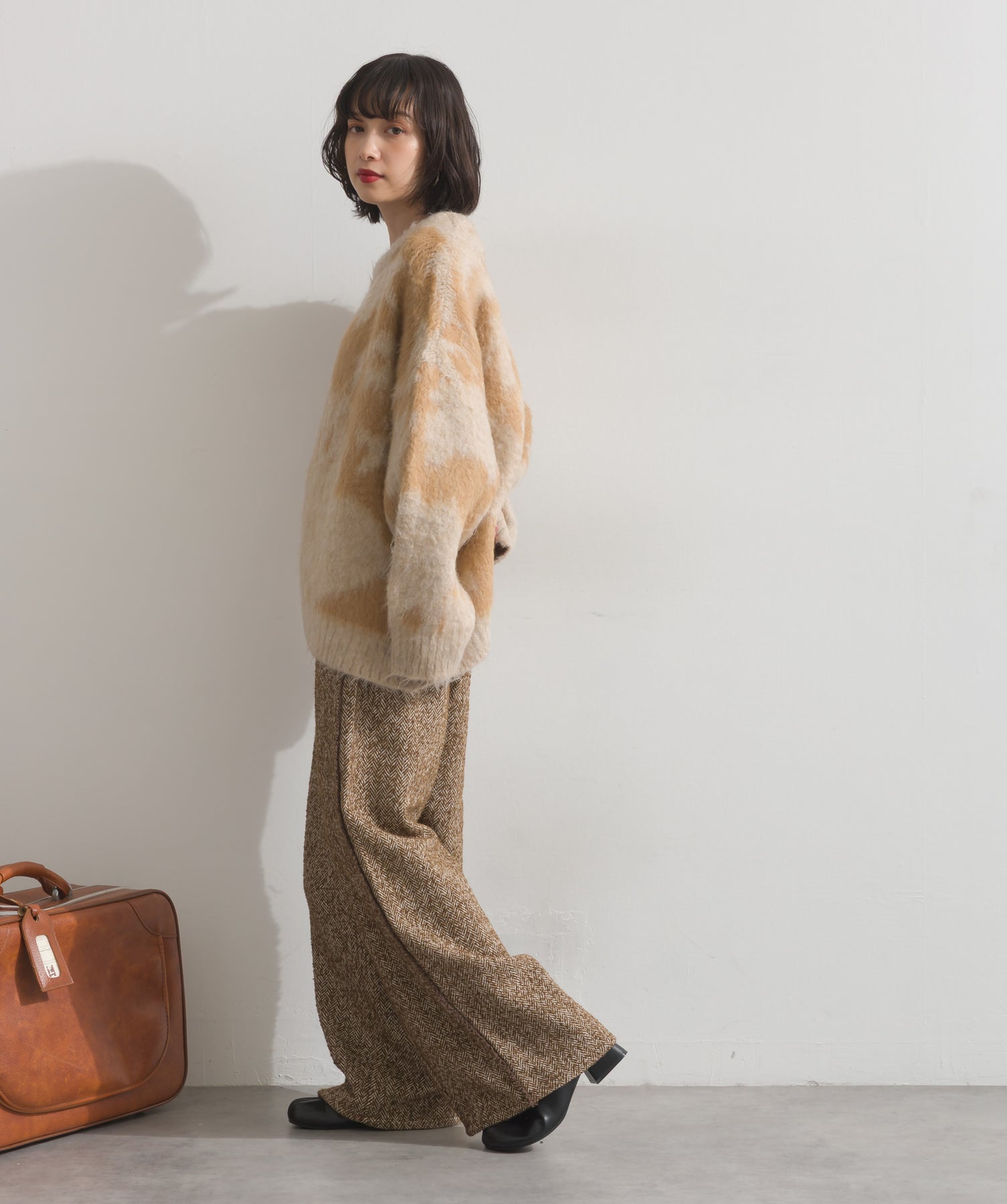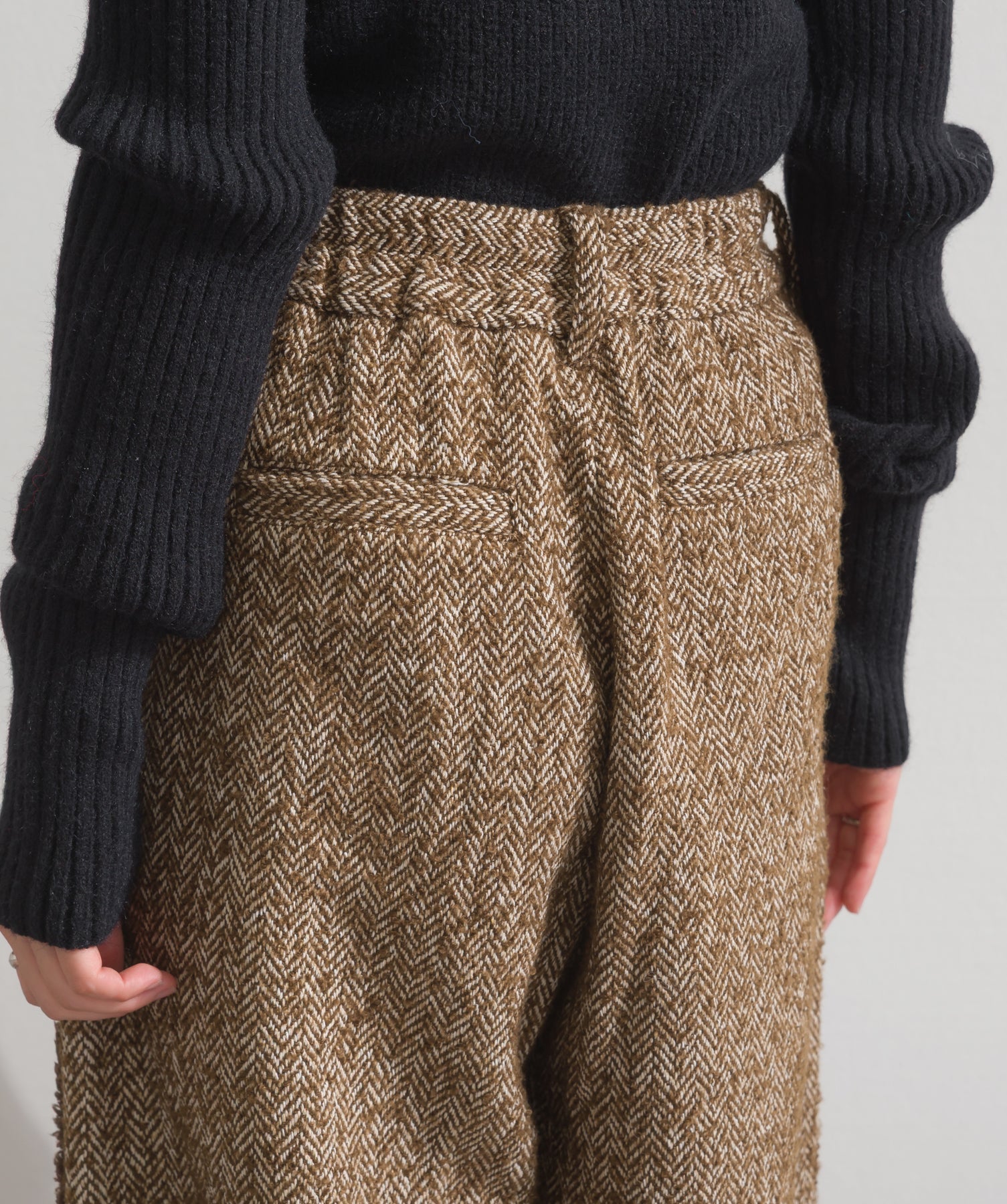 表情豊かなツイード素材を使用した、シーズンムード漂う質感。程よい厚みとやわらかさがあり、秋冬らしい暖かみを演出します。裏地付きで穿き心地も快適。