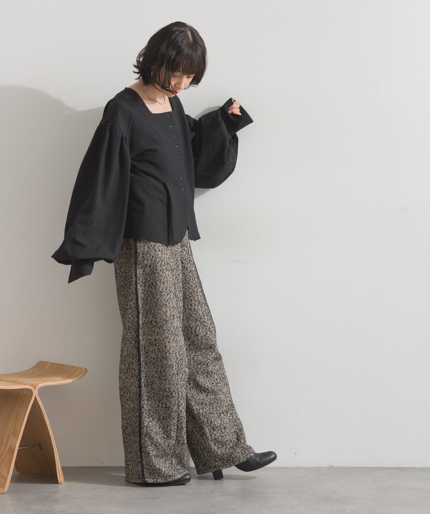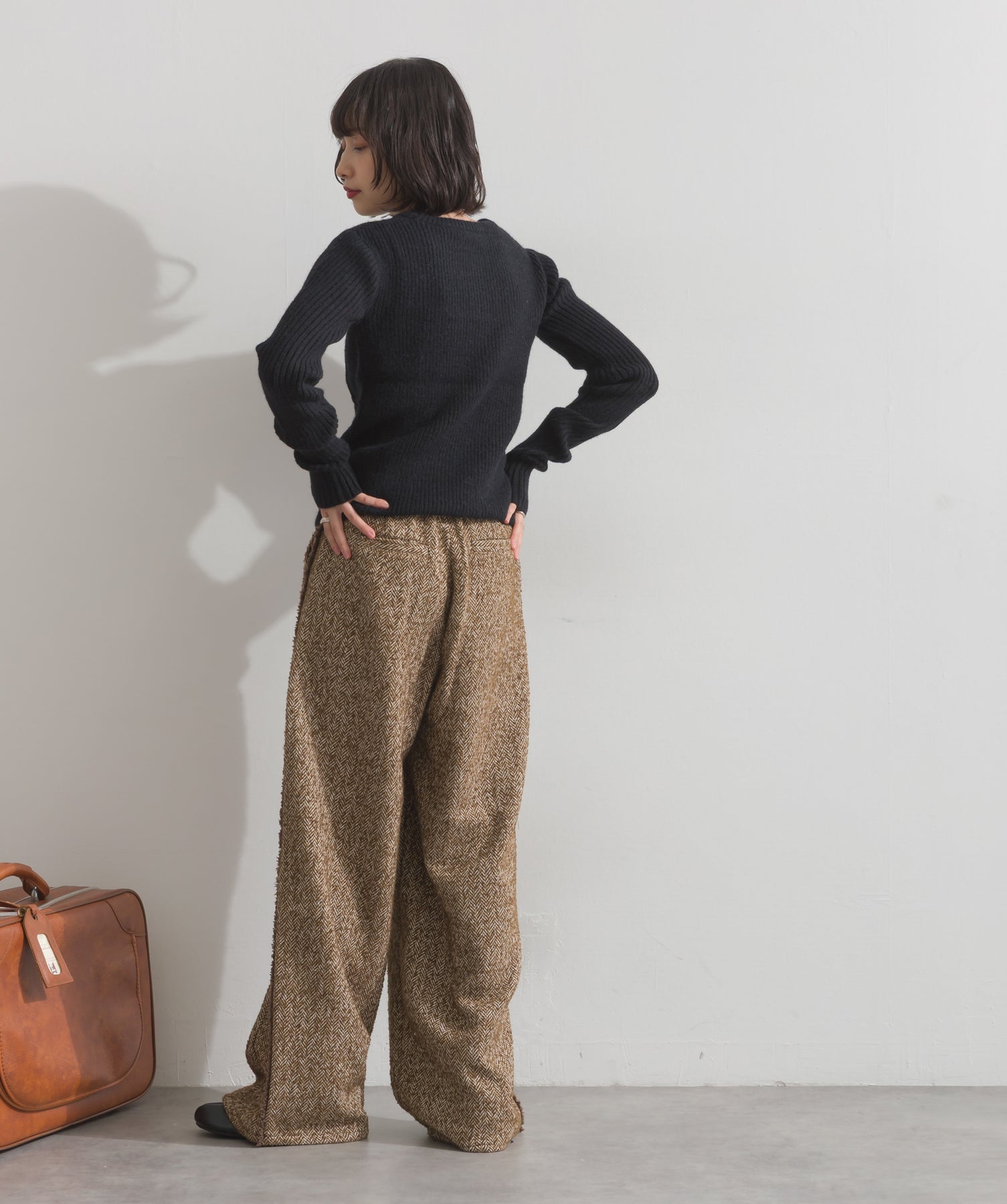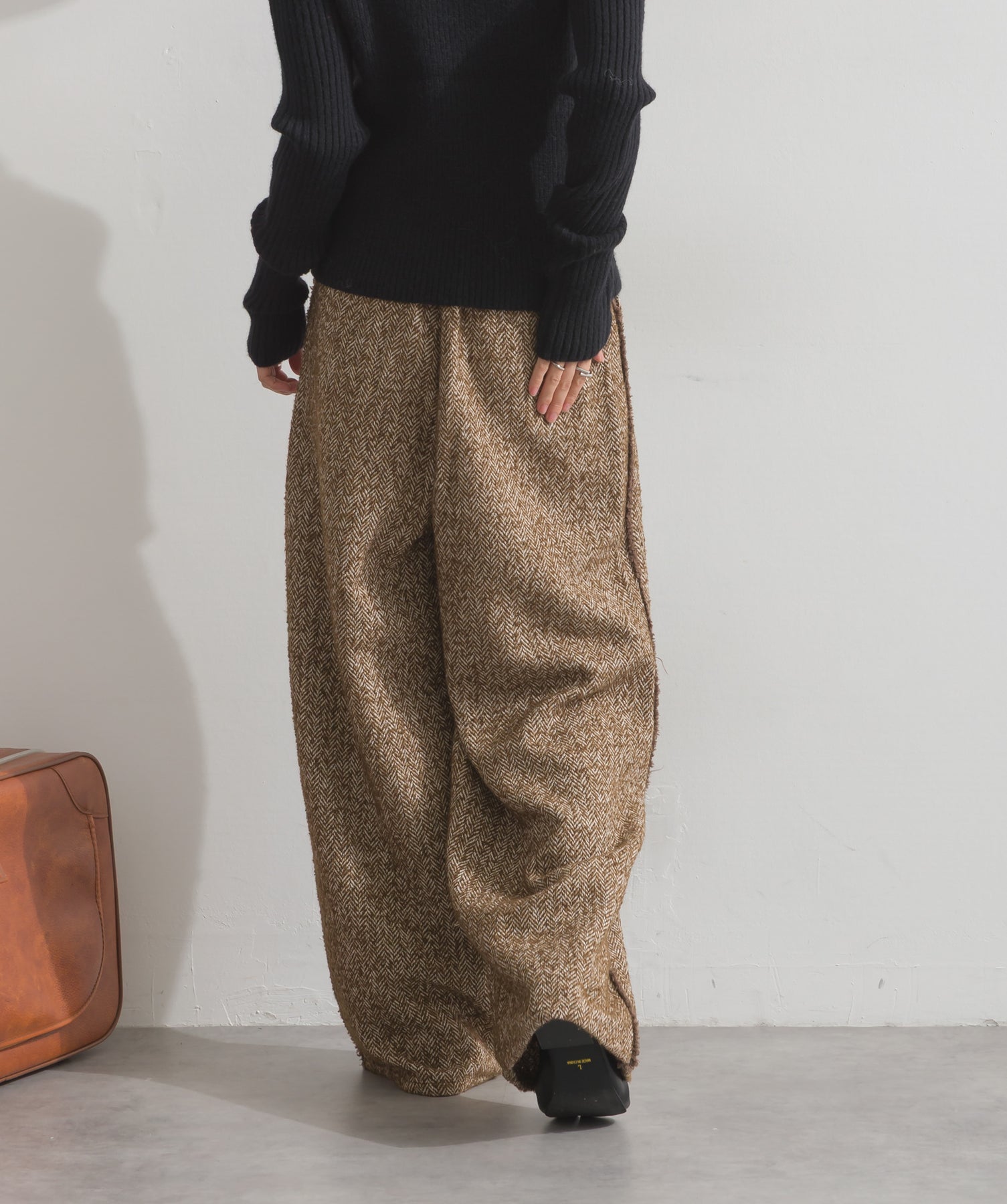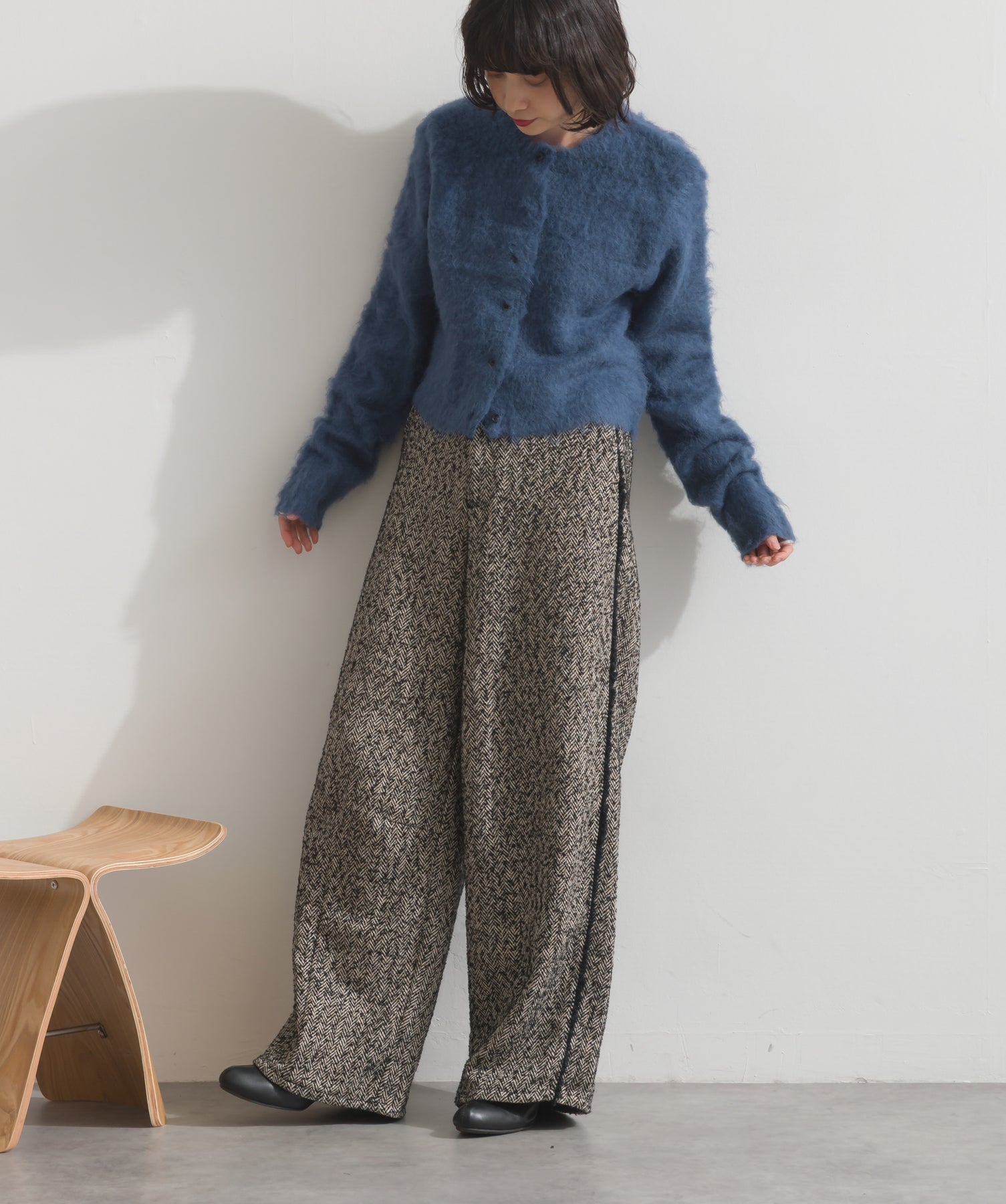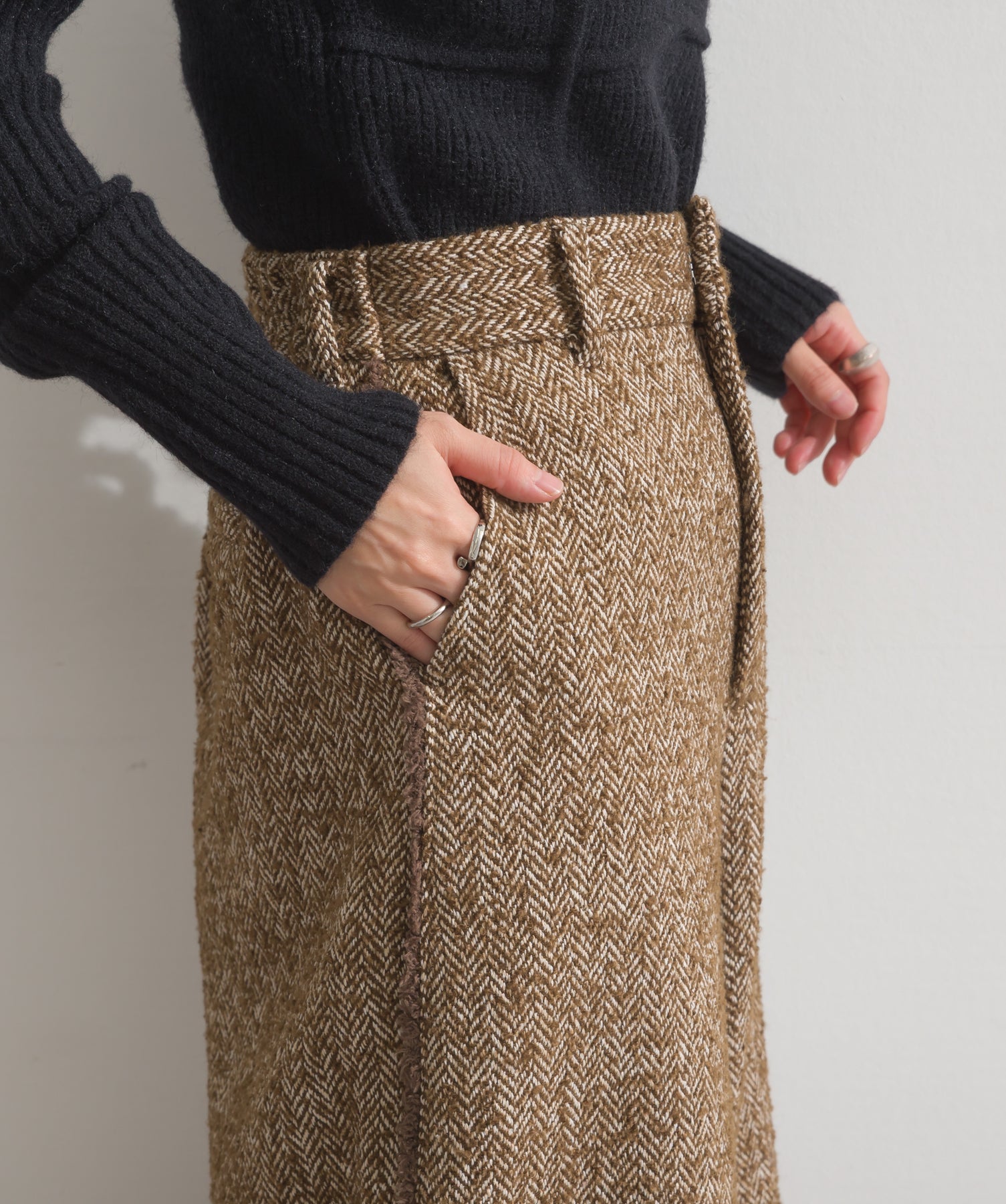 表情豊かなツイード素材を使用した、シーズンムード漂う質感。程よい厚みとやわらかさがあり、秋冬らしい暖かみを演出します。裏地付きで穿き心地も快適。