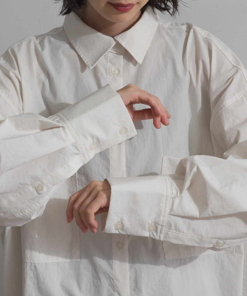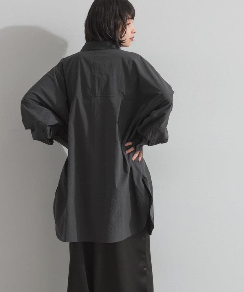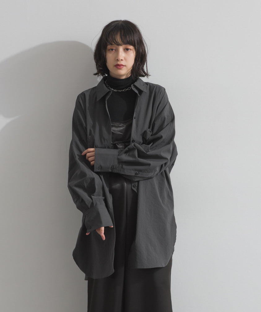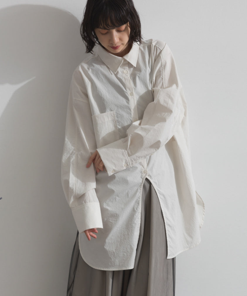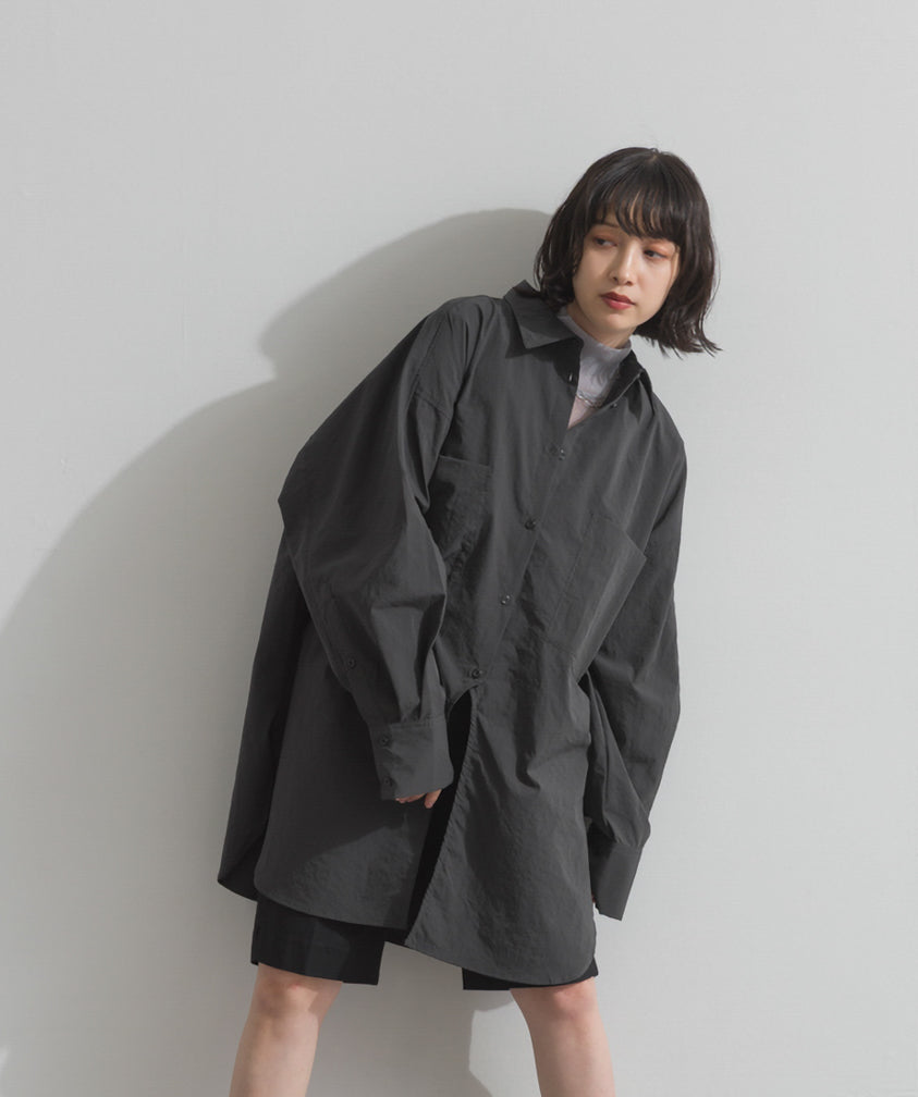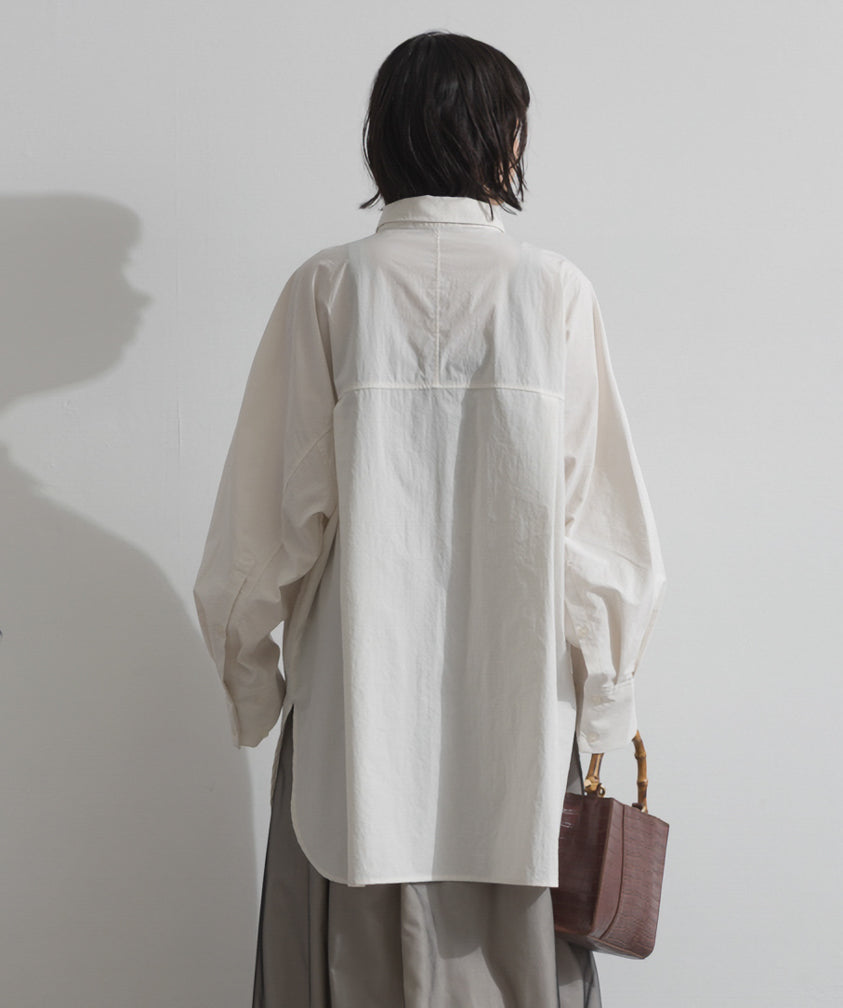 一枚でこなれる、絶妙シルエットのブロードオーバーシャツ。ハリ感のあるポリエステルブロード生地を使用した、ルーズなサイズ感が魅力のオーバーシャツ。ドロップショルダーとワイドスリーブが旬の抜け感を演出し、体のラインを自然にカバー。前後差のある裾デザインでアウトでもインでもバランスよく決まり、羽織としても使える汎用性の高さがポイント。デニムやスラックス、スカートなど、どんなボトムとも相性抜群の着回し力◎な1枚です。