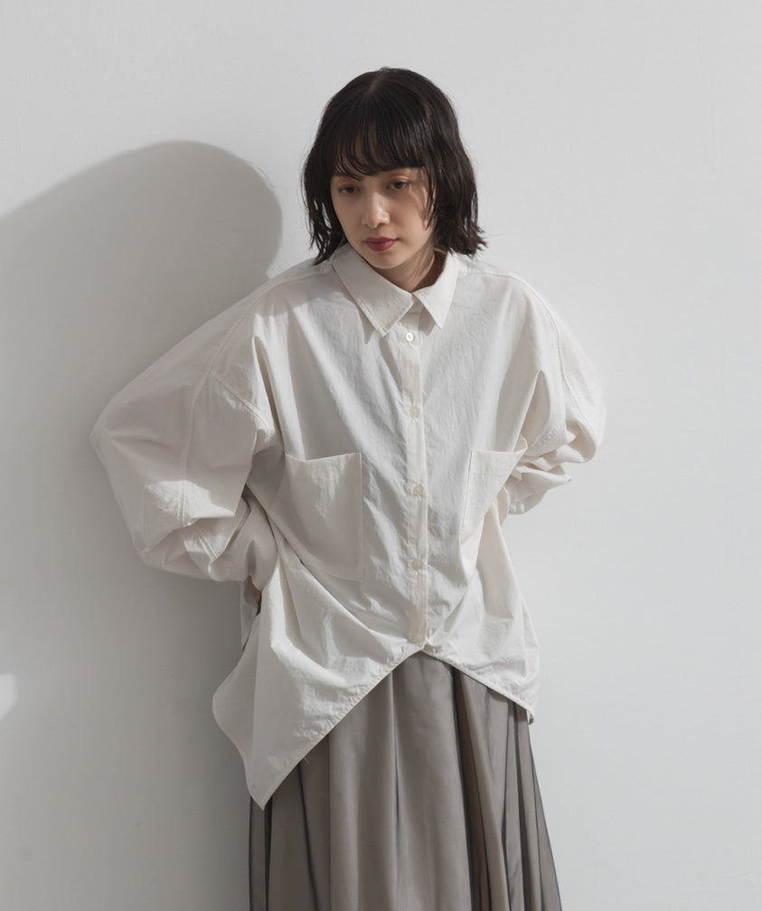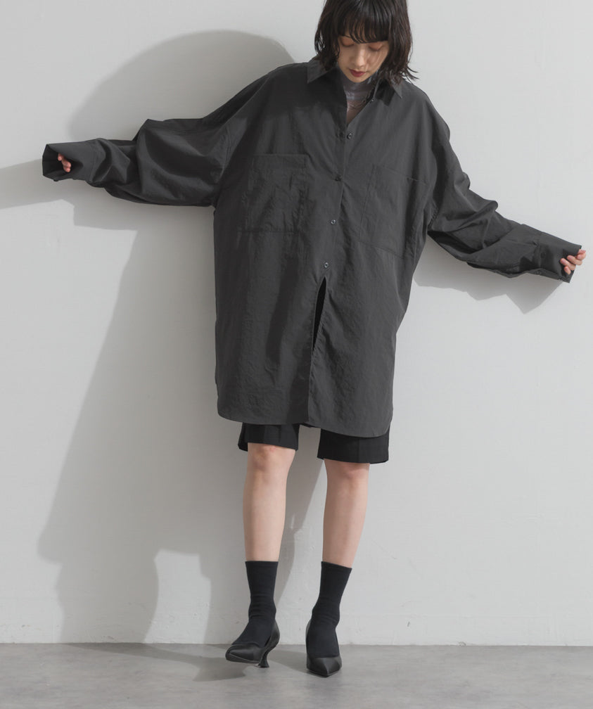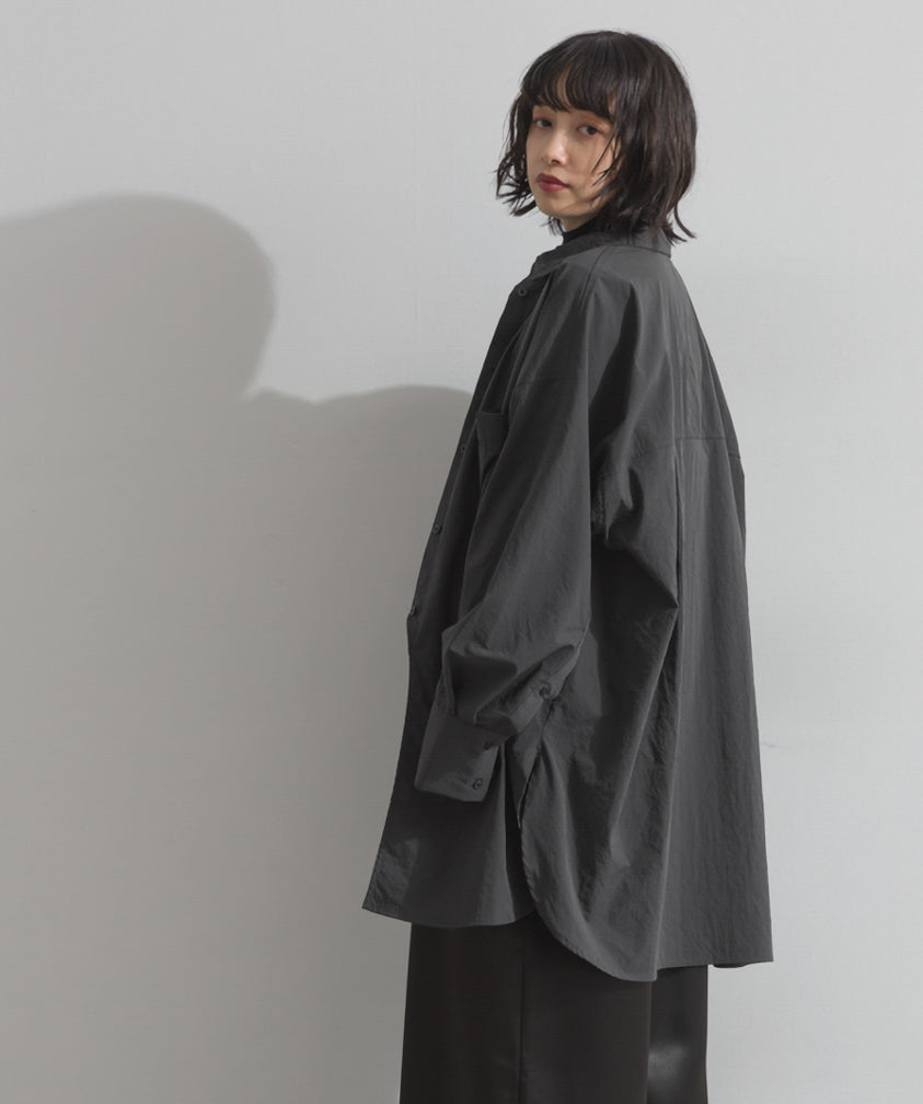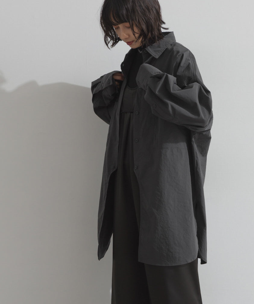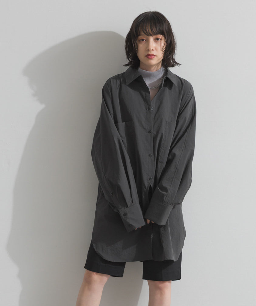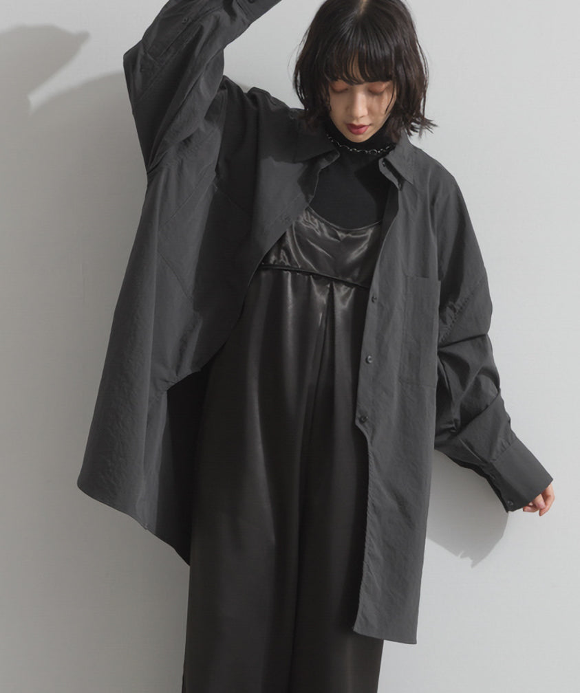 一枚でこなれる、絶妙シルエットのブロードオーバーシャツ。ハリ感のあるポリエステルブロード生地を使用した、ルーズなサイズ感が魅力のオーバーシャツ。ドロップショルダーとワイドスリーブが旬の抜け感を演出し、体のラインを自然にカバー。前後差のある裾デザインでアウトでもインでもバランスよく決まり、羽織としても使える汎用性の高さがポイント。デニムやスラックス、スカートなど、どんなボトムとも相性抜群の着回し力◎な1枚です。