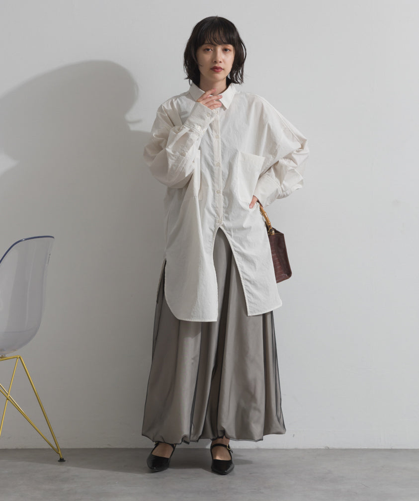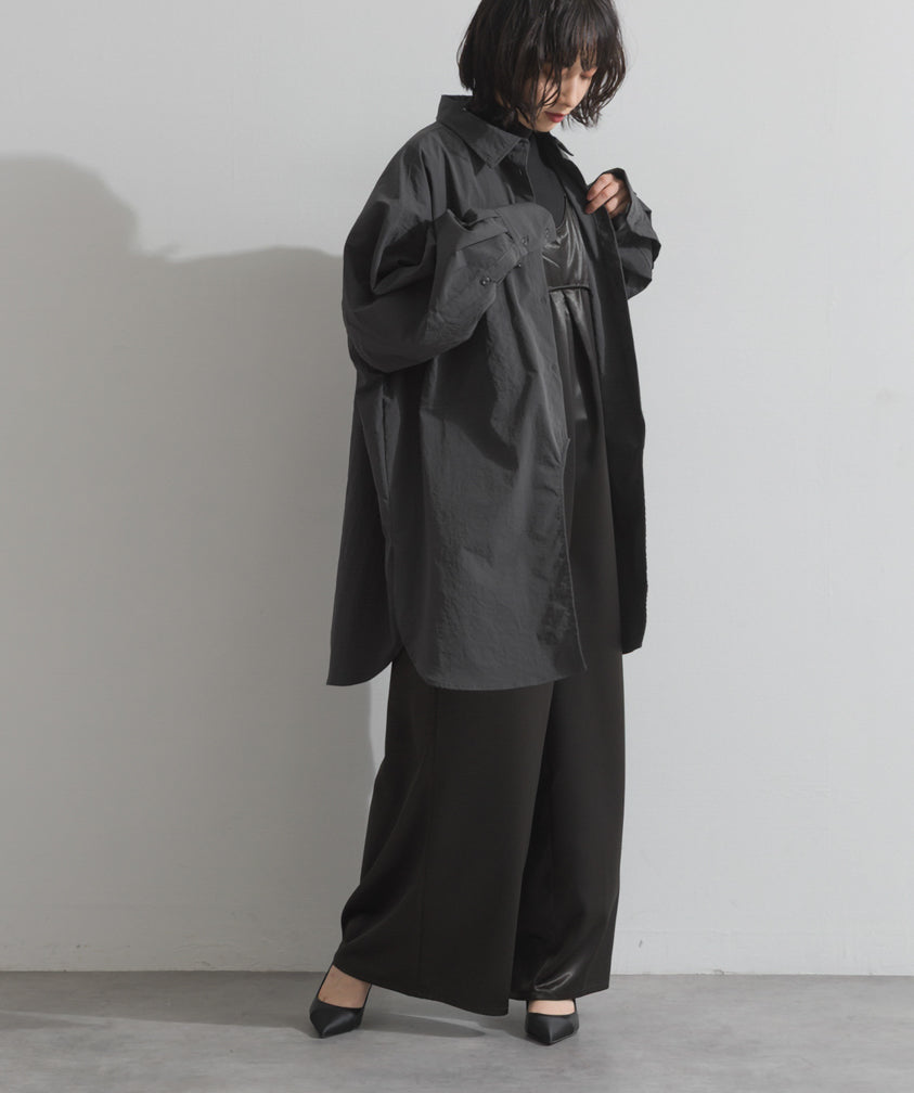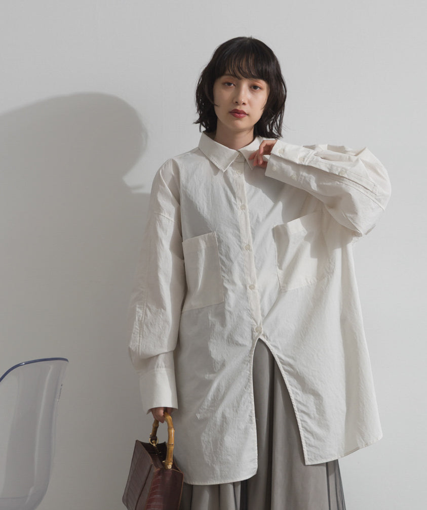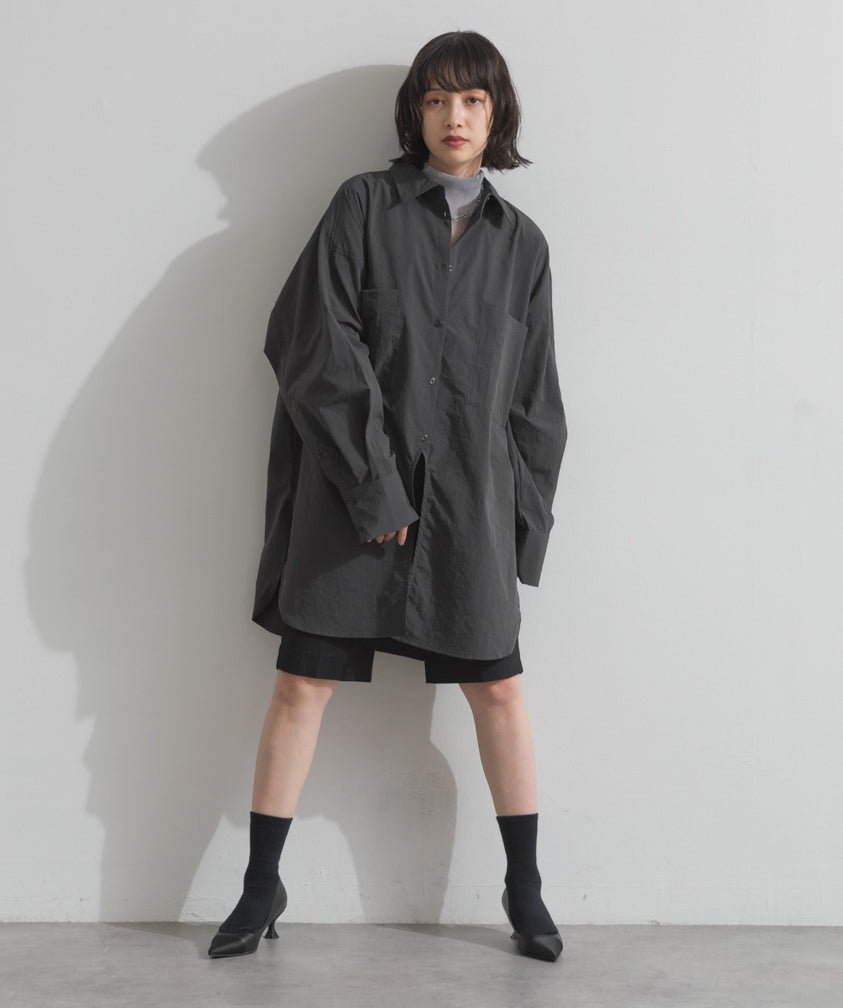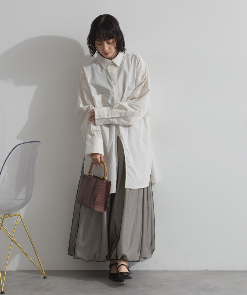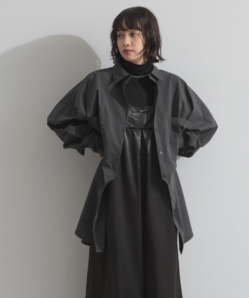 一枚でこなれる、絶妙シルエットのブロードオーバーシャツ。ハリ感のあるポリエステルブロード生地を使用した、ルーズなサイズ感が魅力のオーバーシャツ。ドロップショルダーとワイドスリーブが旬の抜け感を演出し、体のラインを自然にカバー。前後差のある裾デザインでアウトでもインでもバランスよく決まり、羽織としても使える汎用性の高さがポイント。デニムやスラックス、スカートなど、どんなボトムとも相性抜群の着回し力◎な1枚です。