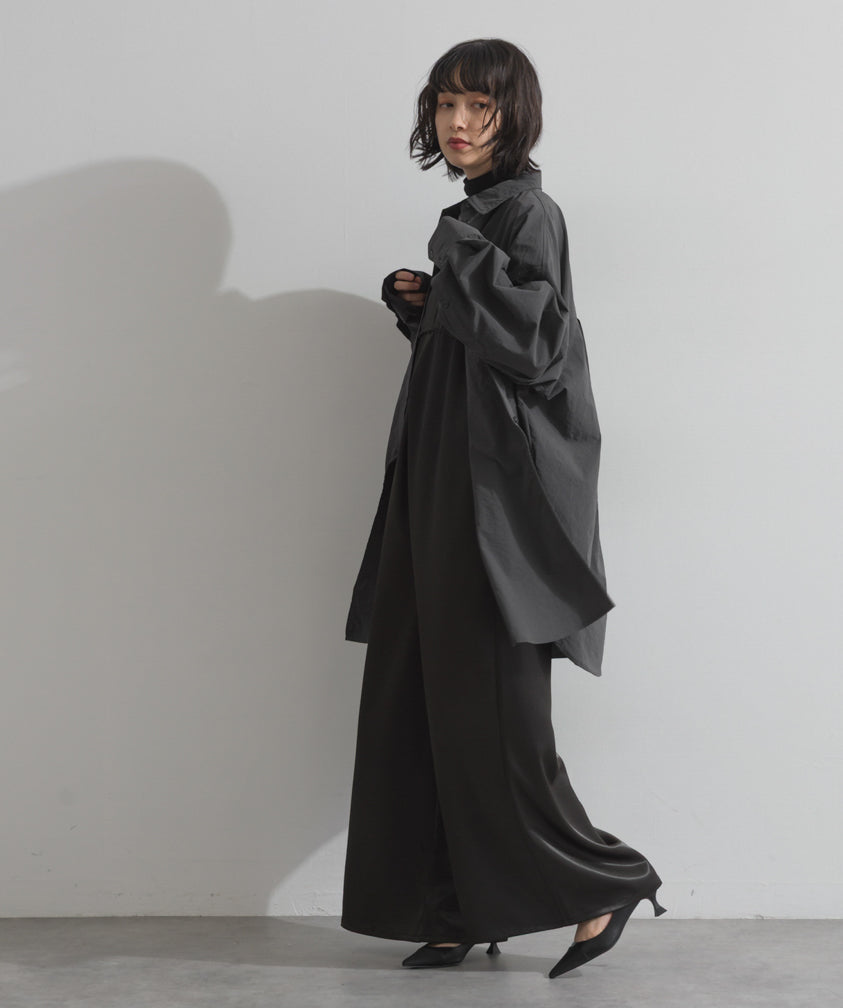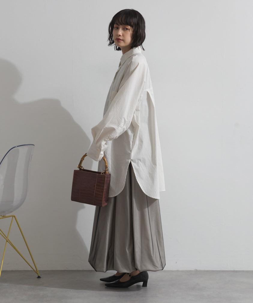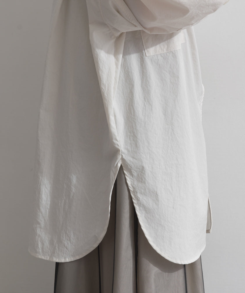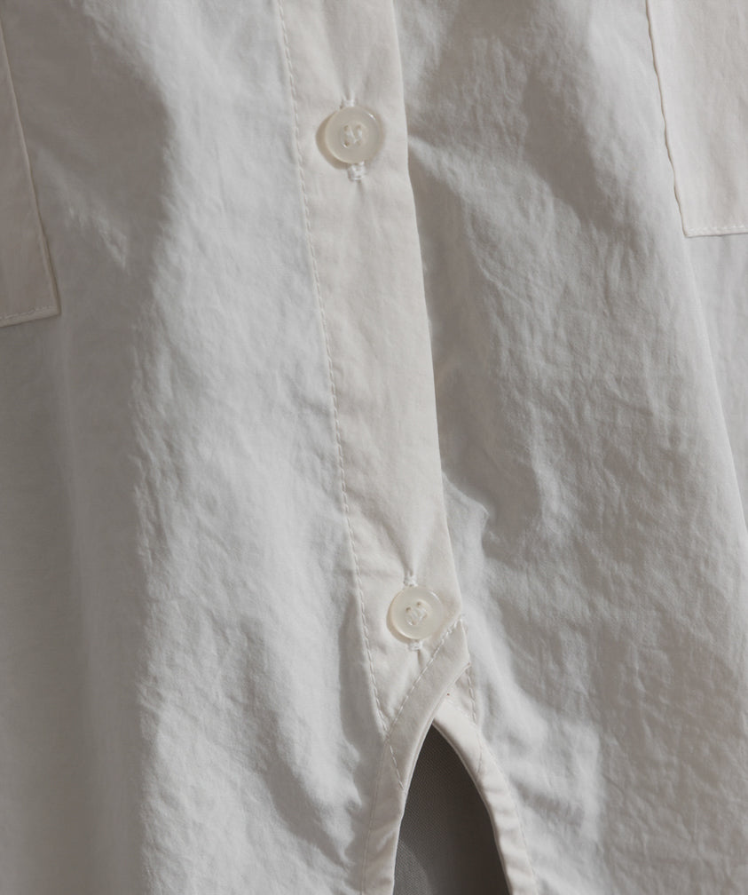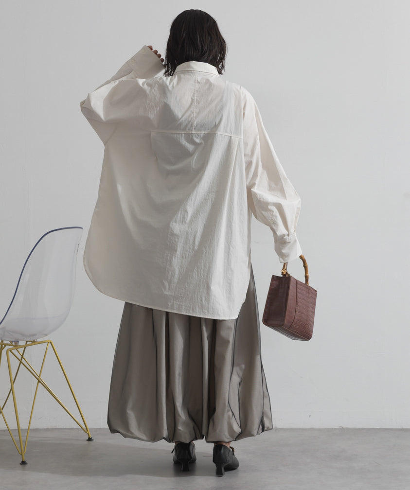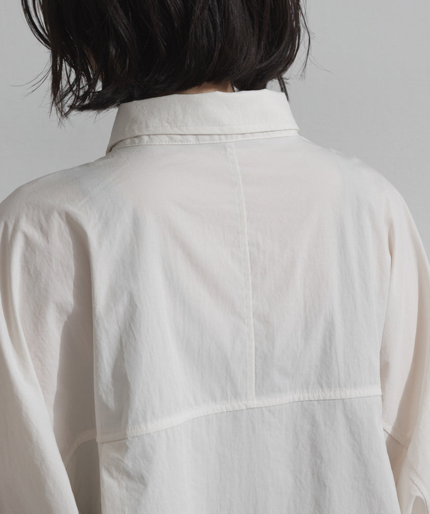 一枚でこなれる、絶妙シルエットのブロードオーバーシャツ。ハリ感のあるポリエステルブロード生地を使用した、ルーズなサイズ感が魅力のオーバーシャツ。ドロップショルダーとワイドスリーブが旬の抜け感を演出し、体のラインを自然にカバー。前後差のある裾デザインでアウトでもインでもバランスよく決まり、羽織としても使える汎用性の高さがポイント。デニムやスラックス、スカートなど、どんなボトムとも相性抜群の着回し力◎な1枚です。