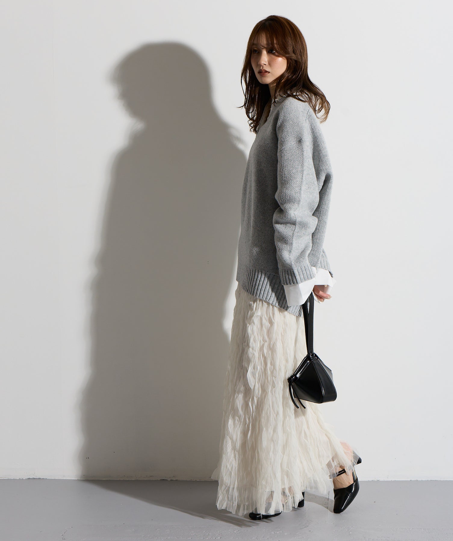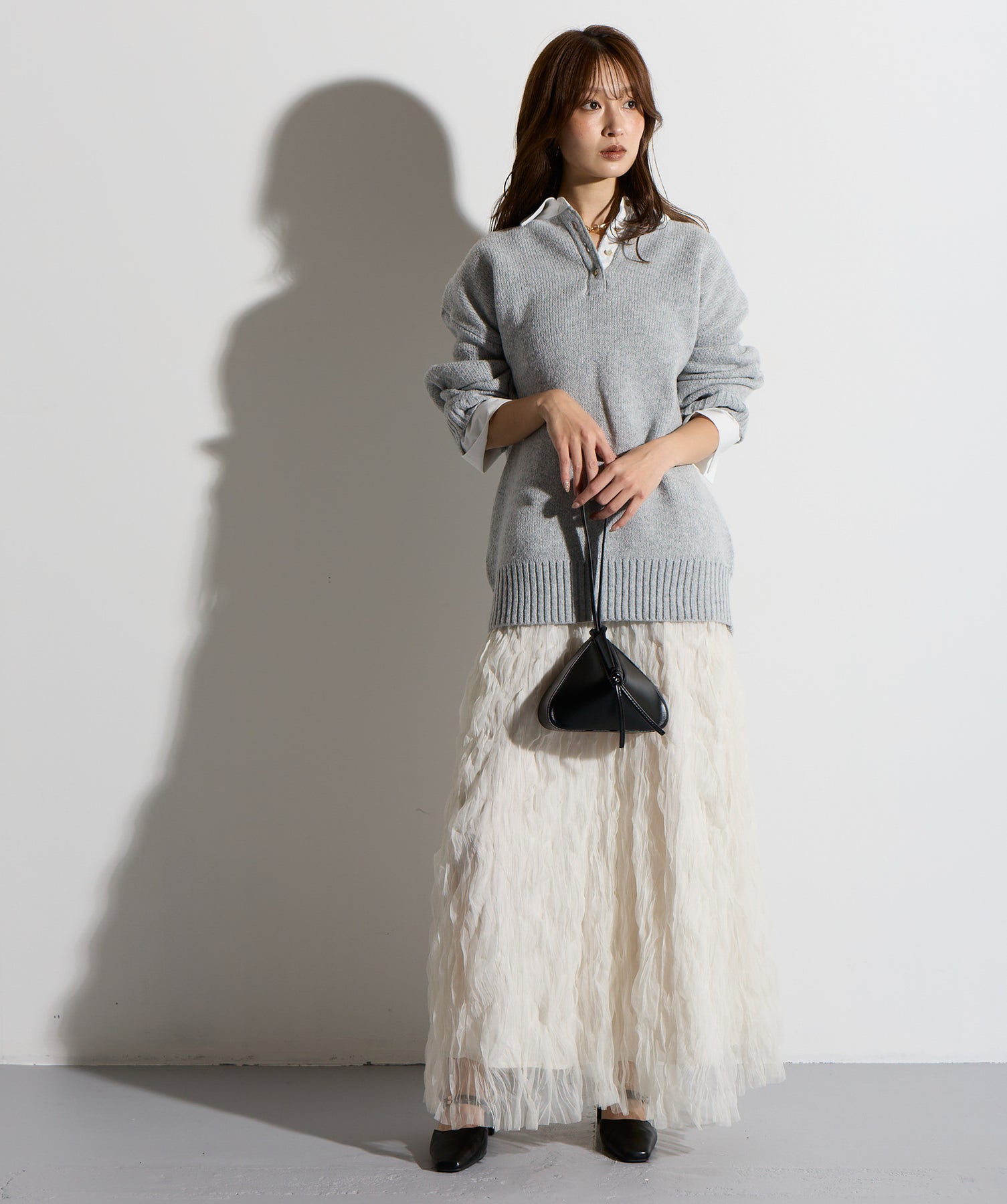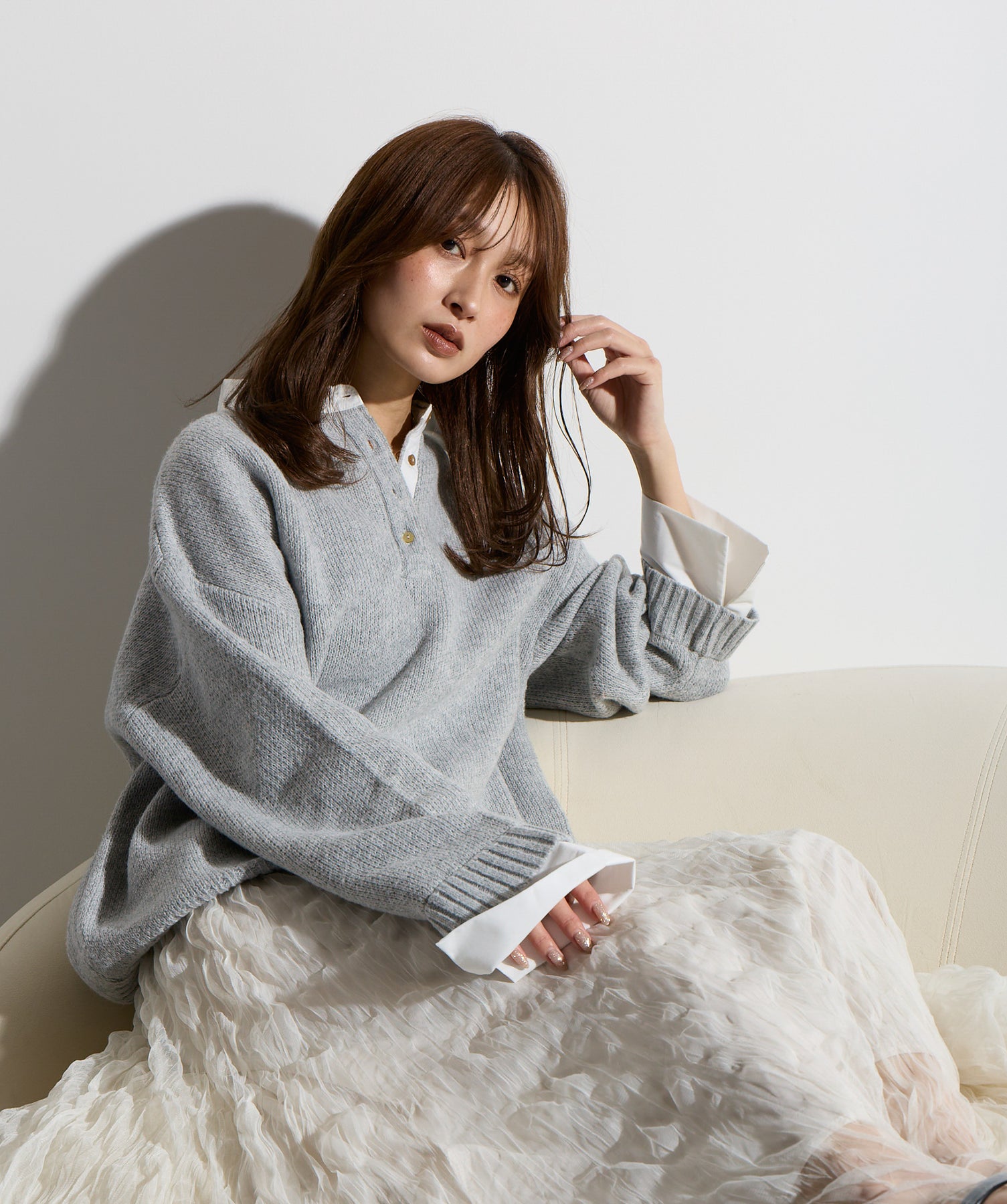 【SET】シャツドッキングニットポロ+ワッシャーレーススカート