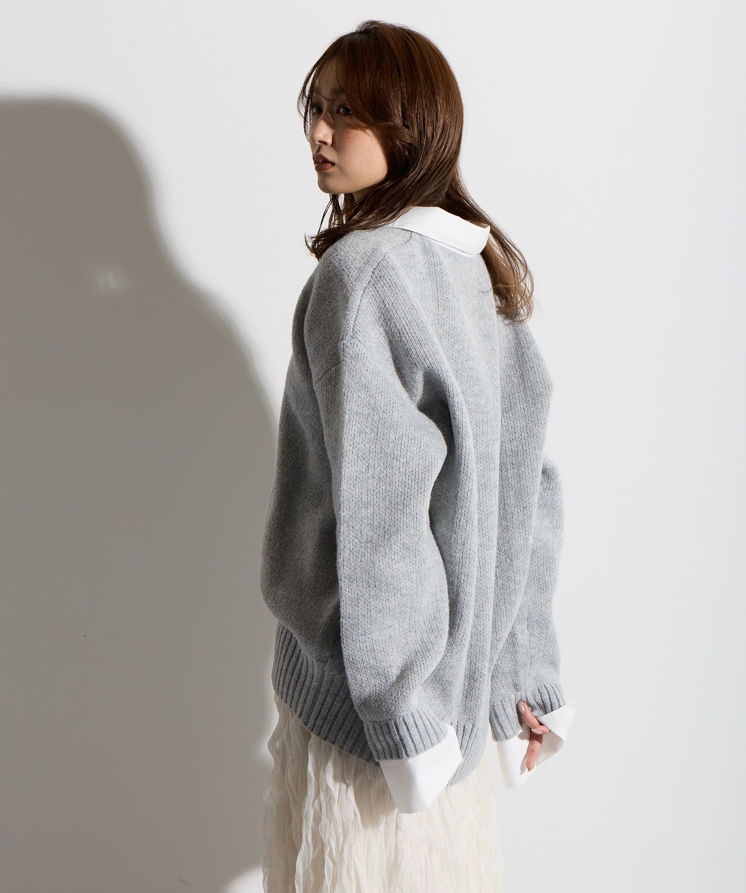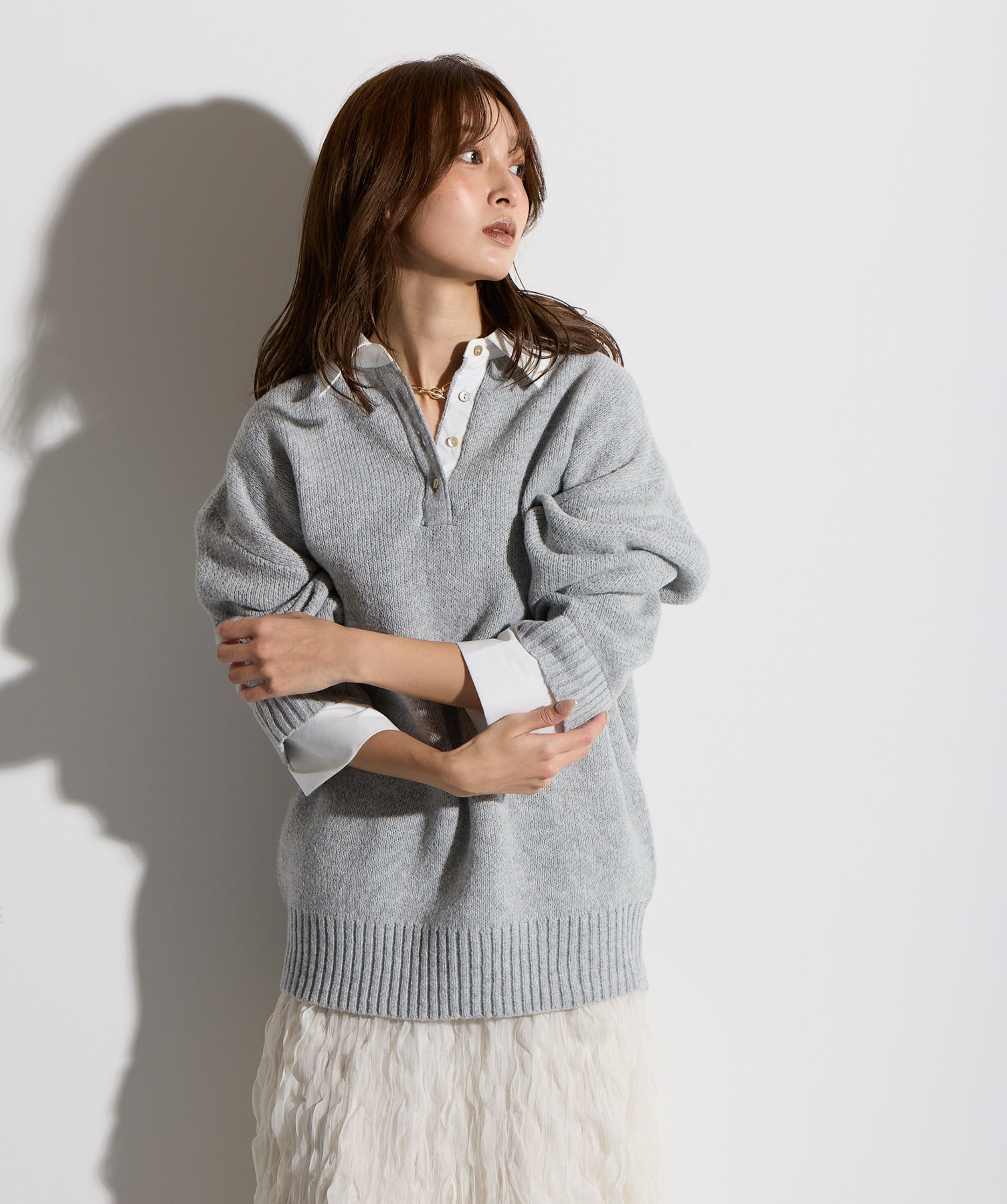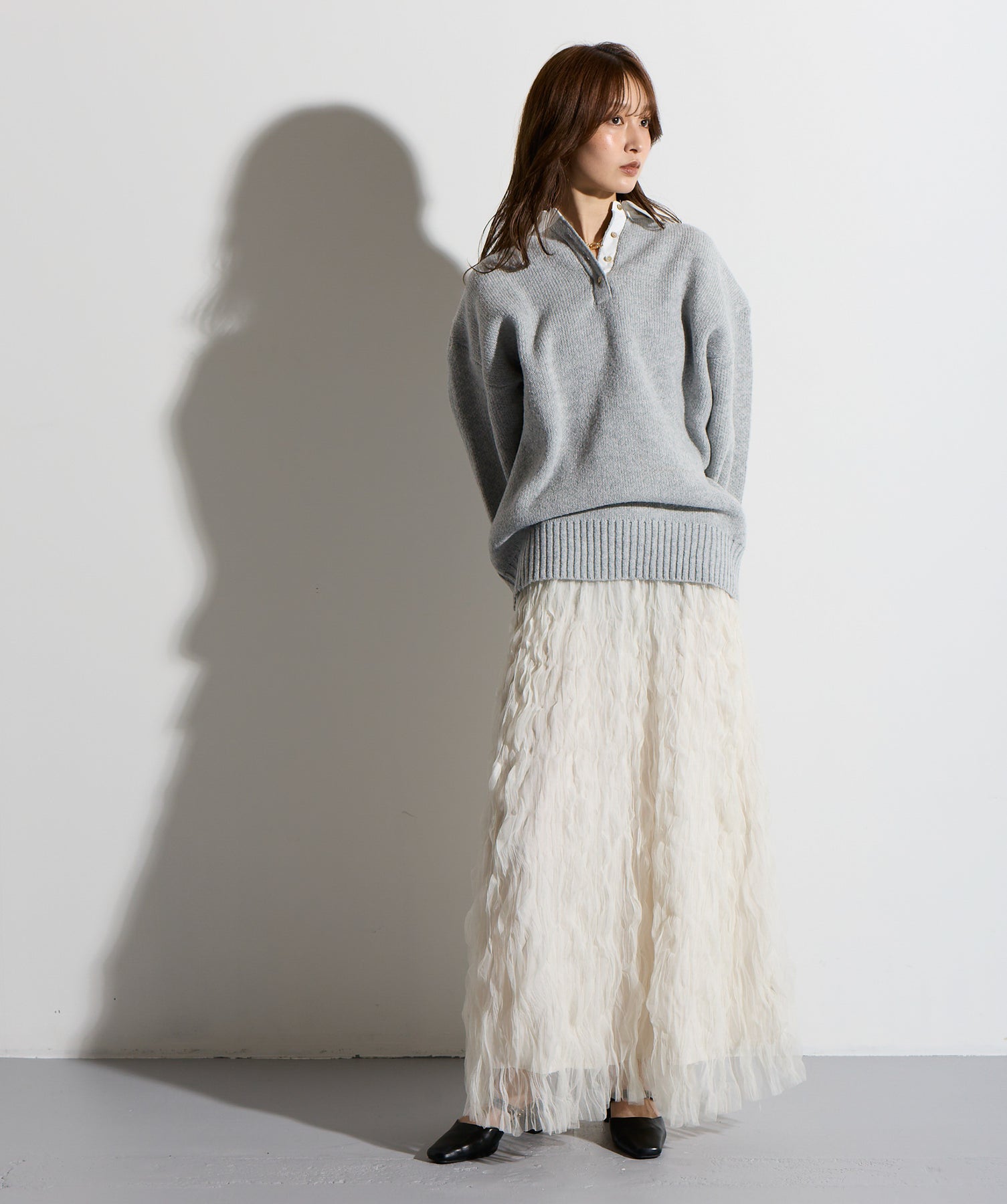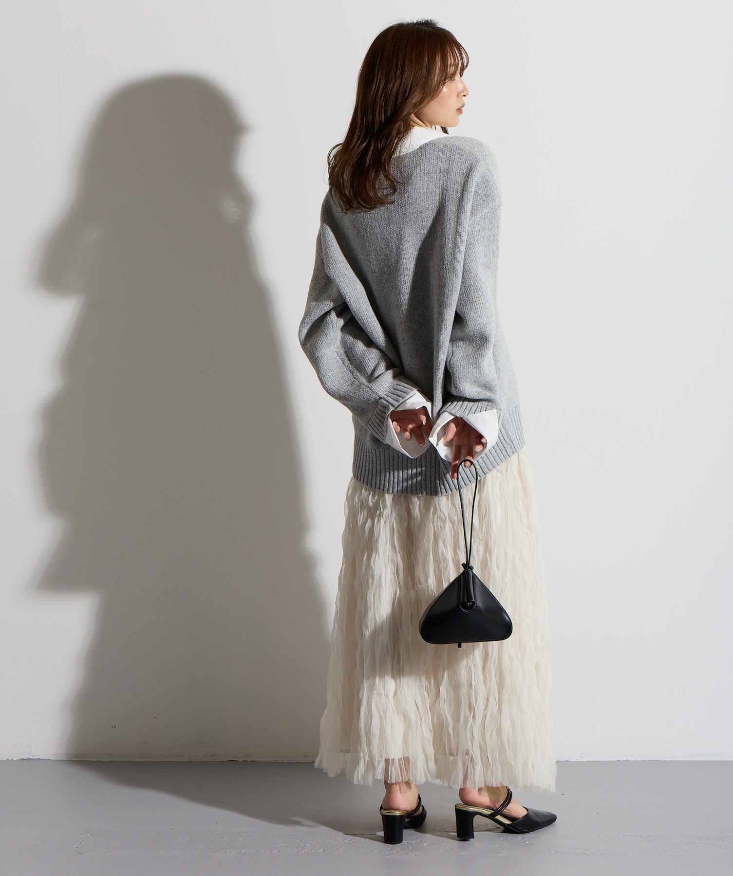 【SET】シャツドッキングニットポロ+ワッシャーレーススカート