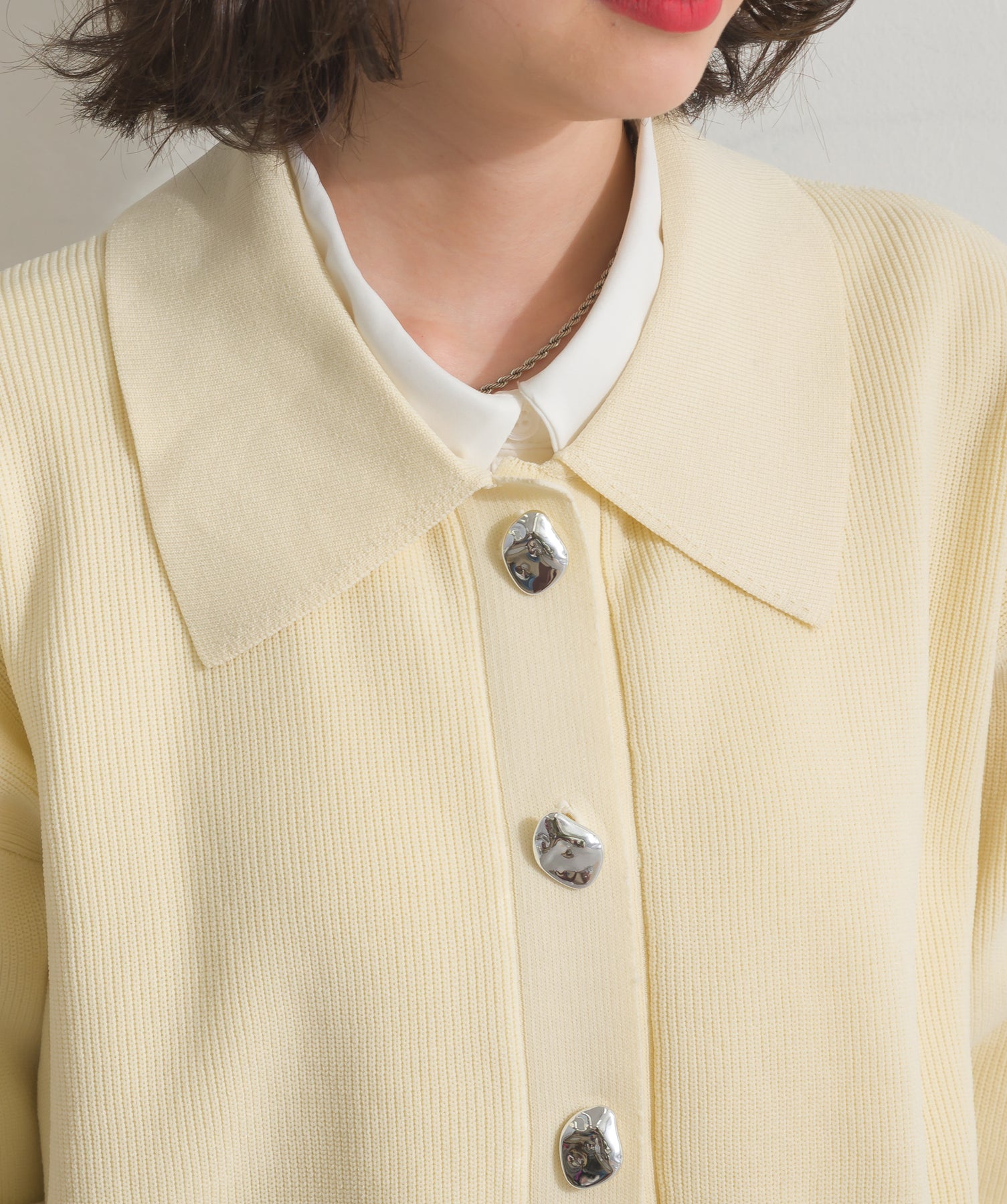 ◆ メタルボタン衿付きニットカーディガン