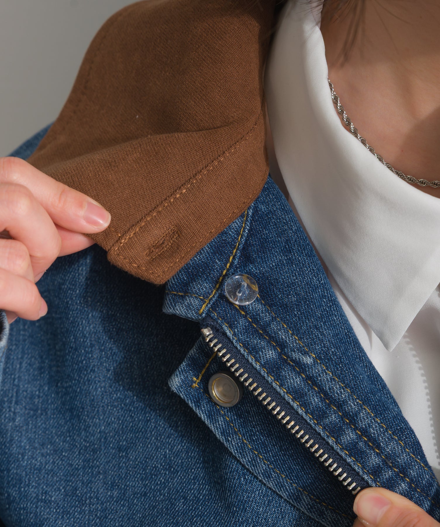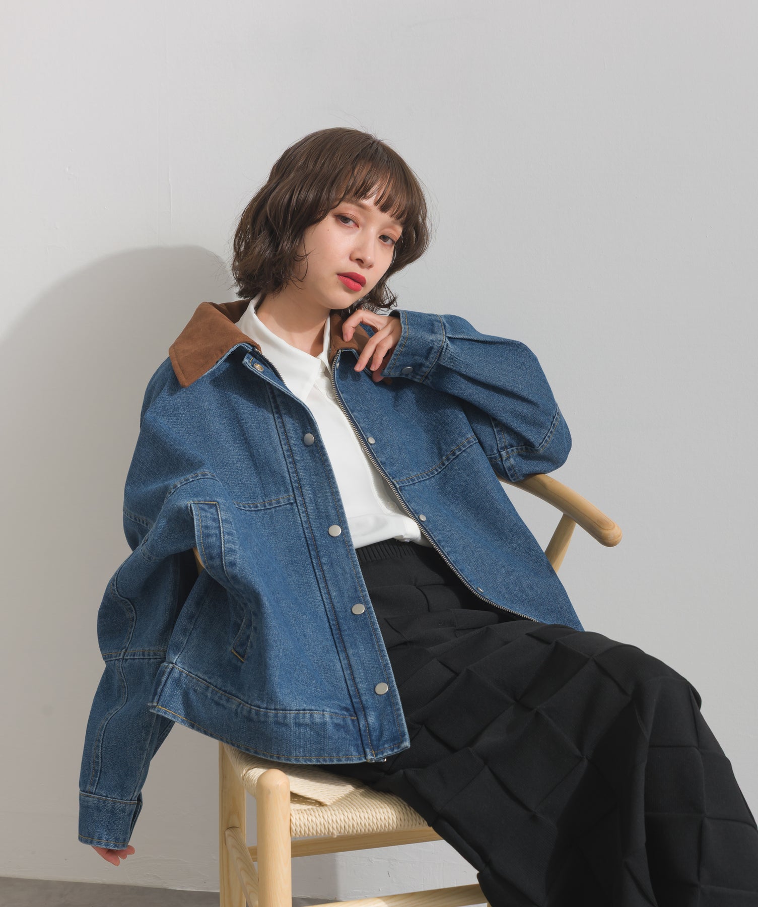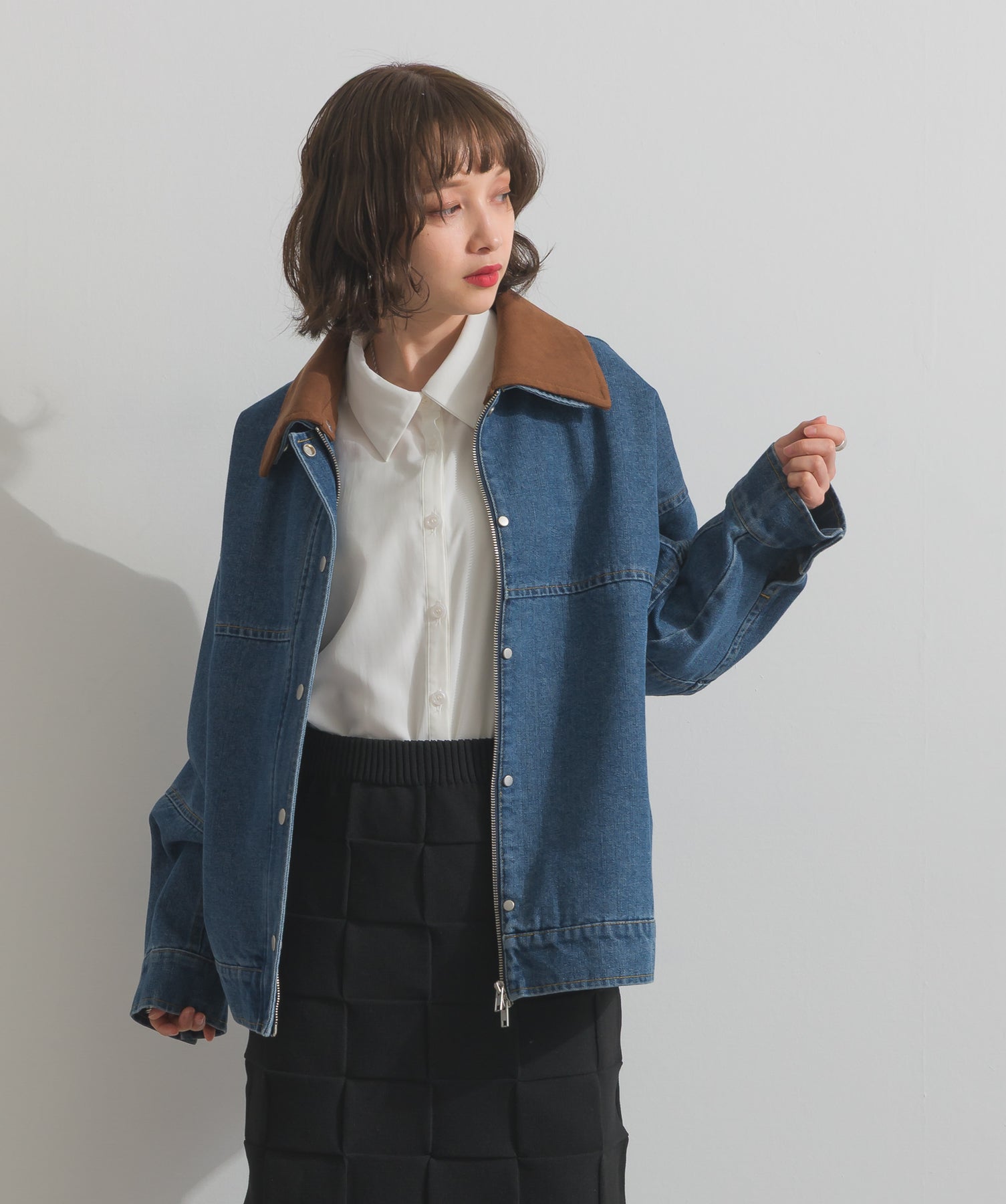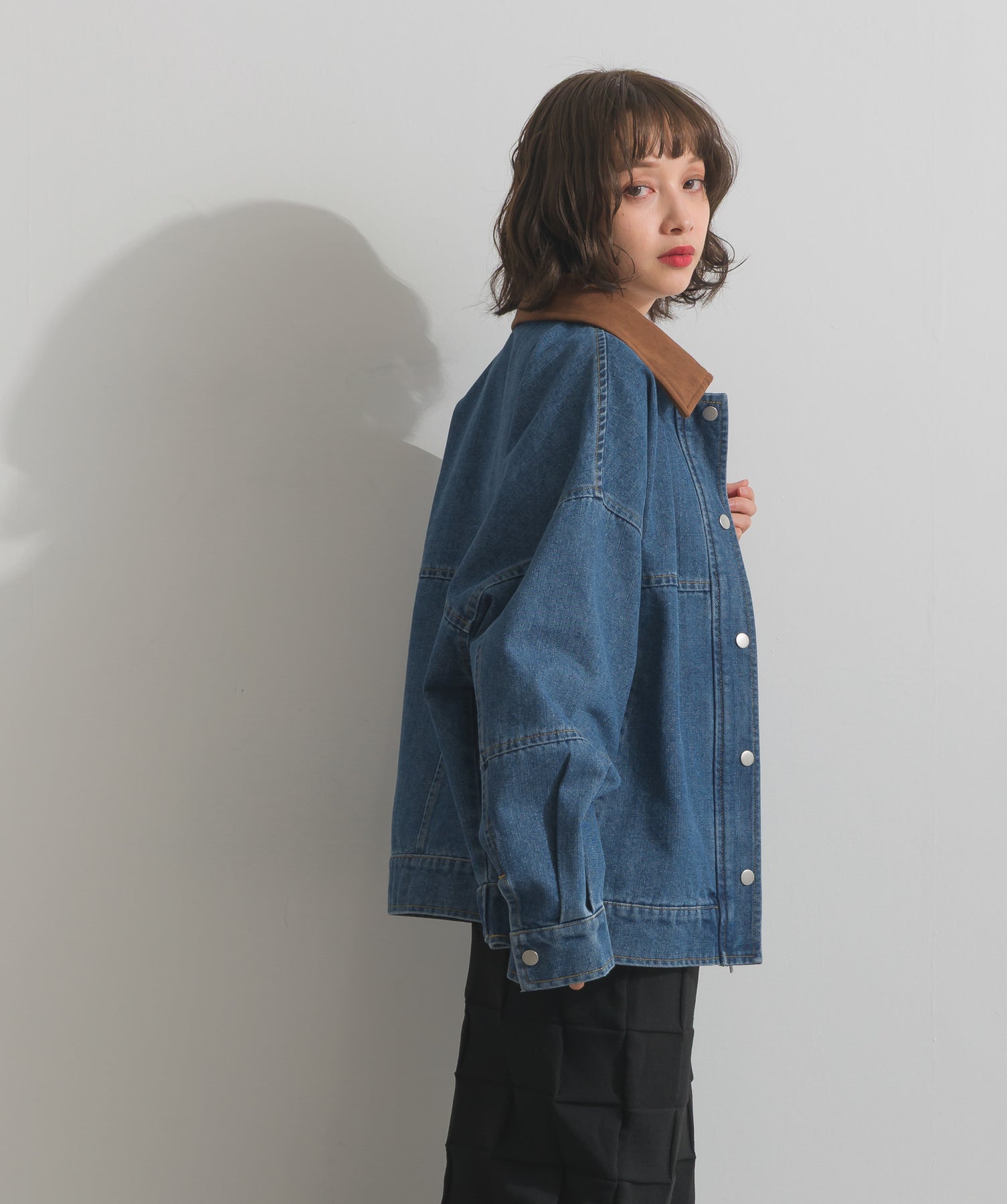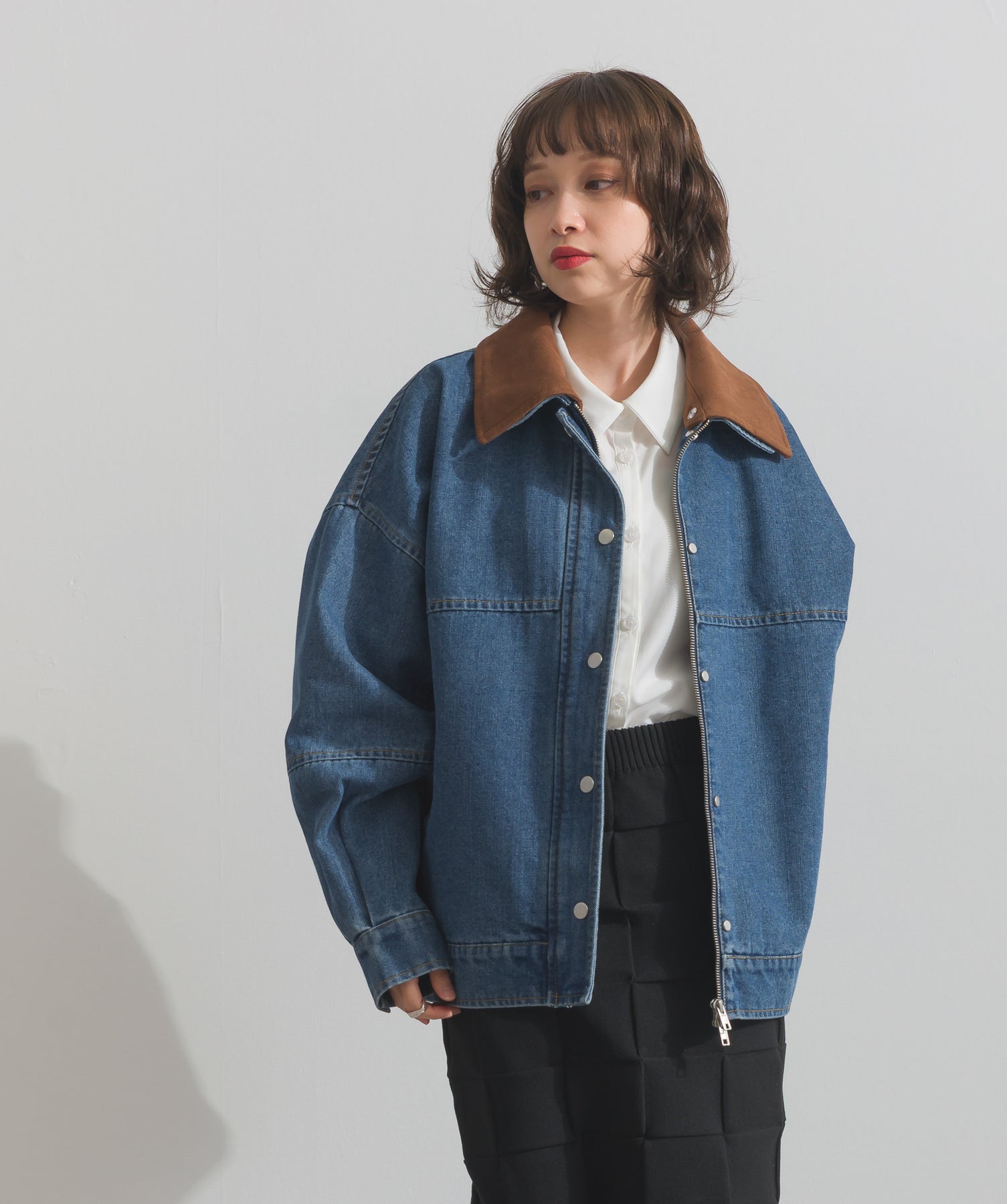 ◆ スウェード襟切替デニムブルゾン