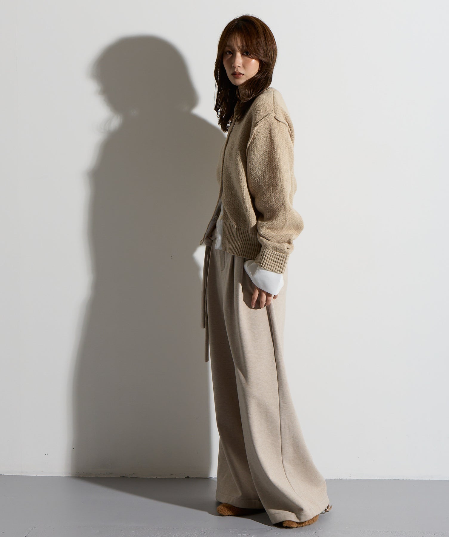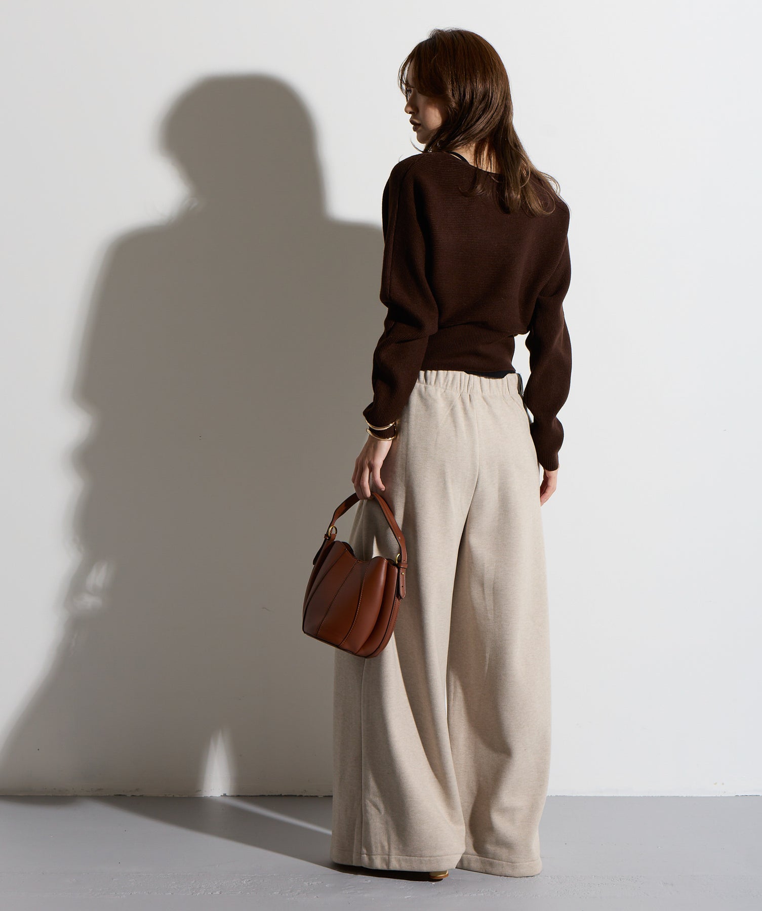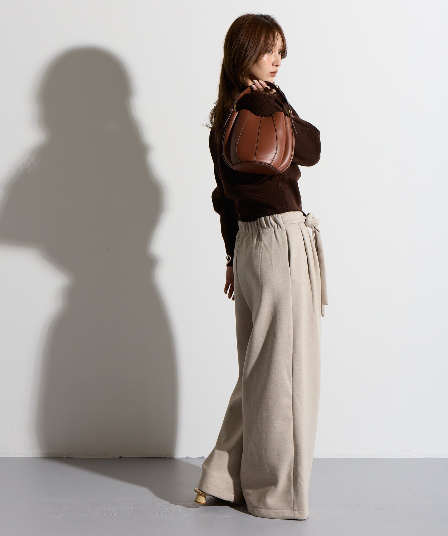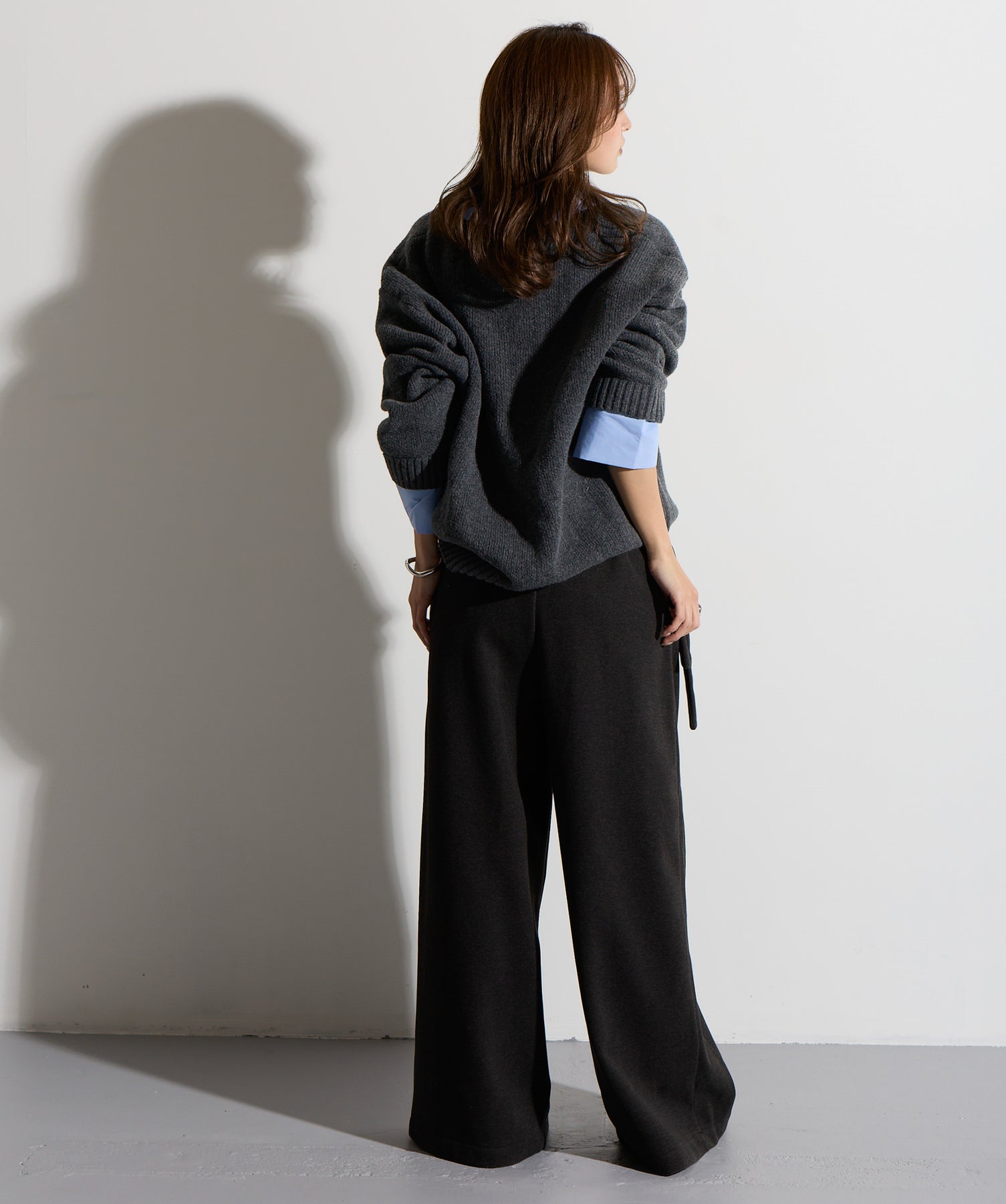 計算された抜け感と美シルエット。洗練モードなワイドパンツ。-material-落ち感のあるポンチライク素材を使用。 なめらかな肌触りと程よい厚みで、シルエットを美しくキープしながら快適な穿き心地を実現。シワになりにくく、ロングシーズン活躍できるイージーケア素材です。-design-ウエストのラップ風ディテールがアクセントになった、ミニマルながら印象的なデザイン。やや高めのウエスト位置とタック入りのワイドシルエットが脚を長く見せ、スタイルアップを叶えます。後ろウエストはゴム仕様でリラクシーな穿き心地。シャープにも、ラフにも、幅広いトップスと好相性な万能パンツです。