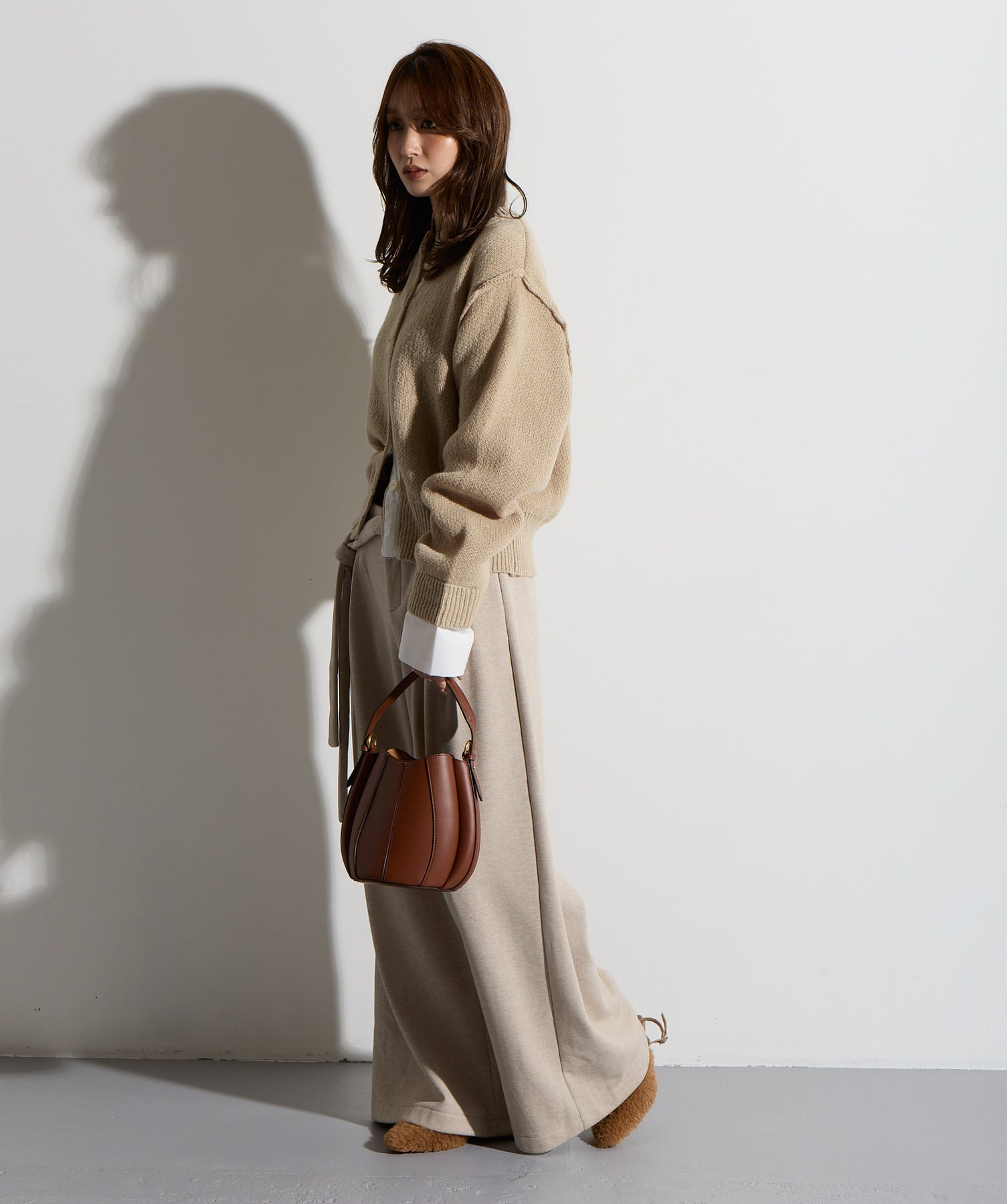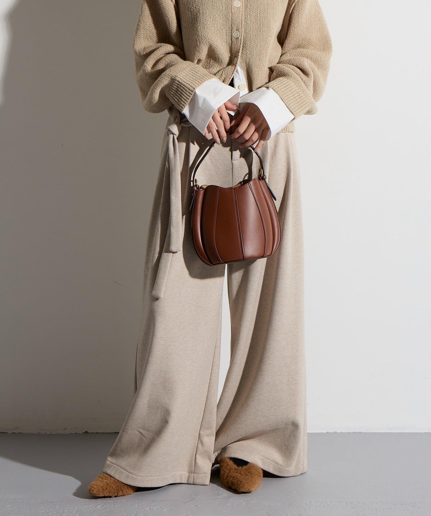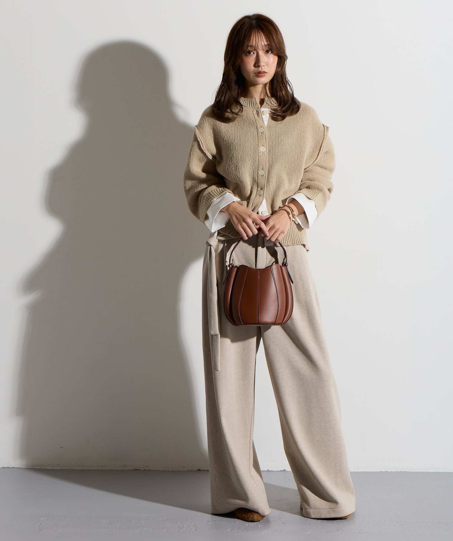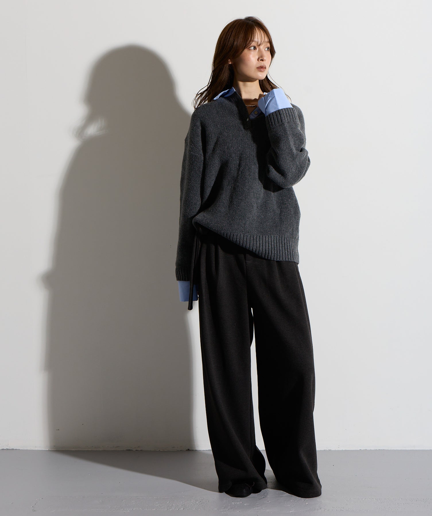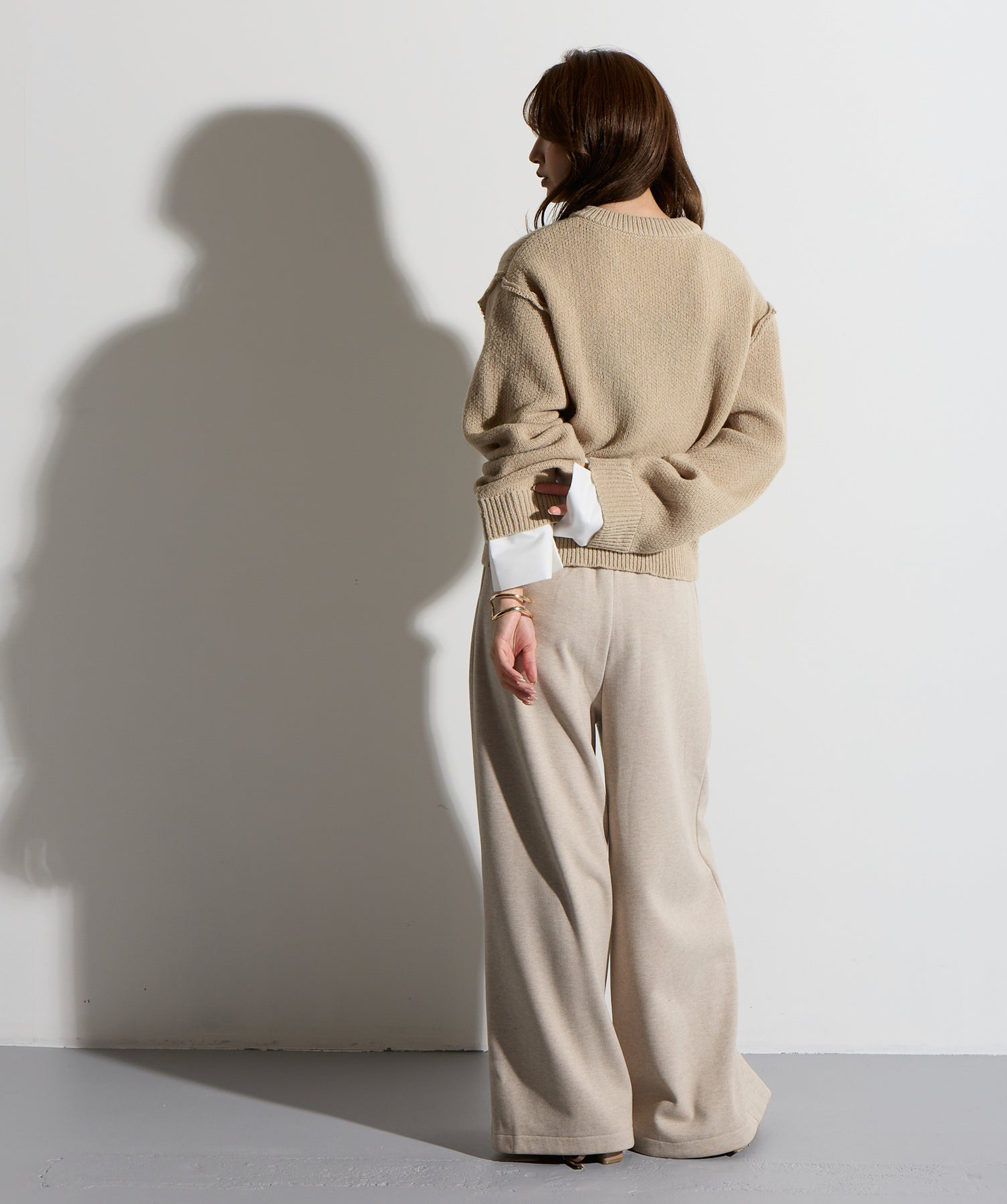 計算された抜け感と美シルエット。洗練モードなワイドパンツ。-material-落ち感のあるポンチライク素材を使用。 なめらかな肌触りと程よい厚みで、シルエットを美しくキープしながら快適な穿き心地を実現。シワになりにくく、ロングシーズン活躍できるイージーケア素材です。-design-ウエストのラップ風ディテールがアクセントになった、ミニマルながら印象的なデザイン。やや高めのウエスト位置とタック入りのワイドシルエットが脚を長く見せ、スタイルアップを叶えます。後ろウエストはゴム仕様でリラクシーな穿き心地。シャープにも、ラフにも、幅広いトップスと好相性な万能パンツです。