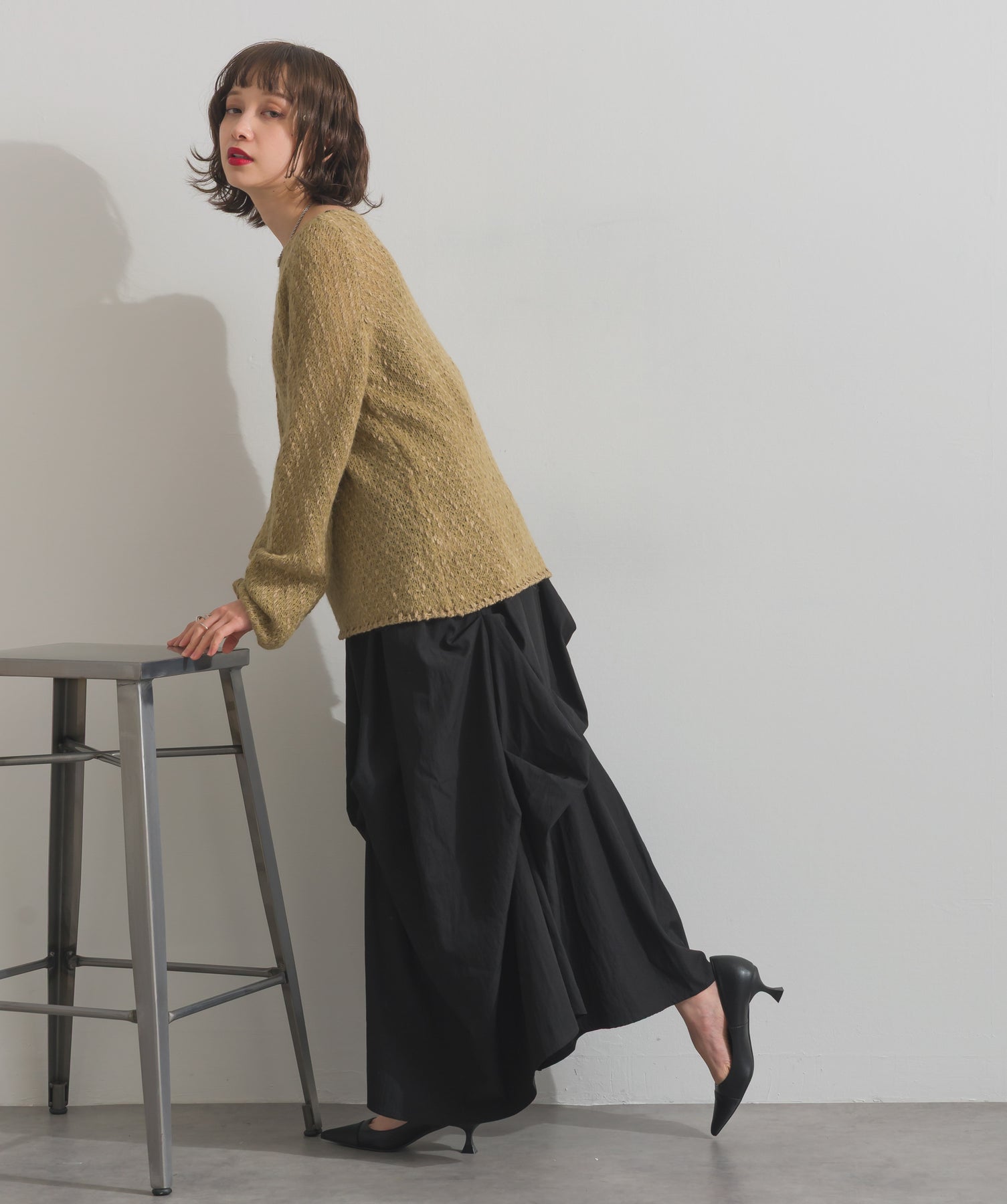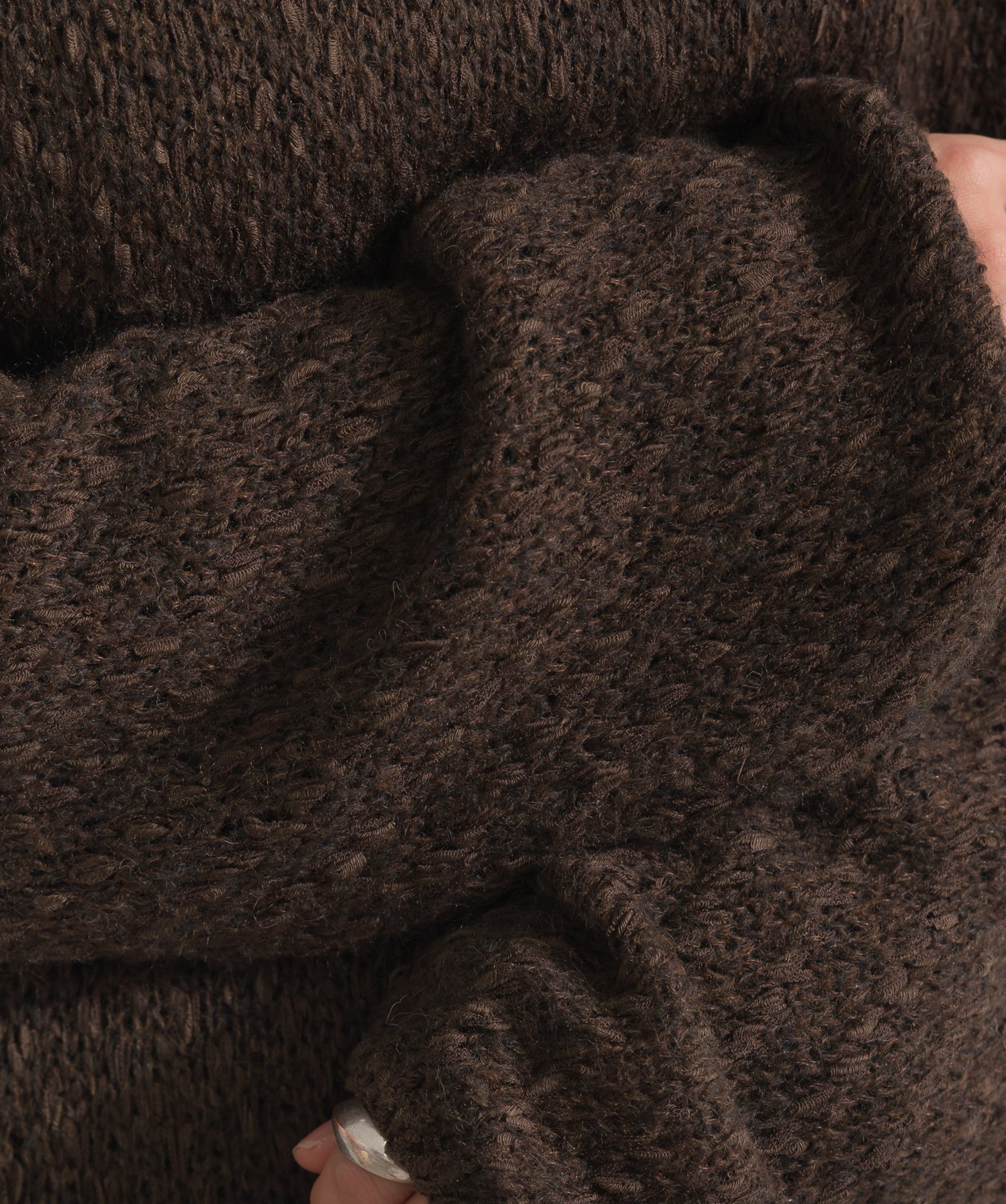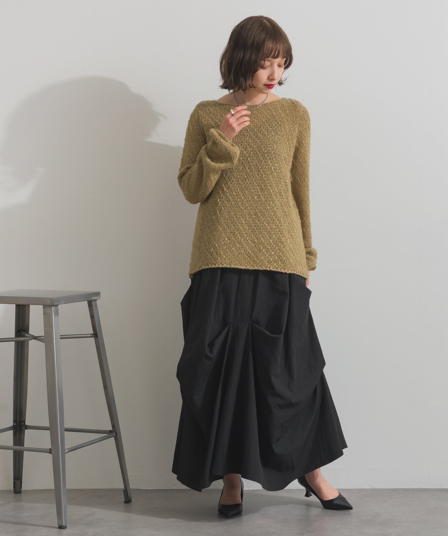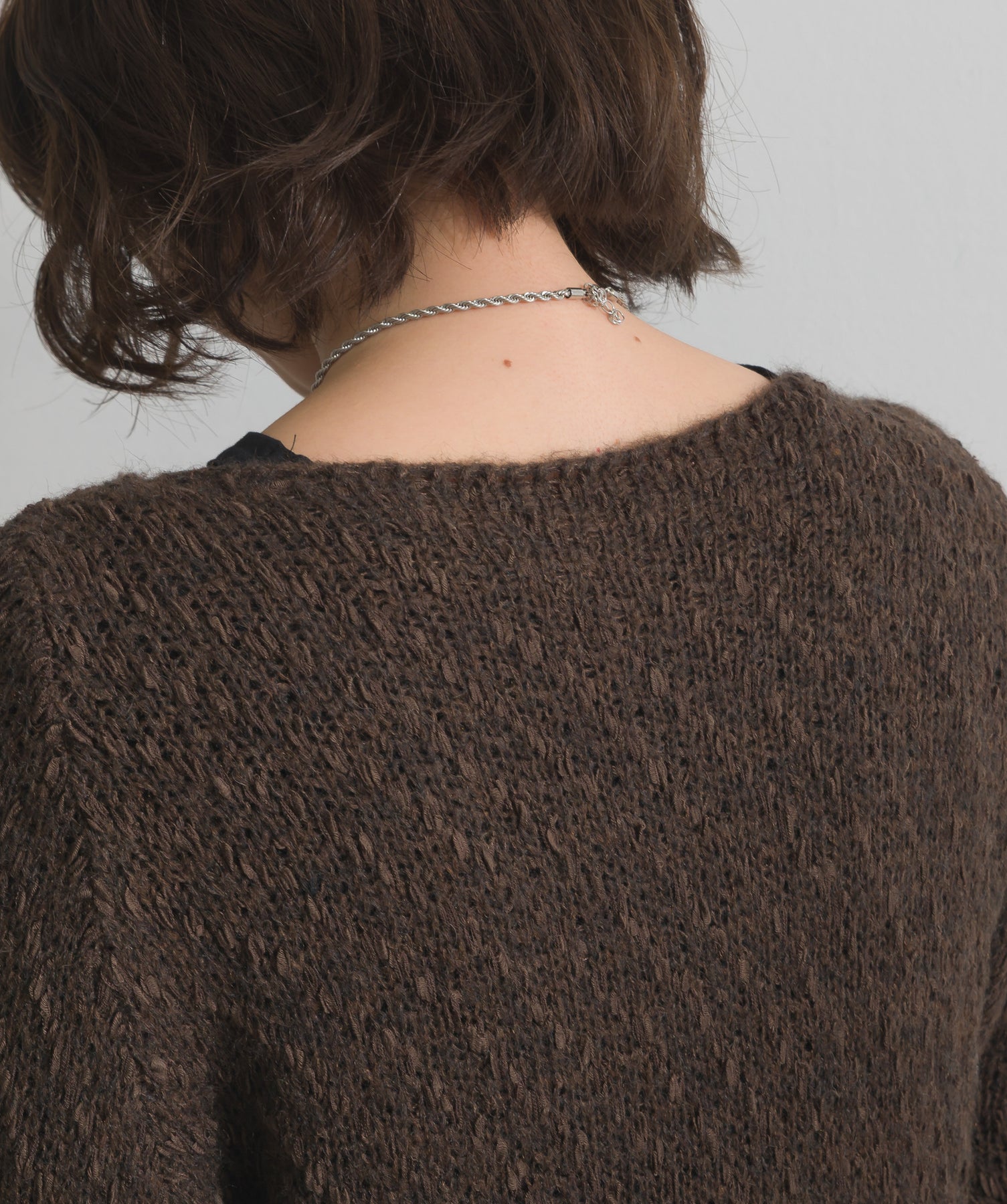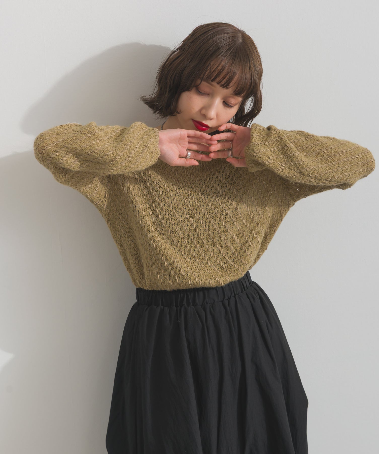 絶妙なミックス感で魅せる、表情豊かな主役ニット。異素材が織りなす立体感と、抜け感シルエットが今の気分にぴったり。シンプルなのに目を惹く、感度高めのニットトップス。-material-太さや質感の異なる数種の糸をミックスした表情豊かなブークレヤーンを使用。ふっくらとした厚みと柔らかな肌触りが心地よく、着心地とデザイン性を両立。見た目に立体感があり、シンプルなボトムスにも映える素材感が魅力です。-design-ややルーズなシルエットにドロップショルダーを組み合わせた、リラクシーかつこなれた印象のデザイン。程よく開いたネックラインが顔まわりをすっきり見せ、ボリュームスリーブが女性らしい抜け感を演出。カラーはベーシックからニュアンス系まで揃い、着こなし次第でフェミニンにもモードにも対応可能。