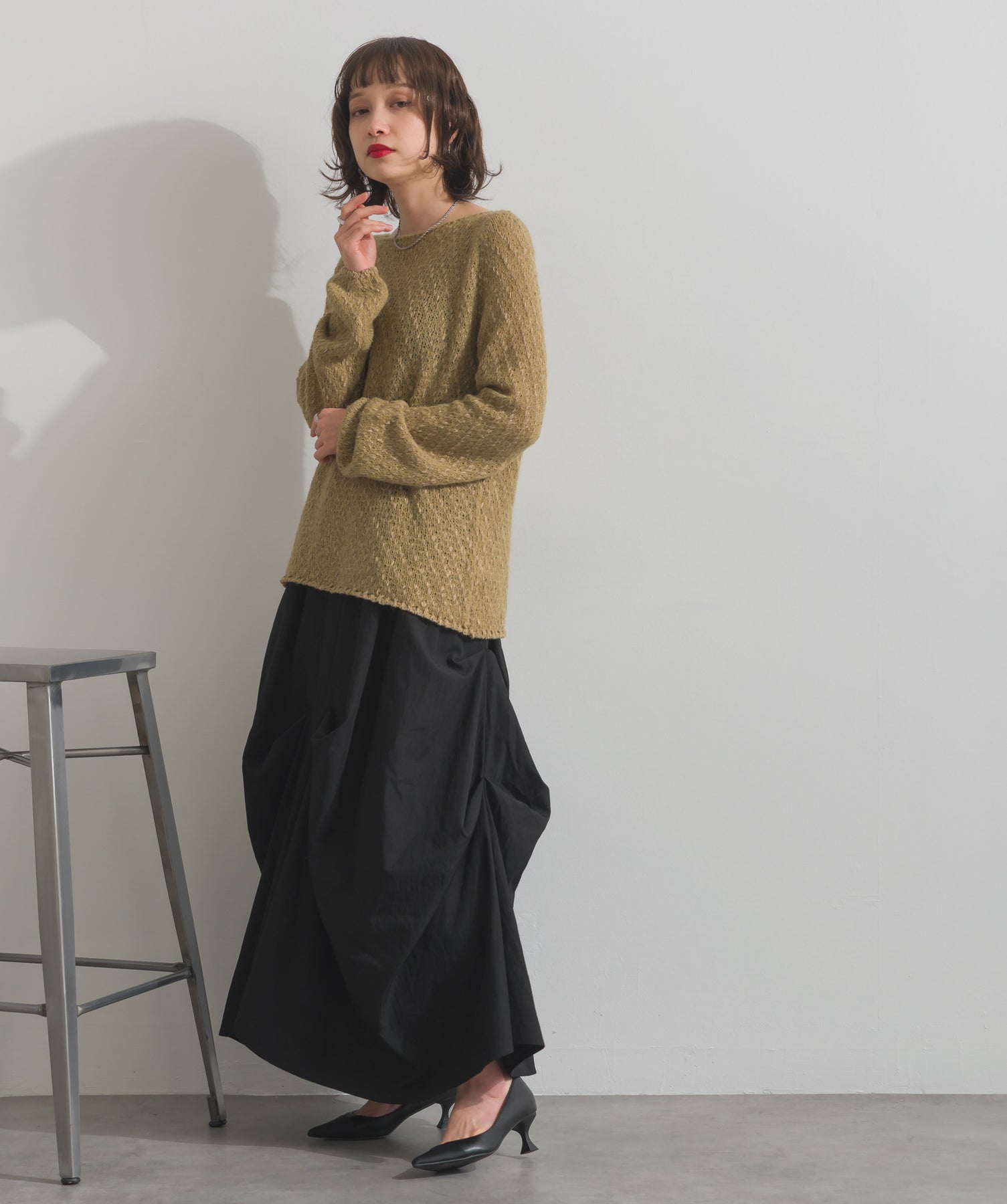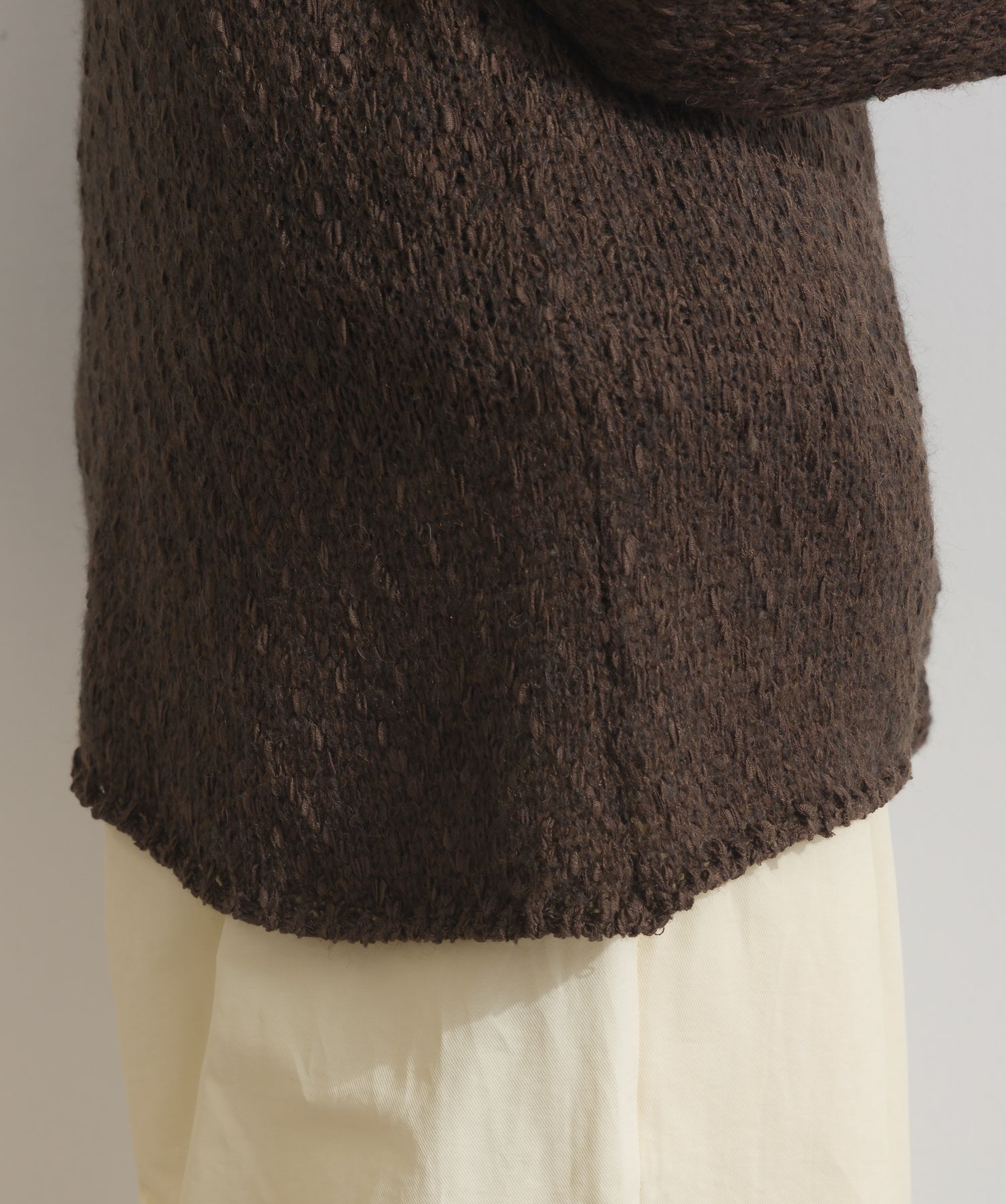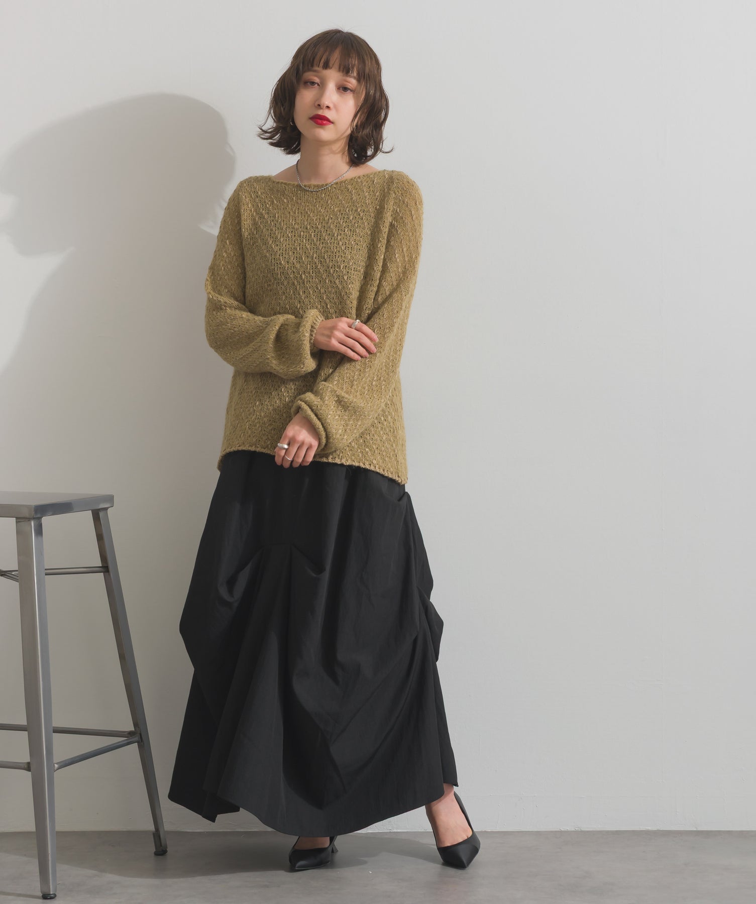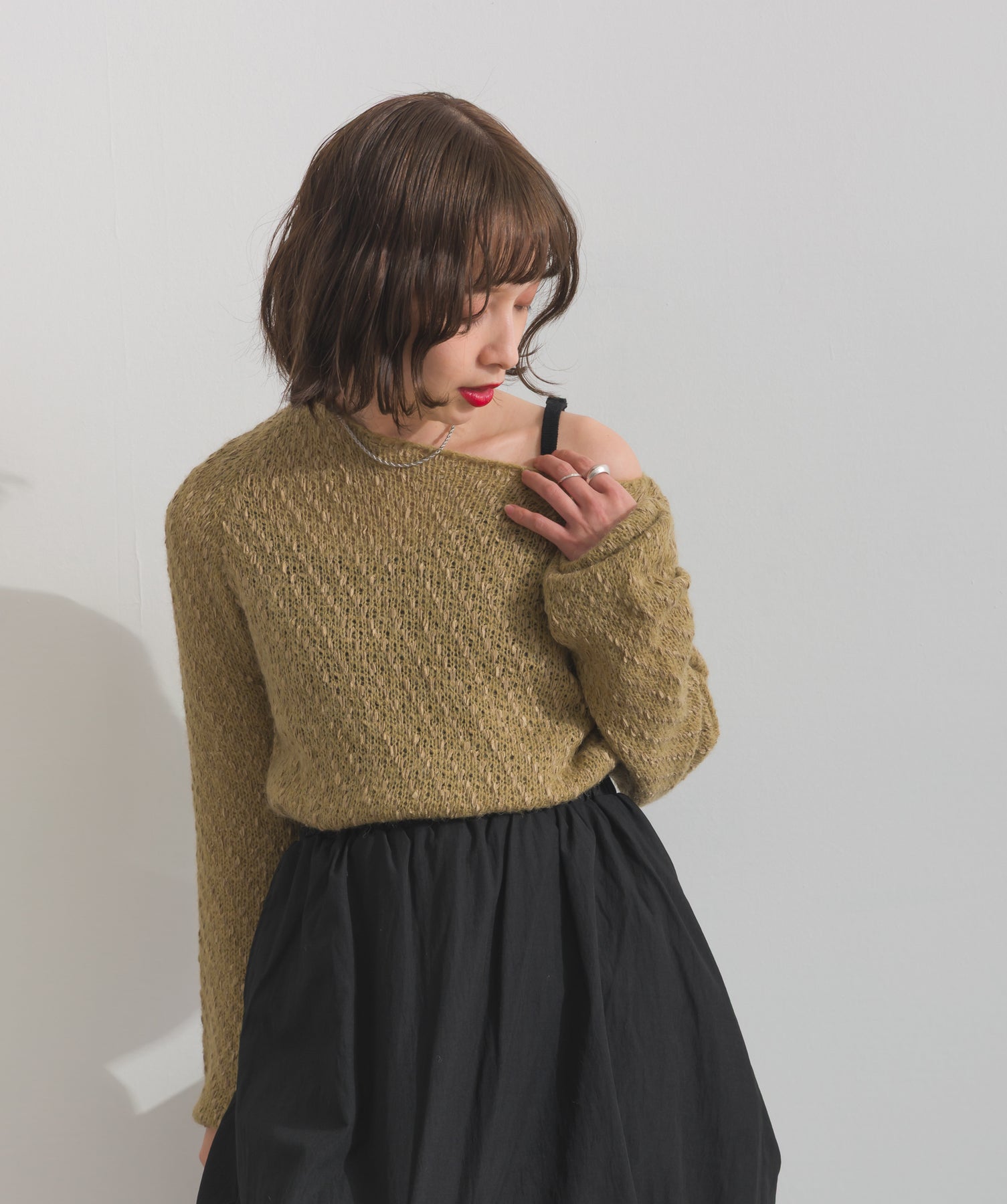 絶妙なミックス感で魅せる、表情豊かな主役ニット。異素材が織りなす立体感と、抜け感シルエットが今の気分にぴったり。シンプルなのに目を惹く、感度高めのニットトップス。-material-太さや質感の異なる数種の糸をミックスした表情豊かなブークレヤーンを使用。ふっくらとした厚みと柔らかな肌触りが心地よく、着心地とデザイン性を両立。見た目に立体感があり、シンプルなボトムスにも映える素材感が魅力です。-design-ややルーズなシルエットにドロップショルダーを組み合わせた、リラクシーかつこなれた印象のデザイン。程よく開いたネックラインが顔まわりをすっきり見せ、ボリュームスリーブが女性らしい抜け感を演出。カラーはベーシックからニュアンス系まで揃い、着こなし次第でフェミニンにもモードにも対応可能。