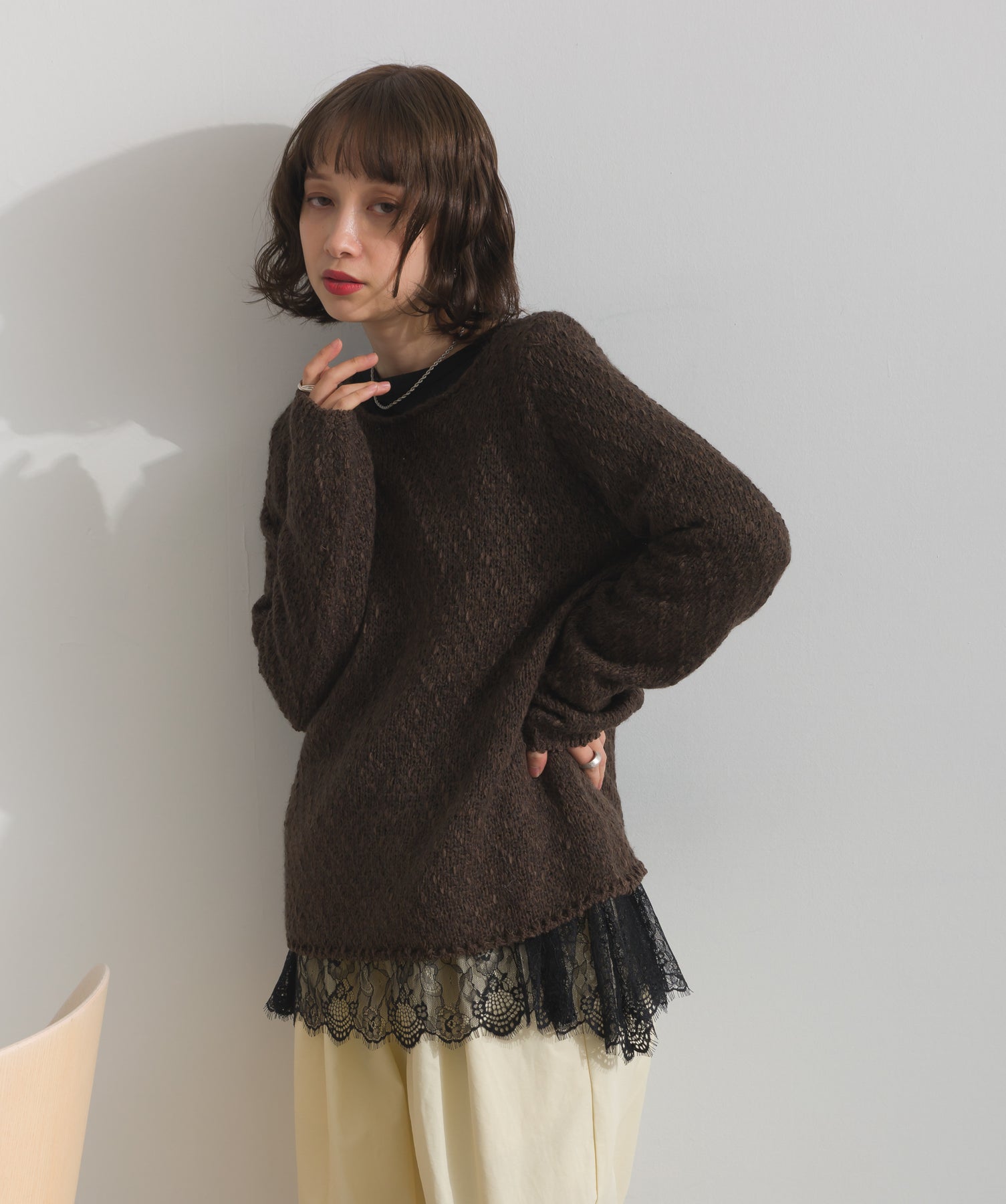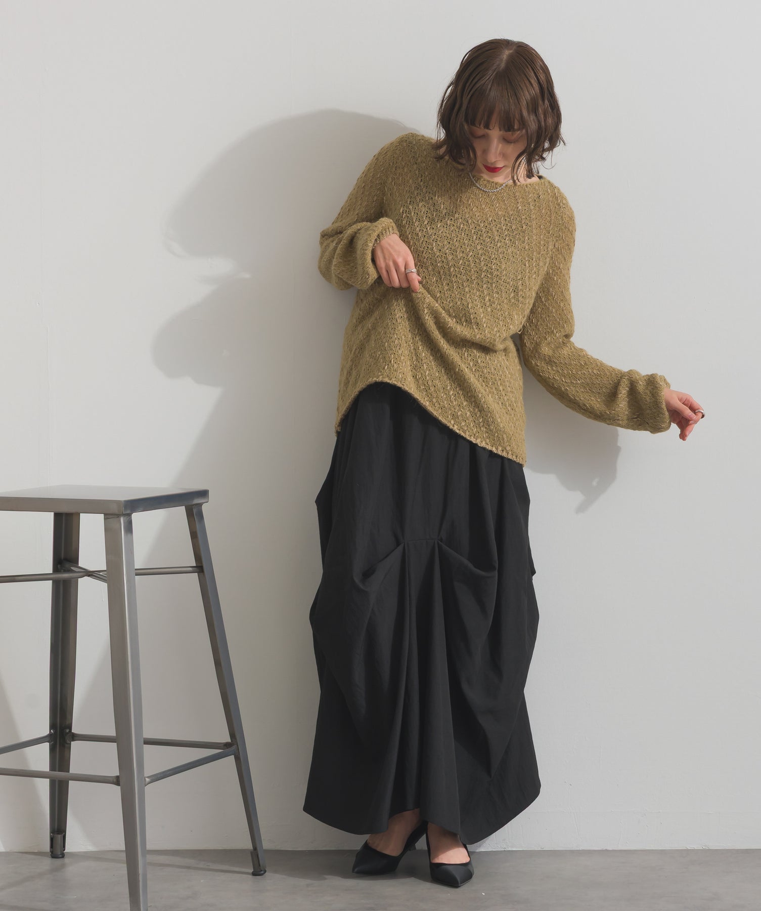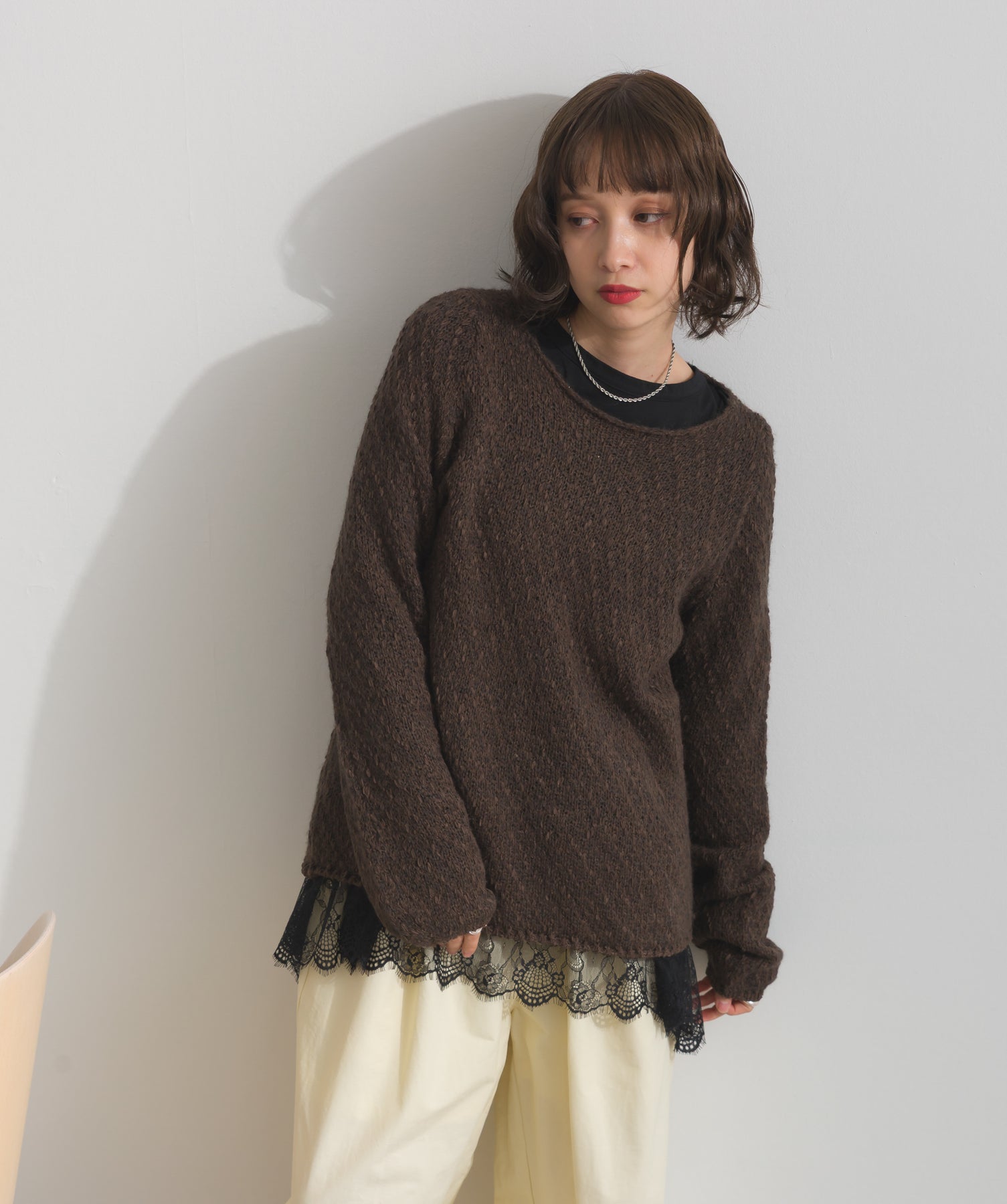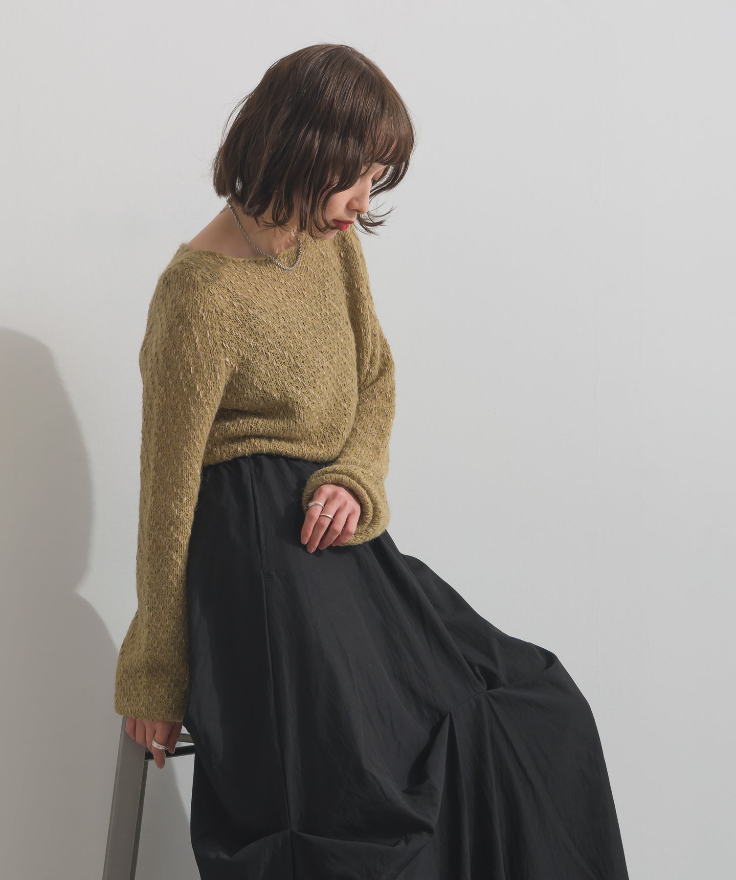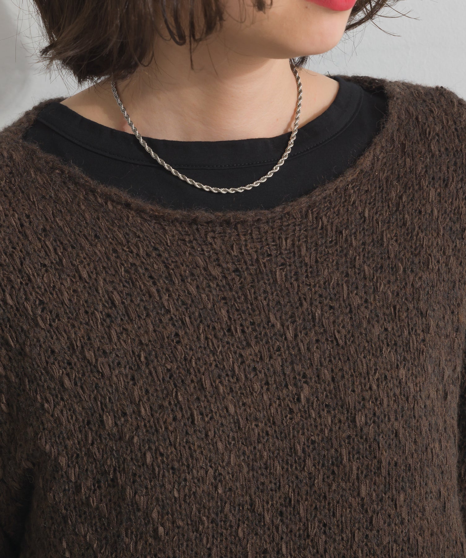 絶妙なミックス感で魅せる、表情豊かな主役ニット。異素材が織りなす立体感と、抜け感シルエットが今の気分にぴったり。シンプルなのに目を惹く、感度高めのニットトップス。-material-太さや質感の異なる数種の糸をミックスした表情豊かなブークレヤーンを使用。ふっくらとした厚みと柔らかな肌触りが心地よく、着心地とデザイン性を両立。見た目に立体感があり、シンプルなボトムスにも映える素材感が魅力です。-design-ややルーズなシルエットにドロップショルダーを組み合わせた、リラクシーかつこなれた印象のデザイン。程よく開いたネックラインが顔まわりをすっきり見せ、ボリュームスリーブが女性らしい抜け感を演出。カラーはベーシックからニュアンス系まで揃い、着こなし次第でフェミニンにもモードにも対応可能。