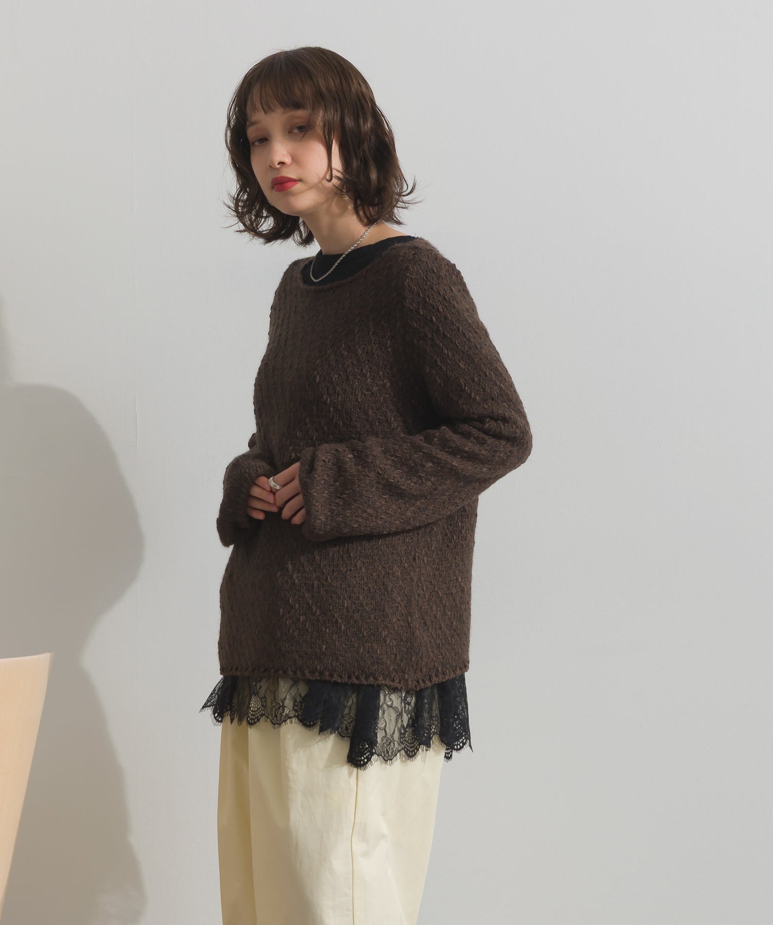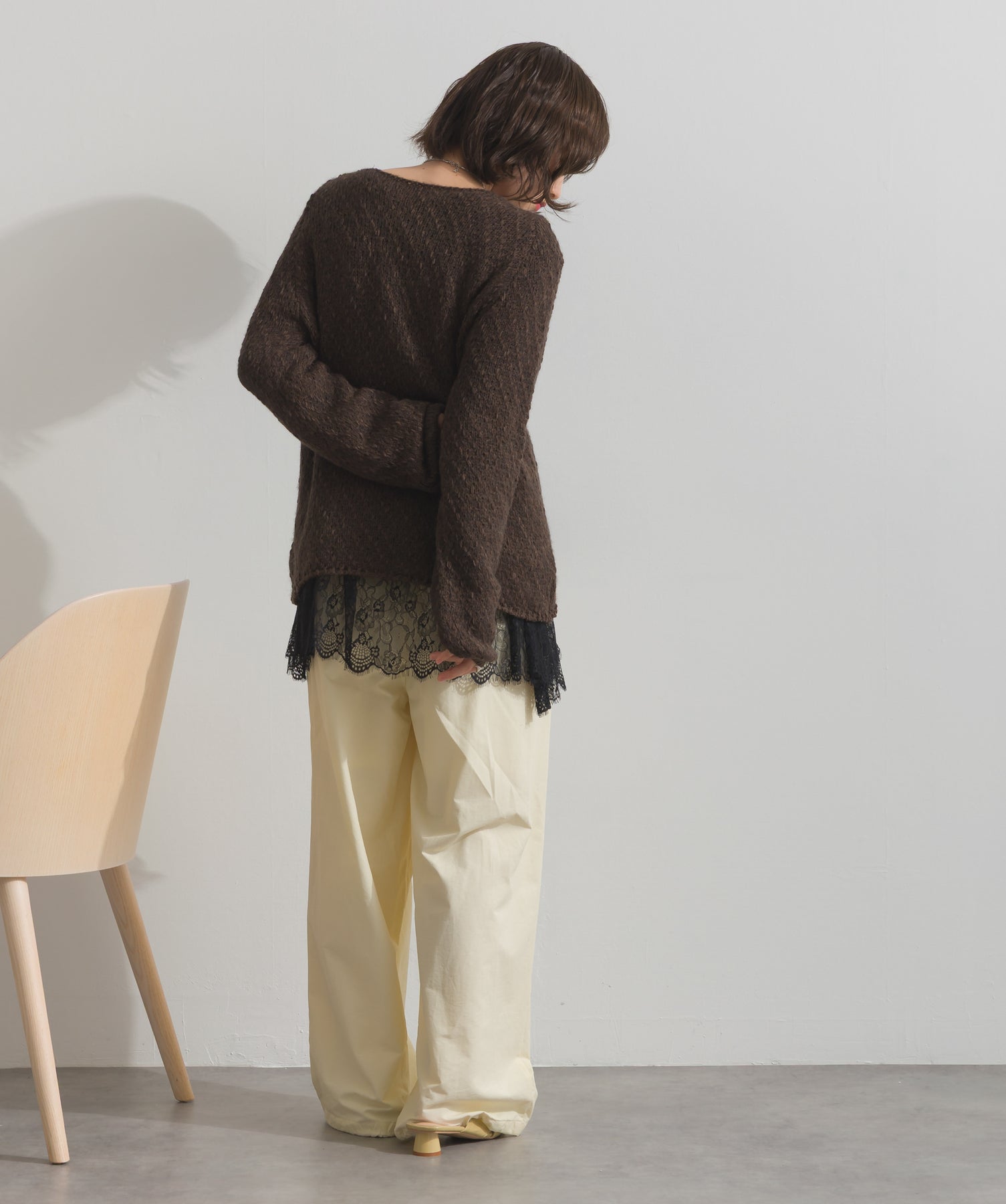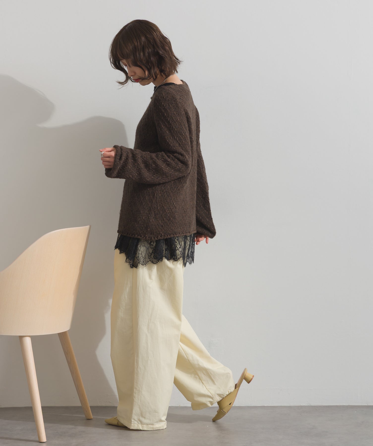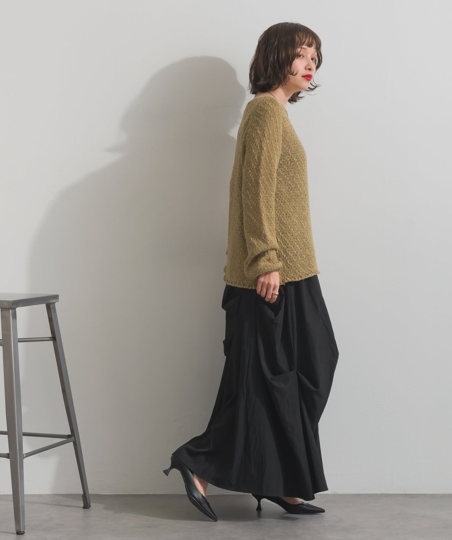 絶妙なミックス感で魅せる、表情豊かな主役ニット。異素材が織りなす立体感と、抜け感シルエットが今の気分にぴったり。シンプルなのに目を惹く、感度高めのニットトップス。-material-太さや質感の異なる数種の糸をミックスした表情豊かなブークレヤーンを使用。ふっくらとした厚みと柔らかな肌触りが心地よく、着心地とデザイン性を両立。見た目に立体感があり、シンプルなボトムスにも映える素材感が魅力です。-design-ややルーズなシルエットにドロップショルダーを組み合わせた、リラクシーかつこなれた印象のデザイン。程よく開いたネックラインが顔まわりをすっきり見せ、ボリュームスリーブが女性らしい抜け感を演出。カラーはベーシックからニュアンス系まで揃い、着こなし次第でフェミニンにもモードにも対応可能。