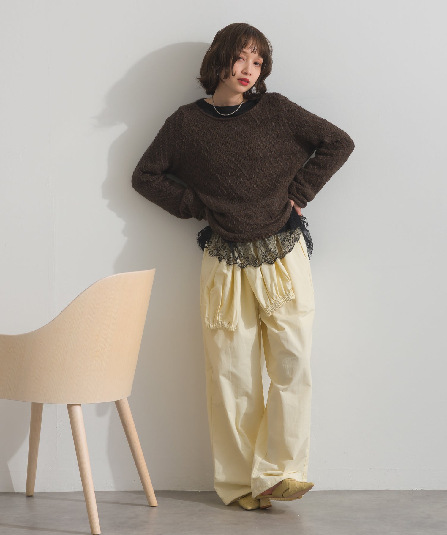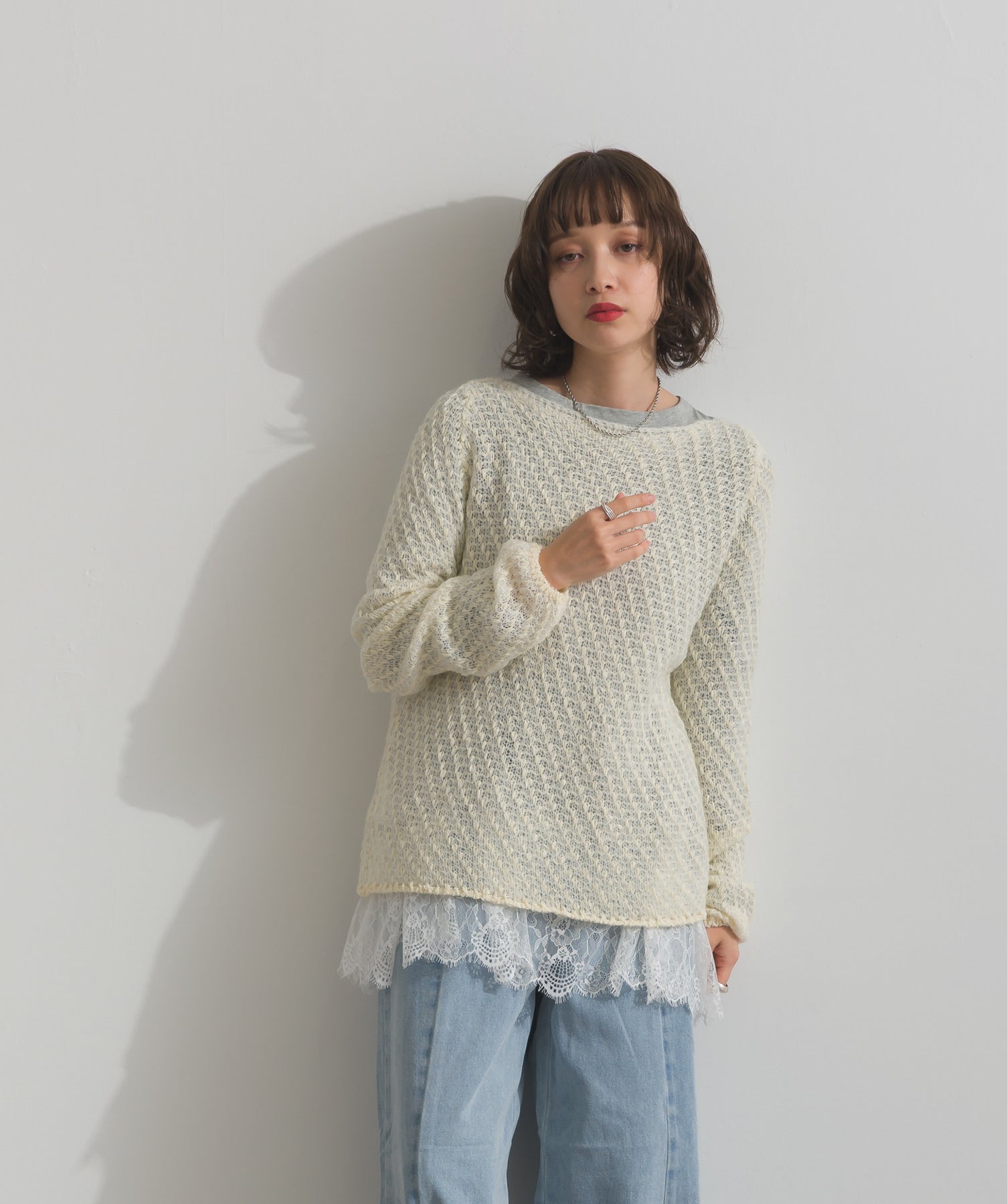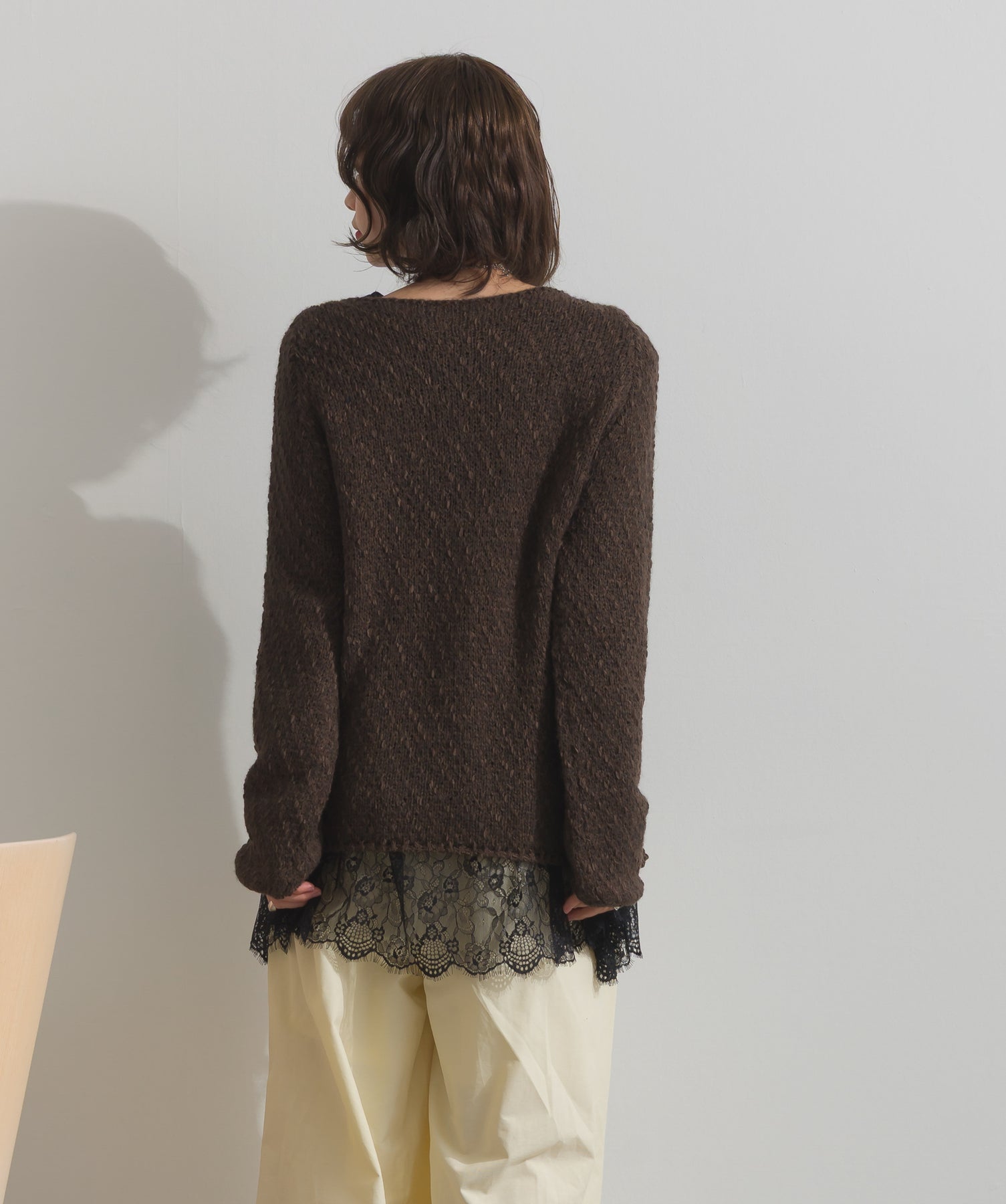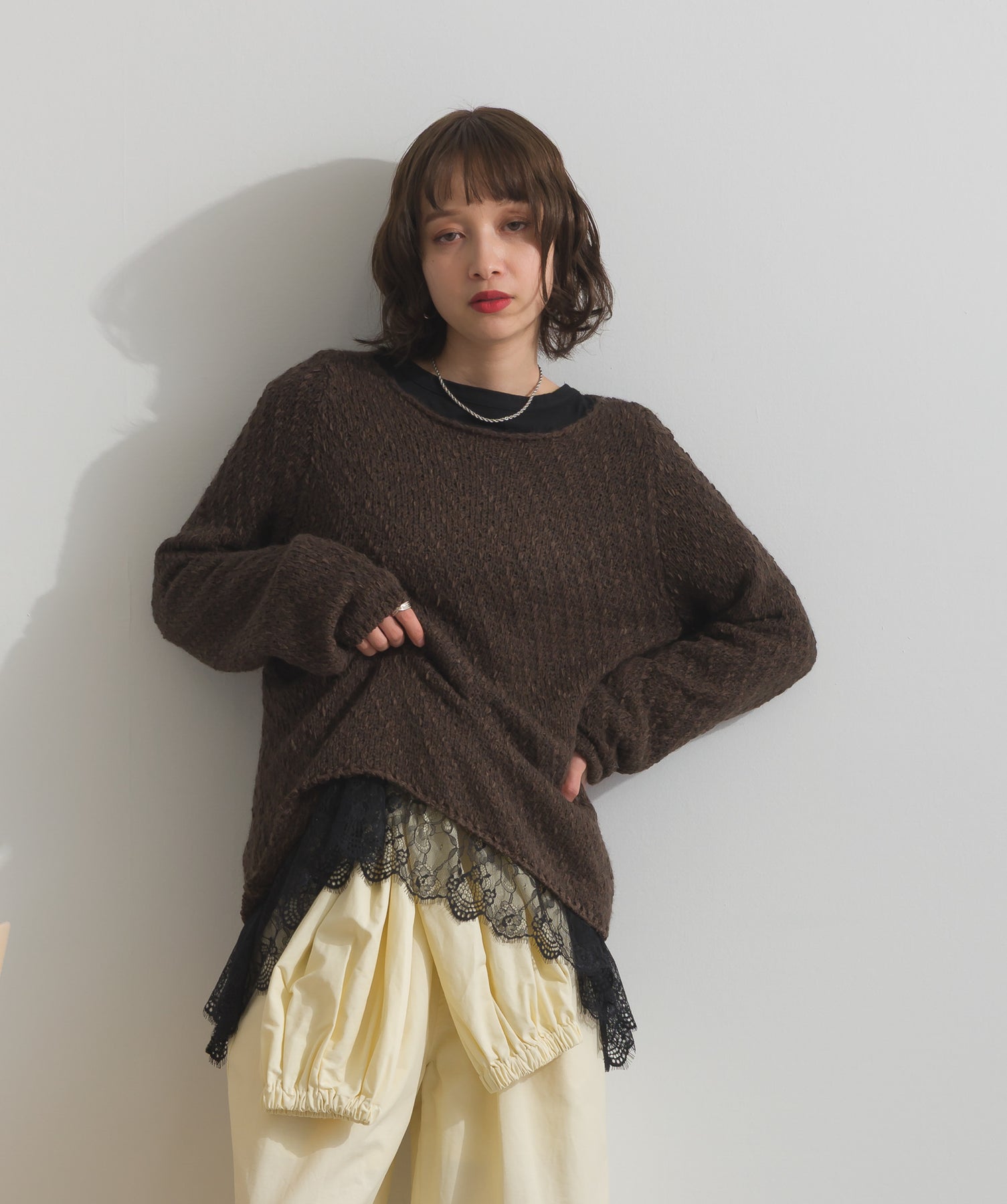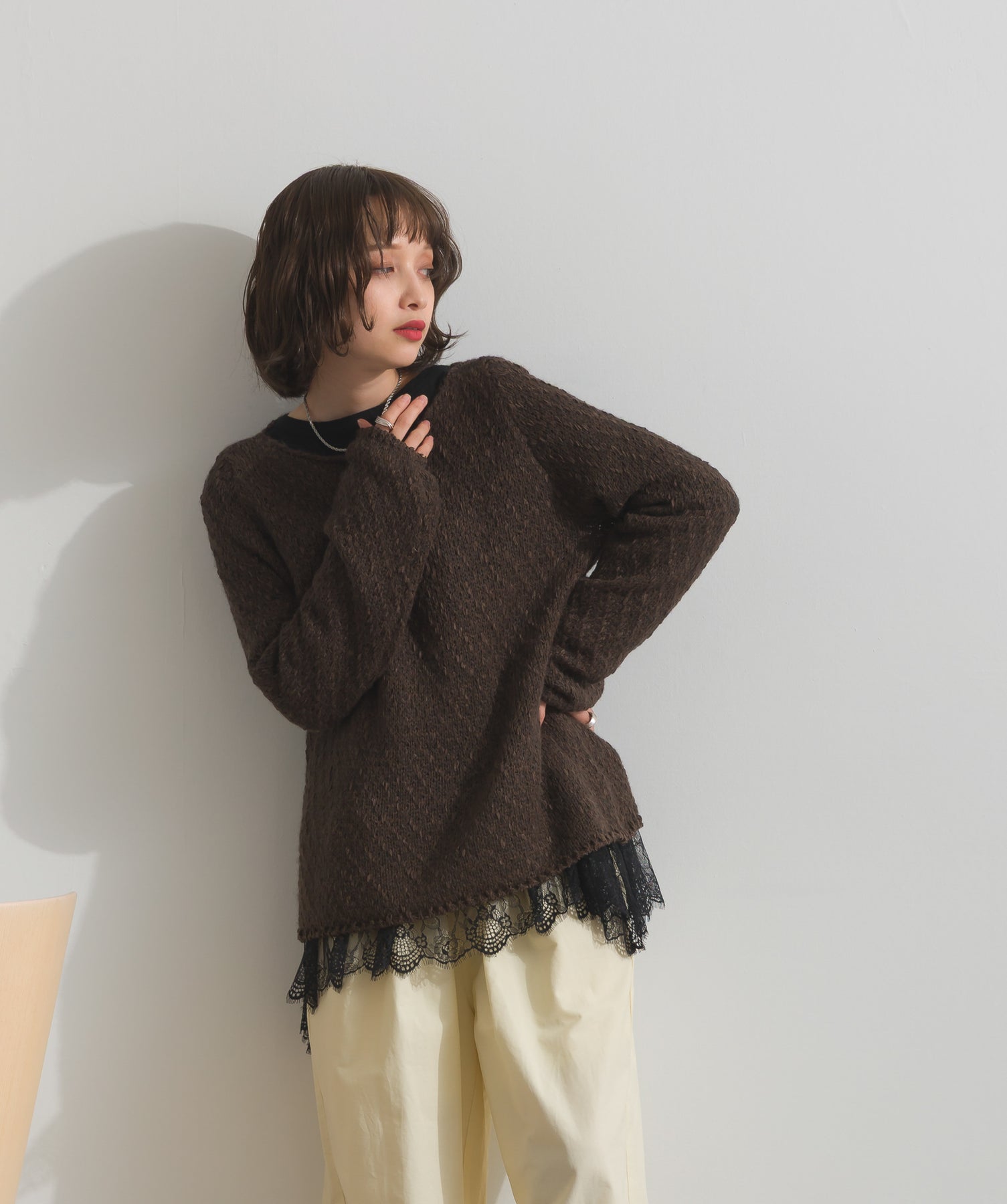 絶妙なミックス感で魅せる、表情豊かな主役ニット。異素材が織りなす立体感と、抜け感シルエットが今の気分にぴったり。シンプルなのに目を惹く、感度高めのニットトップス。-material-太さや質感の異なる数種の糸をミックスした表情豊かなブークレヤーンを使用。ふっくらとした厚みと柔らかな肌触りが心地よく、着心地とデザイン性を両立。見た目に立体感があり、シンプルなボトムスにも映える素材感が魅力です。-design-ややルーズなシルエットにドロップショルダーを組み合わせた、リラクシーかつこなれた印象のデザイン。程よく開いたネックラインが顔まわりをすっきり見せ、ボリュームスリーブが女性らしい抜け感を演出。カラーはベーシックからニュアンス系まで揃い、着こなし次第でフェミニンにもモードにも対応可能。
