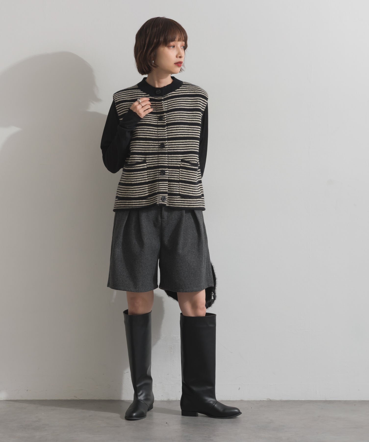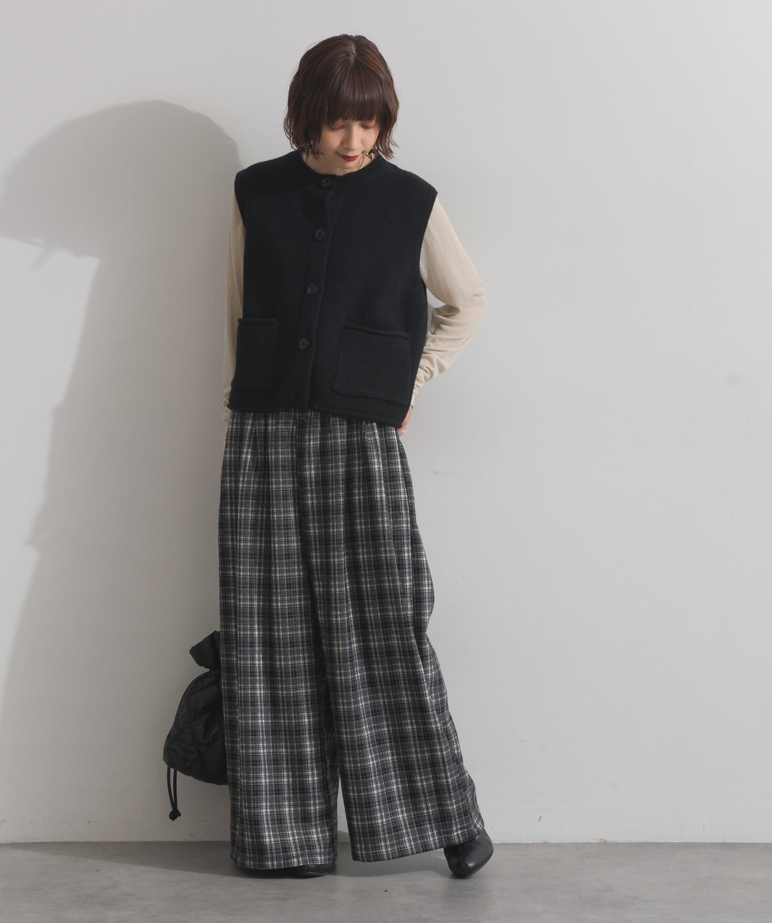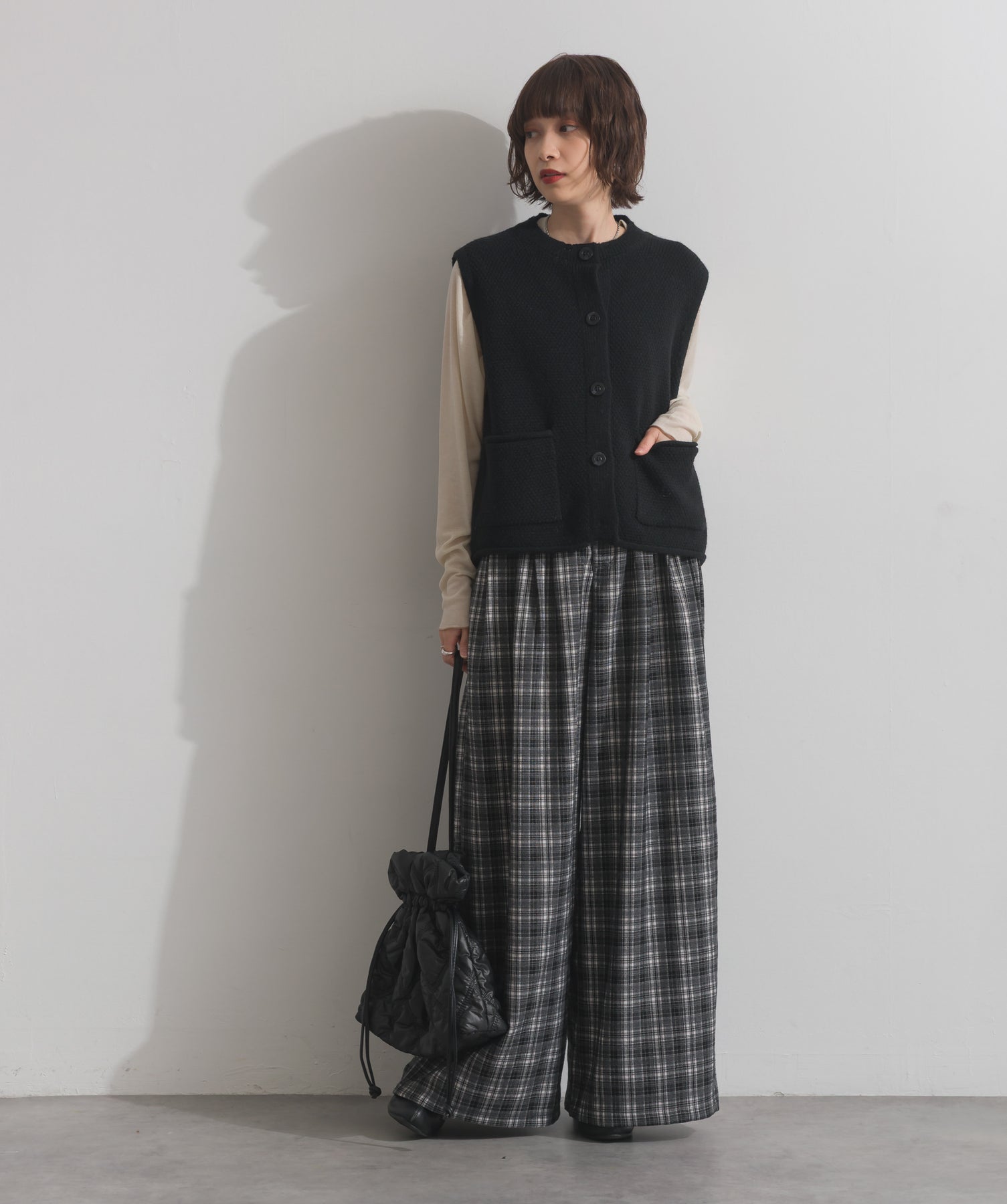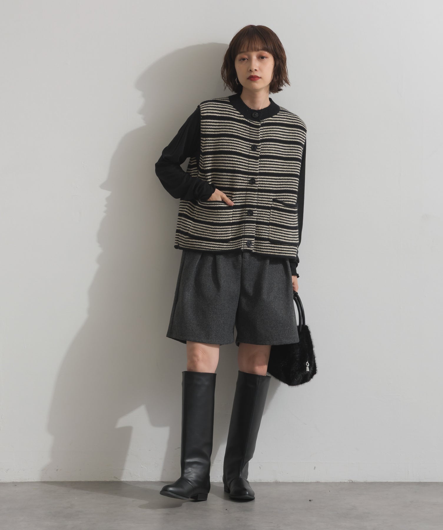 こなれ感を格上げする、万能ニットベスト。一枚足すだけで奥行きが生まれ、レイヤードスタイルを格上げしてくれるニットベスト。洗練されたバランス感で、秋冬のコーデをスタイリッシュに。-material-柔らかく温かみのあるニット素材を使用。程よい厚みで軽やかさを保ちつつ、防寒性も兼備。チクチク感のない快適な肌触りで、長時間の着用もストレスフリー。-design-クラシカルなクルーネックと、フロントのボタンデザインが特徴的な一枚。ストライプ柄と無地の2タイプ展開で、着回し力の高い汎用性を実現。裾のストレートカットとゆったりめの身幅が、トレンド感あるボックスシルエットを演出。パンツにもスカートにもバランス良くマッチし、レイヤードの幅を広げてくれる主役アイテム。