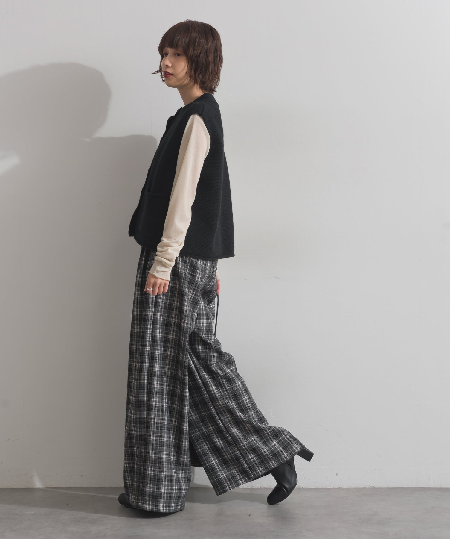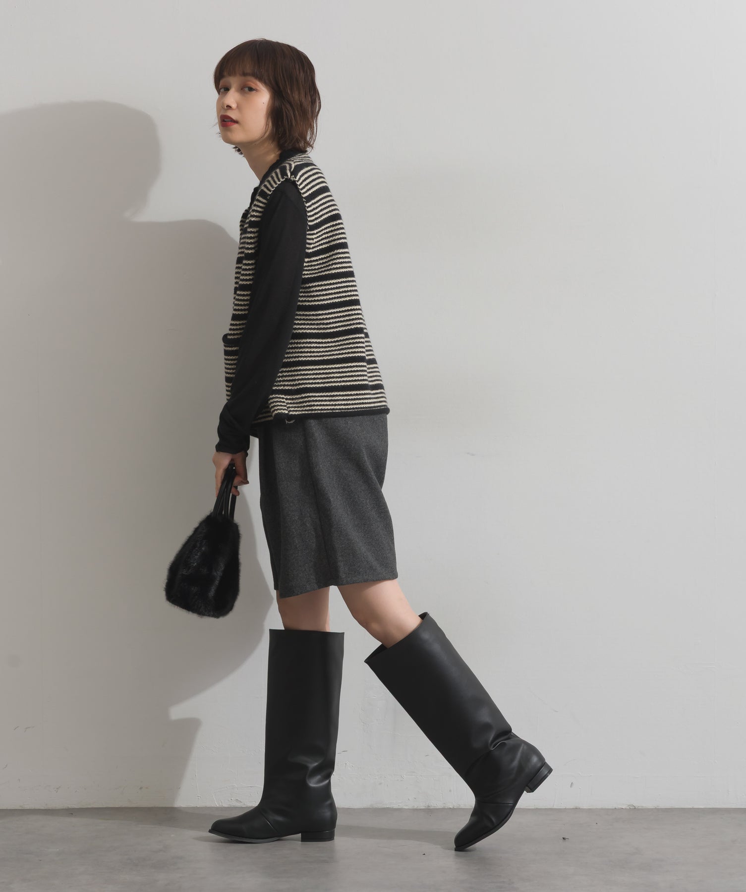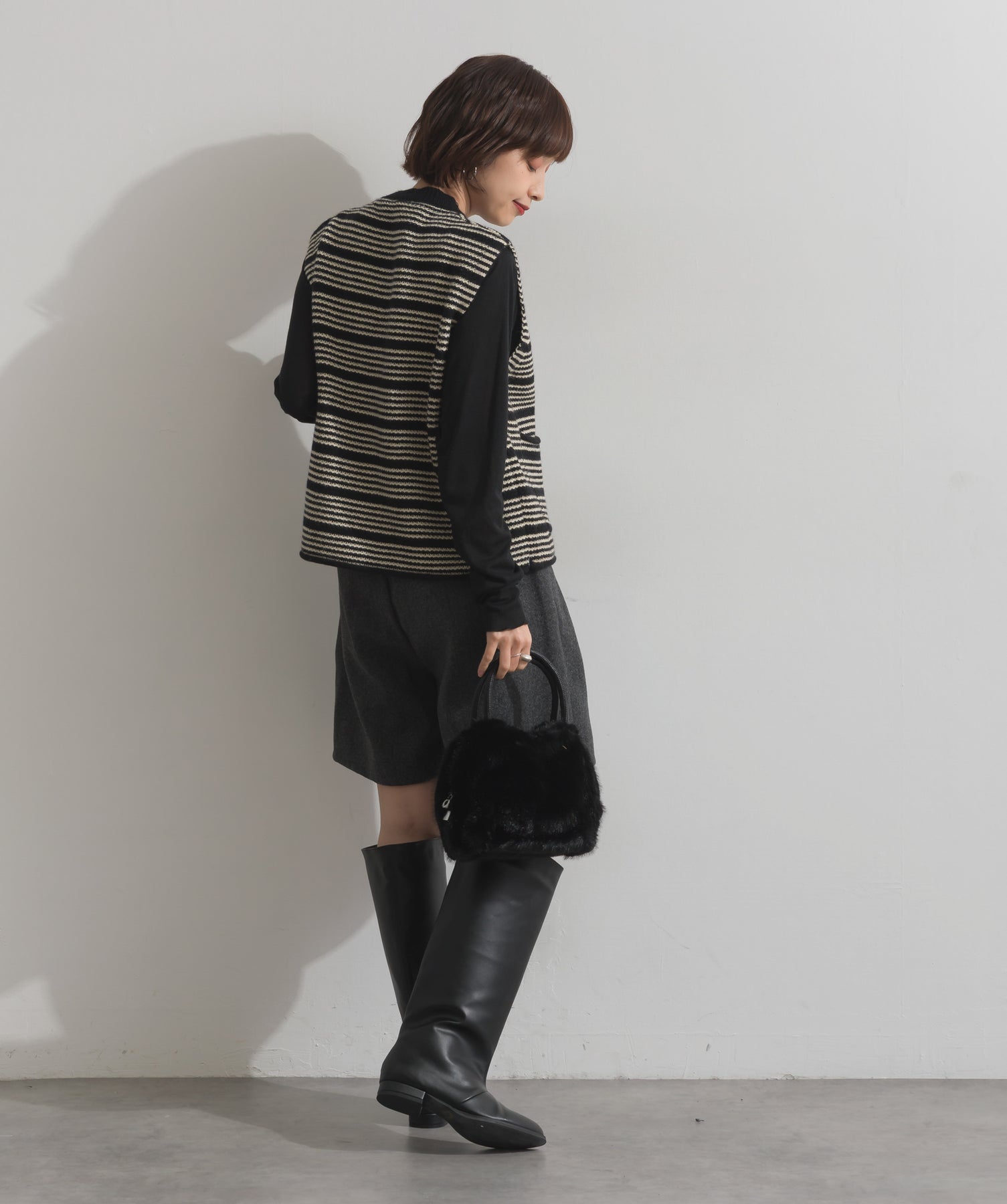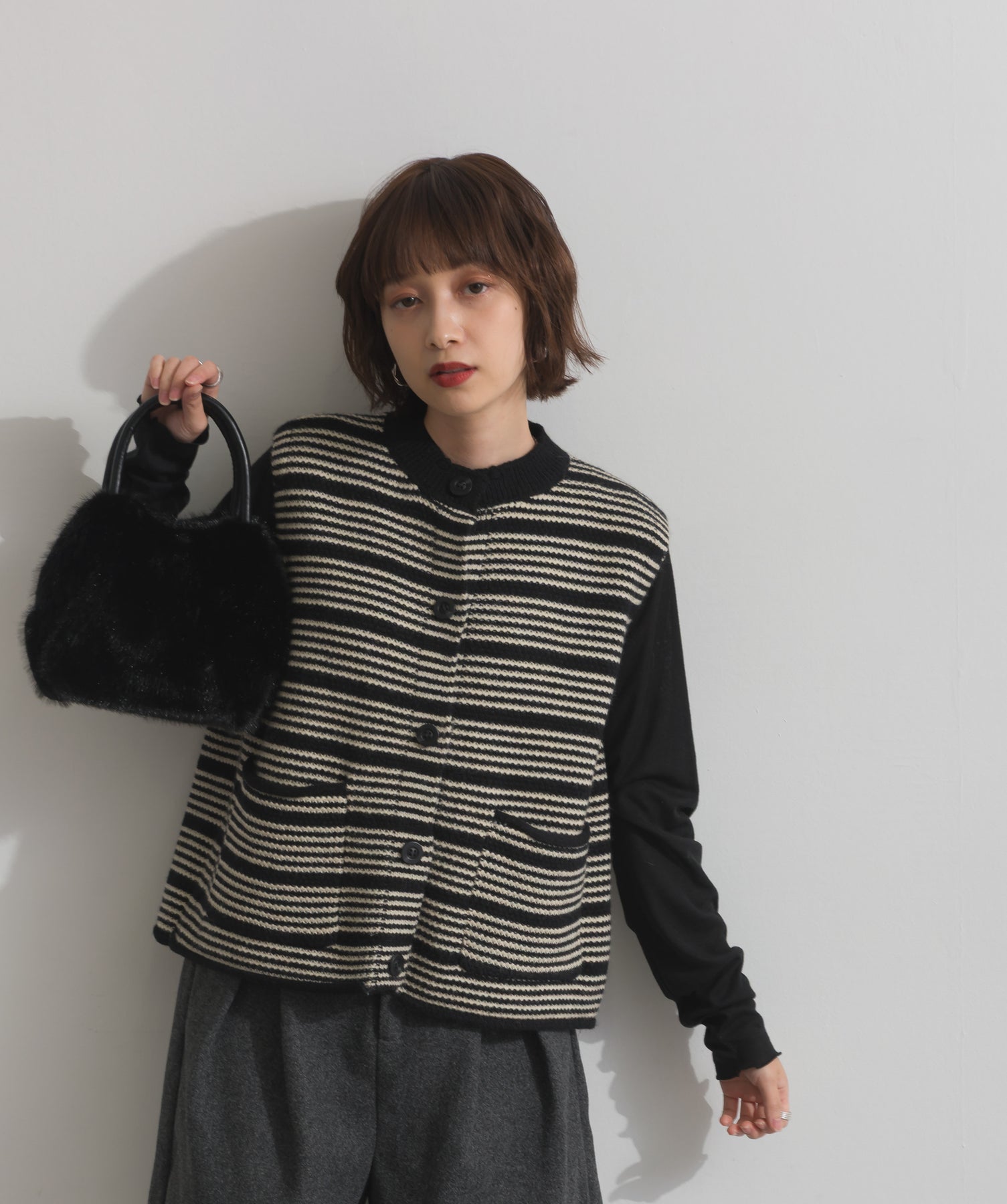 こなれ感を格上げする、万能ニットベスト。一枚足すだけで奥行きが生まれ、レイヤードスタイルを格上げしてくれるニットベスト。洗練されたバランス感で、秋冬のコーデをスタイリッシュに。-material-柔らかく温かみのあるニット素材を使用。程よい厚みで軽やかさを保ちつつ、防寒性も兼備。チクチク感のない快適な肌触りで、長時間の着用もストレスフリー。-design-クラシカルなクルーネックと、フロントのボタンデザインが特徴的な一枚。ストライプ柄と無地の2タイプ展開で、着回し力の高い汎用性を実現。裾のストレートカットとゆったりめの身幅が、トレンド感あるボックスシルエットを演出。パンツにもスカートにもバランス良くマッチし、レイヤードの幅を広げてくれる主役アイテム。