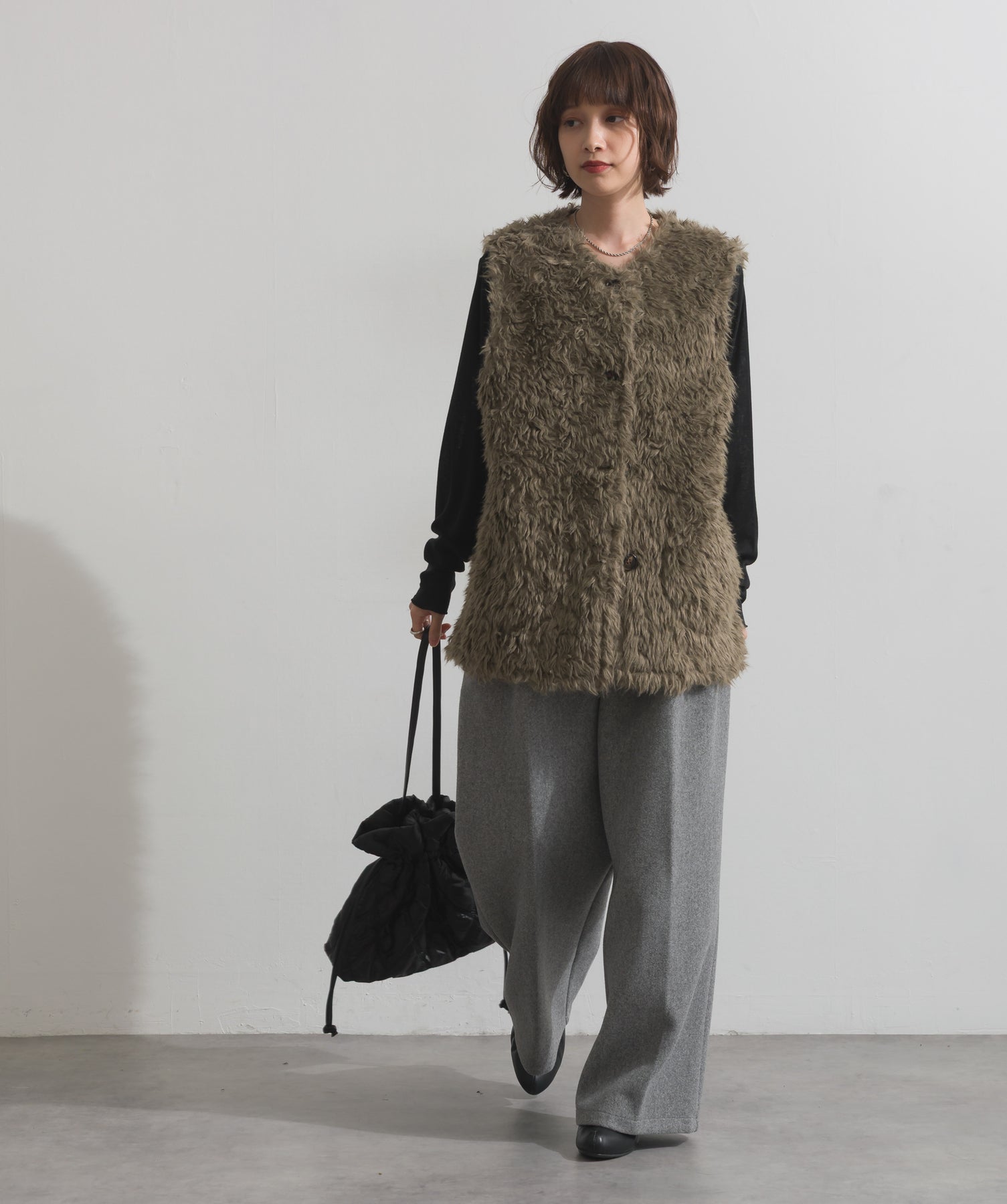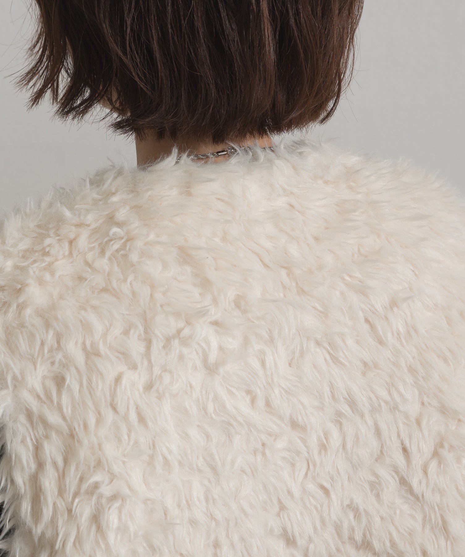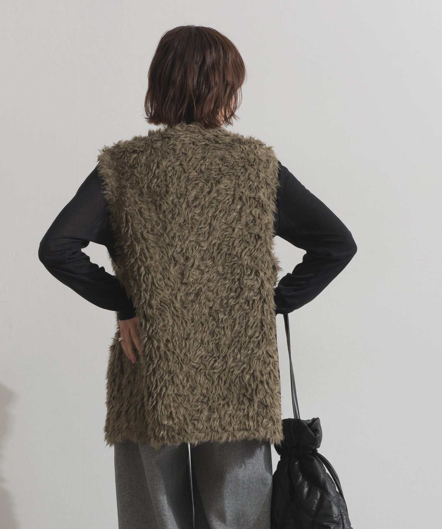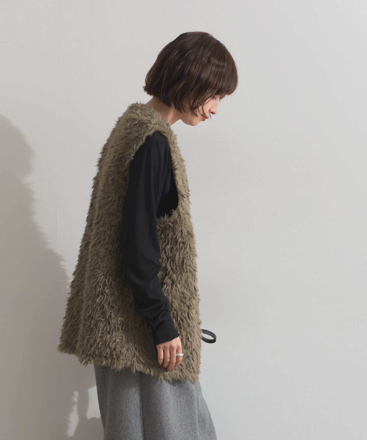 柔らかく、鋭く。今季主役のボアファー。-material-軽やかでボリューム感のあるシャギーボア素材を使用。柔らかな肌触りながらも毛足の立った表情で、存在感を放ちます。防寒性にも優れており、秋冬のレイヤードに最適な一枚です。-design-シンプルながらも目を引くデザイン。程よくオーバーなシルエットがこなれ感を演出し、前立てのボタンやVネック仕様がスタイリングに立体感をプラス。ニットやシャツに合わせるだけで、抜け感のあるトレンドライクな着こなしが完成します。ボトムスを選ばず、ワイドパンツやスカートとも好相性。