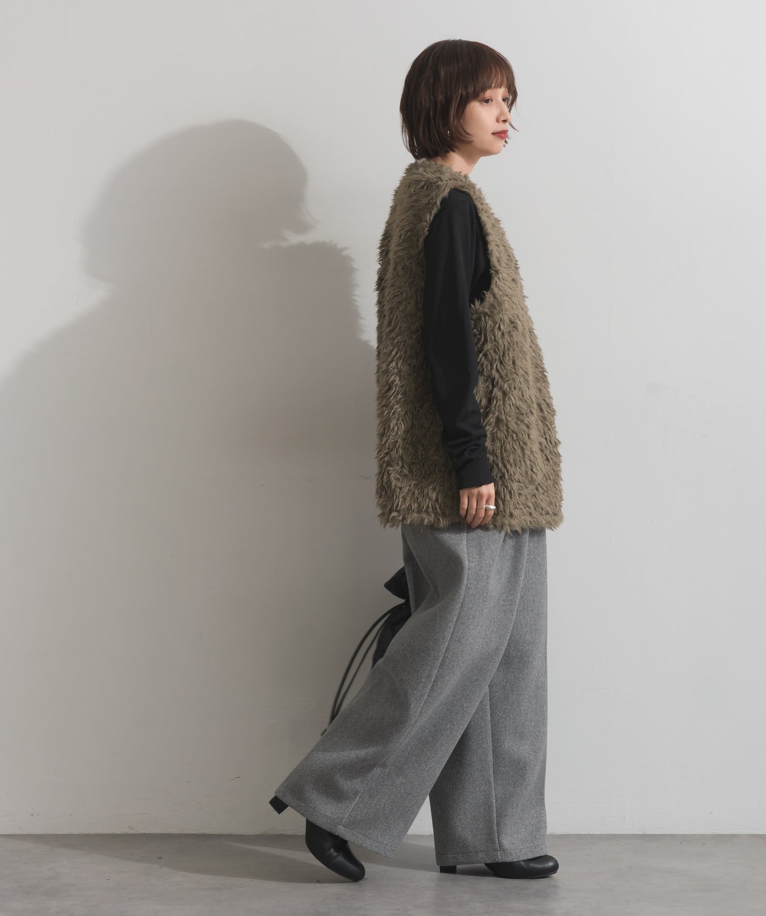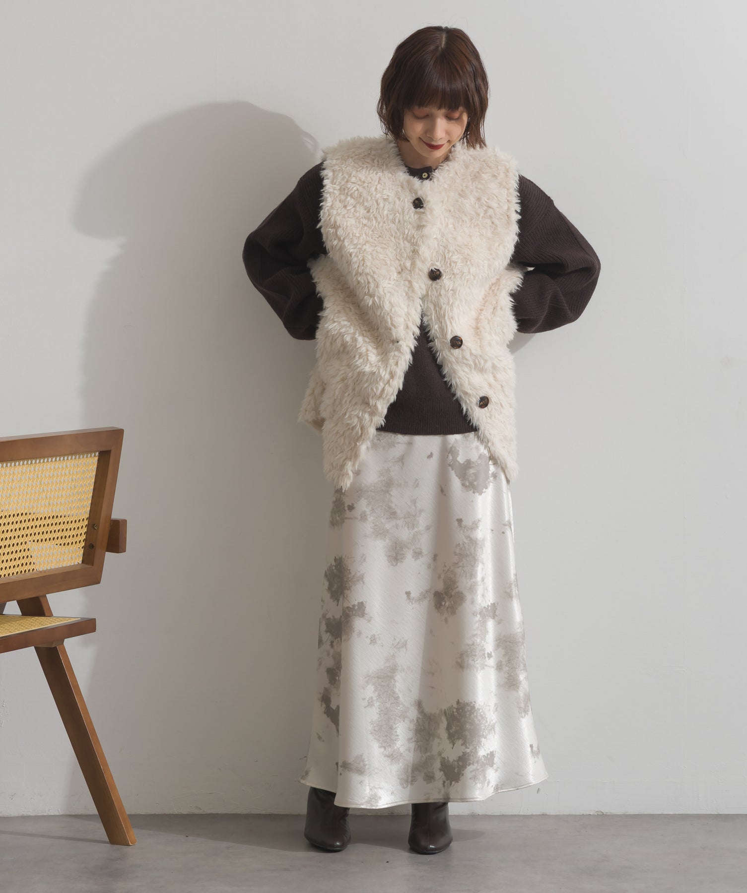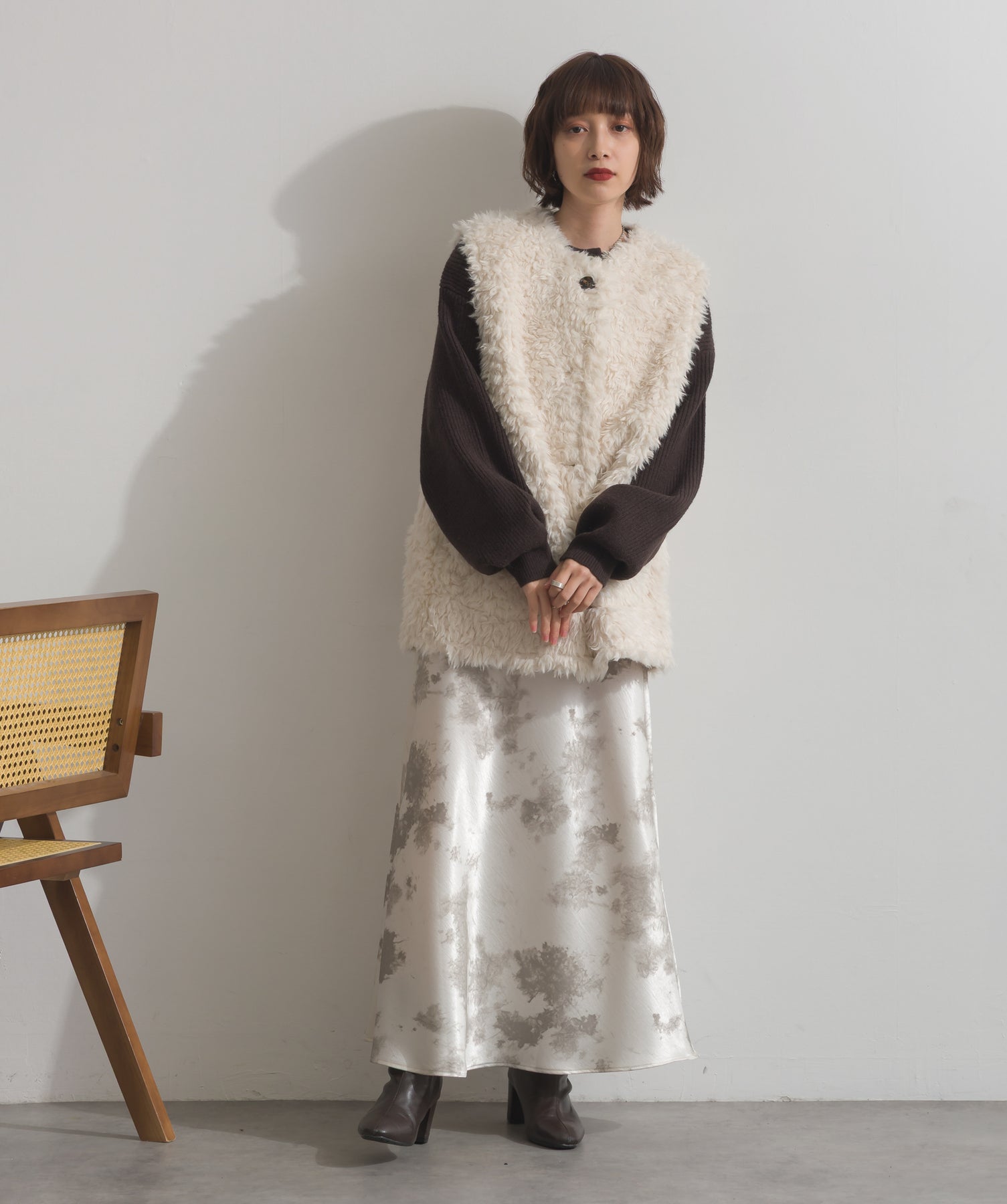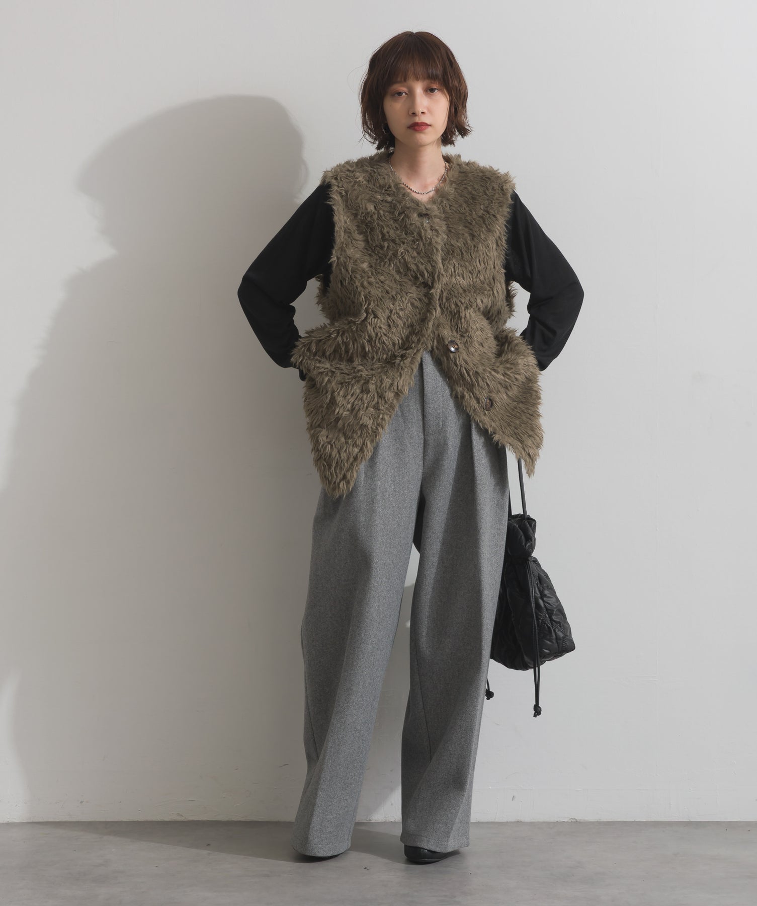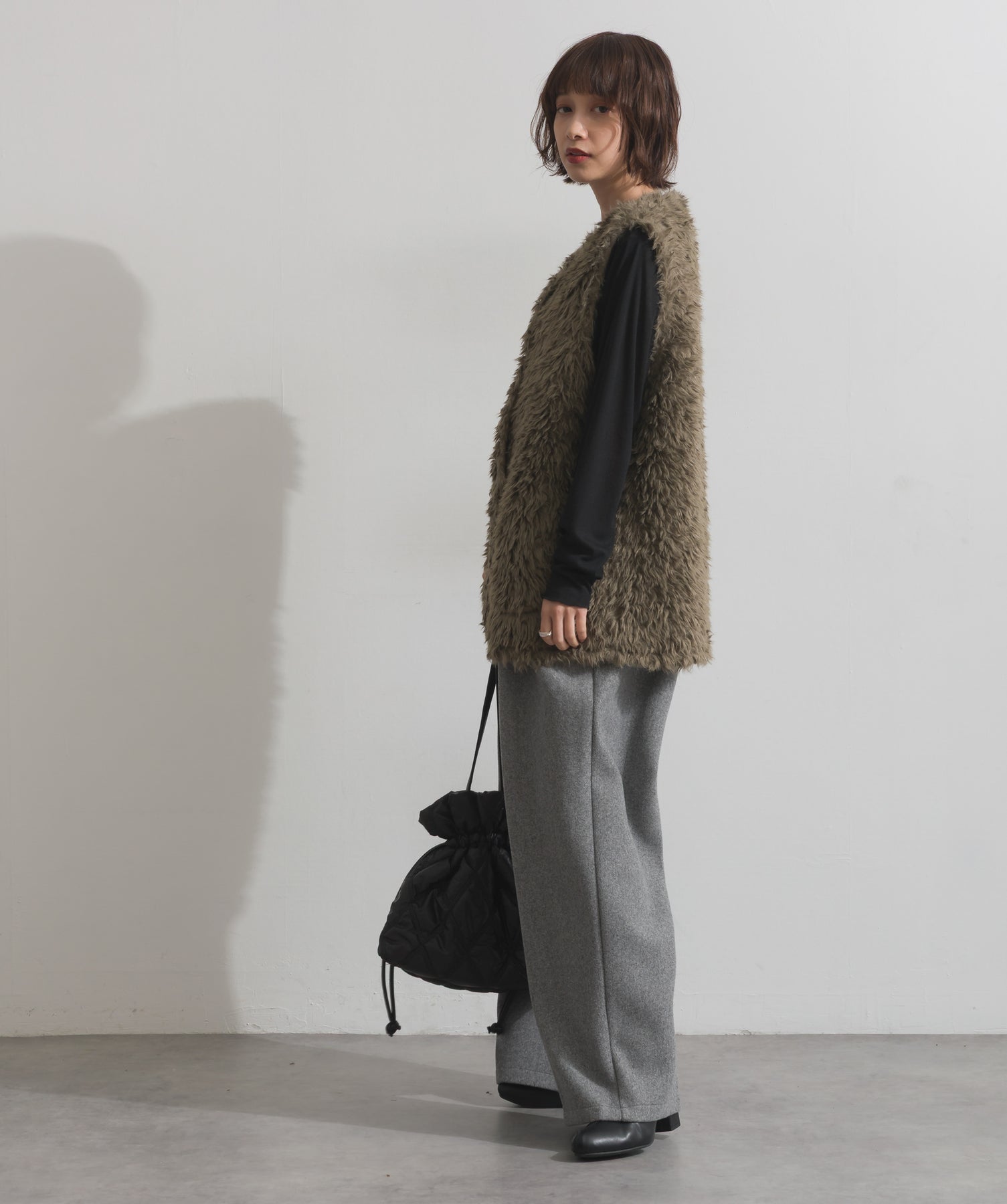 柔らかく、鋭く。今季主役のボアファー。-material-軽やかでボリューム感のあるシャギーボア素材を使用。柔らかな肌触りながらも毛足の立った表情で、存在感を放ちます。防寒性にも優れており、秋冬のレイヤードに最適な一枚です。-design-シンプルながらも目を引くデザイン。程よくオーバーなシルエットがこなれ感を演出し、前立てのボタンやVネック仕様がスタイリングに立体感をプラス。ニットやシャツに合わせるだけで、抜け感のあるトレンドライクな着こなしが完成します。ボトムスを選ばず、ワイドパンツやスカートとも好相性。