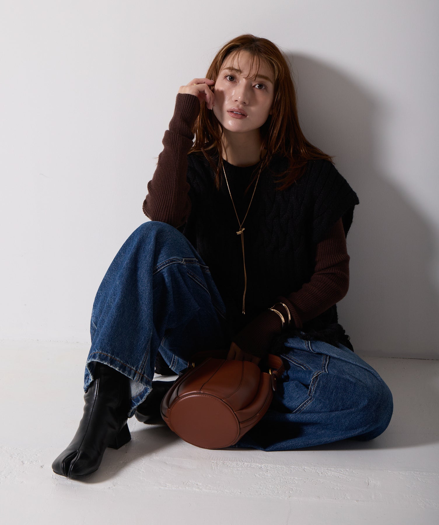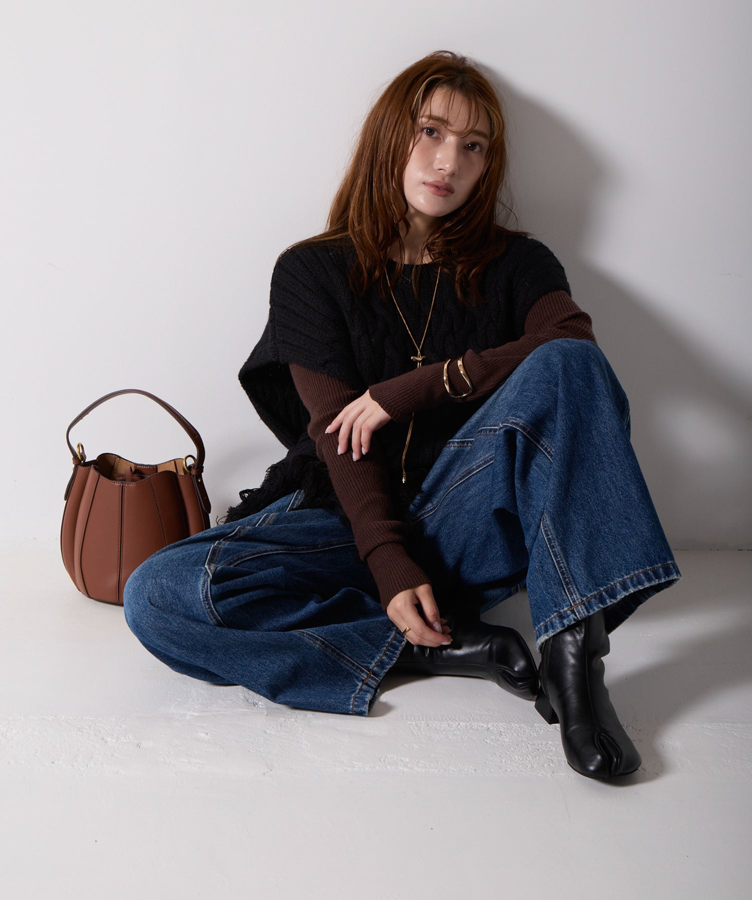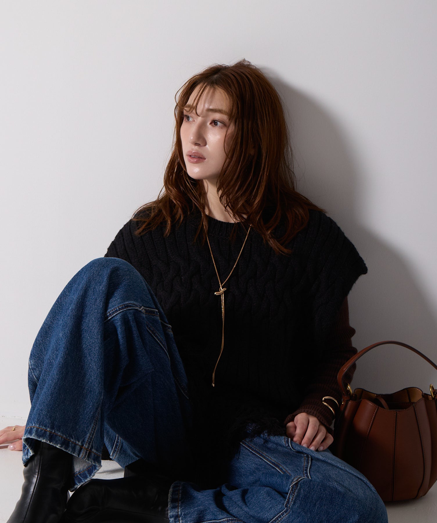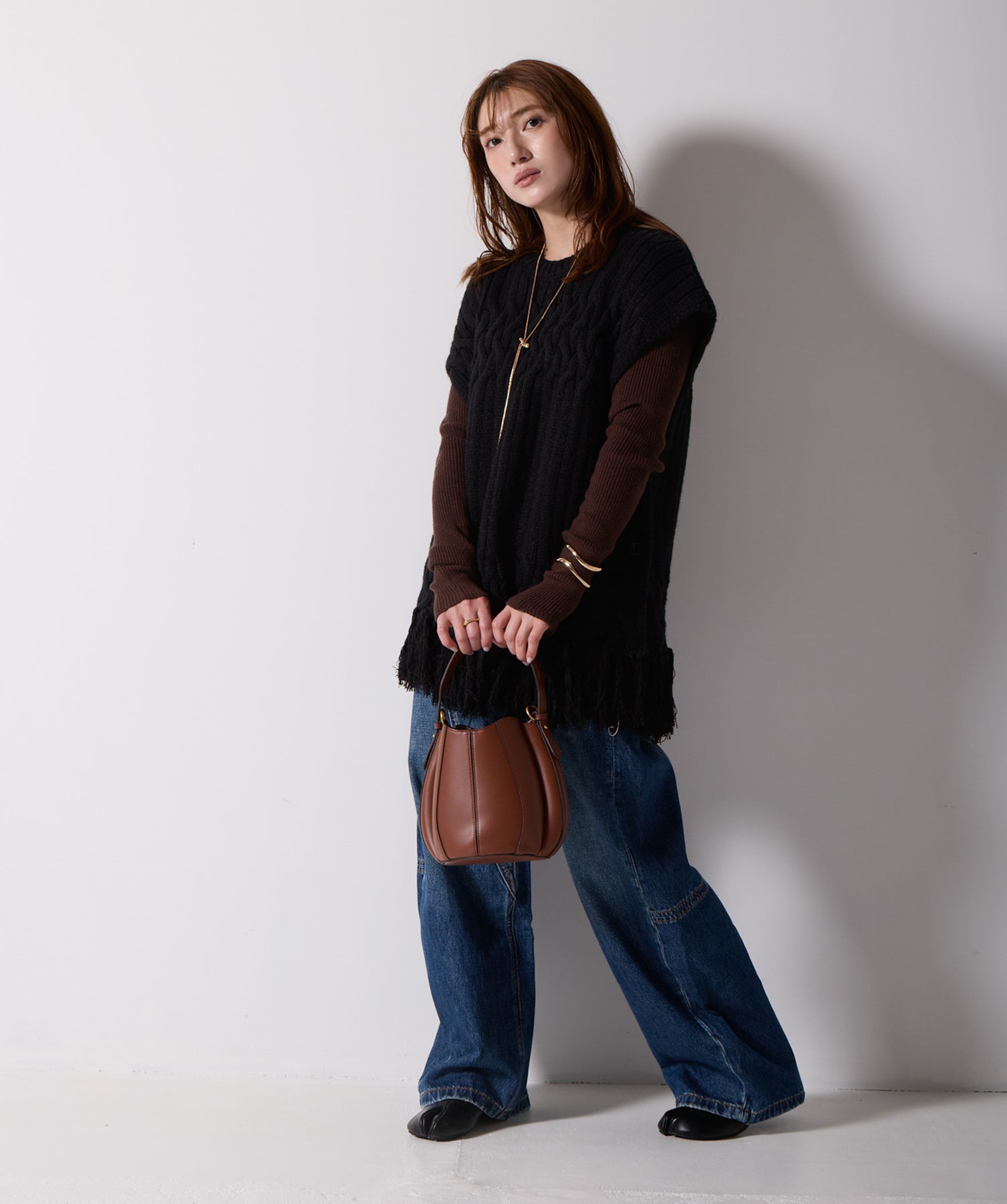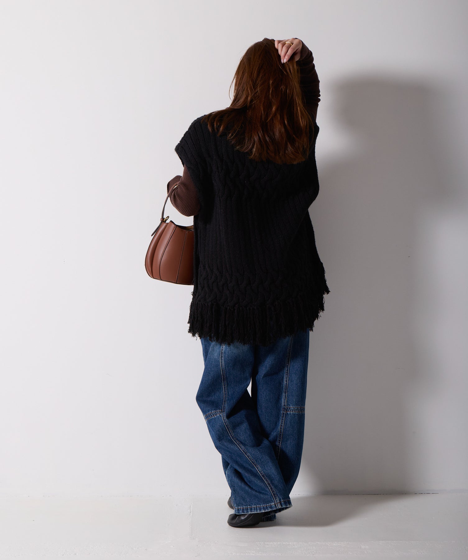 立体感と動きをまとう、主役級ニットベスト。-material- ローゲージで編み立てたケーブルニットは、存在感のある凹凸が特徴。ふっくらとした厚みとやわらかなタッチがボディラインを拾いすぎず、快適な着心地を叶えます。裾の大胆なフリンジがニュアンスを加え、動くたびに揺れるディテールが視線を惹きつけます。-design- 肩を覆うフレンチスリーブとロング丈のバランスが絶妙で、レイヤードするだけでこなれ感のあるスタイルに仕上がります。フロント両サイドにはボタン付きのスリットが施されており、シルエットに表情を持たせながらインナーとの組み合わせも自在に。甘さを抑えたフォルムとテクスチャーが、大人のカジュアルにモードなエッセンスを加えます。・素材:綿60% アクリル40%