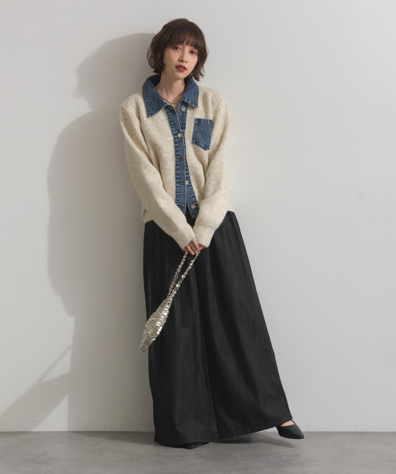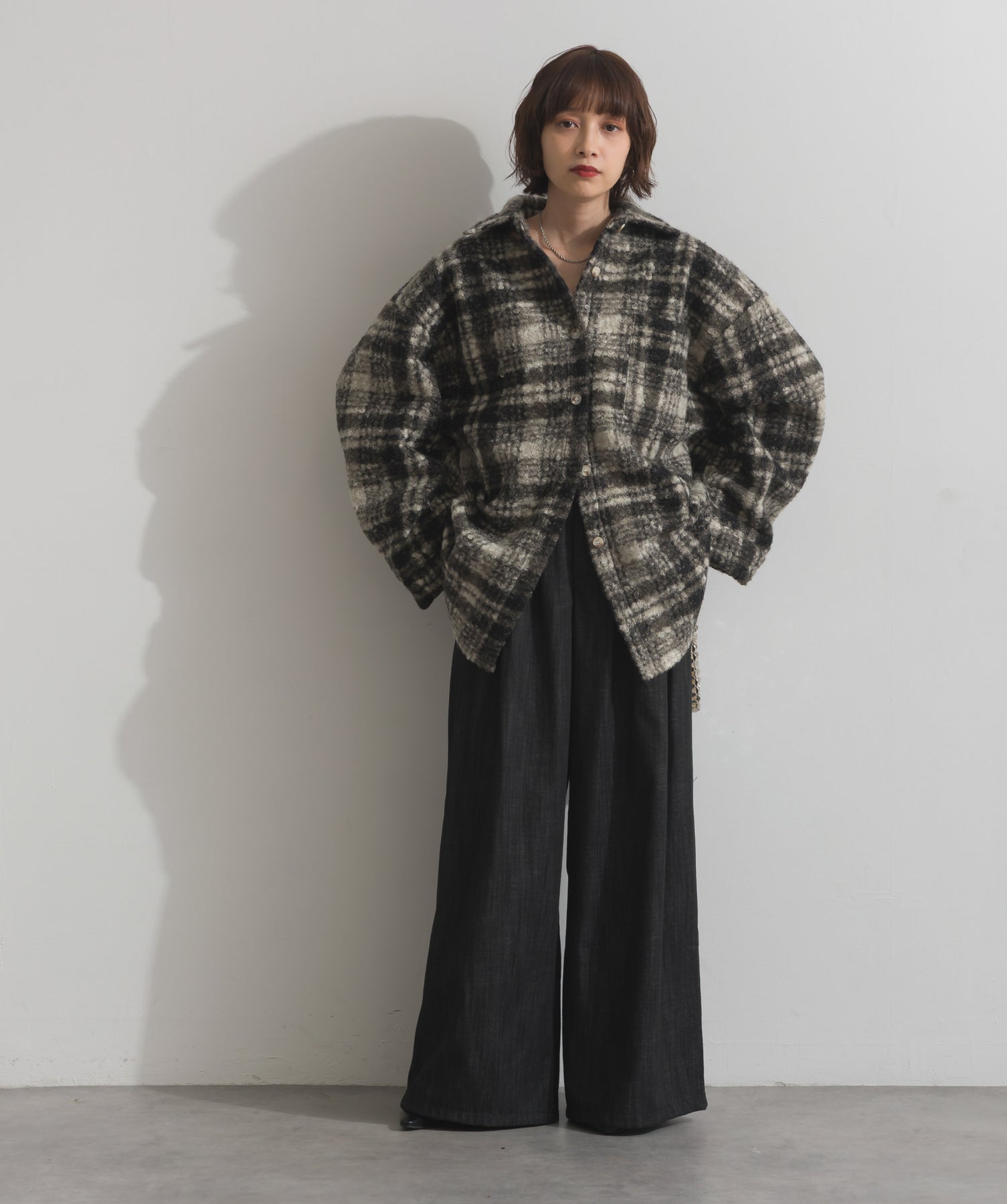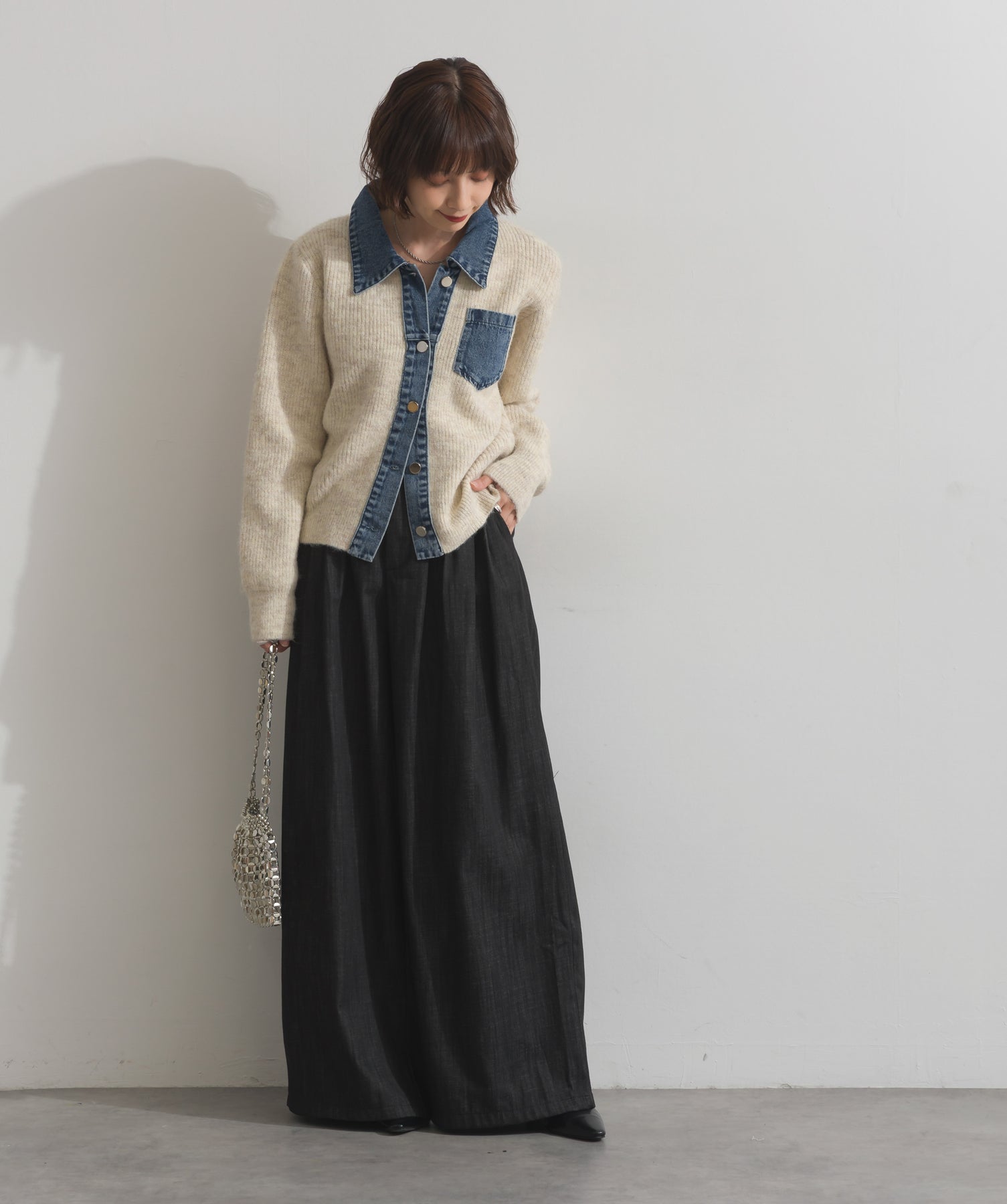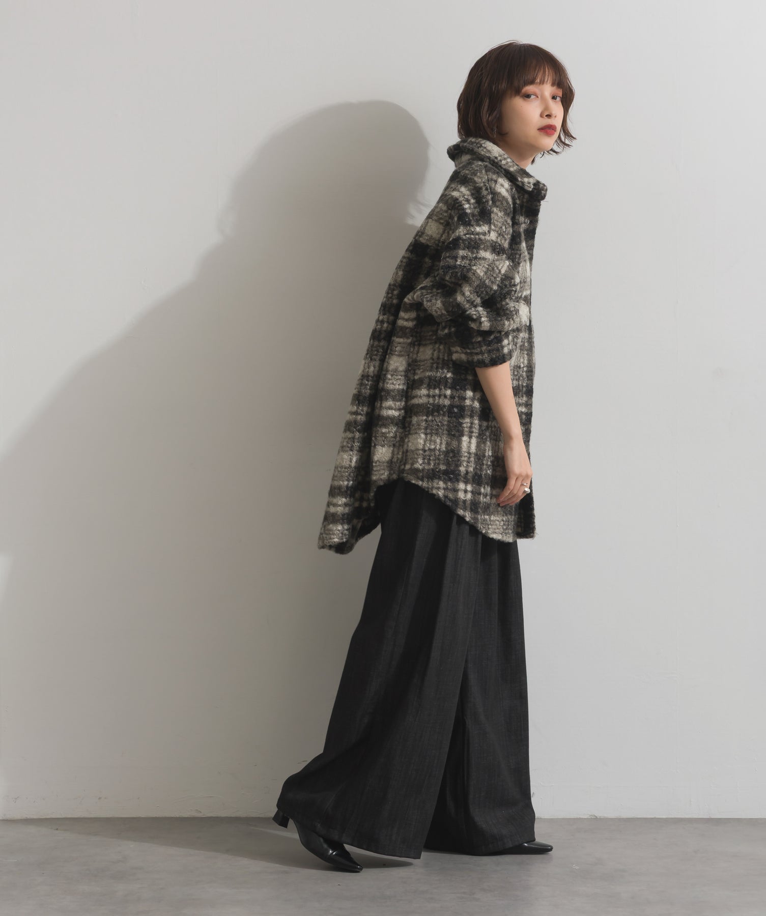 モードに差がつく、計算されたウエストシルエット-material-落ち感のあるしなやかなツイル素材を使用。ほどよいハリ感と柔らかな肌触りで、デイリーに快適な着用感を叶えます。厚すぎず軽すぎない生地感が、シーズンを問わず活躍する万能アイテム。-design-フロントにタックとアシンメトリーなウエストデザインを施し、トップスインもサマになるスタイリッシュな一本。ハイウエスト設定で脚長効果を演出しながら、ヒップ〜太ももにかけてゆとりのあるワイドシルエットで美バランスに。裾にかけてのストレートラインが縦のラインを強調し、抜け感のある大人のモードスタイルを完成させます。