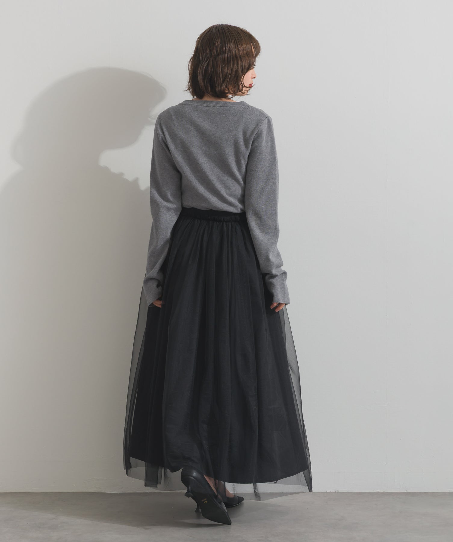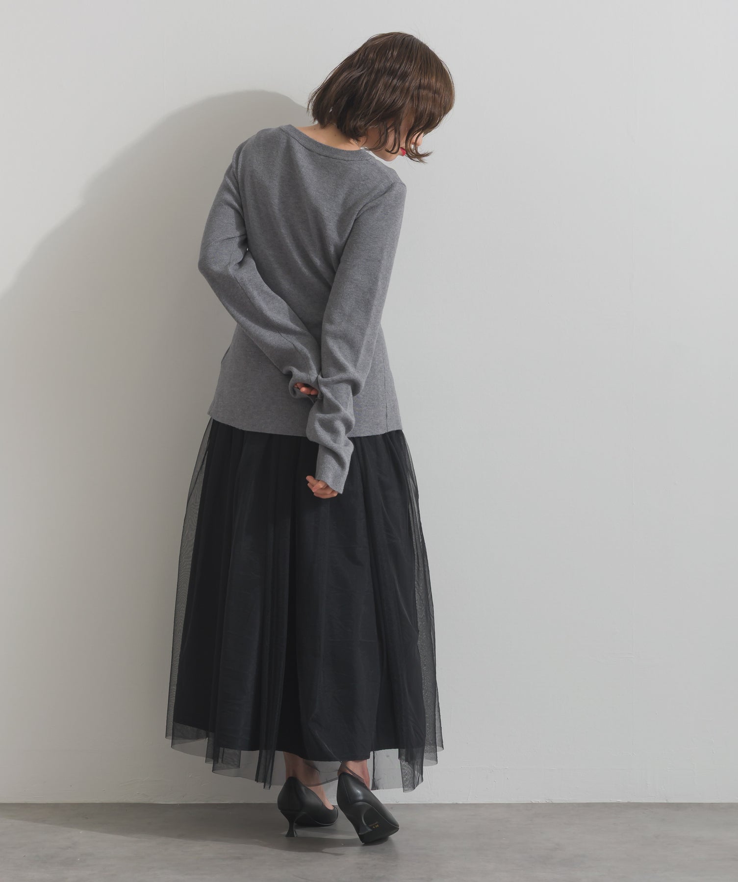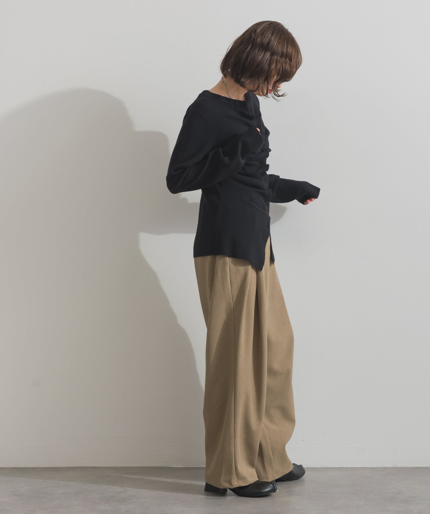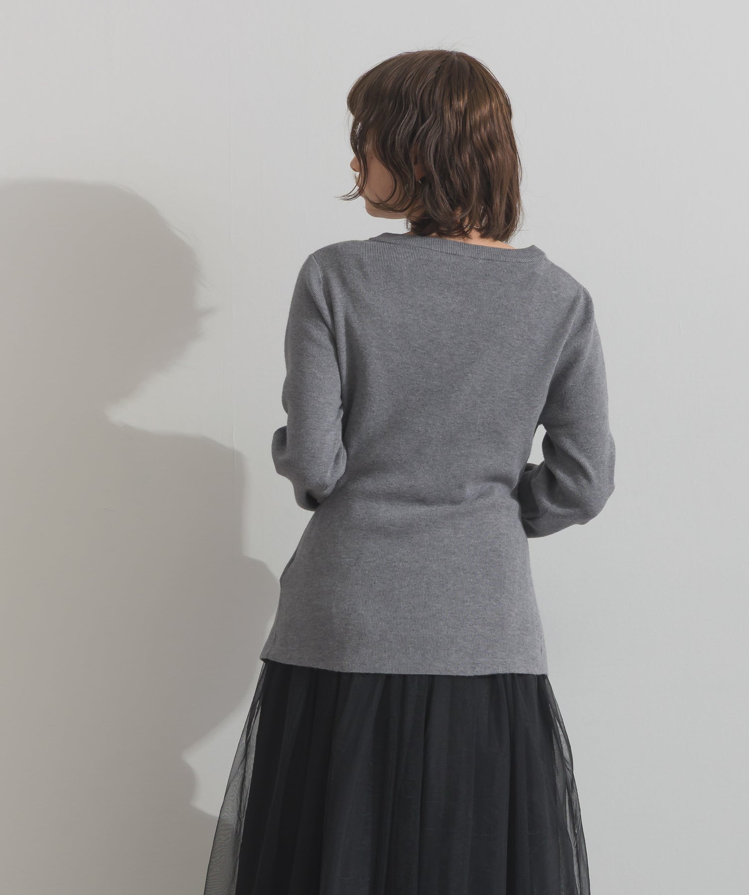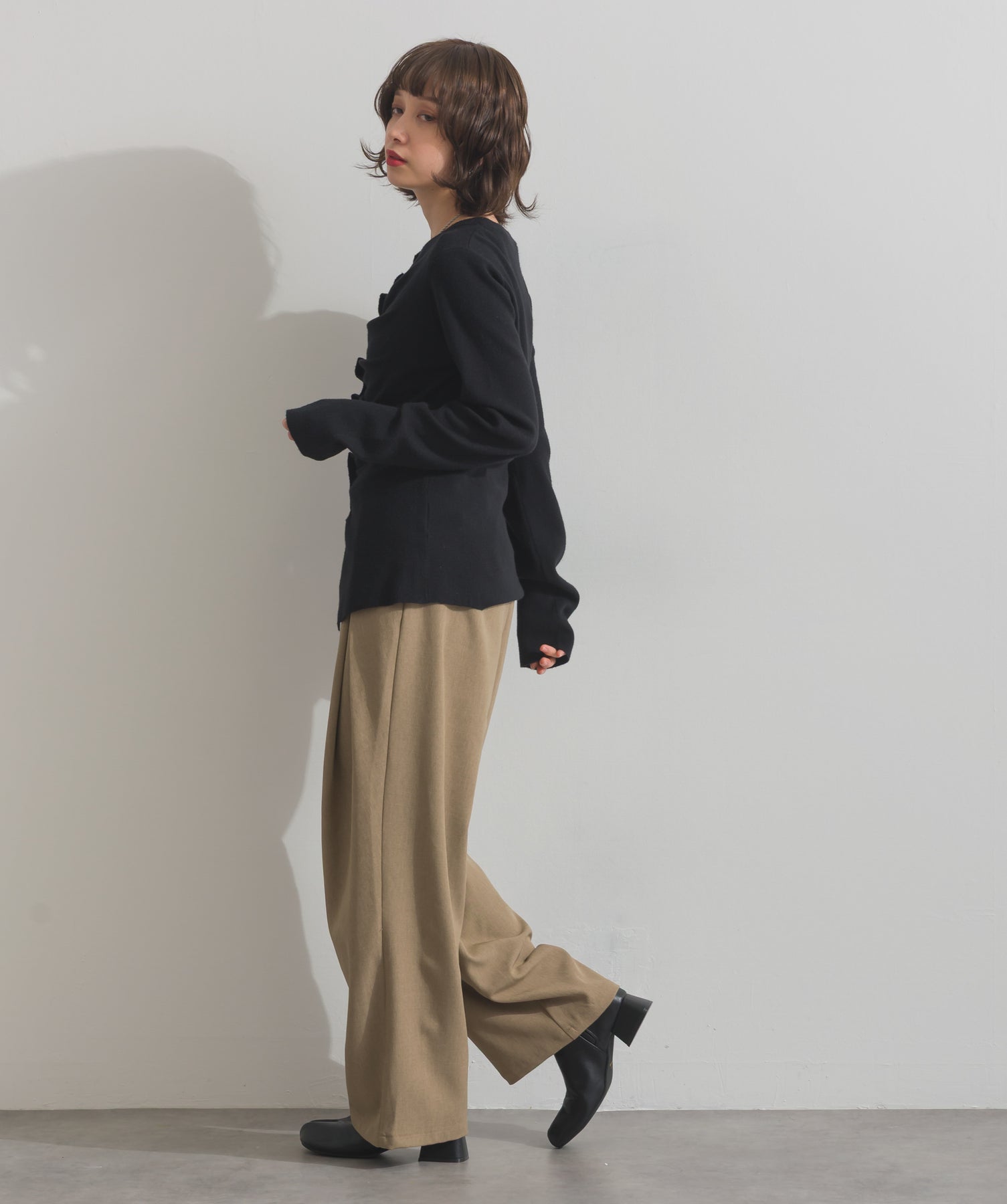 センシュアルに魅せる、計算されたギャザーデザイン。甘さ控えめ、なのにフェミニン。センターのギャザーが視線を引き寄せる、洗練カーディガン。-material-程よい厚みと柔らかさを備えたレーヨン混ニット素材を使用。ストレッチ性があり、心地よく身体にフィット。シーズンレスで着用できるライトな質感で、インナー使いにも活躍します。-design-フロントにあしらわれた大胆かつ繊細なギャザーが、豊かな陰影とリズムを生み出し、シンプルながらも奥行きのある表情を演出します。身体のラインを美しく魅せるコンパクトなシルエットで、ハイウエストのボトムスや、裾からレースを覗かせるレイヤードスタイルとも相性抜群。袖口はやや長めに設計され、手元にニュアンスを加えながら華奢見えも叶えます。大人の日常に洗練されたアクセントを加える一着です。