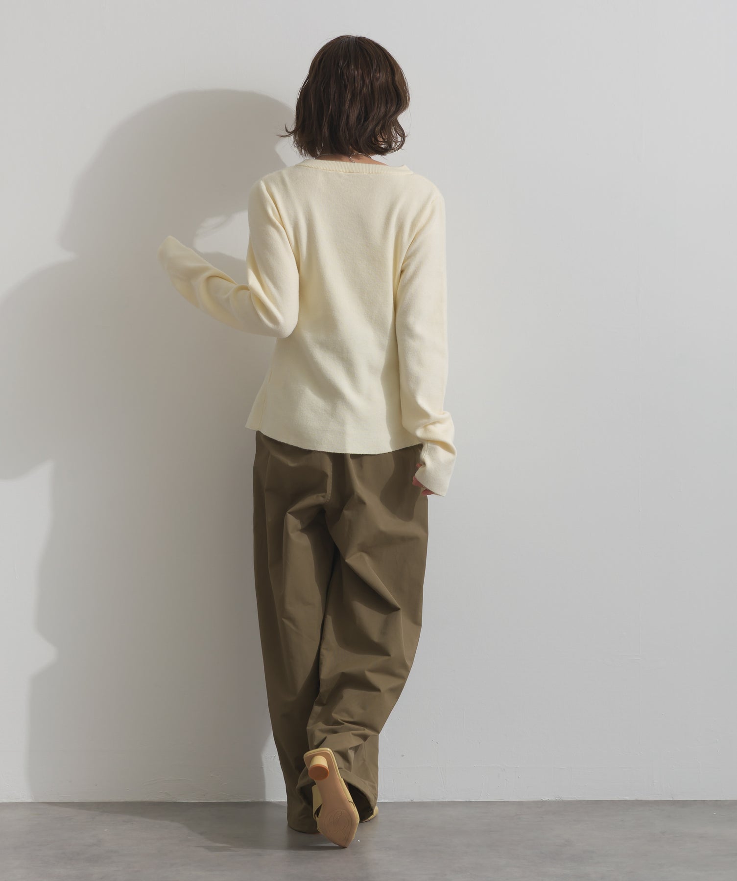 ・お手入れ方法:手洗い水温30℃以下、おしゃれ着用液体洗剤または中性洗剤のご使用をお薦めします。素材の特性上、洗濯の際に色落ち・縮みが生じる恐れがありますので単独で・短時間でのお洗濯をお薦めします。洗濯後は形を整えてから陰干ししてください。アイロンはご使用いただけません。※タンブラー乾燥は控え、色物とは分けてください。濡れたままの状態で擦れると、色落ち色移りすることがあります。つけ置き洗いや雨や汗で濡れたまま放置は避け、速やかに処理してください。着用中の摩擦や汗、水濡れ、濃淡差があるものとの重ね着にご注意ください。また、素材の特性上伸びやすい為ハンガーの使用はお控えいただき畳んで保管ください。