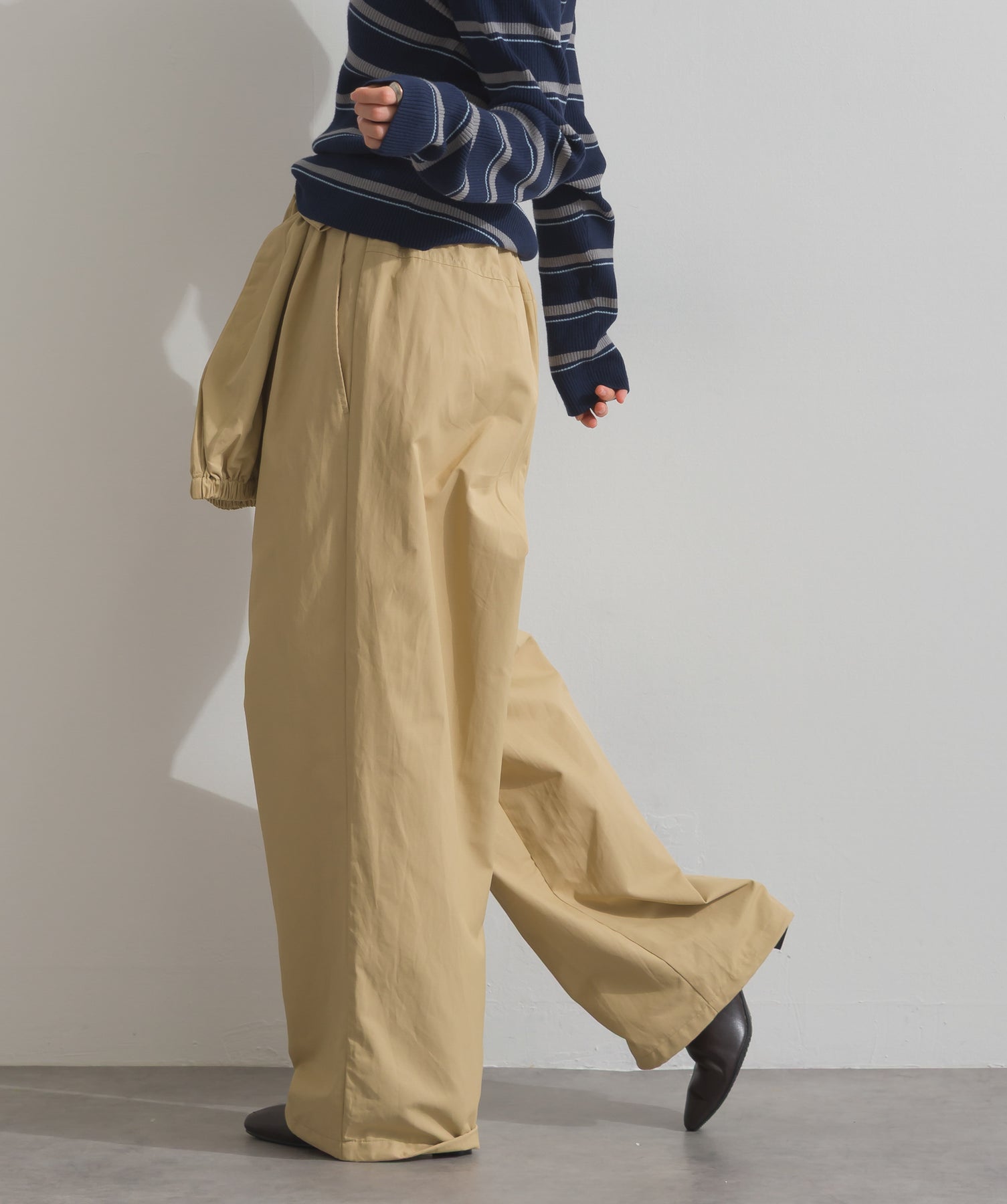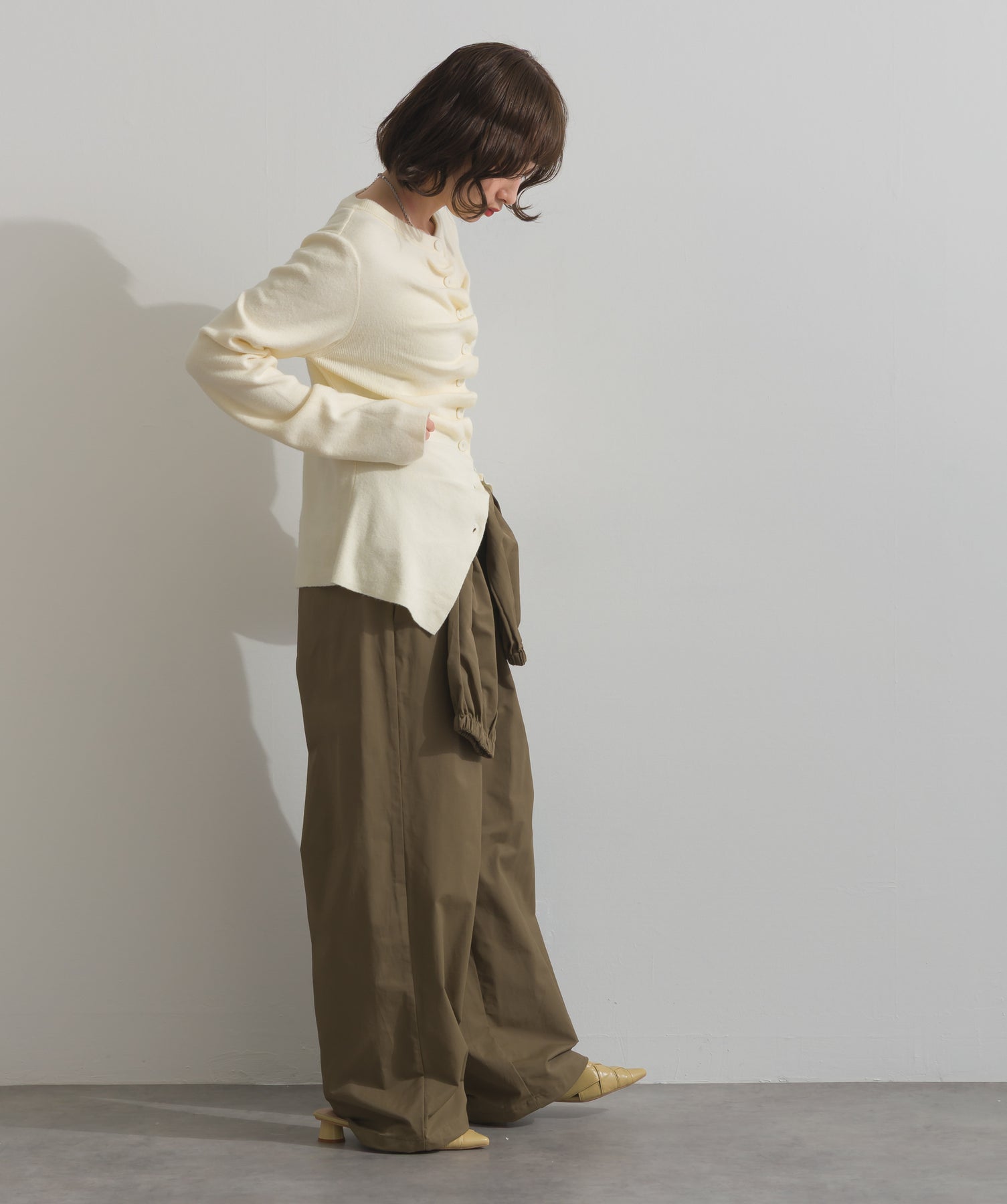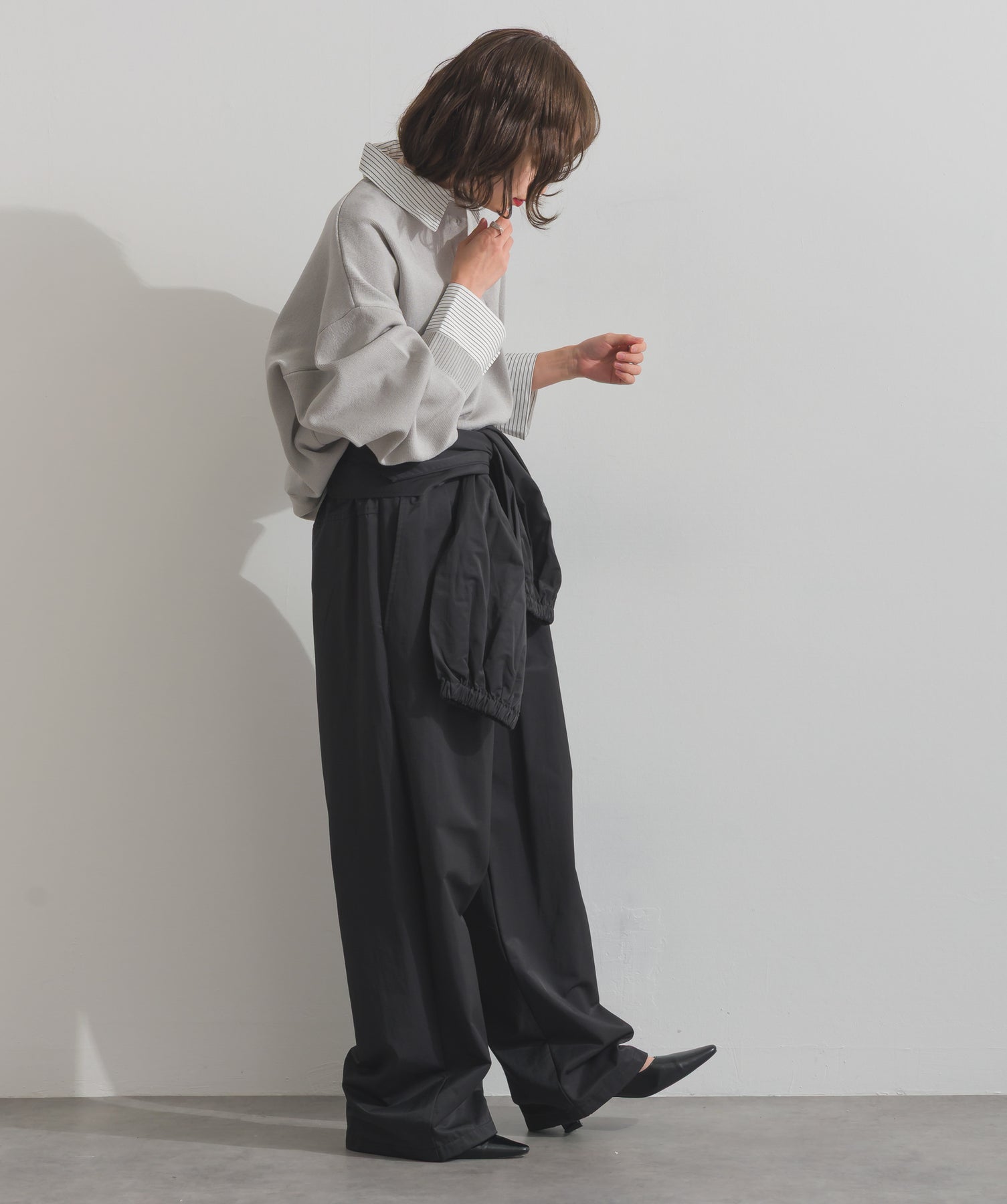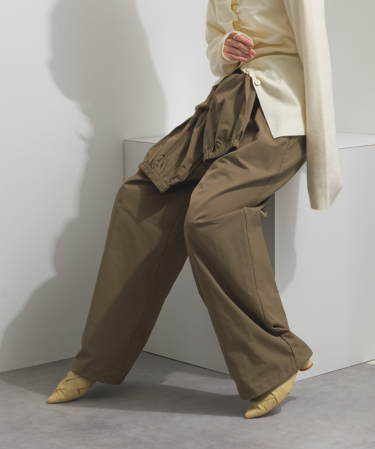 ひと巻きで差がつく。アーバンムードな主役ワイド。腰にラフに巻いた“袖”のようなディテールがアクセント。シンプルな中にエッジを効かせた、感度高めのデザインボトム。-material-軽量でハリのある合繊ツイル素材を使用。さらりとした肌触りでシーズンレスに着用可能。動きやすく、シワになりにくい機能性も備えた高バランス素材で、きれいめにもカジュアルにもマッチします。-design-ウエスト部分に、まるでトップスの袖を腰巻きしたかのようなディテールをあしらった遊び心のあるデザインが最大の特徴。スタイリングに奥行きを生み出す立体的なアクセントが、シンプルなコーディネートを一気にモードへと引き上げます。