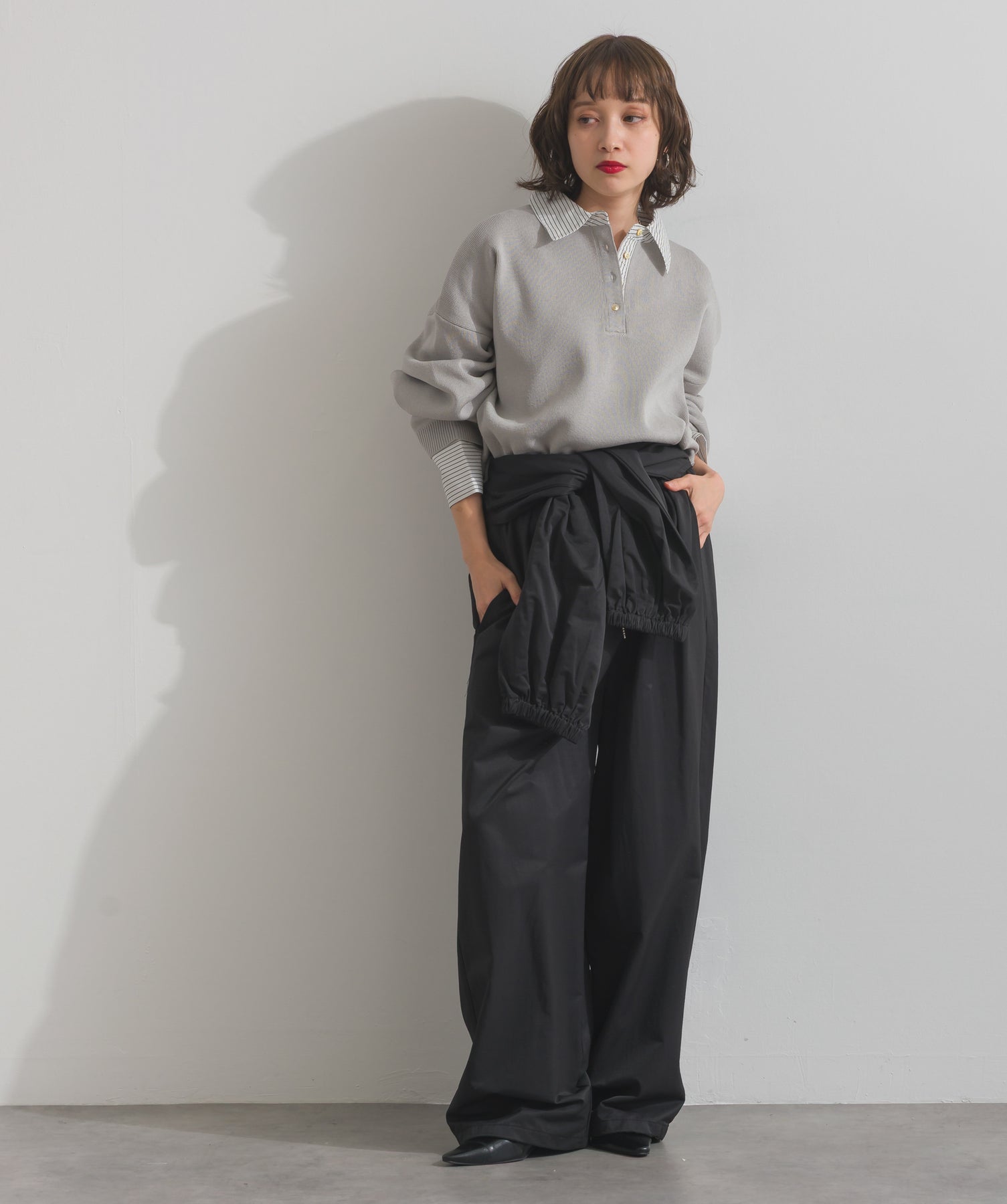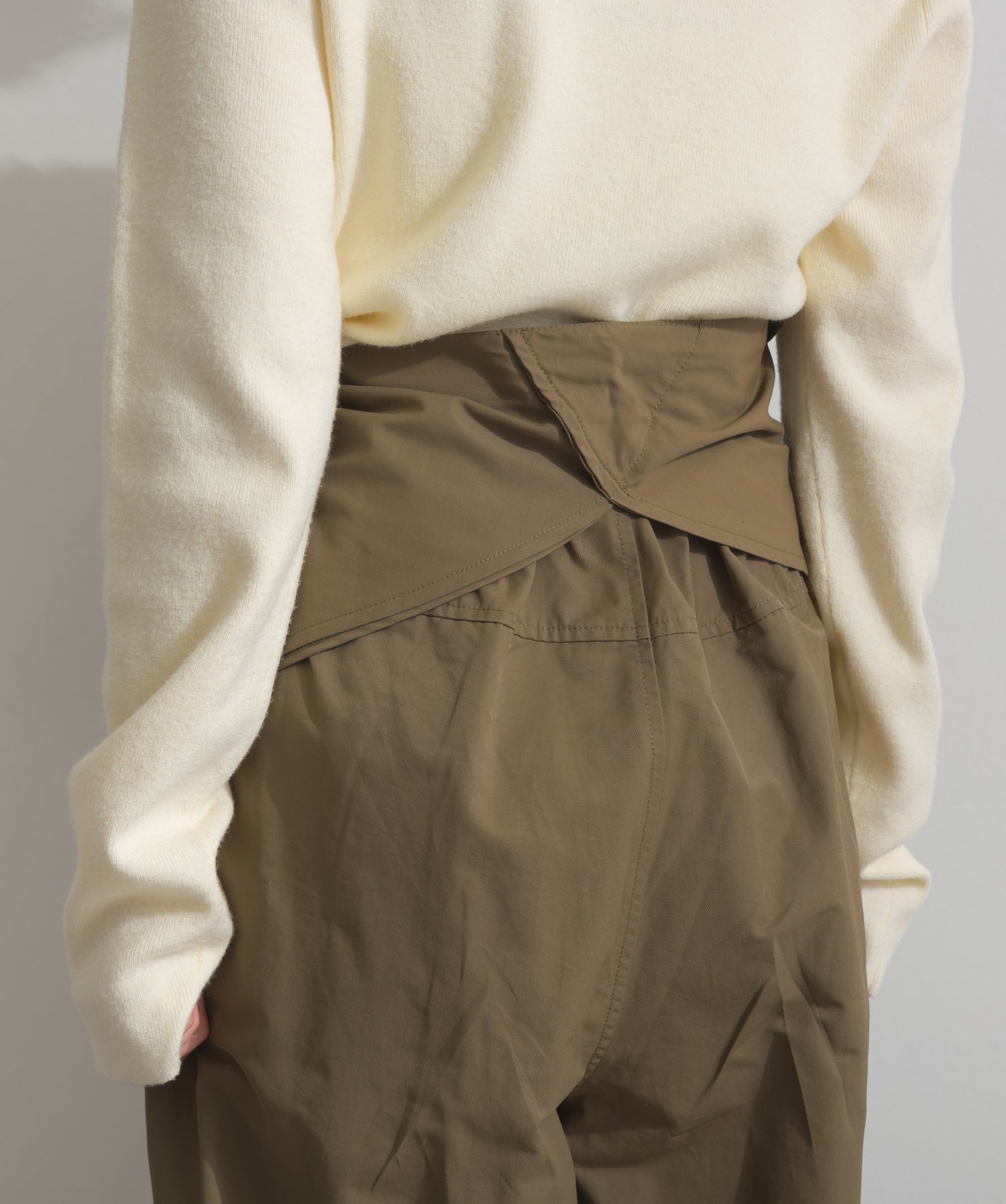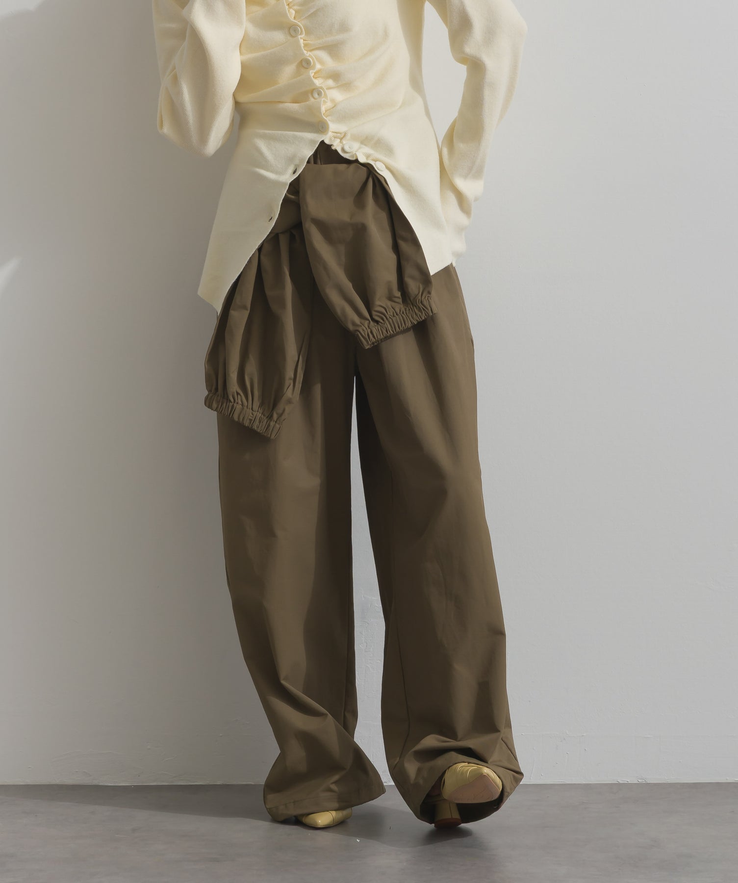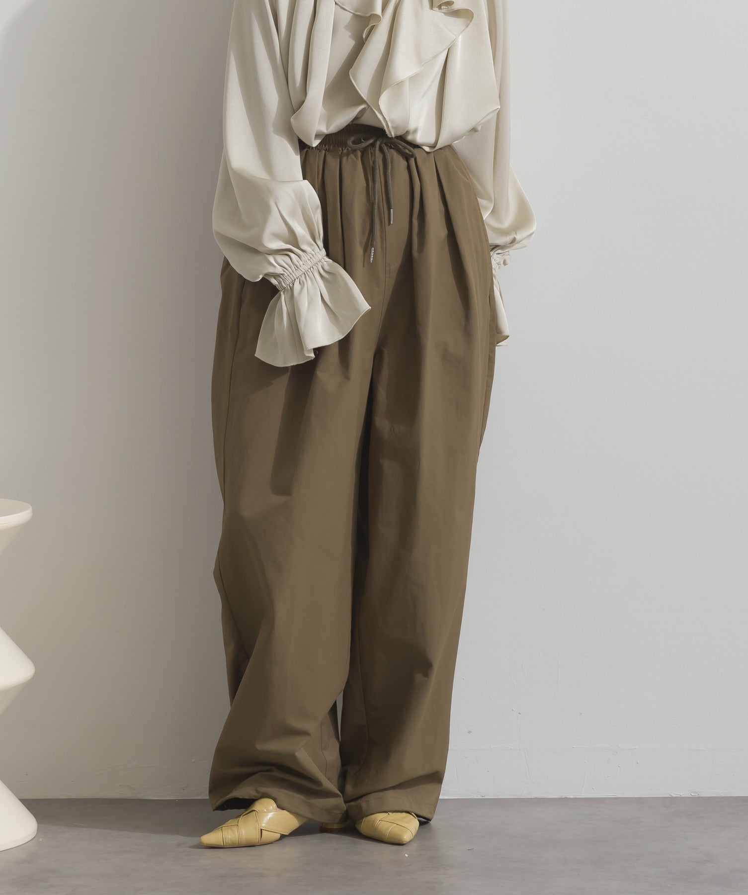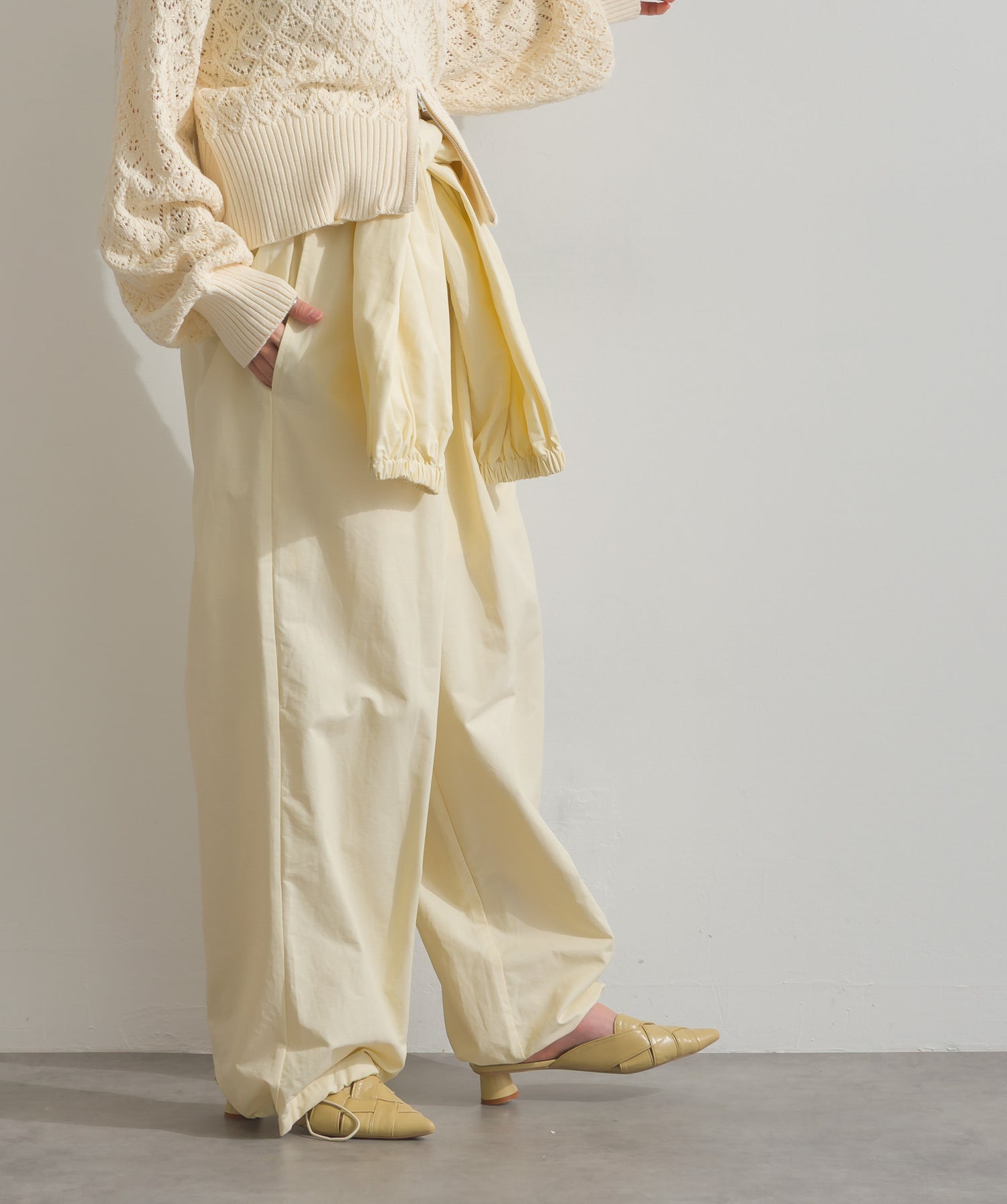 ひと巻きで差がつく。アーバンムードな主役ワイド。腰にラフに巻いた“袖”のようなディテールがアクセント。シンプルな中にエッジを効かせた、感度高めのデザインボトム。-material-軽量でハリのある合繊ツイル素材を使用。さらりとした肌触りでシーズンレスに着用可能。動きやすく、シワになりにくい機能性も備えた高バランス素材で、きれいめにもカジュアルにもマッチします。-design-ウエスト部分に、まるでトップスの袖を腰巻きしたかのようなディテールをあしらった遊び心のあるデザインが最大の特徴。スタイリングに奥行きを生み出す立体的なアクセントが、シンプルなコーディネートを一気にモードへと引き上げます。