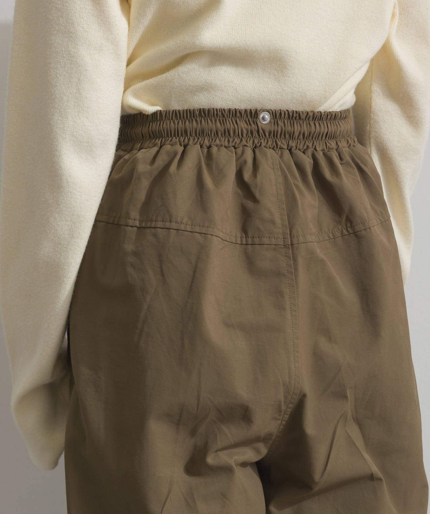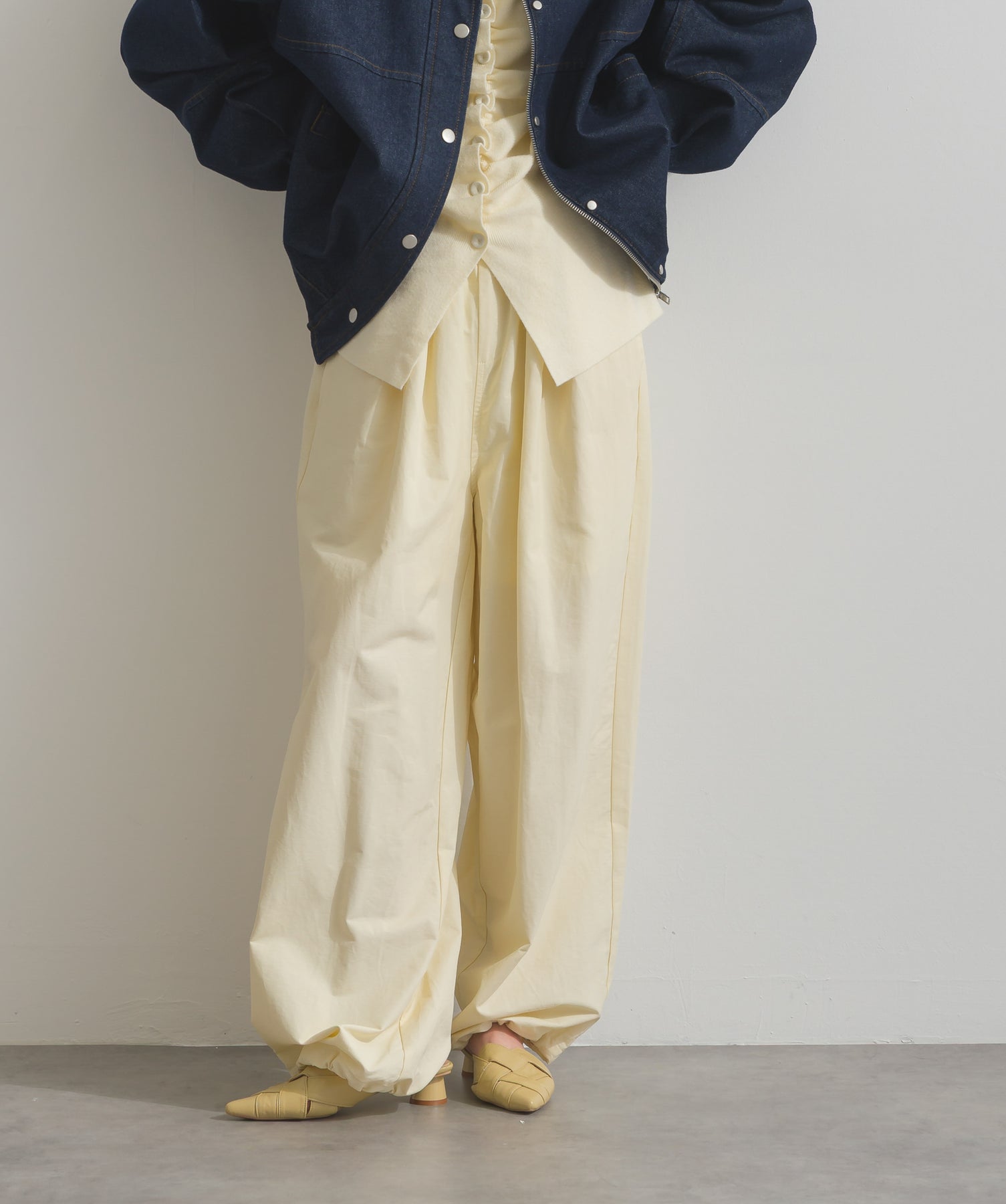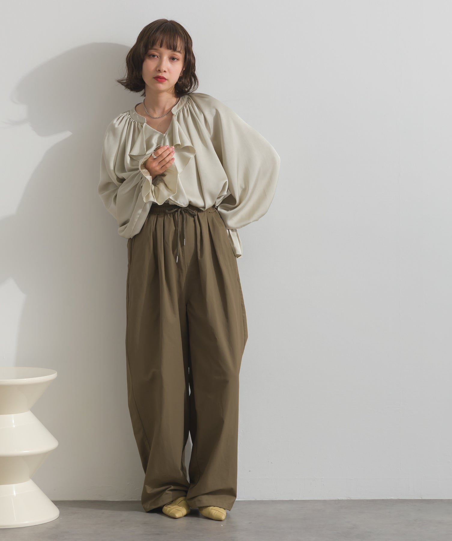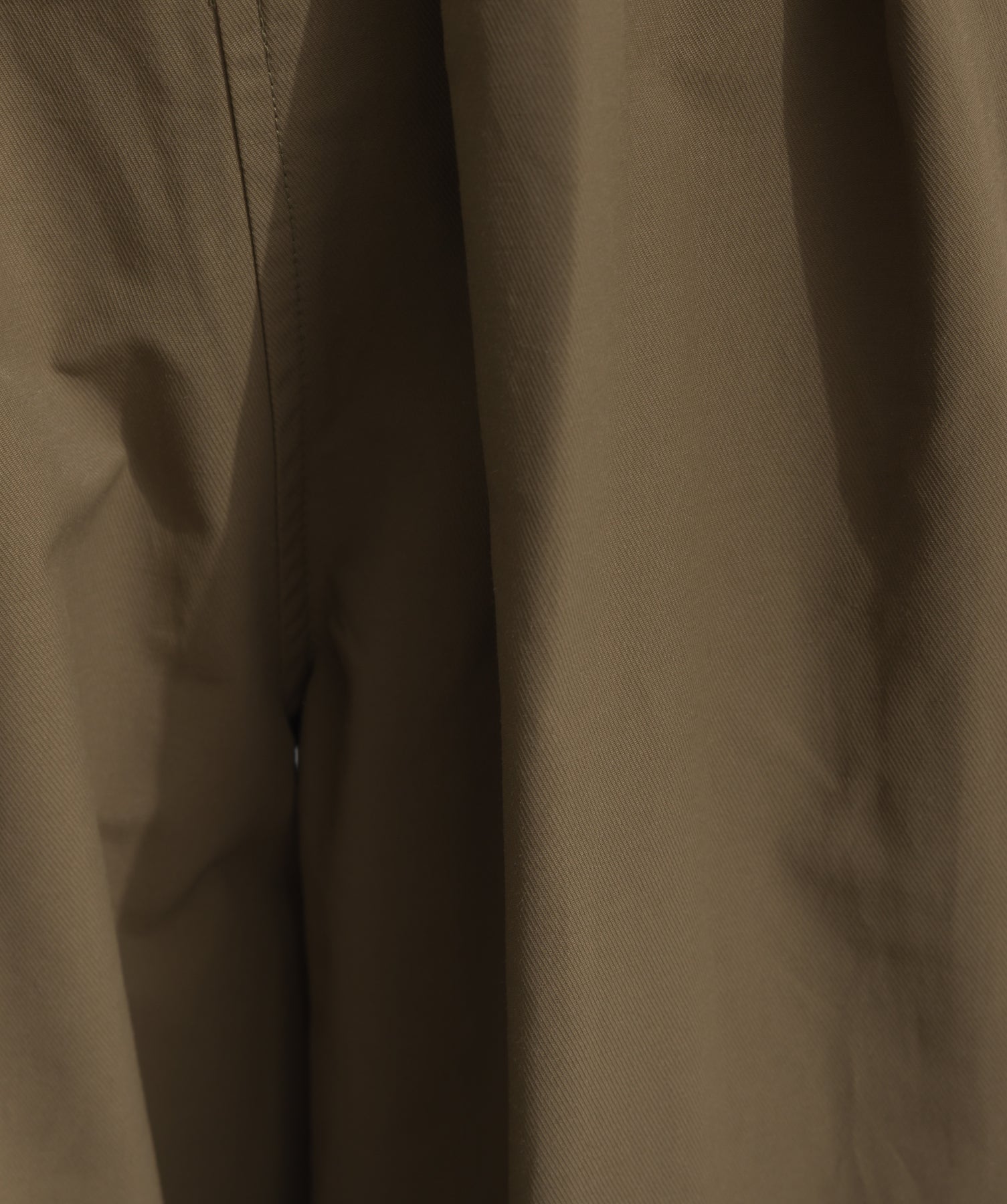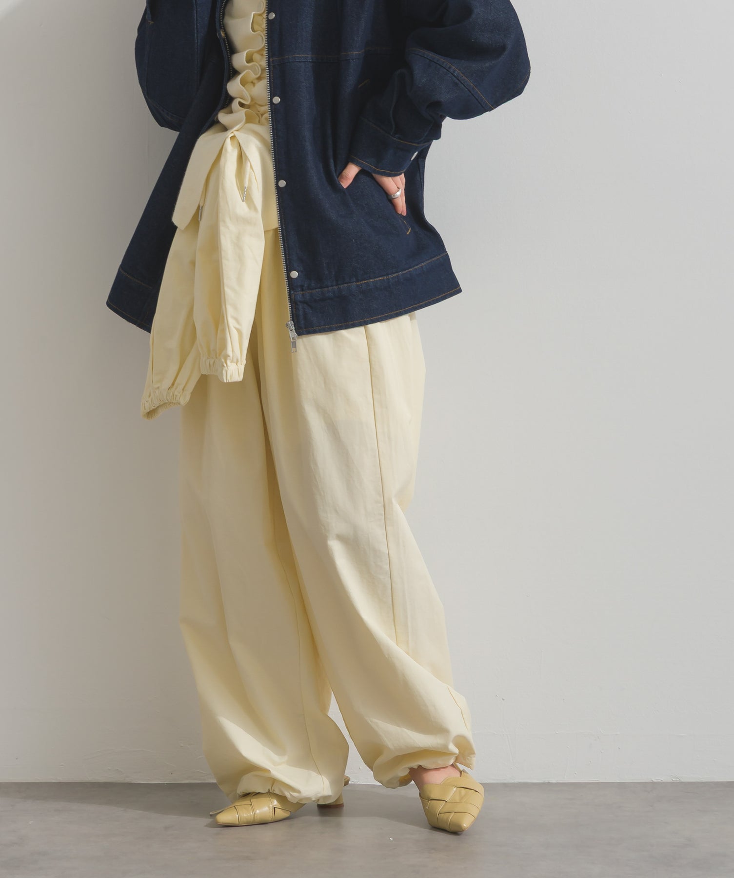 ひと巻きで差がつく。アーバンムードな主役ワイド。腰にラフに巻いた“袖”のようなディテールがアクセント。シンプルな中にエッジを効かせた、感度高めのデザインボトム。-material-軽量でハリのある合繊ツイル素材を使用。さらりとした肌触りでシーズンレスに着用可能。動きやすく、シワになりにくい機能性も備えた高バランス素材で、きれいめにもカジュアルにもマッチします。-design-ウエスト部分に、まるでトップスの袖を腰巻きしたかのようなディテールをあしらった遊び心のあるデザインが最大の特徴。スタイリングに奥行きを生み出す立体的なアクセントが、シンプルなコーディネートを一気にモードへと引き上げます。