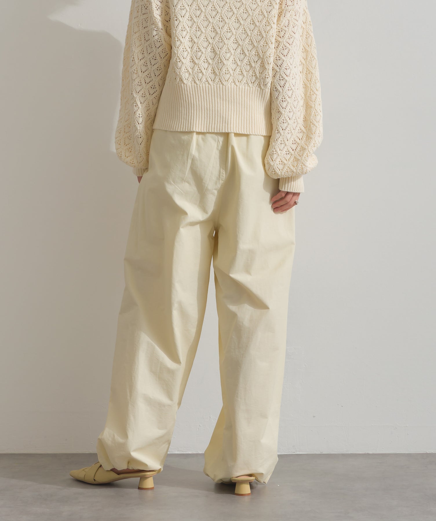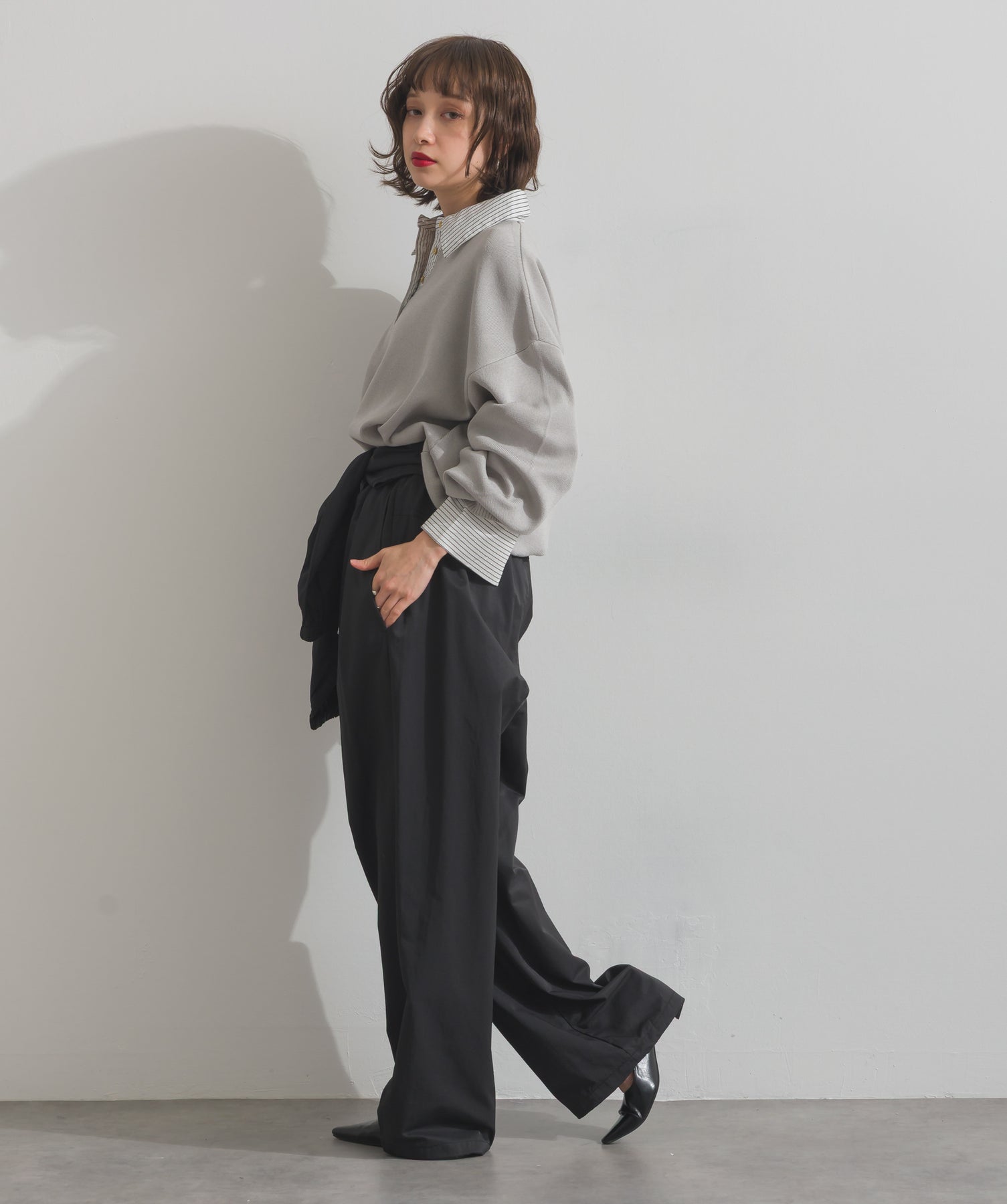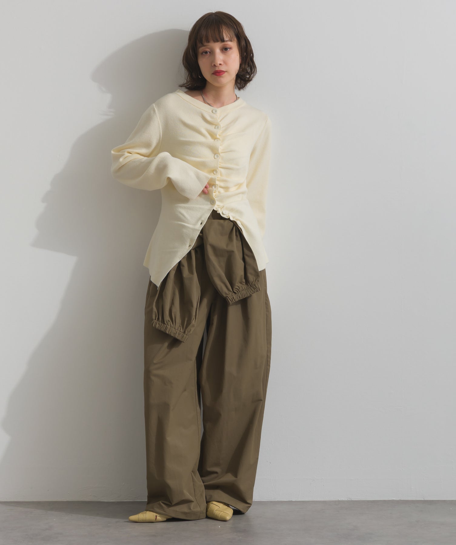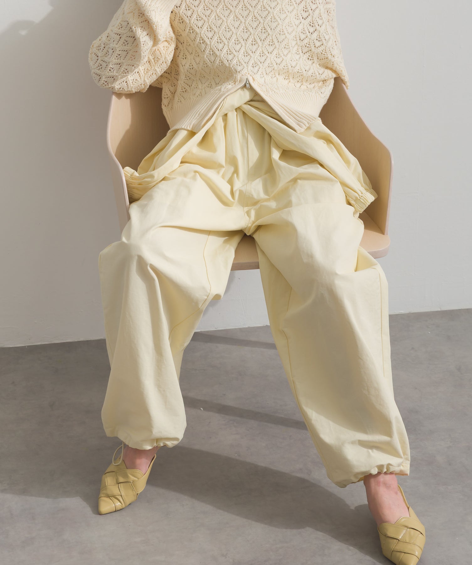 ひと巻きで差がつく。アーバンムードな主役ワイド。腰にラフに巻いた“袖”のようなディテールがアクセント。シンプルな中にエッジを効かせた、感度高めのデザインボトム。-material-軽量でハリのある合繊ツイル素材を使用。さらりとした肌触りでシーズンレスに着用可能。動きやすく、シワになりにくい機能性も備えた高バランス素材で、きれいめにもカジュアルにもマッチします。-design-ウエスト部分に、まるでトップスの袖を腰巻きしたかのようなディテールをあしらった遊び心のあるデザインが最大の特徴。スタイリングに奥行きを生み出す立体的なアクセントが、シンプルなコーディネートを一気にモードへと引き上げます。