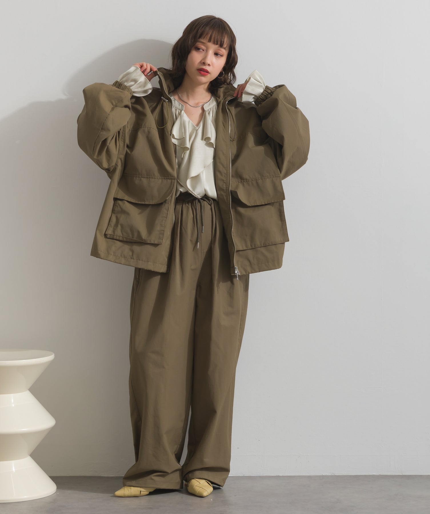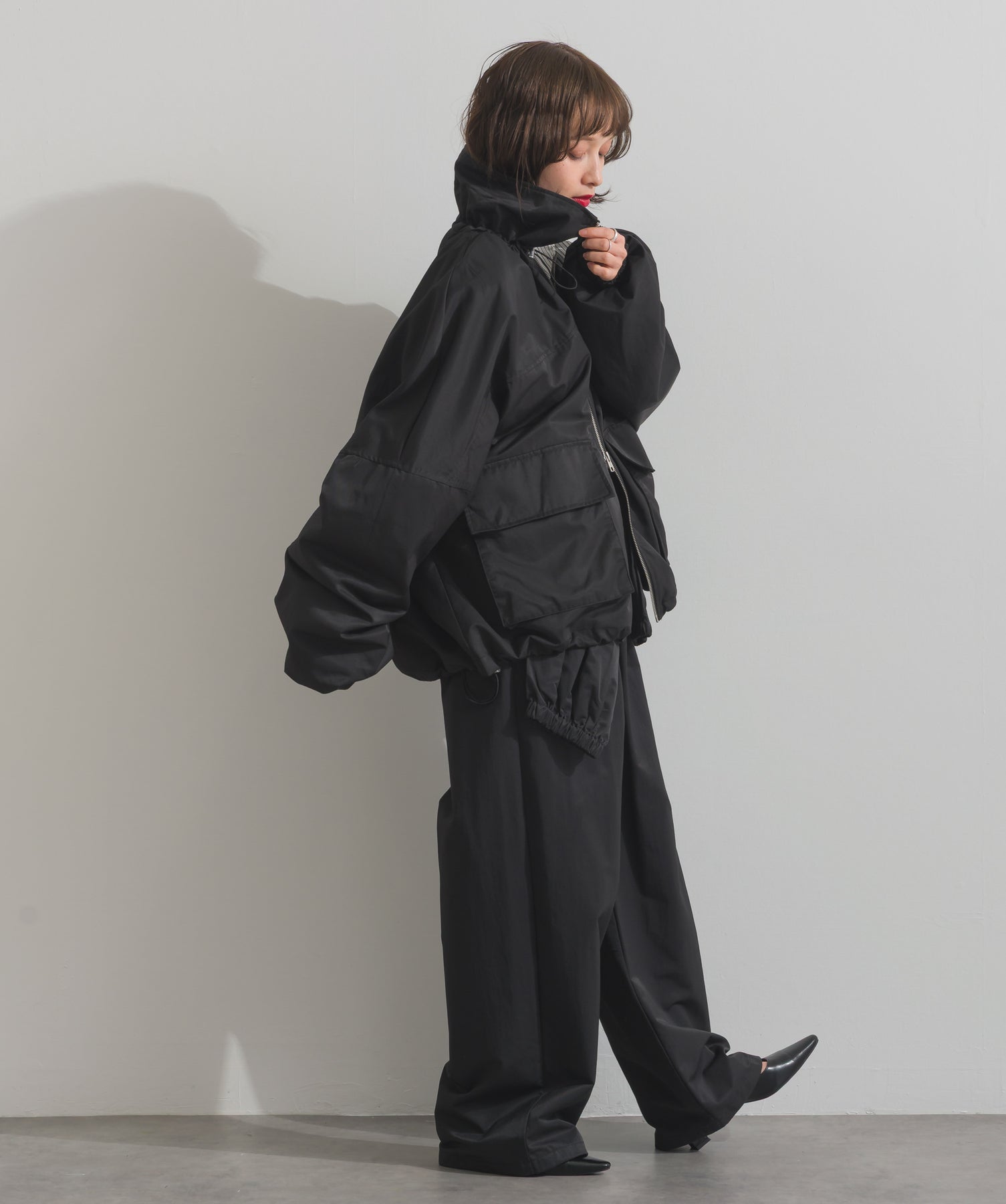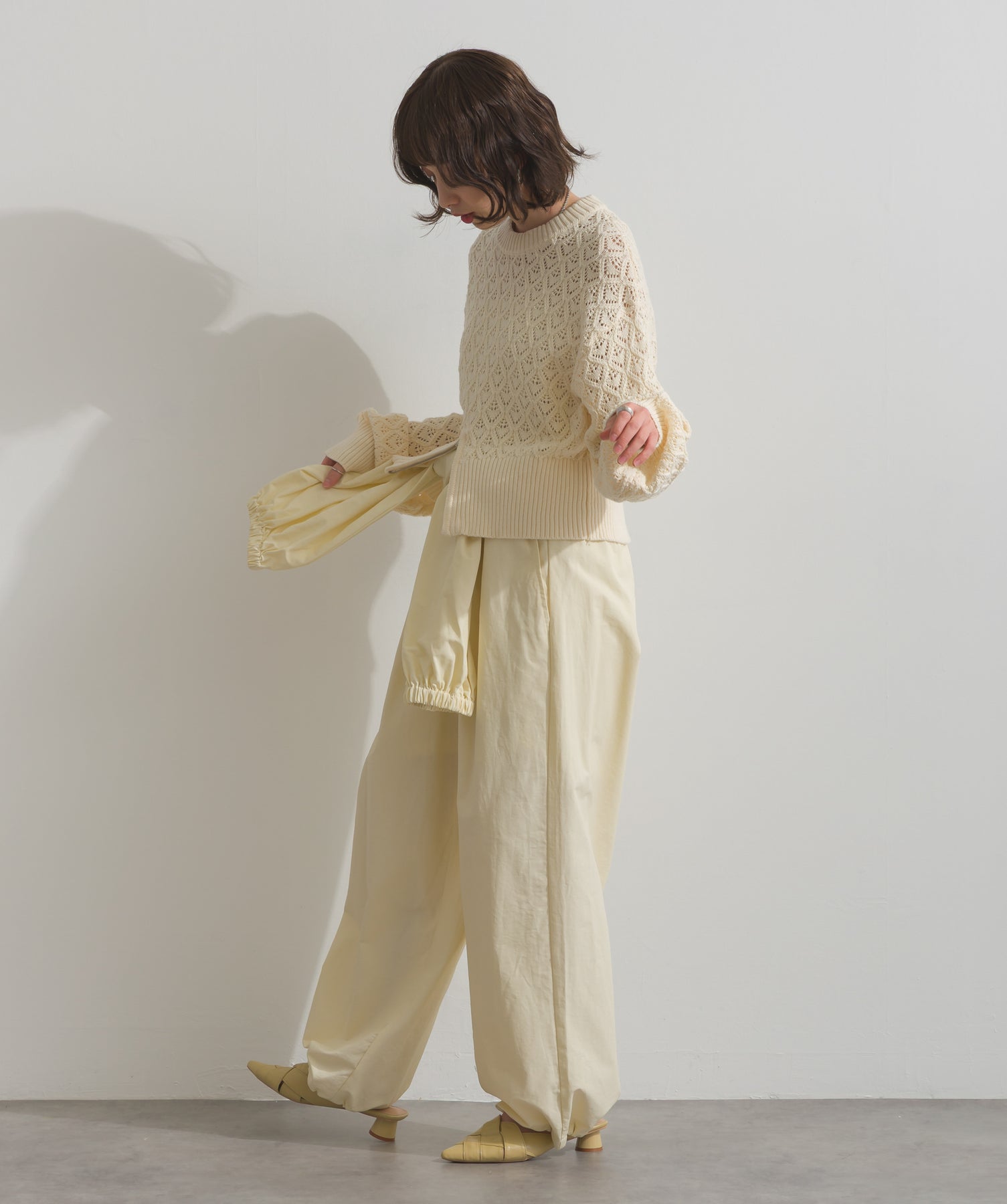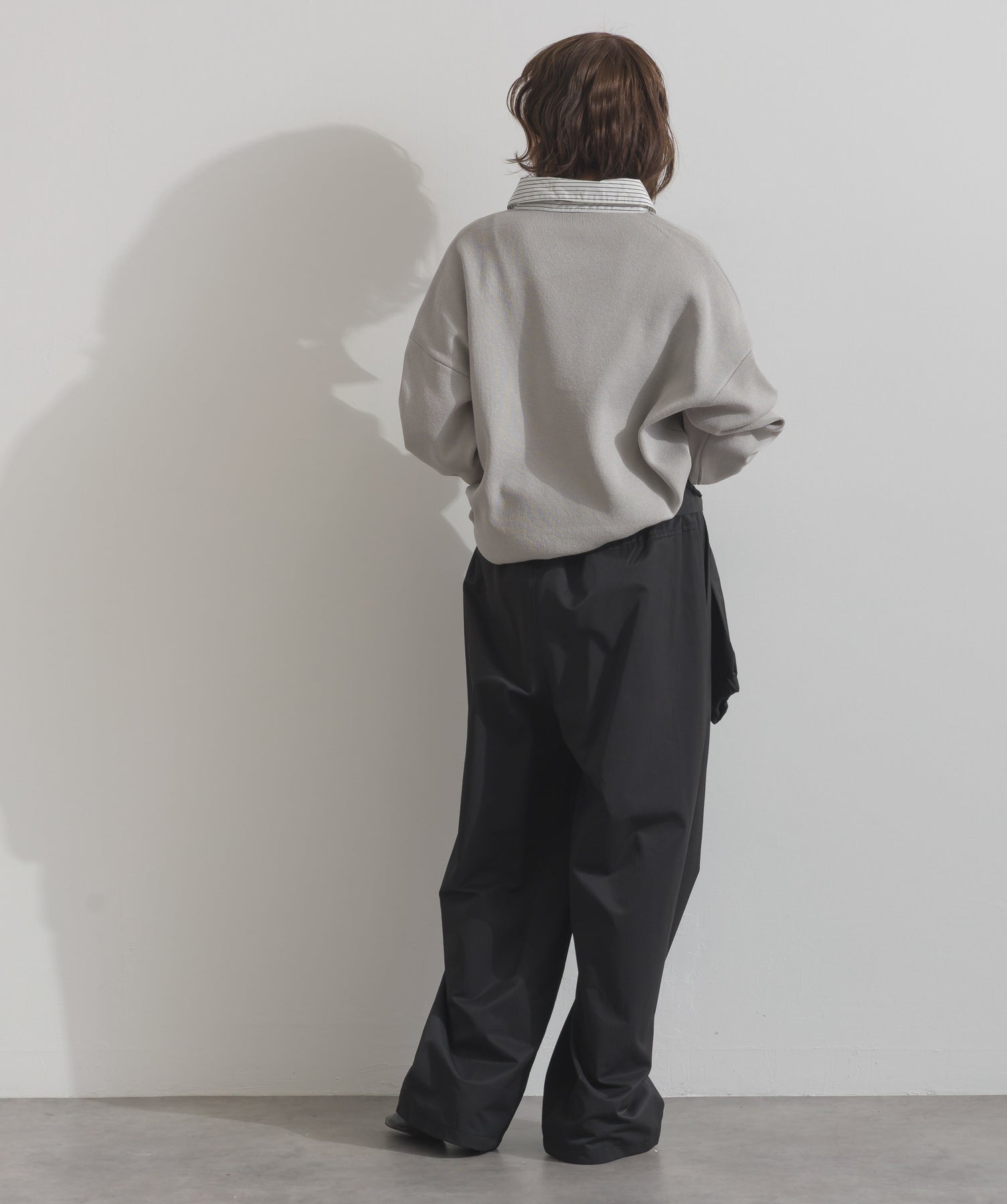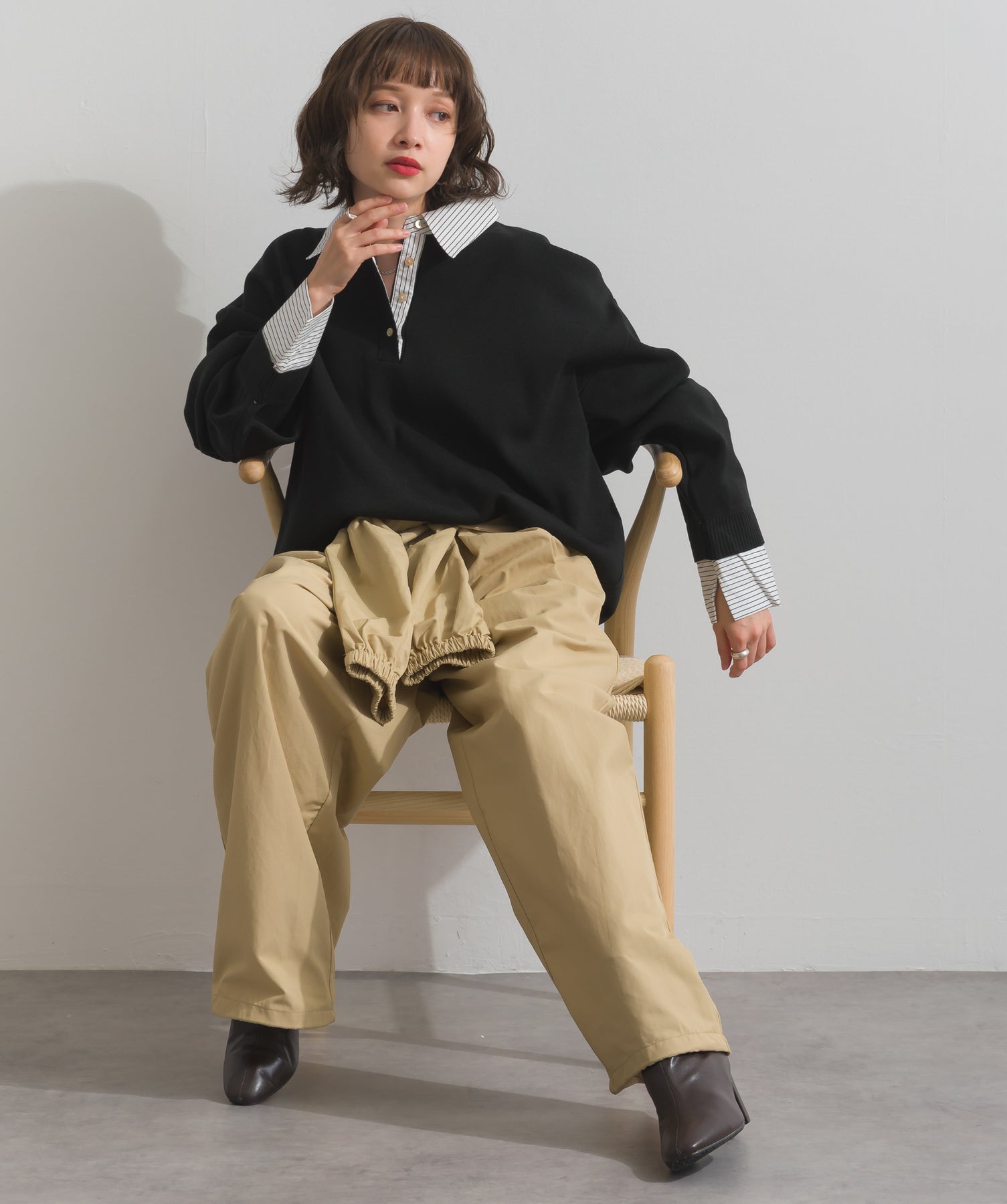 ひと巻きで差がつく。アーバンムードな主役ワイド。腰にラフに巻いた“袖”のようなディテールがアクセント。シンプルな中にエッジを効かせた、感度高めのデザインボトム。-material-軽量でハリのある合繊ツイル素材を使用。さらりとした肌触りでシーズンレスに着用可能。動きやすく、シワになりにくい機能性も備えた高バランス素材で、きれいめにもカジュアルにもマッチします。-design-ウエスト部分に、まるでトップスの袖を腰巻きしたかのようなディテールをあしらった遊び心のあるデザインが最大の特徴。スタイリングに奥行きを生み出す立体的なアクセントが、シンプルなコーディネートを一気にモードへと引き上げます。