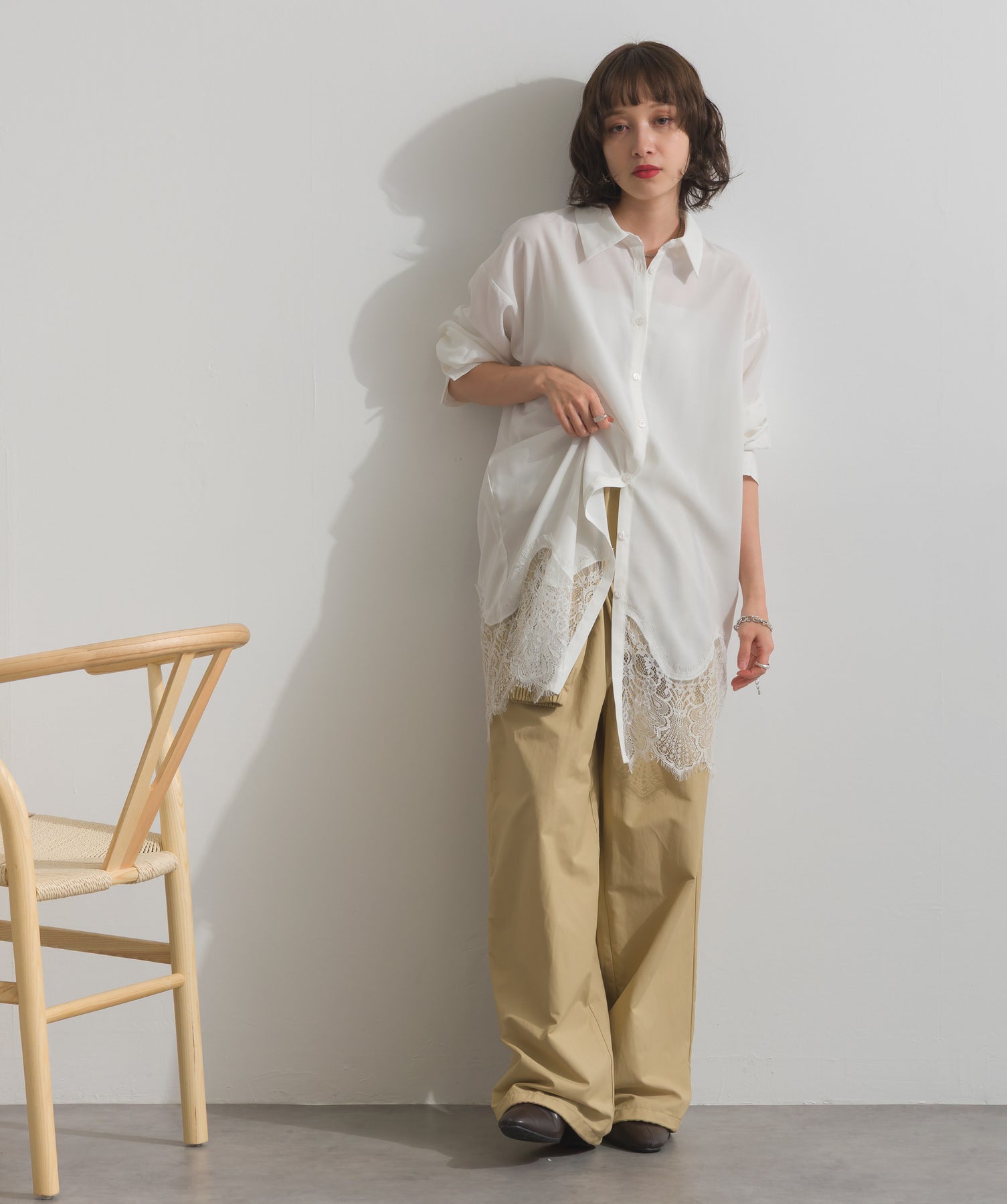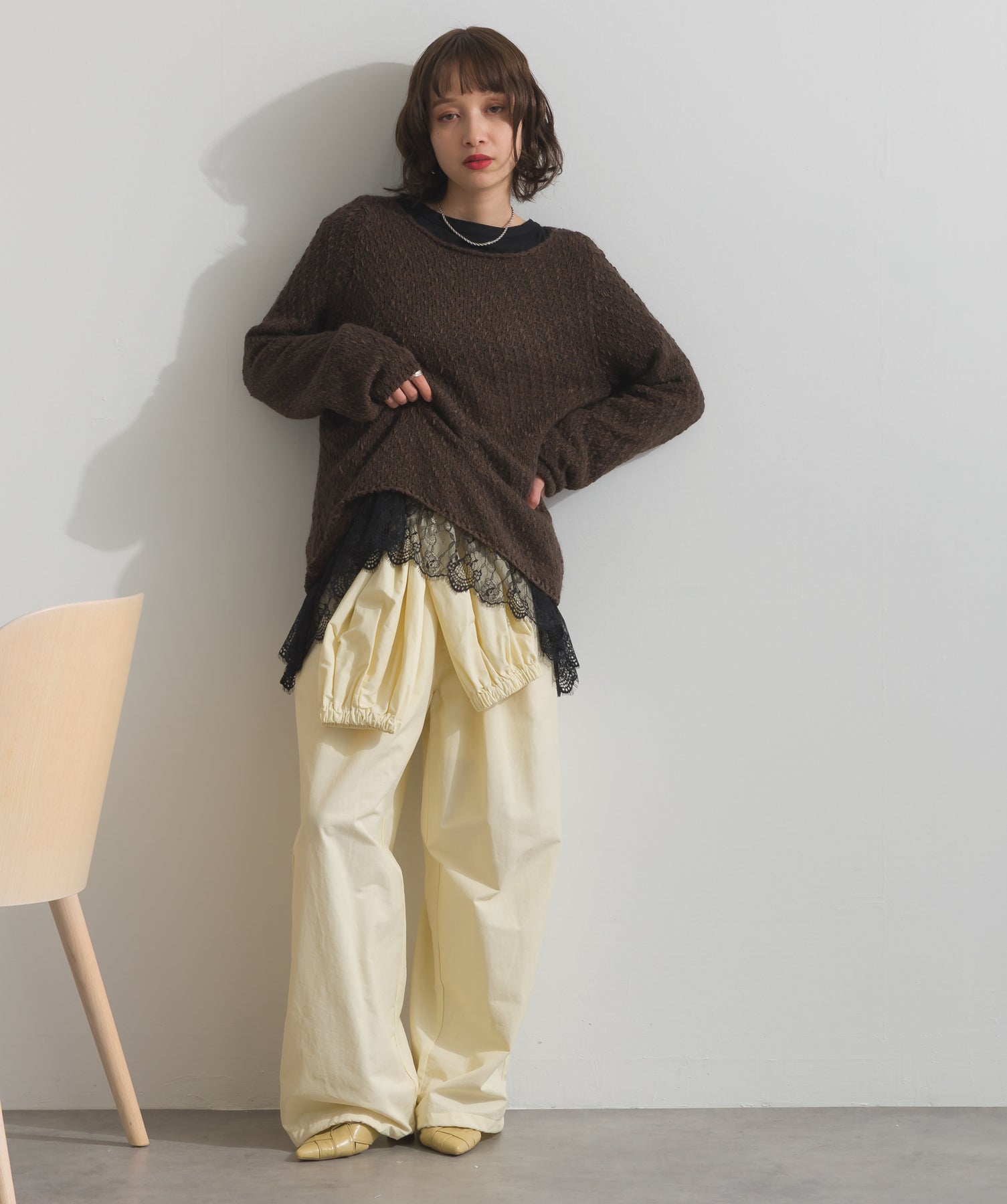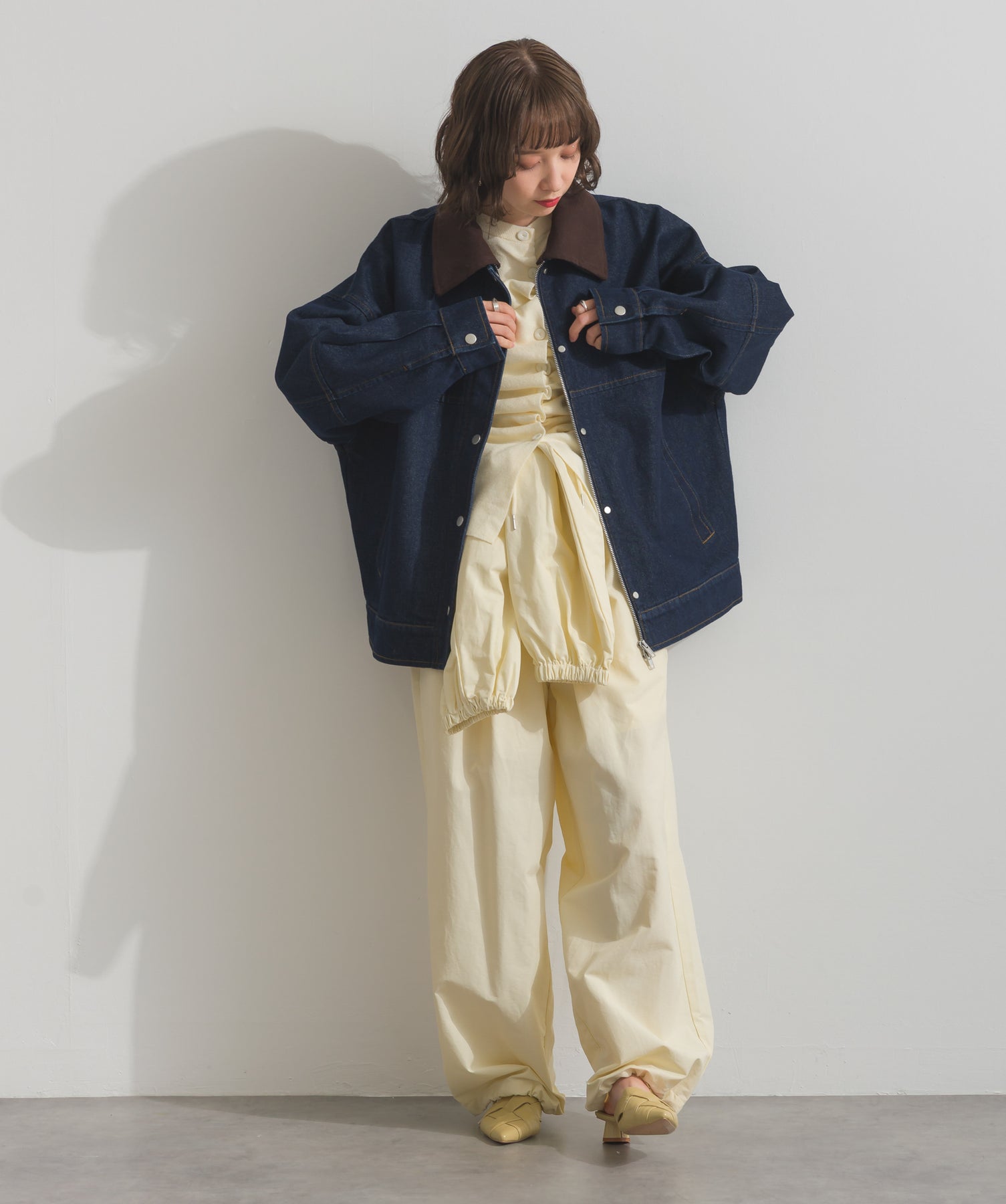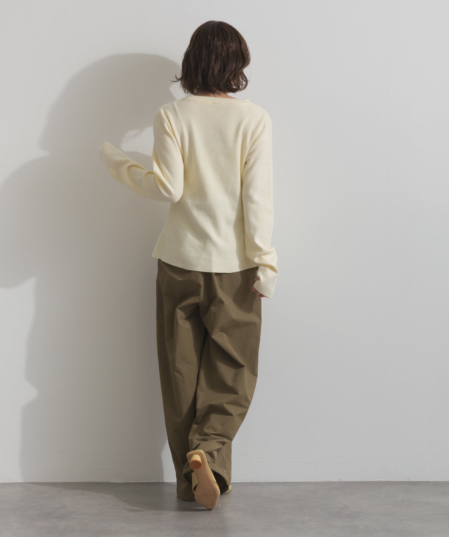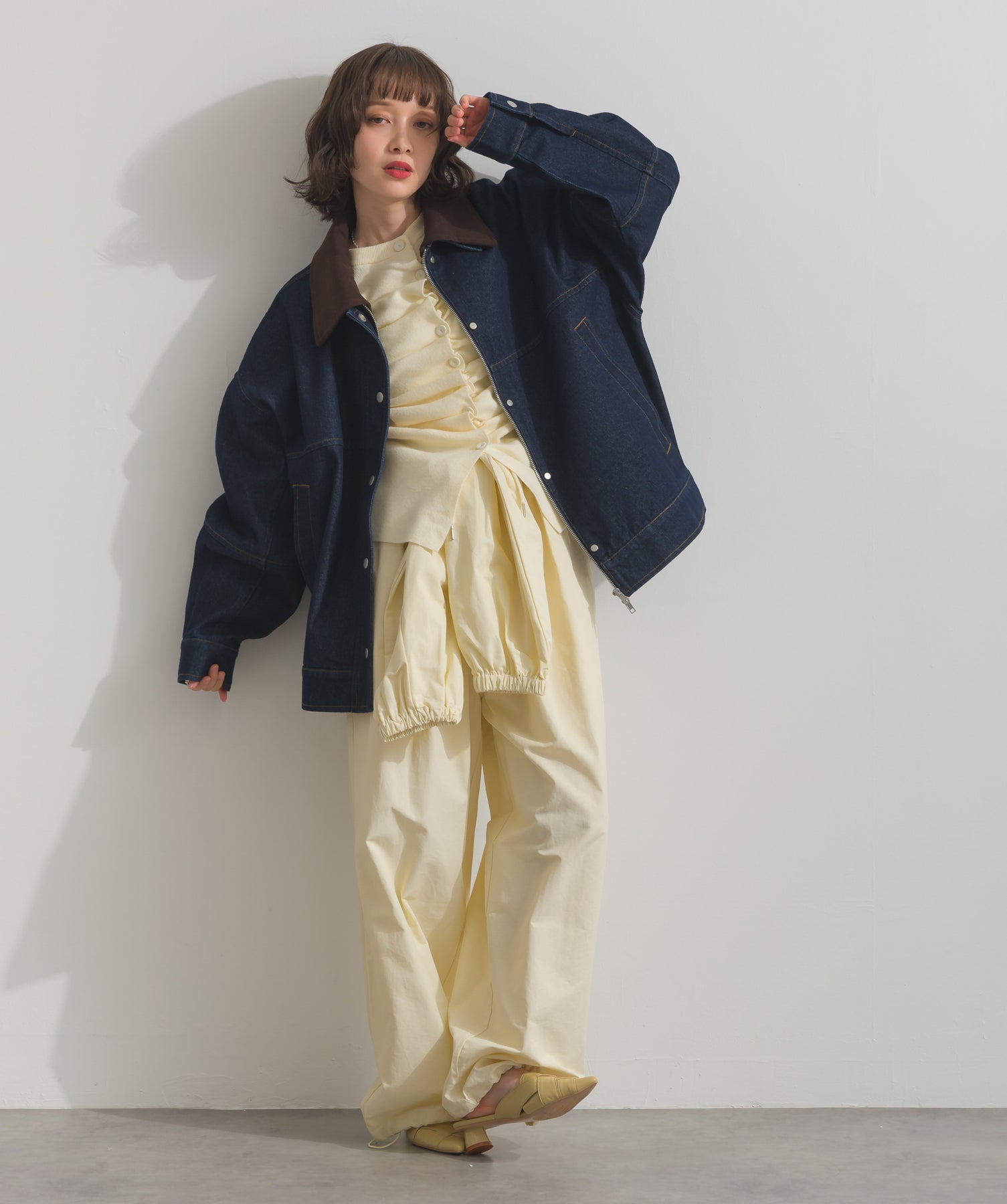 ひと巻きで差がつく。アーバンムードな主役ワイド。腰にラフに巻いた“袖”のようなディテールがアクセント。シンプルな中にエッジを効かせた、感度高めのデザインボトム。-material-軽量でハリのある合繊ツイル素材を使用。さらりとした肌触りでシーズンレスに着用可能。動きやすく、シワになりにくい機能性も備えた高バランス素材で、きれいめにもカジュアルにもマッチします。-design-ウエスト部分に、まるでトップスの袖を腰巻きしたかのようなディテールをあしらった遊び心のあるデザインが最大の特徴。スタイリングに奥行きを生み出す立体的なアクセントが、シンプルなコーディネートを一気にモードへと引き上げます。