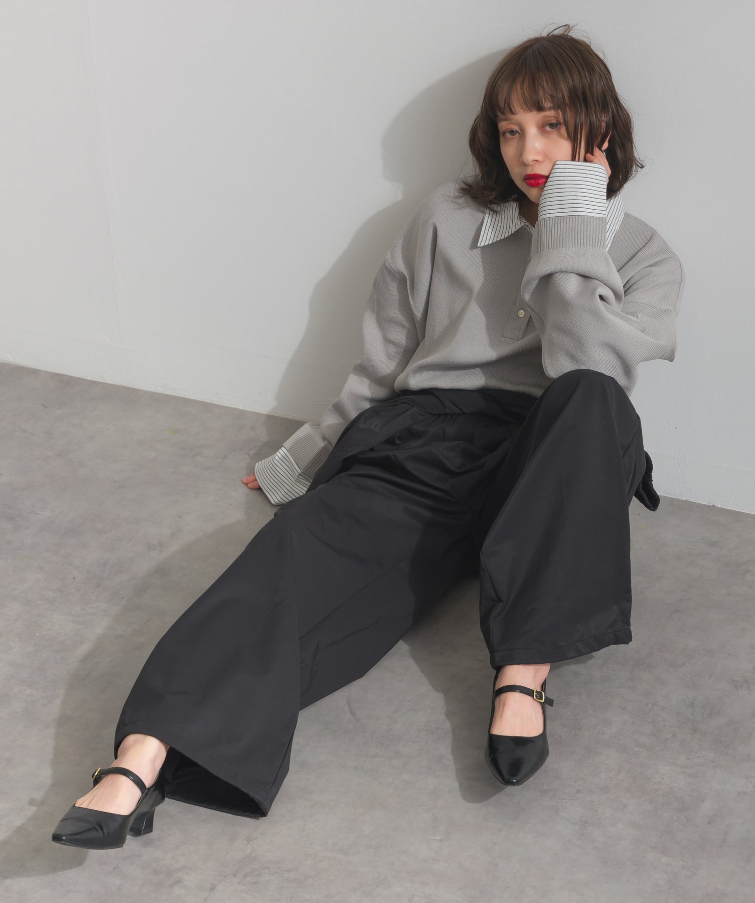 巻きディテール部分は取り外し可能。シンプルなワイドパンツとしても着用できる2WAY仕様で、シーンやスタイリングに合わせたアレンジが楽しめます。ボリュームのあるワイドシルエットが体型をさりげなくカバーしつつ、裾のタックディテールが足元にニュアンスをプラス。トップスインで巻きデザインを際立たせれば、抜け感のある都会的なスタイルが即完成。