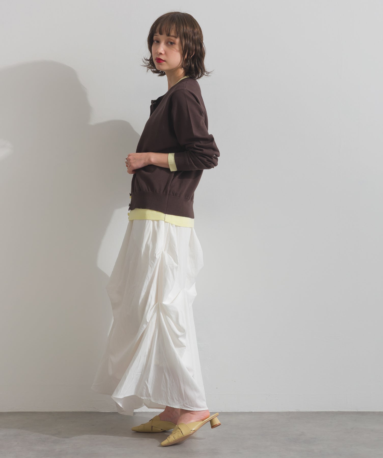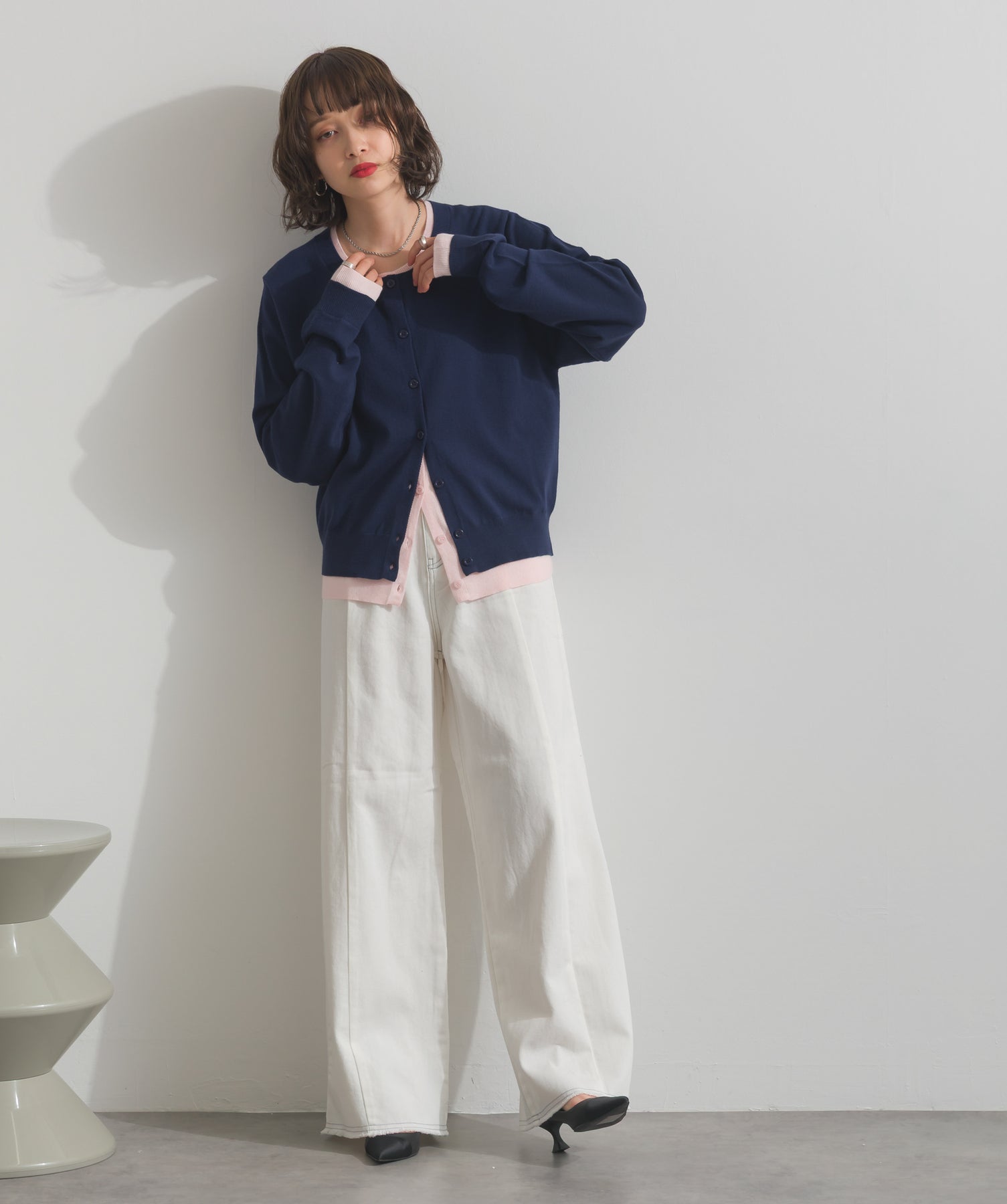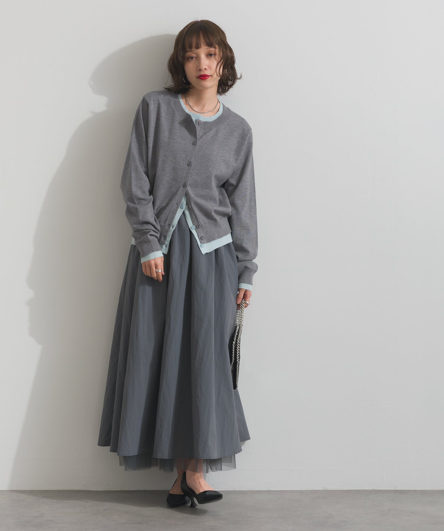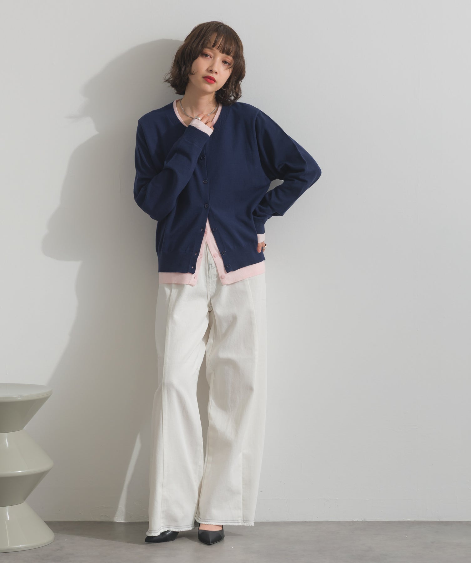 重ね着風ディテールで、シンプルに差がつく一枚。レイヤードしたような配色ラインが効いた、品よく遊べる大人のニットカーデ。-material-滑らかでしっとりとした風合いのレーヨン混ニット素材を採用。伸縮性に優れ、ストレスのない着心地を実現。ほどよい厚みでロングシーズン活躍し、肌寒い季節にはインナーとしても着用可能な万能素材。-design-裾・袖・襟元に異なるカラーをあしらい、レイヤードしているかのようなこなれたデザインがポイント。シンプルなクルーネックとコンパクトすぎないサイズ感で、スカートにもパンツにも合わせやすいシルエット。羽織としてはもちろん、ボタンを留めてトップス感覚でも使える一枚。カラーによって印象が変わり、ベーシックから遊び心ある配色までラインナップ。