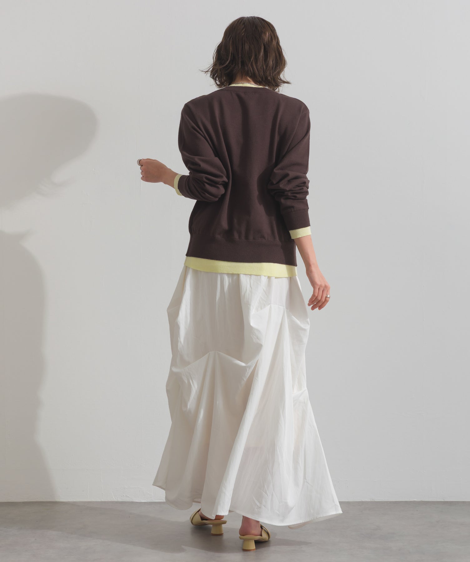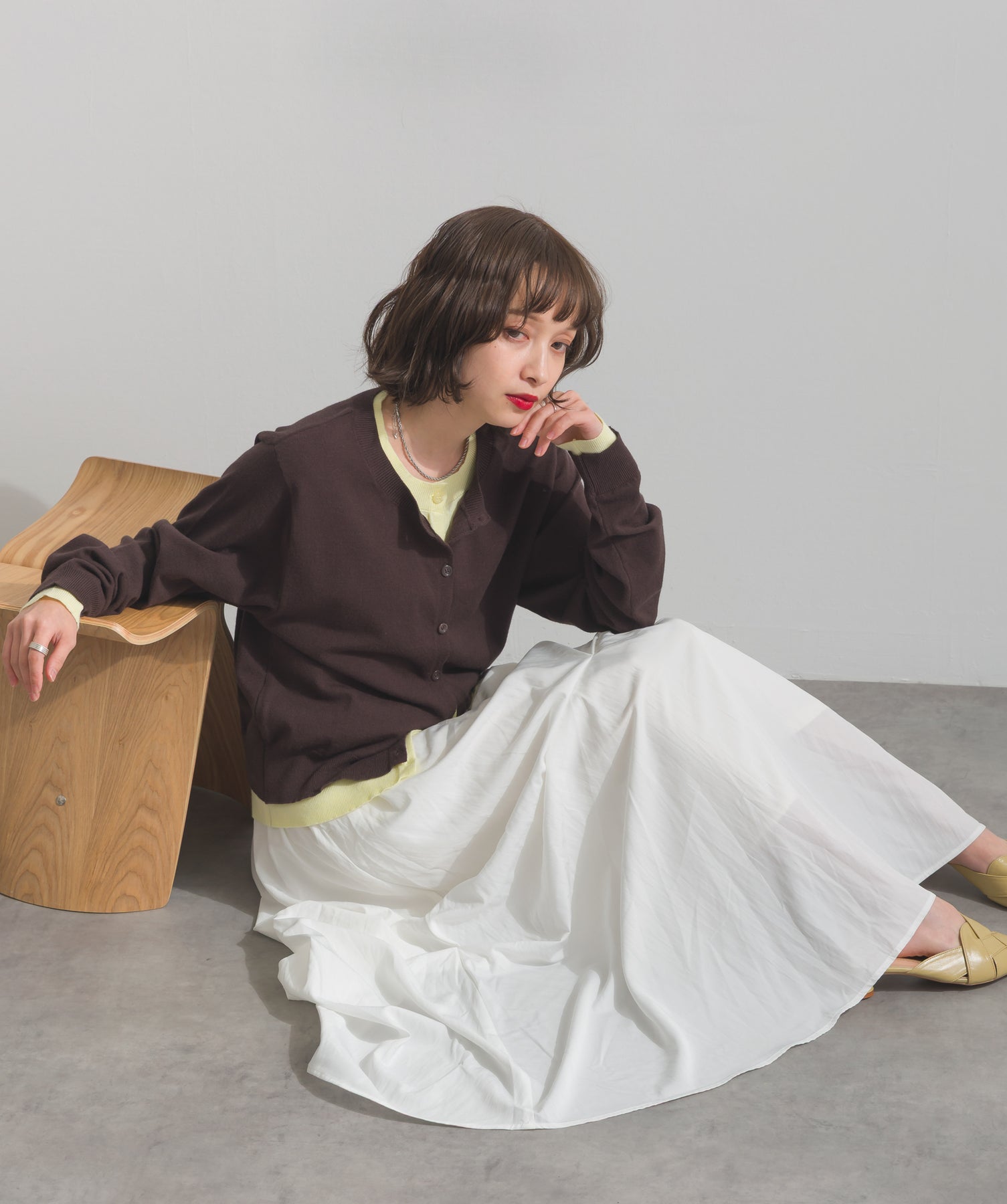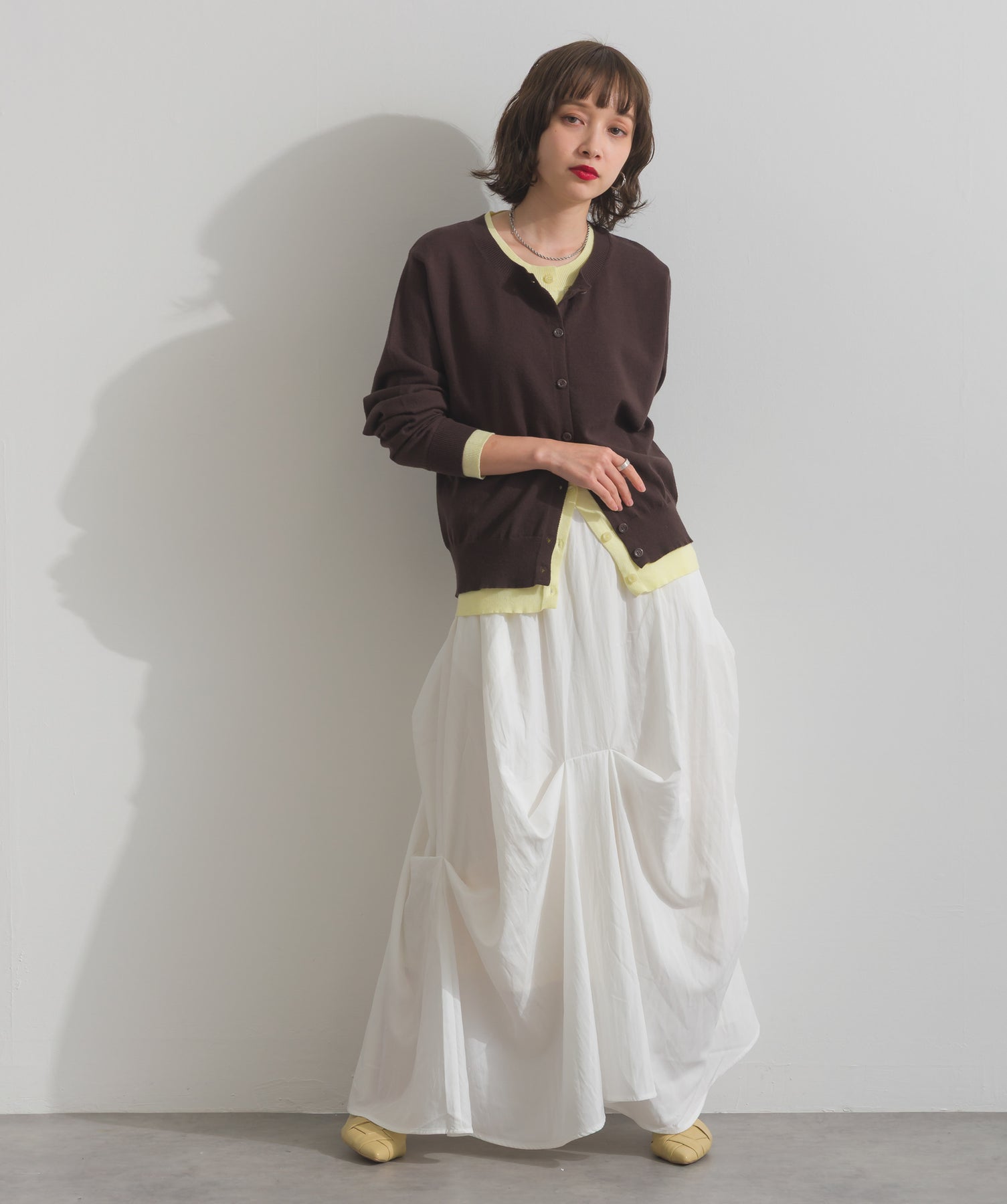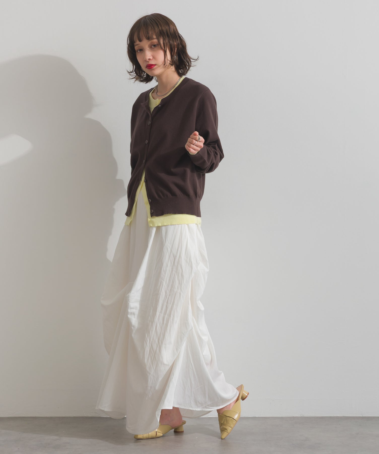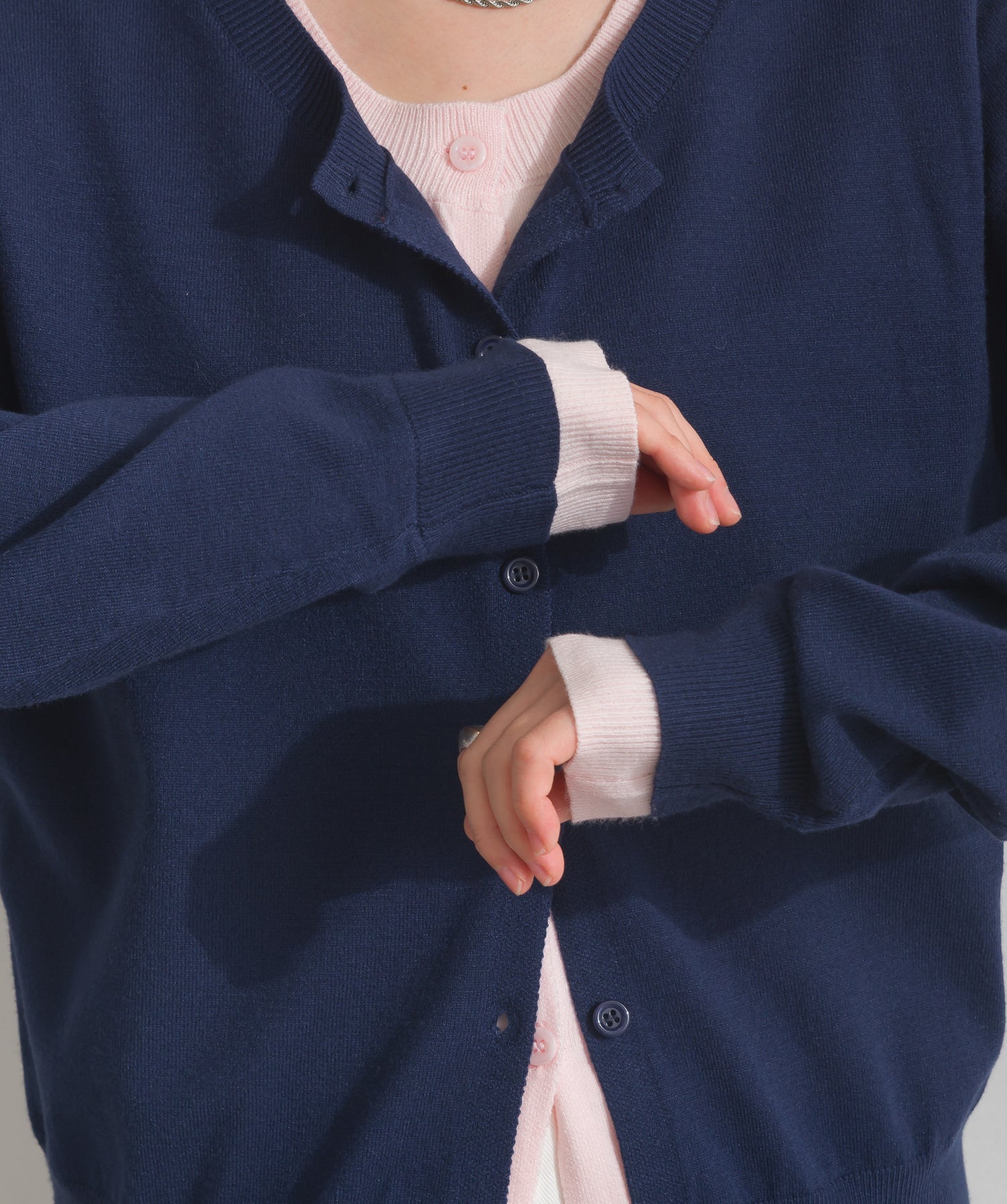 重ね着風ディテールで、シンプルに差がつく一枚。レイヤードしたような配色ラインが効いた、品よく遊べる大人のニットカーデ。-material-滑らかでしっとりとした風合いのレーヨン混ニット素材を採用。伸縮性に優れ、ストレスのない着心地を実現。ほどよい厚みでロングシーズン活躍し、肌寒い季節にはインナーとしても着用可能な万能素材。-design-裾・袖・襟元に異なるカラーをあしらい、レイヤードしているかのようなこなれたデザインがポイント。シンプルなクルーネックとコンパクトすぎないサイズ感で、スカートにもパンツにも合わせやすいシルエット。羽織としてはもちろん、ボタンを留めてトップス感覚でも使える一枚。カラーによって印象が変わり、ベーシックから遊び心ある配色までラインナップ。