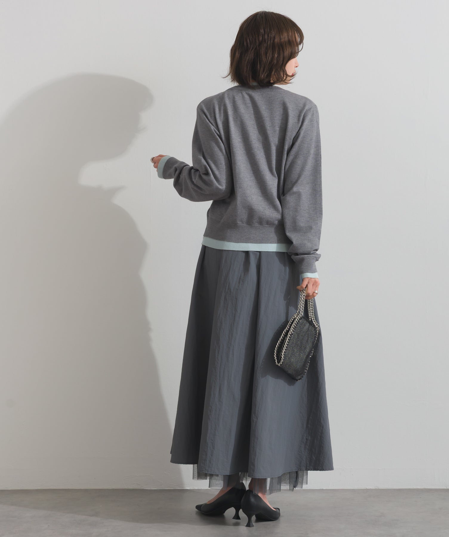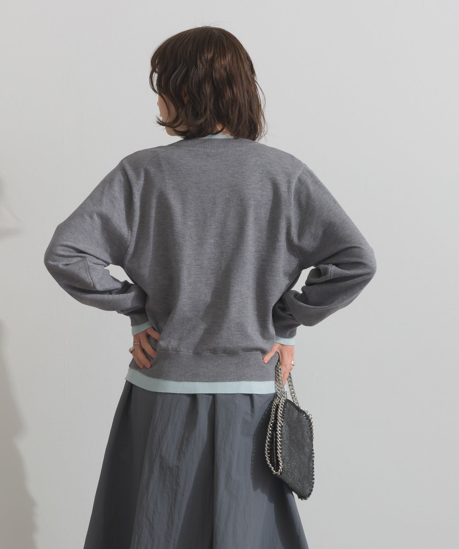 ・お手入れ方法:手洗い水温30℃以下、おしゃれ着用液体洗剤または中性洗剤のご使用をお薦めします。素材の特性上、洗濯の際に色落ち・縮みが生じる恐れがありますので単独で・短時間でのお洗濯をお薦めします。洗濯後は形を整えてから陰干ししてください。アイロンはご使用いただけません。※タンブラー乾燥は控え、色物とは分けてください。濡れたままの状態で擦れると、色落ち色移りすることがあります。つけ置き洗いや雨や汗で濡れたまま放置は避け、速やかに処理してください。着用中の摩擦や汗、水濡れ、濃淡差があるものとの重ね着にご注意ください。また、素材の特性上伸びやすい為ハンガーの使用はお控えいただき畳んで保管ください。