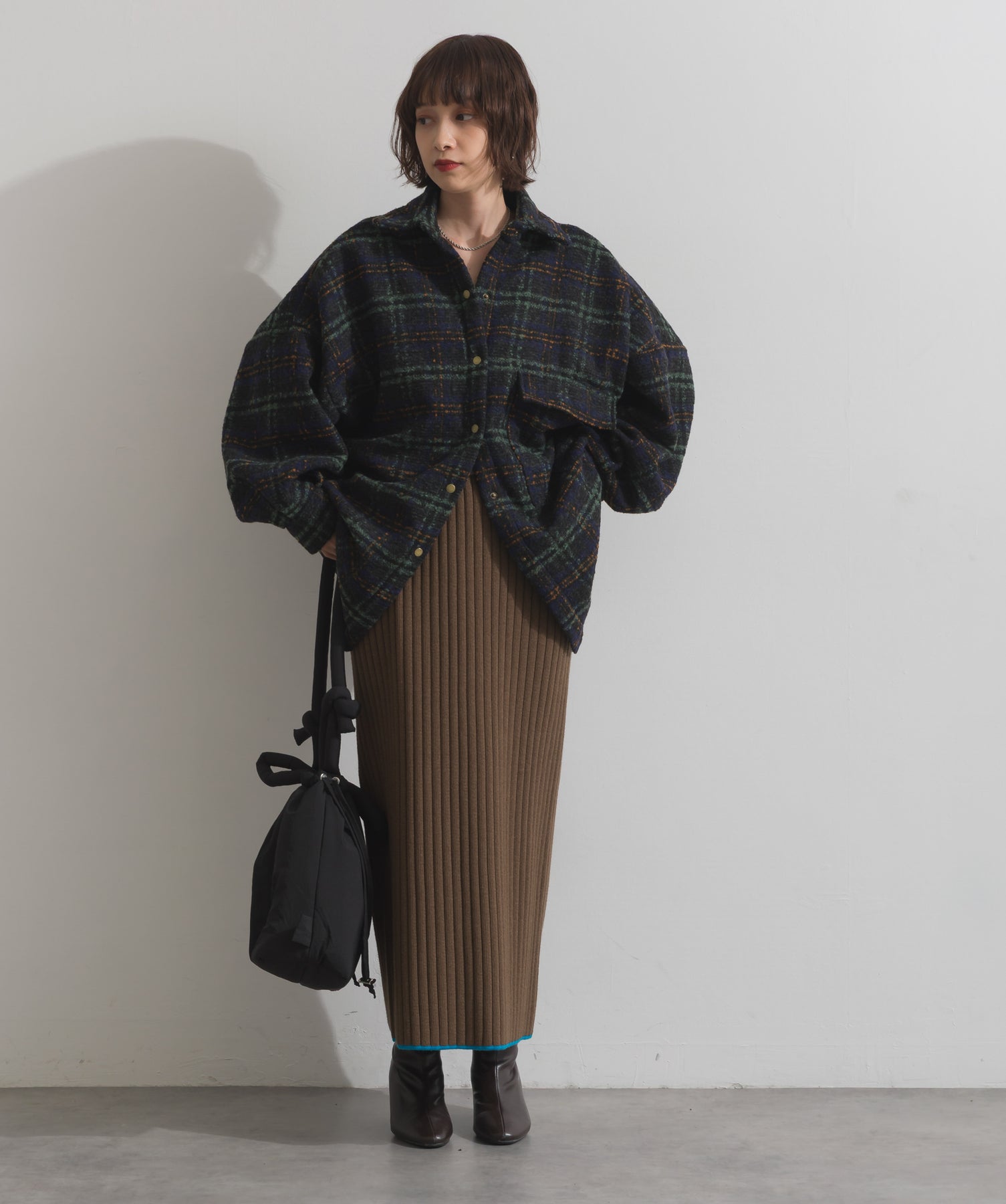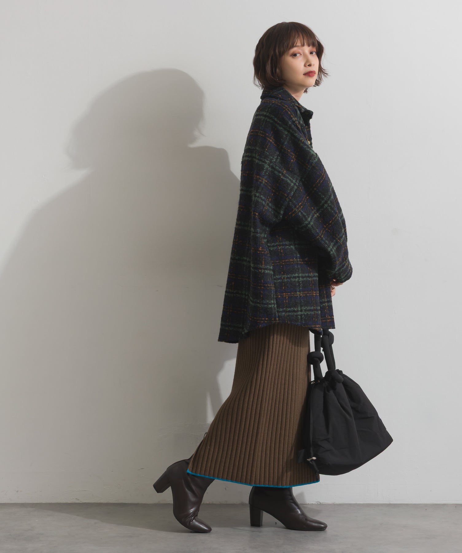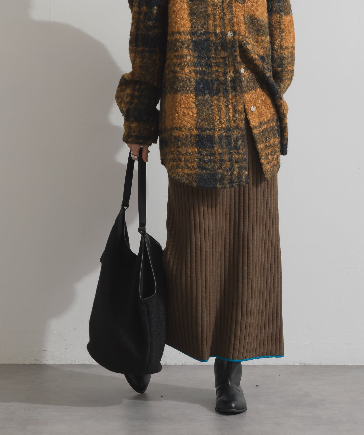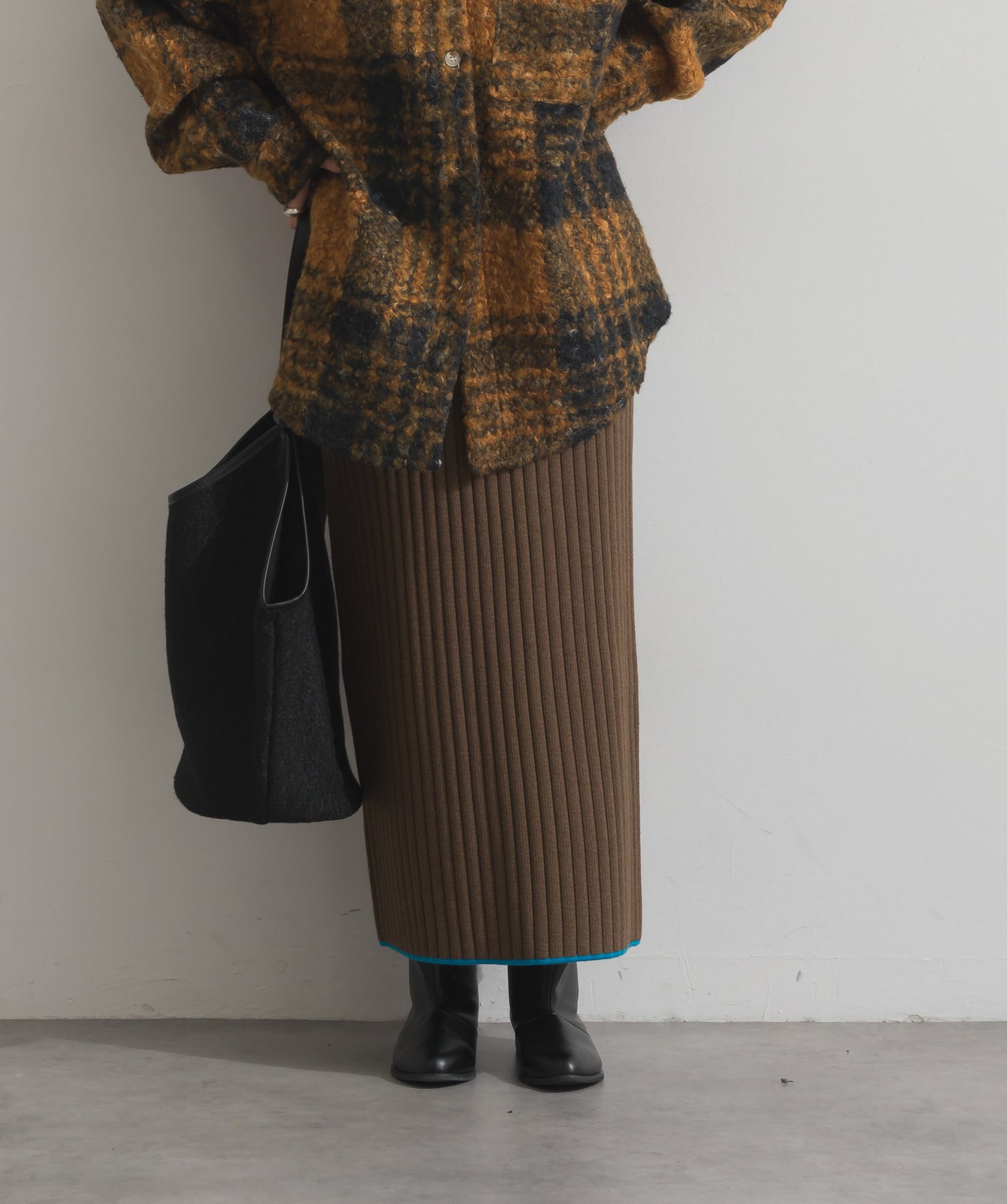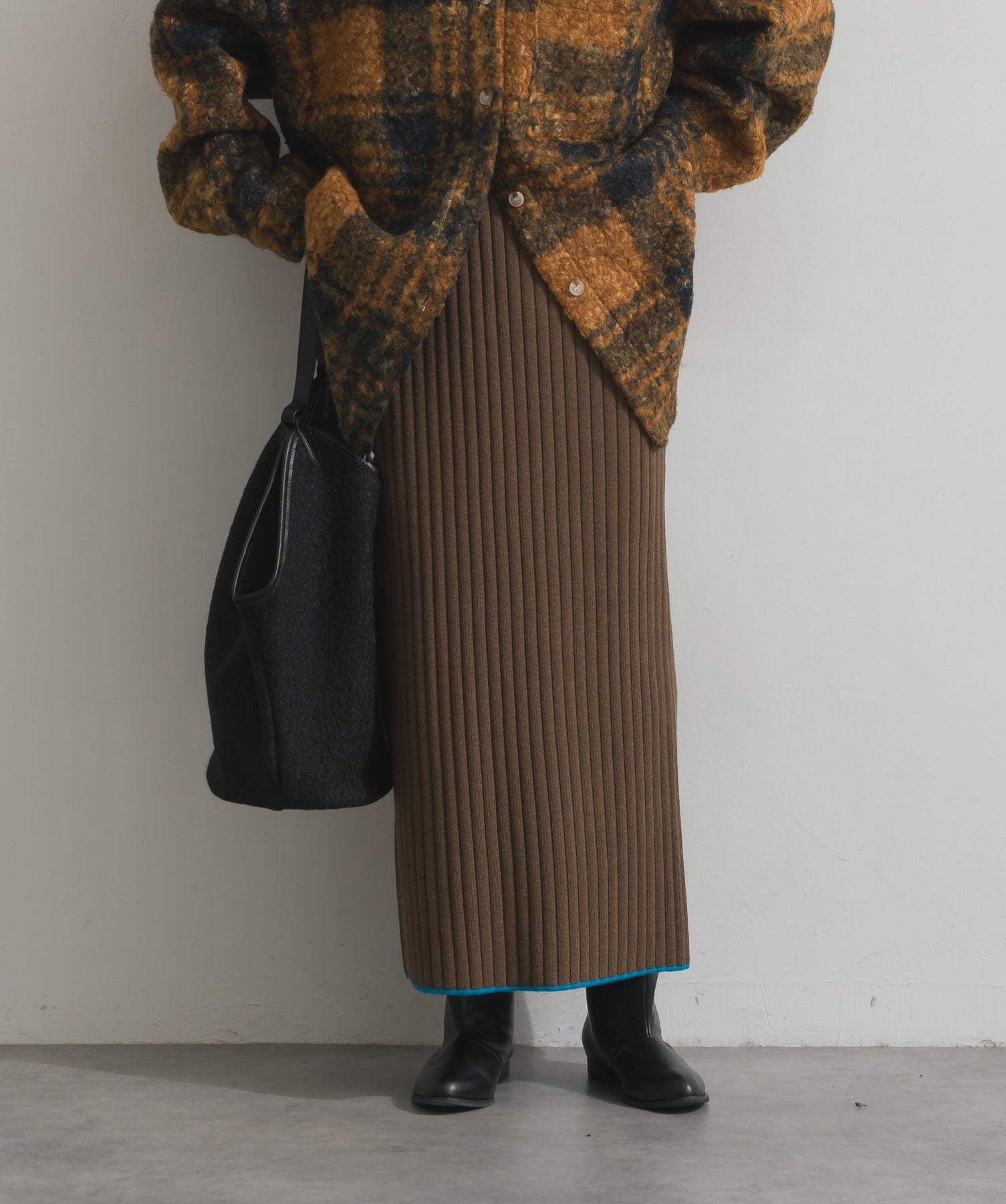 差し色で魅せる。大人のための洗練ニットスカート。-material-しっかりとした肉厚感と伸縮性を備えたリブニット素材を使用。程よいハリと柔らかさが両立し、ボディラインを拾いすぎず快適な穿き心地に仕上げています。-design-ワイドピッチの縦リブがすっきりとしたIラインを強調。裾には鮮やかなカラーラインを施し、シンプルな中にもエッジの効いたアクセントをプラス。ウエストは総ゴム仕様でノンストレス。スニーカーからショートブーツまで幅広いスタイリングに馴染む、デイリーに頼れる1本です。