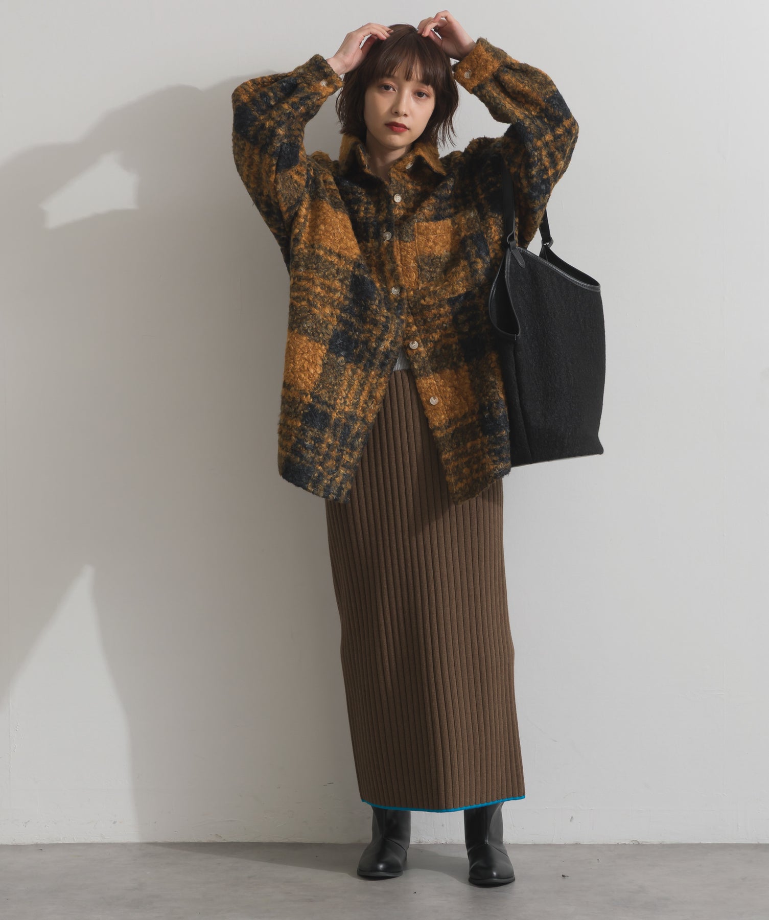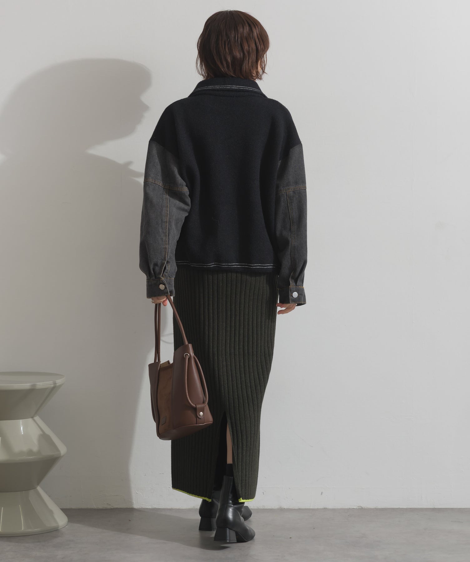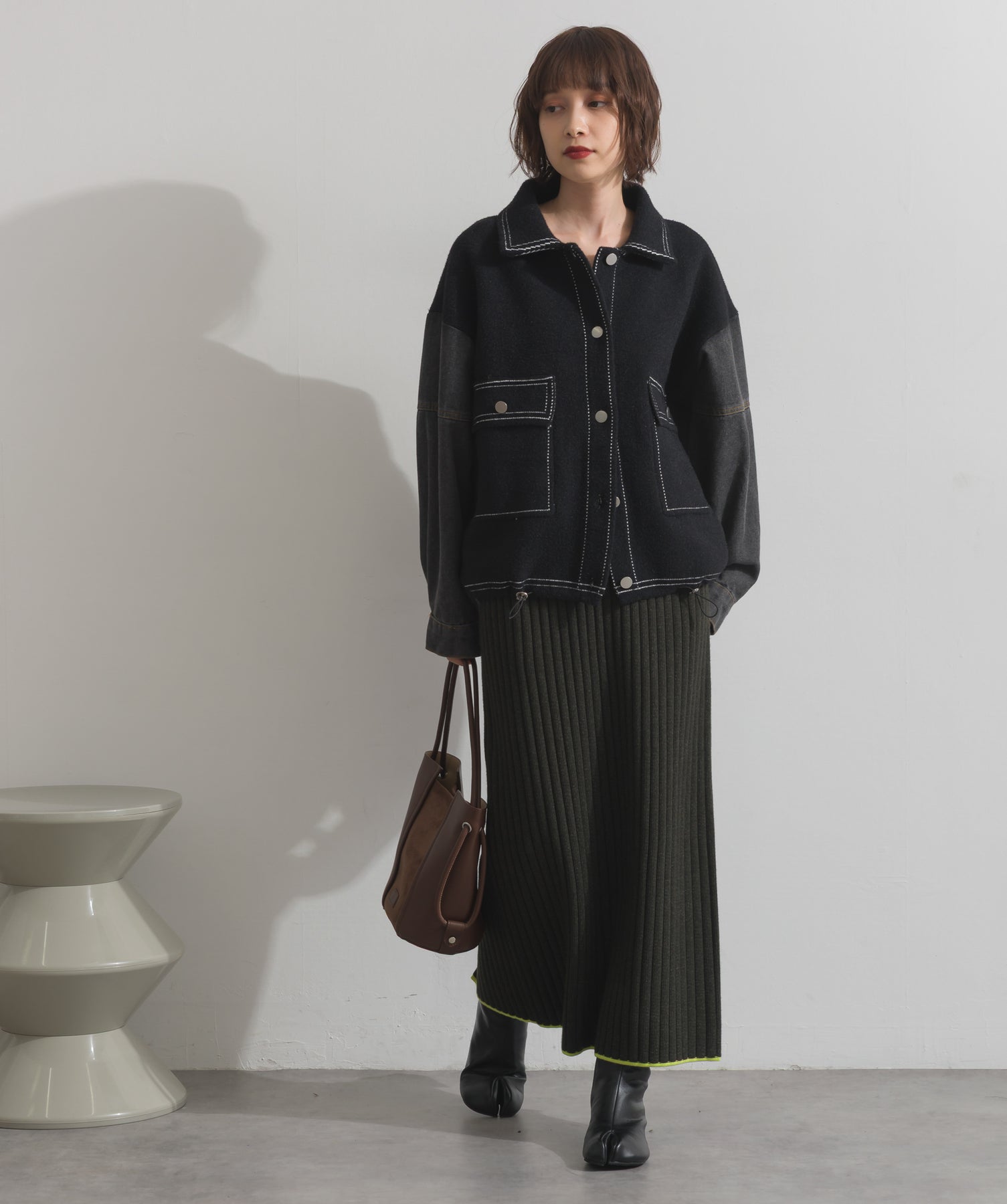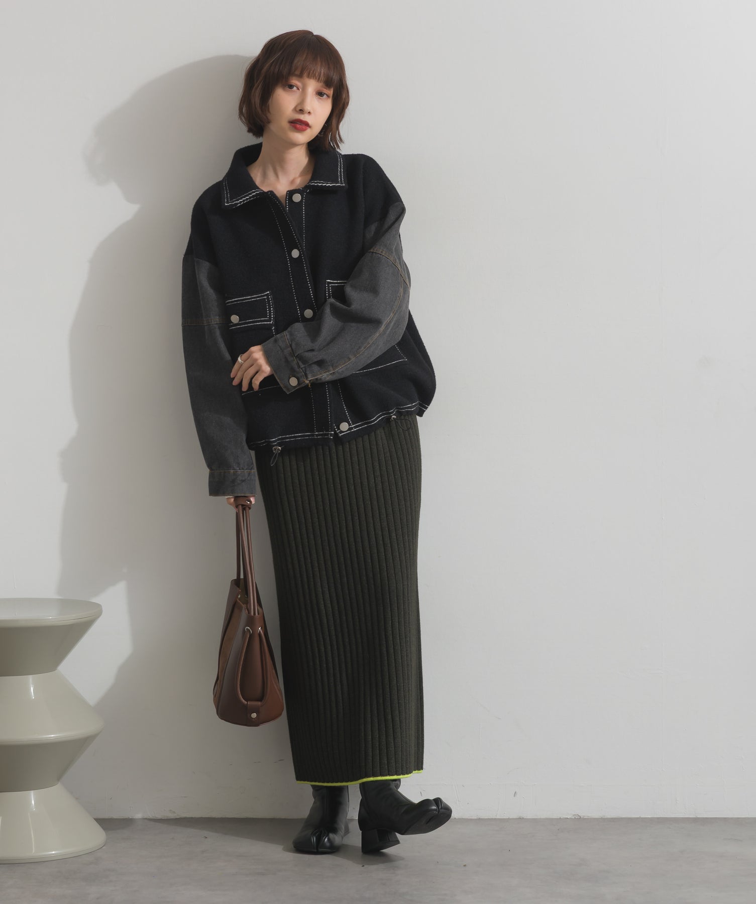 差し色で魅せる。大人のための洗練ニットスカート。-material-しっかりとした肉厚感と伸縮性を備えたリブニット素材を使用。程よいハリと柔らかさが両立し、ボディラインを拾いすぎず快適な穿き心地に仕上げています。-design-ワイドピッチの縦リブがすっきりとしたIラインを強調。裾には鮮やかなカラーラインを施し、シンプルな中にもエッジの効いたアクセントをプラス。ウエストは総ゴム仕様でノンストレス。スニーカーからショートブーツまで幅広いスタイリングに馴染む、デイリーに頼れる1本です。