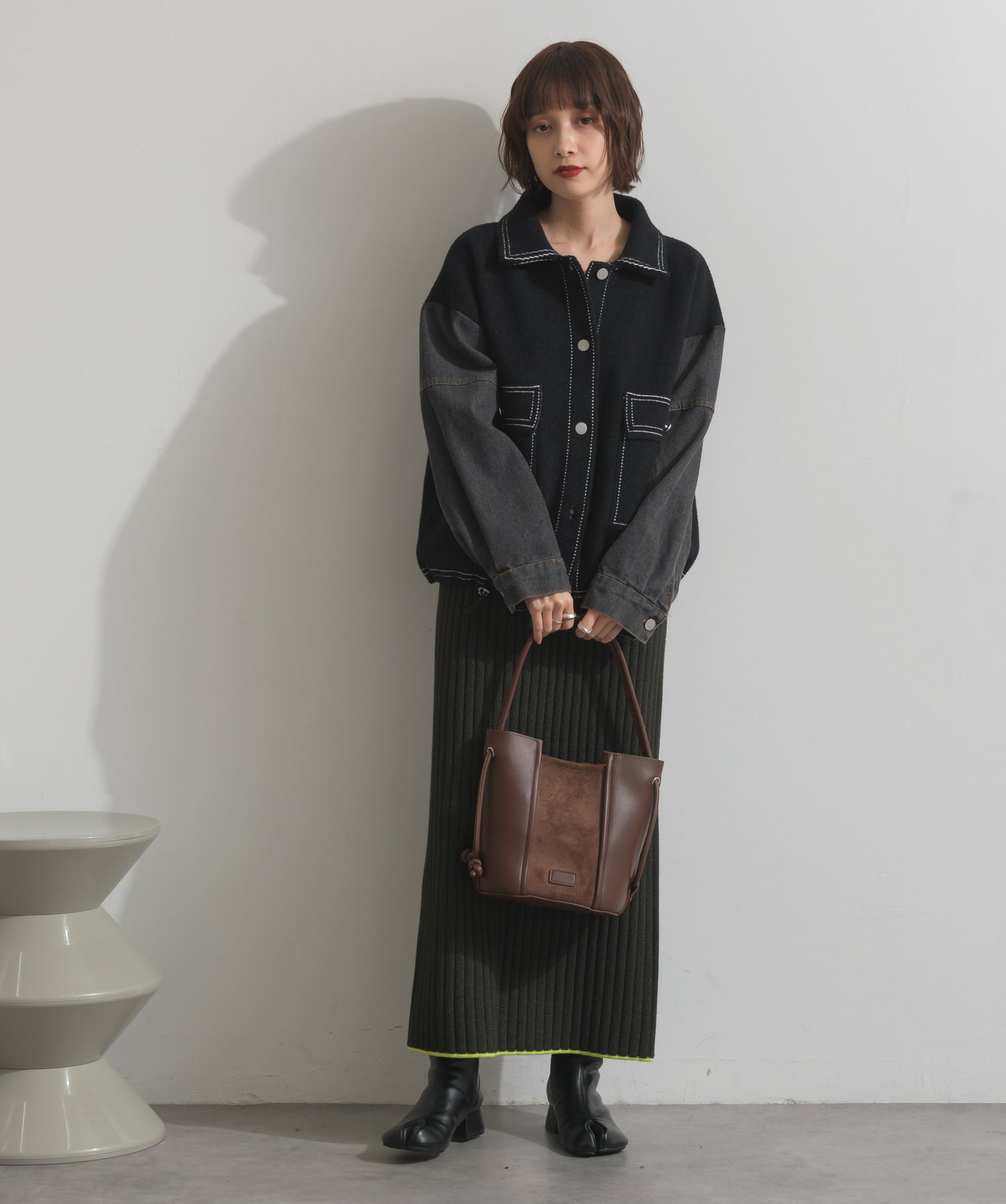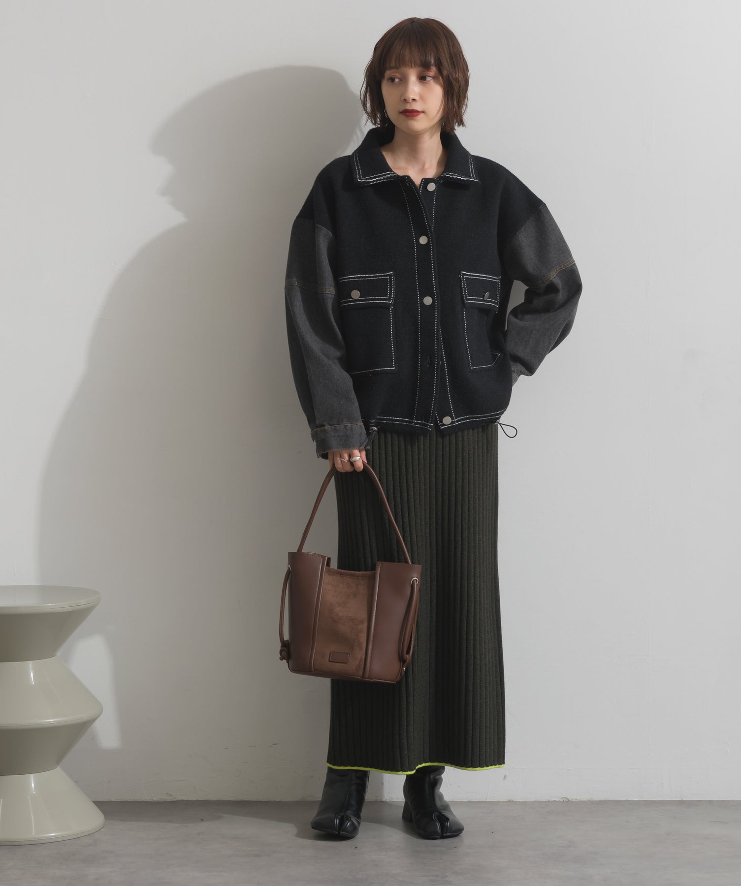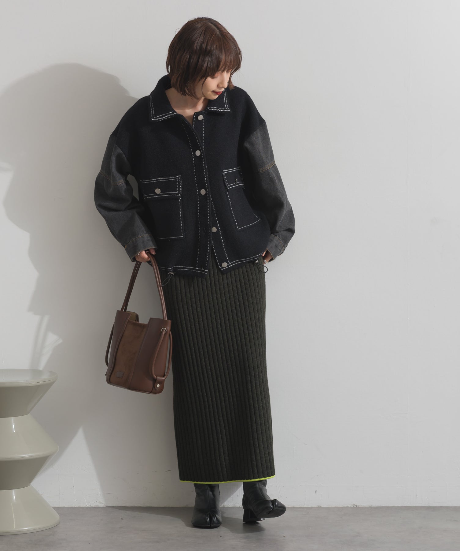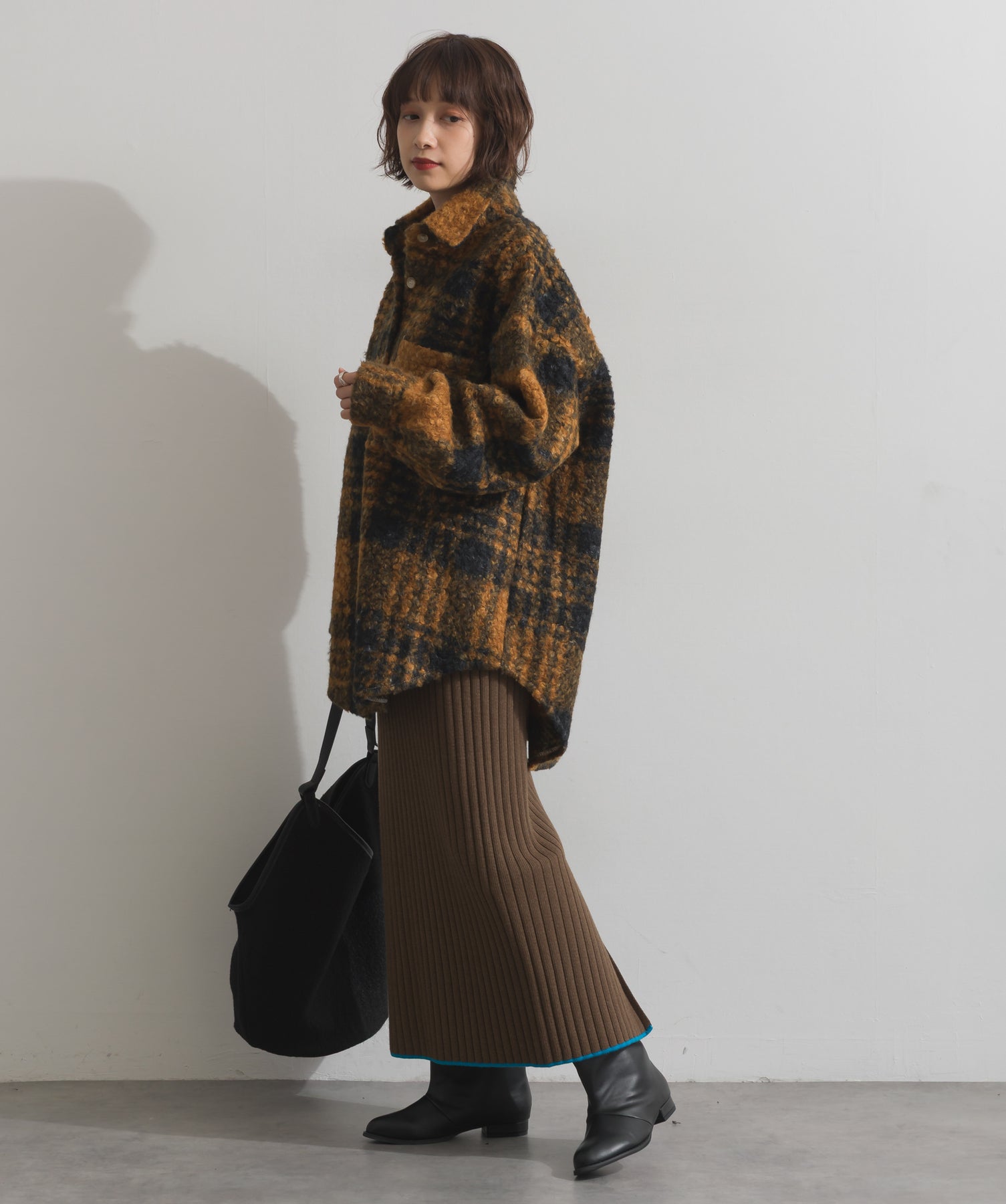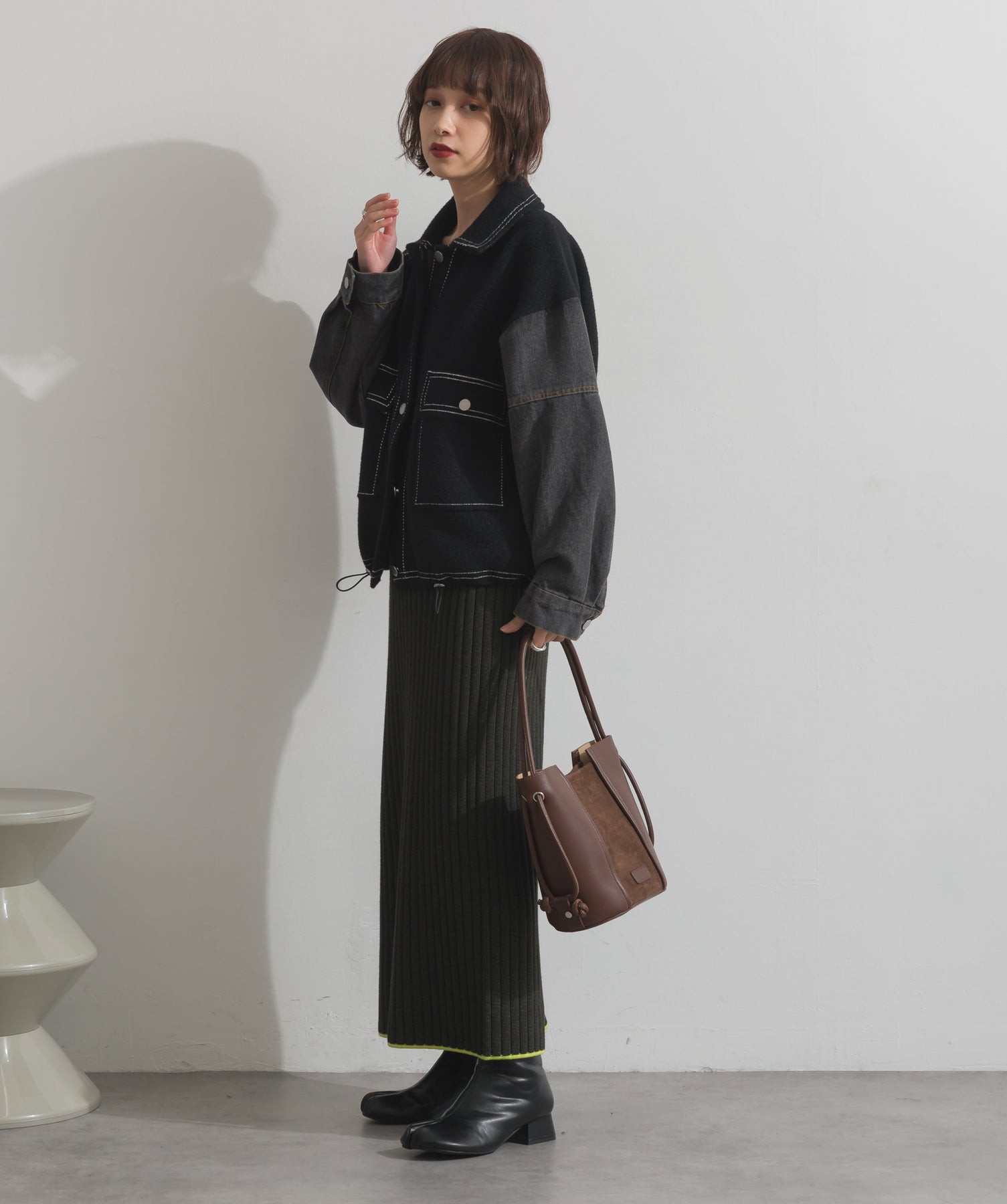 差し色で魅せる。大人のための洗練ニットスカート。-material-しっかりとした肉厚感と伸縮性を備えたリブニット素材を使用。程よいハリと柔らかさが両立し、ボディラインを拾いすぎず快適な穿き心地に仕上げています。-design-ワイドピッチの縦リブがすっきりとしたIラインを強調。裾には鮮やかなカラーラインを施し、シンプルな中にもエッジの効いたアクセントをプラス。ウエストは総ゴム仕様でノンストレス。スニーカーからショートブーツまで幅広いスタイリングに馴染む、デイリーに頼れる1本です。