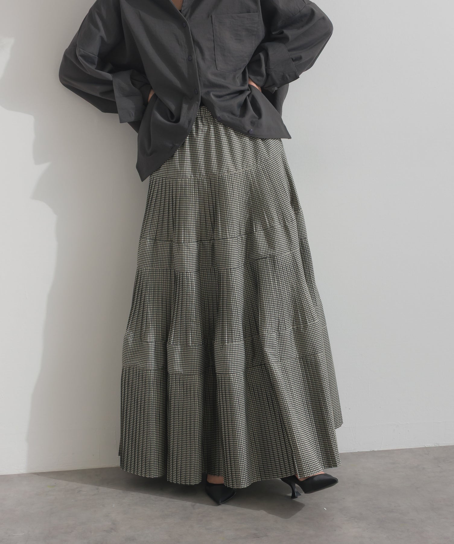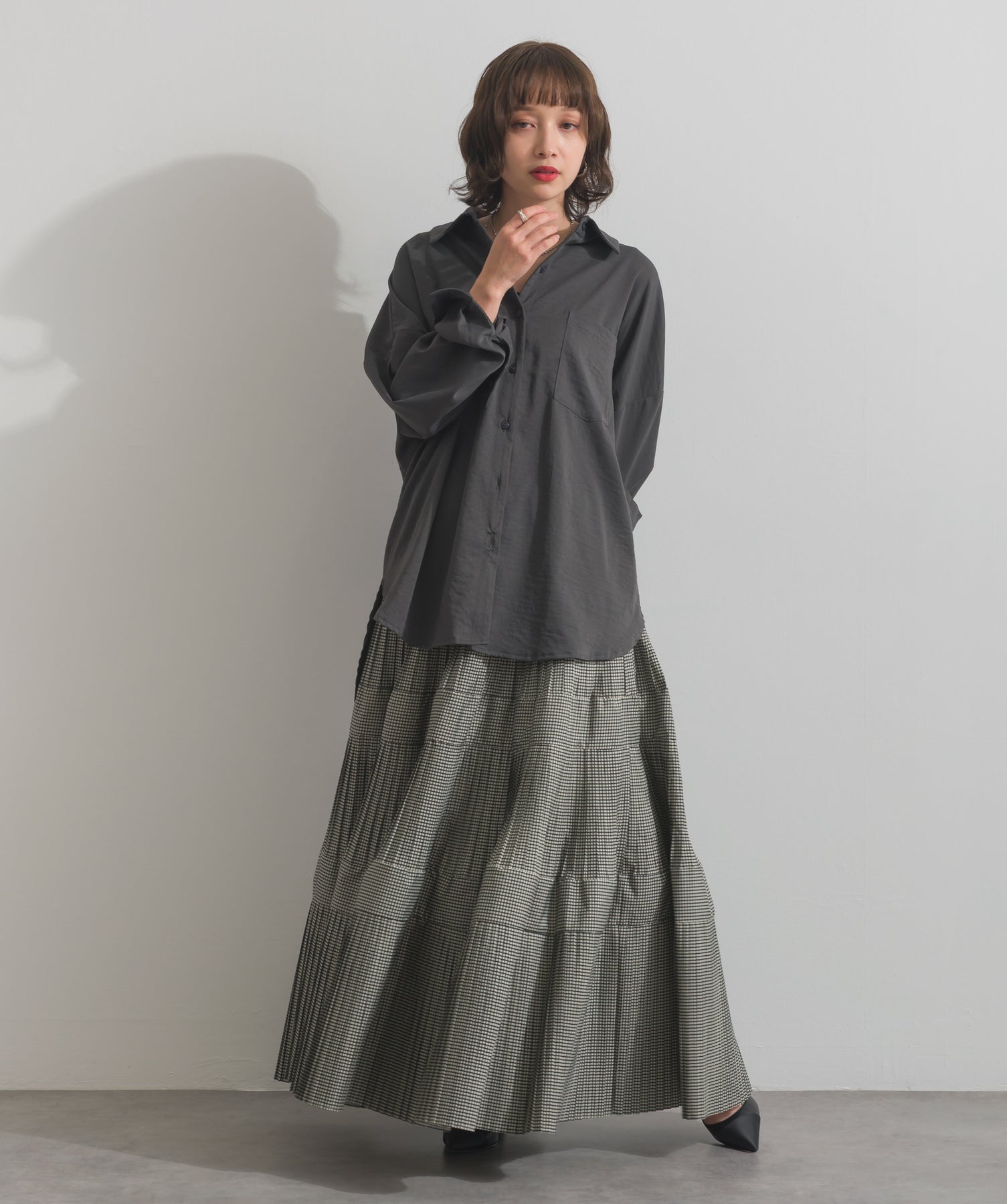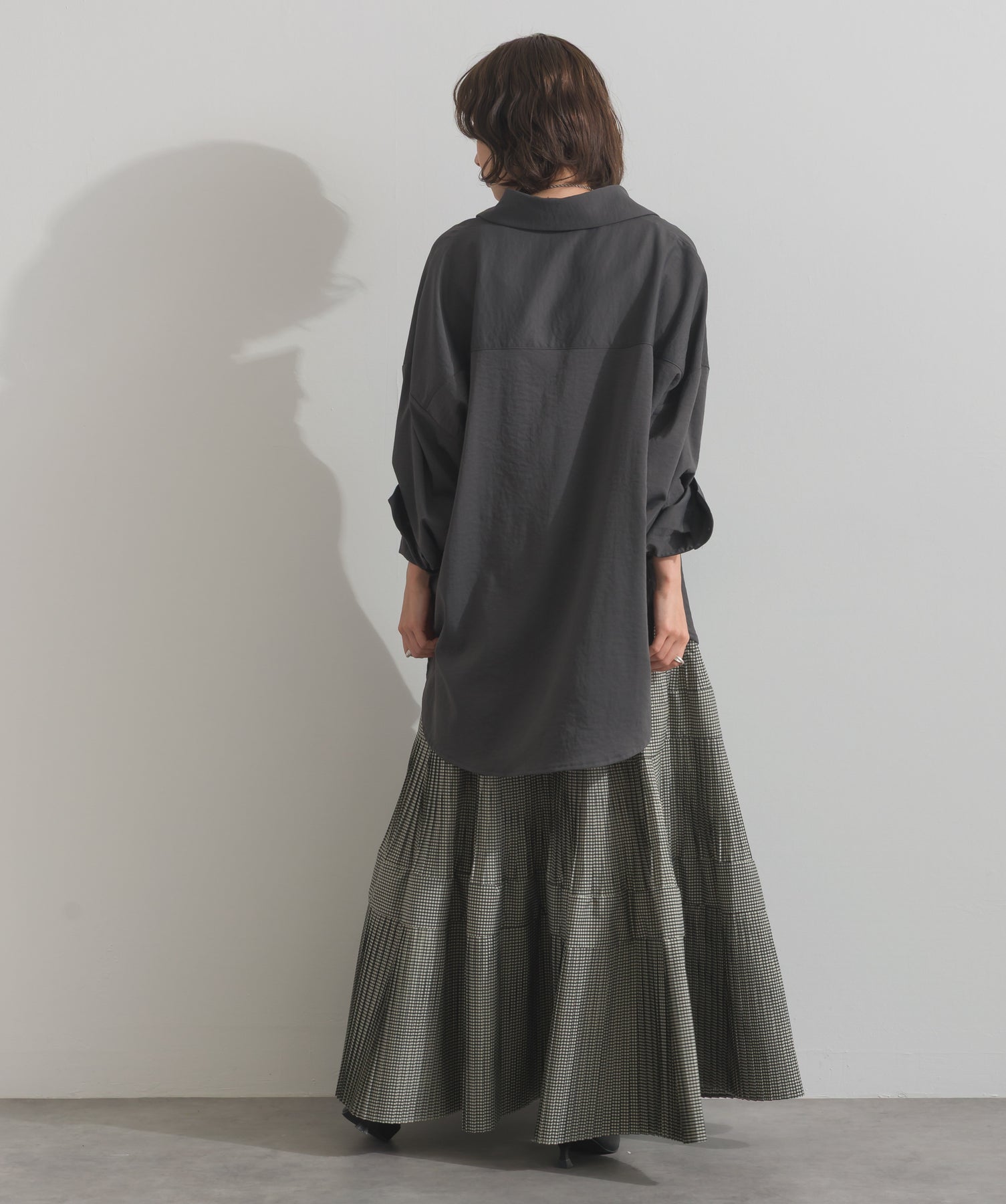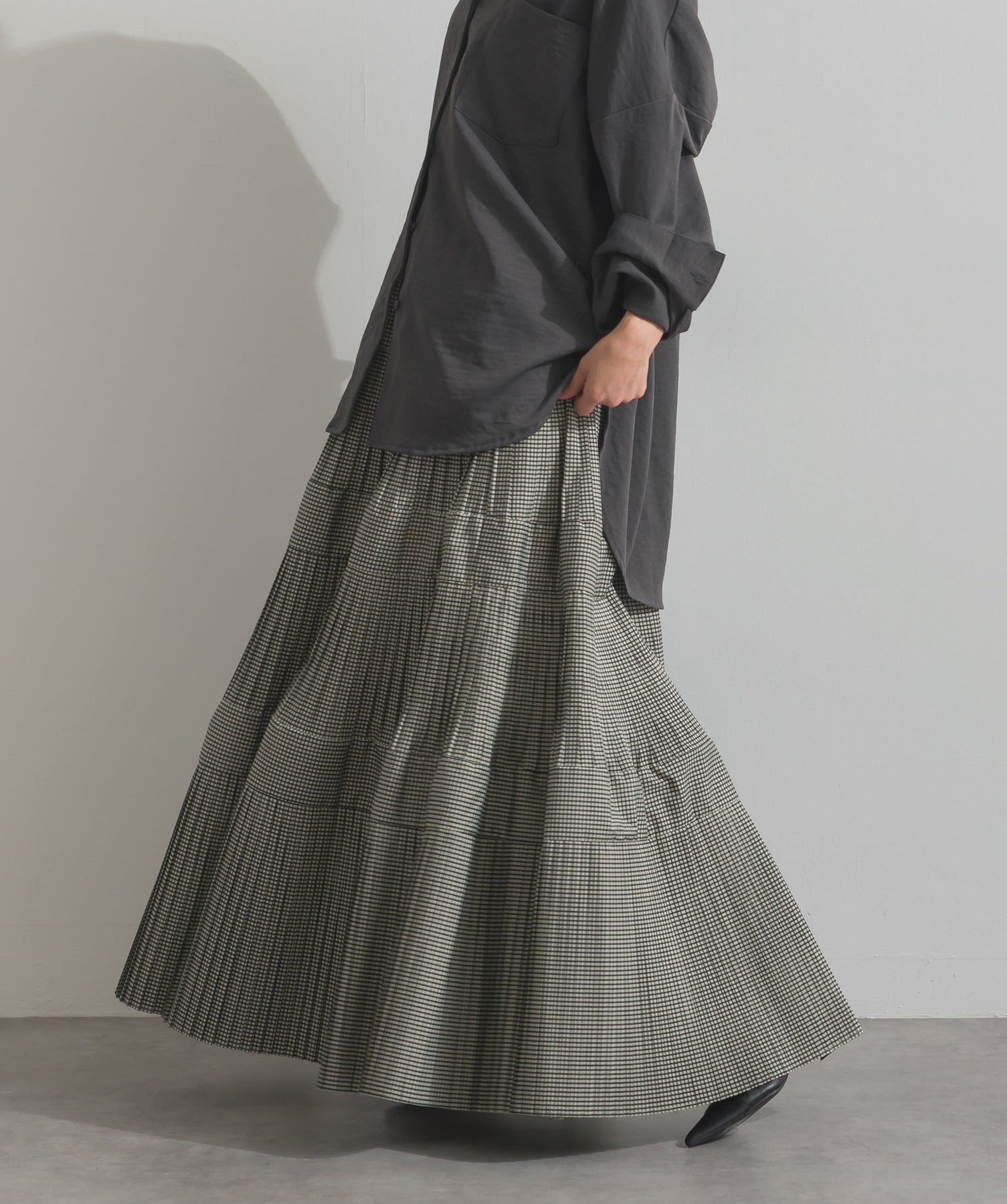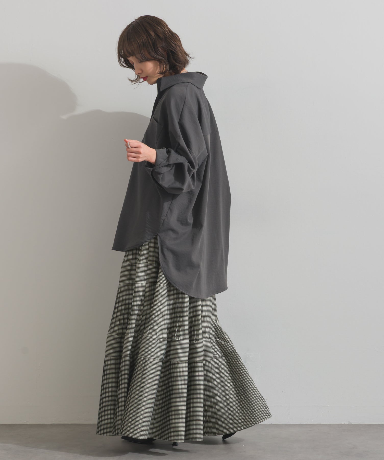動くたび、存在感。構築的ドレープが魅せる美ラインスカート。-material-ハリ感と軽やかさを兼ね備えたビンテージブロード素材を使用。シワになりにくく、ナチュラルな表情とさらりとした肌触りが特徴。カジュアルながら品のある質感で、シーズンレスに着用可能。-design-フロントからサイドにかけて施されたランダムタックが、立体的で奥行きのあるフォルムを生み出すロングスカート。程よいボリューム感とドレープが足元にニュアンスを与え、シンプルなトップスを合わせるだけで洗練されたスタイリングに。ウエストはゴム仕様で穿き心地も快適。両サイドには便利なポケット付きで実用性も◎。