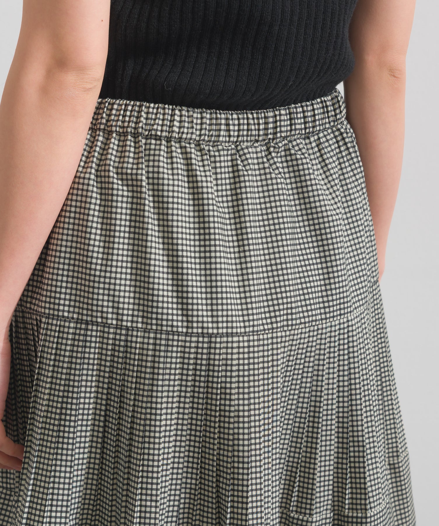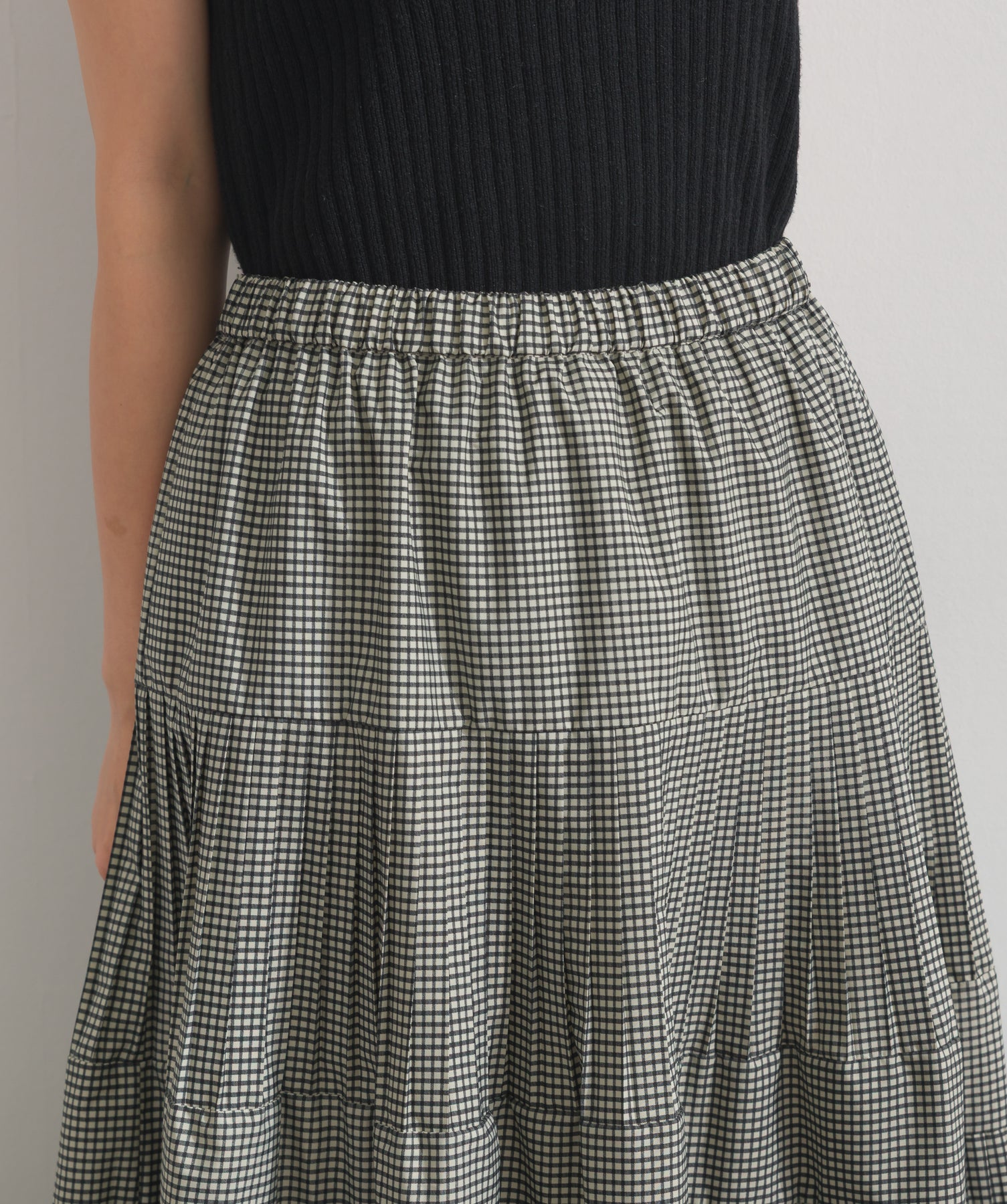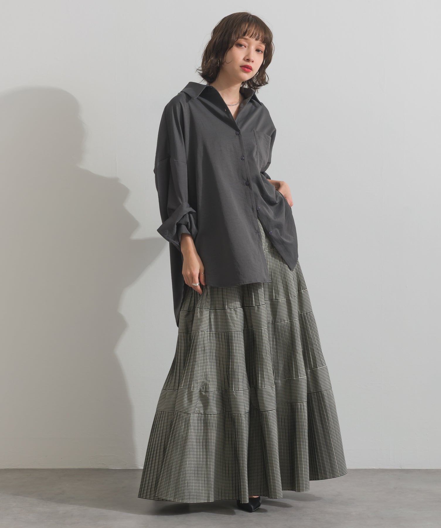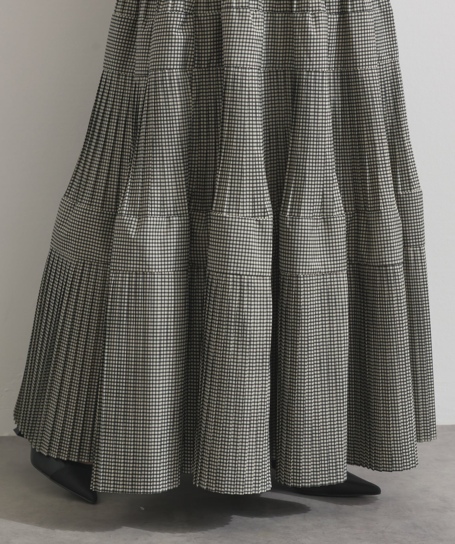 動くたび、存在感。構築的ドレープが魅せる美ラインスカート。-material-ハリ感と軽やかさを兼ね備えたビンテージブロード素材を使用。シワになりにくく、ナチュラルな表情とさらりとした肌触りが特徴。カジュアルながら品のある質感で、シーズンレスに着用可能。-design-フロントからサイドにかけて施されたランダムタックが、立体的で奥行きのあるフォルムを生み出すロングスカート。程よいボリューム感とドレープが足元にニュアンスを与え、シンプルなトップスを合わせるだけで洗練されたスタイリングに。ウエストはゴム仕様で穿き心地も快適。両サイドには便利なポケット付きで実用性も◎。