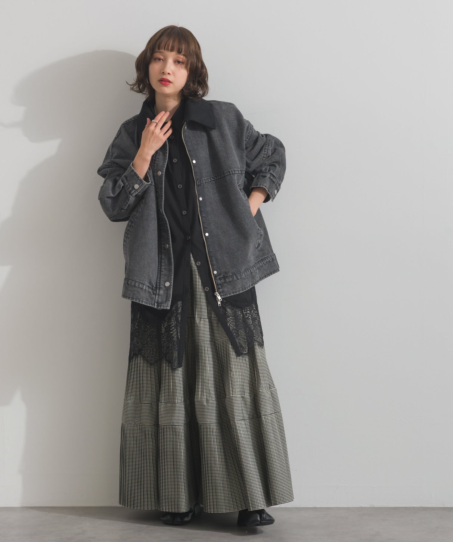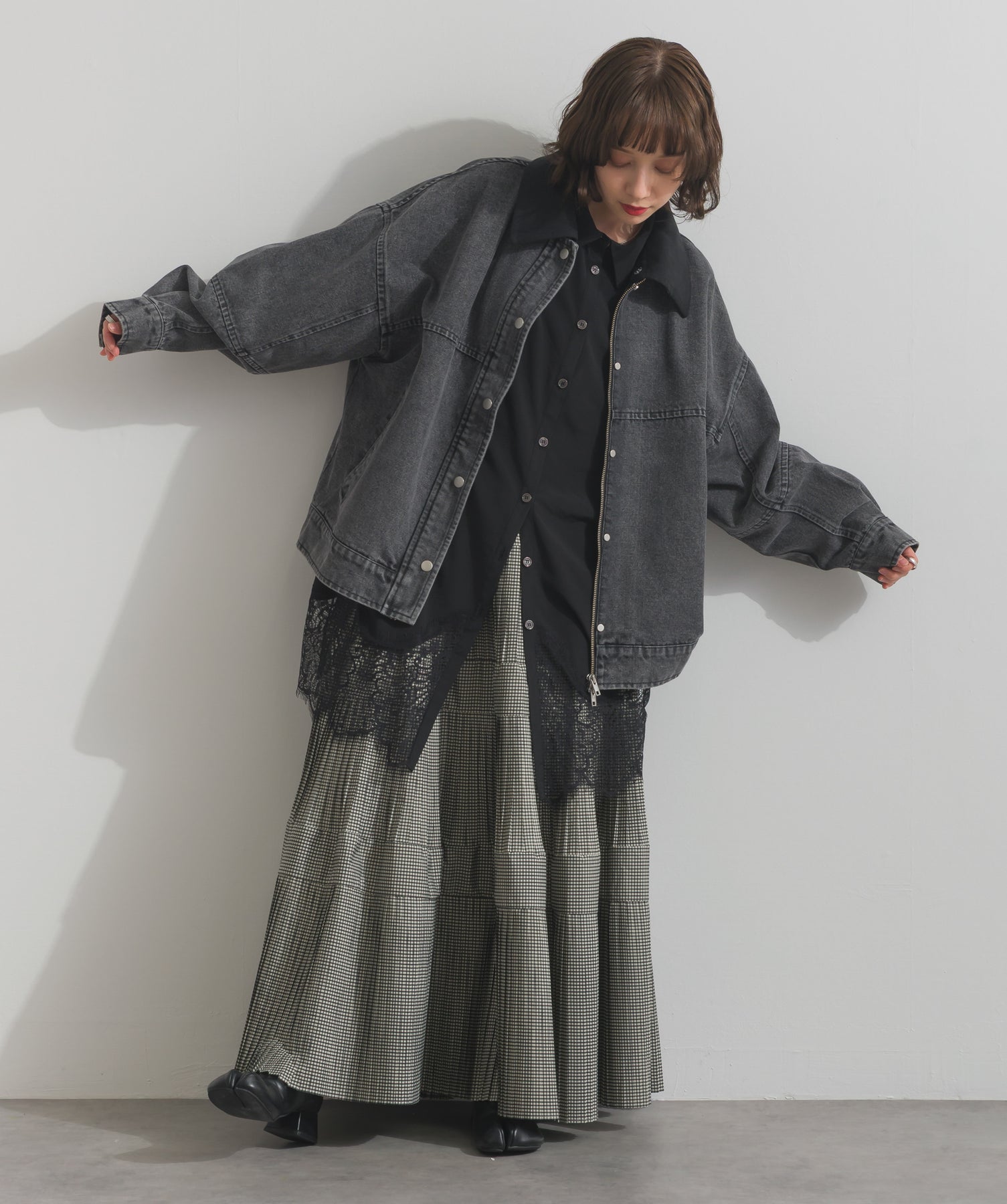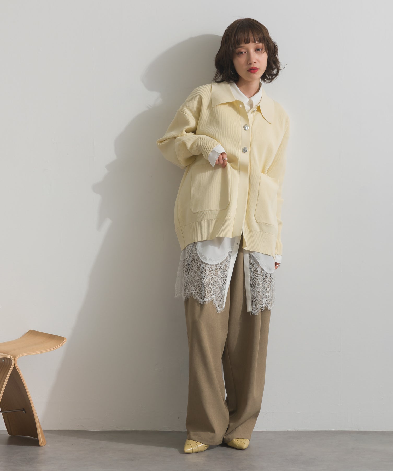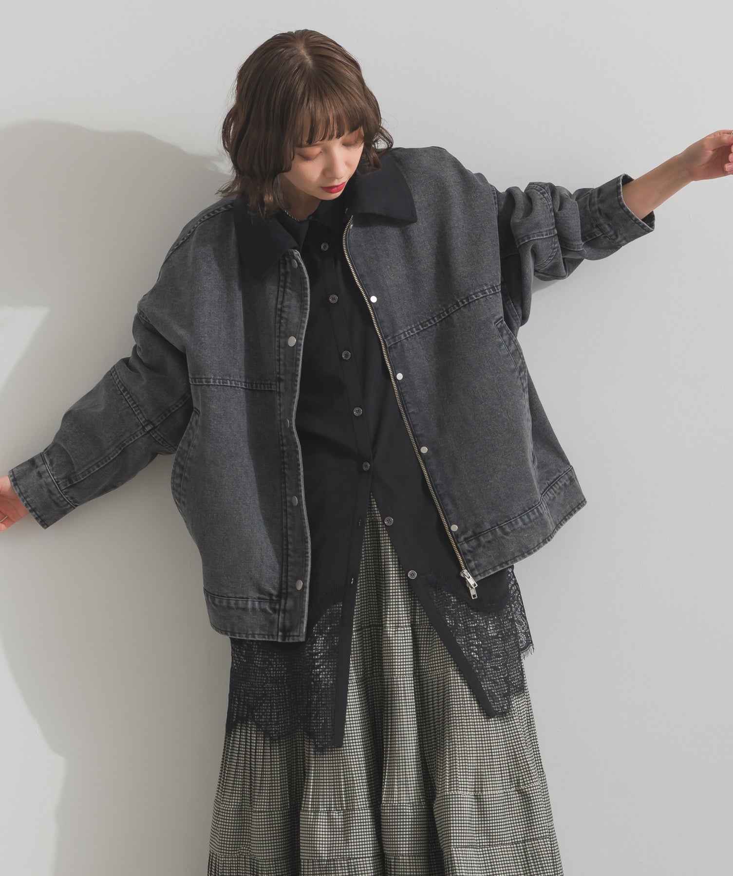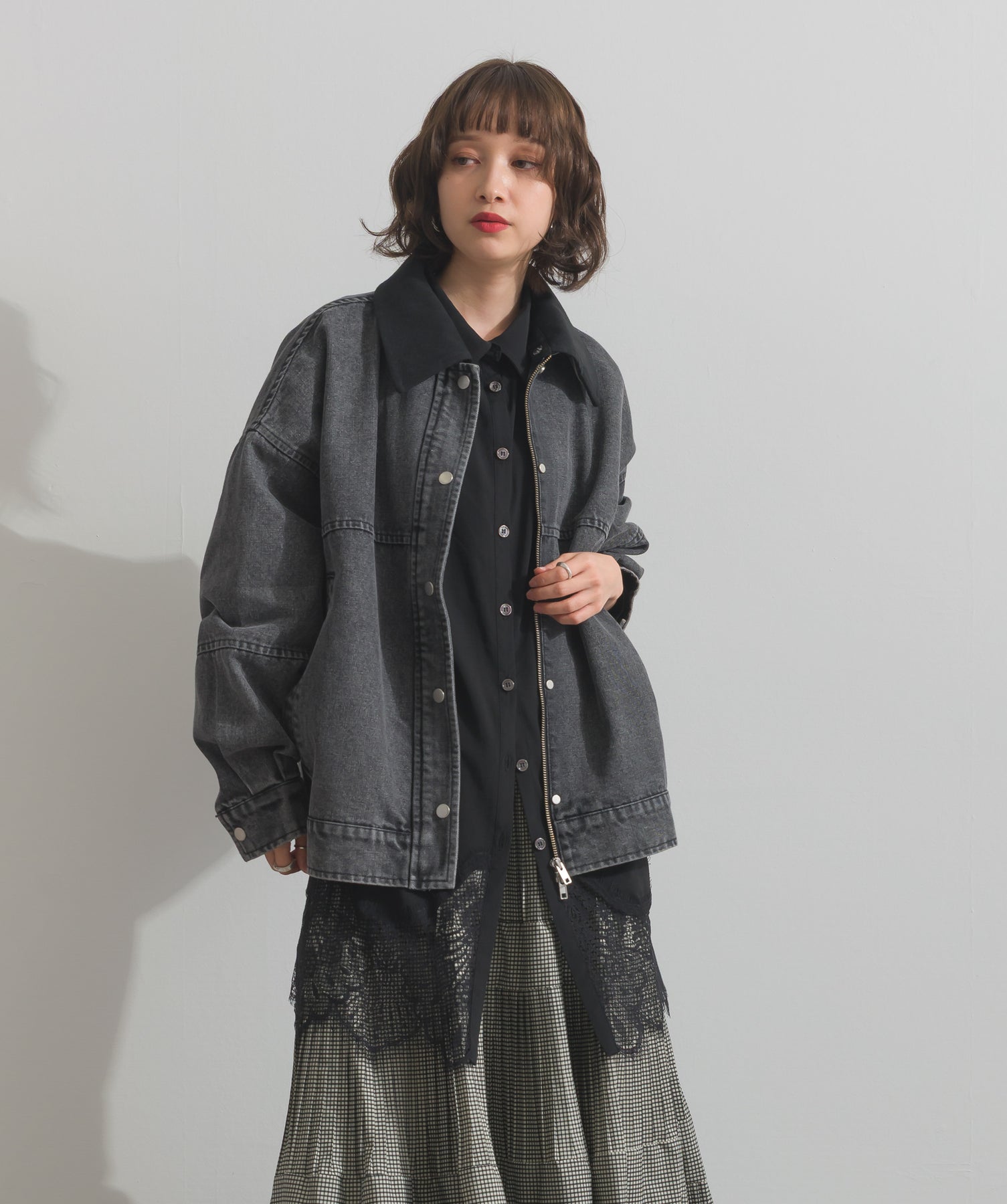 シャツのクリーンな印象とレースの甘さが共存する、洗練されたデザイン。ヒップが隠れる長め丈で、チュニックとしても羽織りとしても着回せる2WAY仕様。ボトムにデニムを合わせてカジュアルダウンも、スラックスやレギンスでモード寄りに仕上げるのも◎。