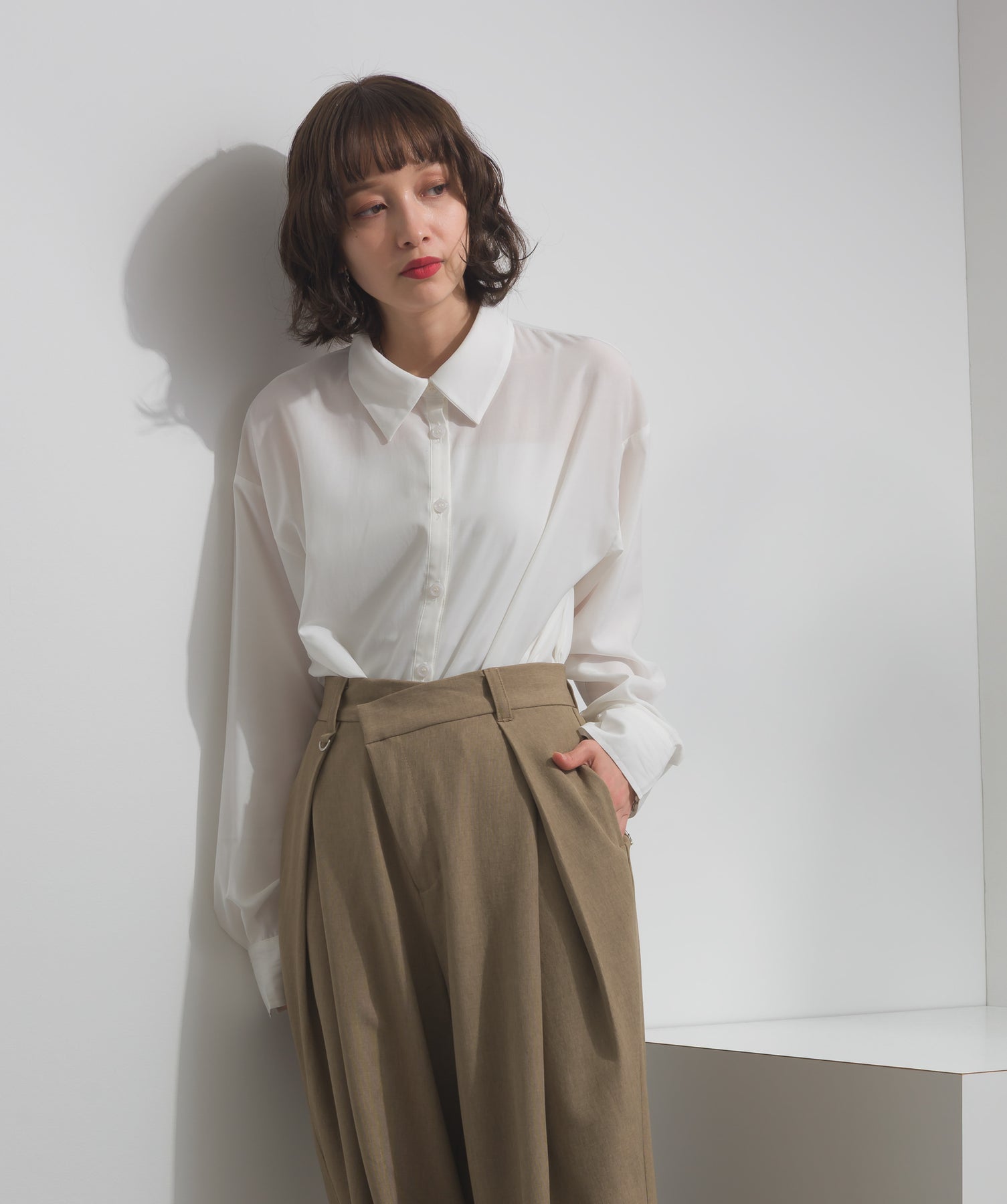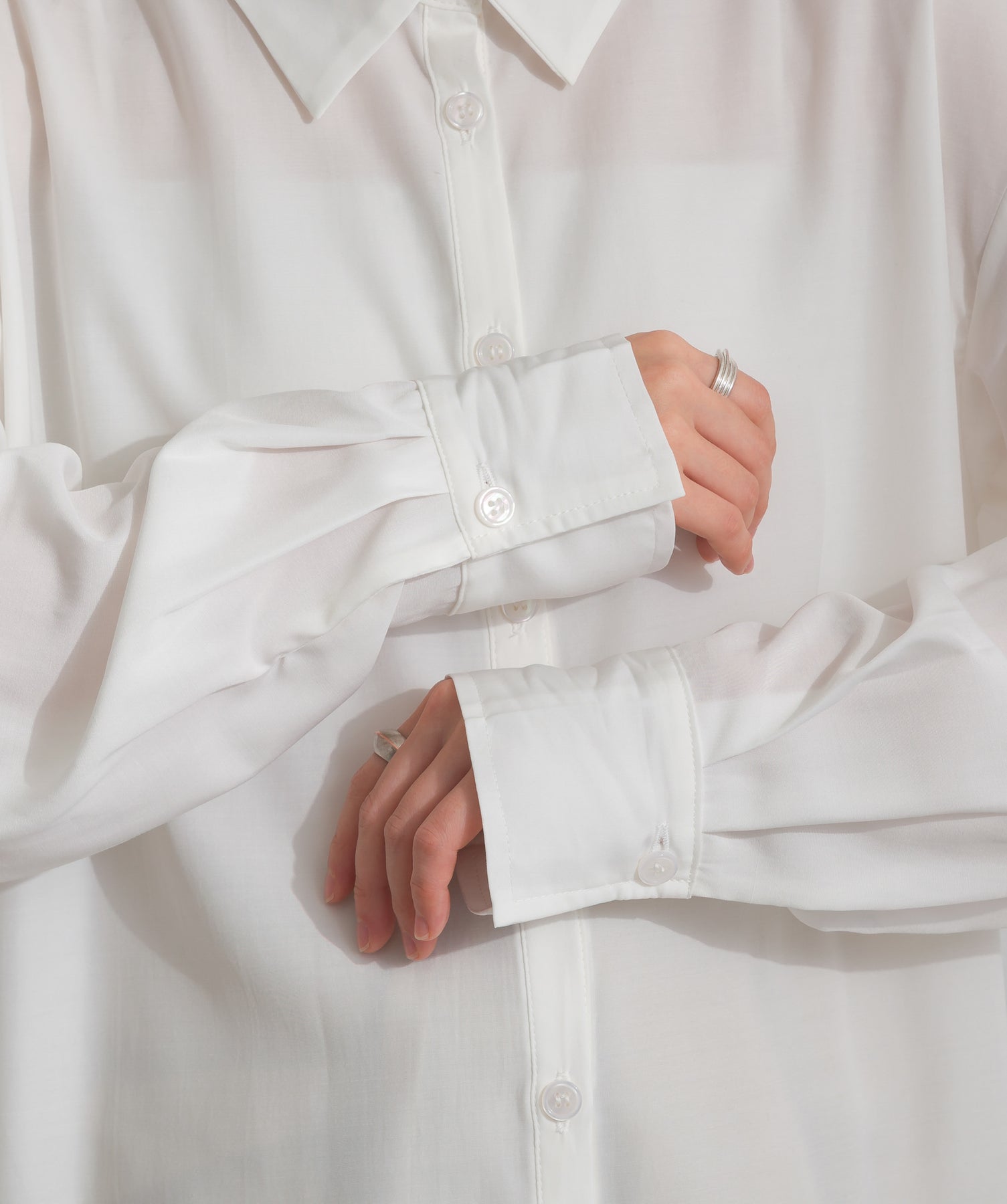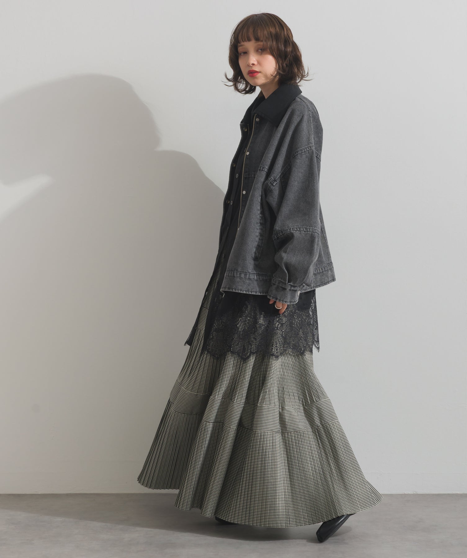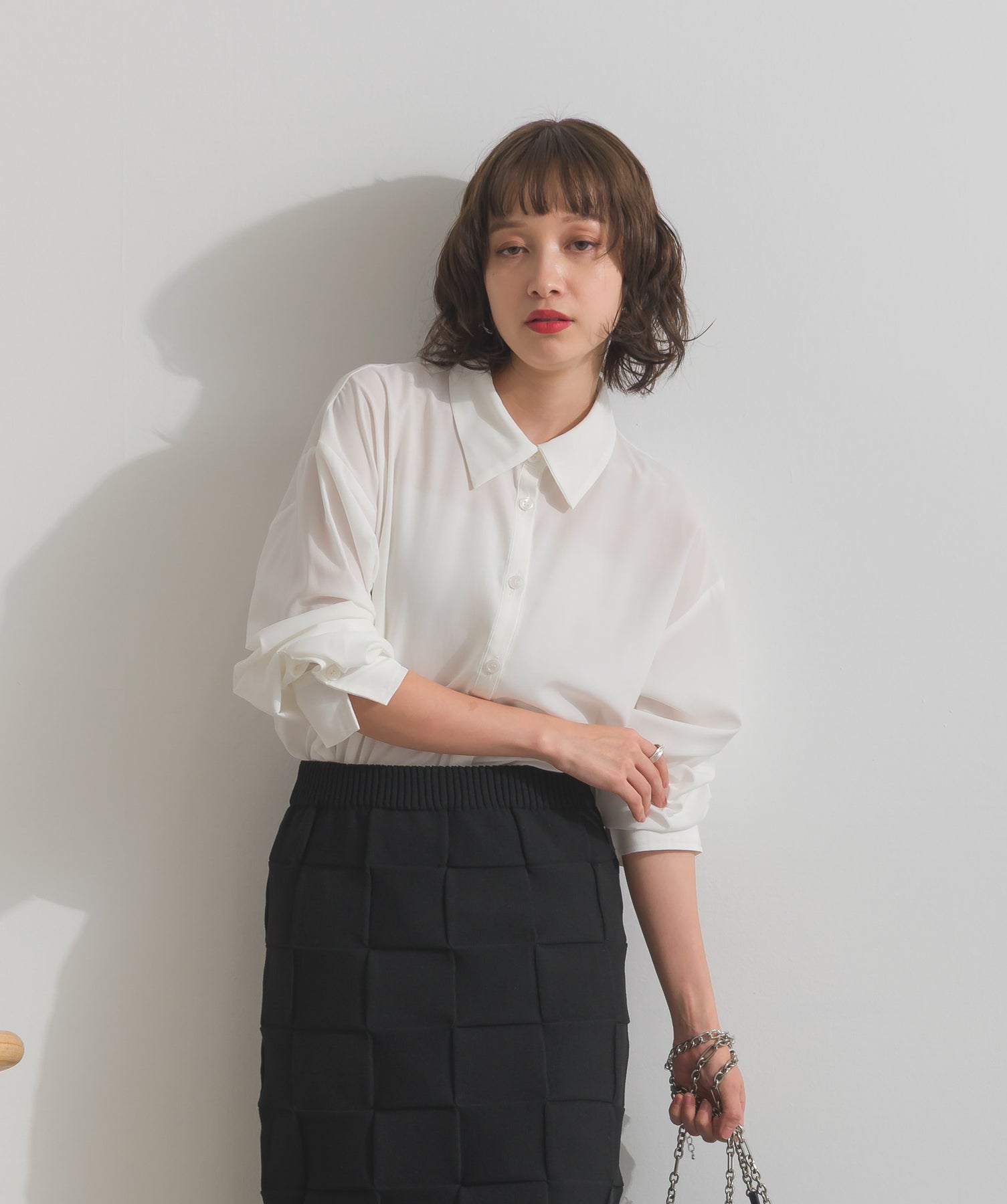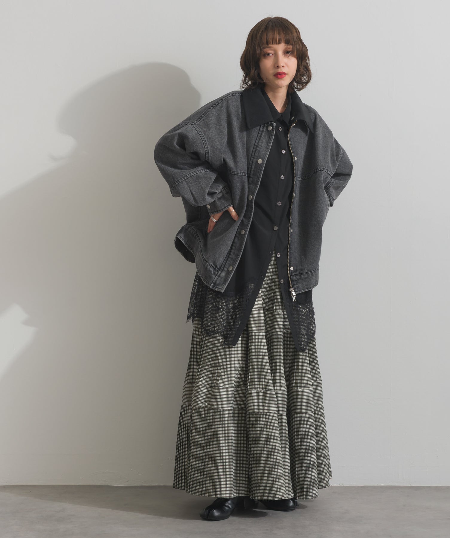 シャツのクリーンな印象とレースの甘さが共存する、洗練されたデザイン。ヒップが隠れる長め丈で、チュニックとしても羽織りとしても着回せる2WAY仕様。ボトムにデニムを合わせてカジュアルダウンも、スラックスやレギンスでモード寄りに仕上げるのも◎。