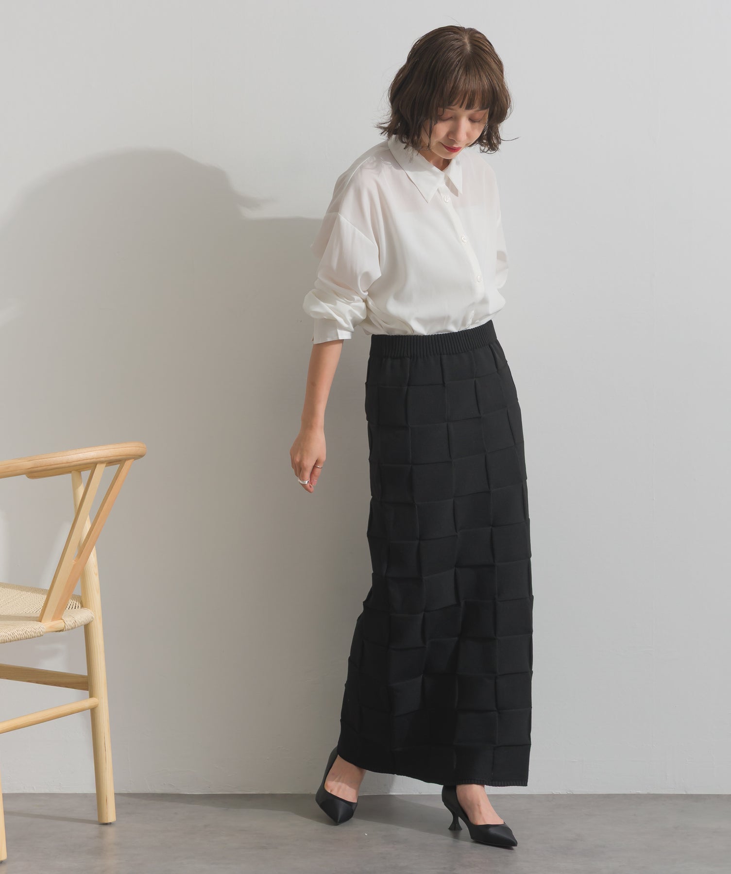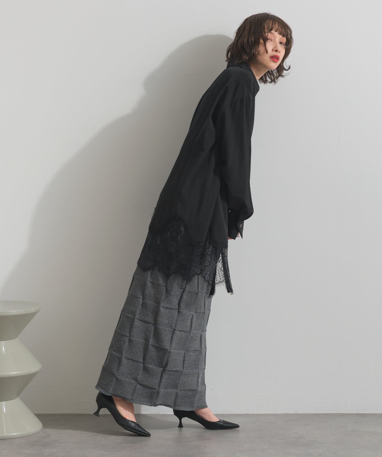裾レースで魅せる、シャープな甘さを纏うシャツワンピ。